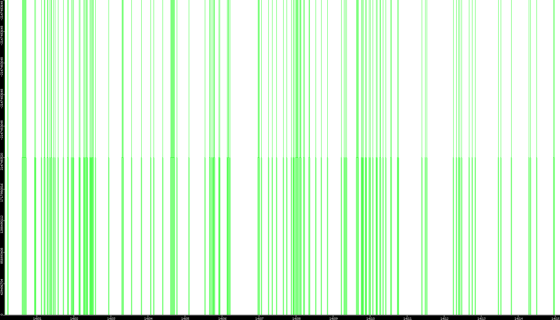 | Date | Dest. IP vs. Time | Dest. Port vs. Time | Src. IP vs. Time | Src. Port vs. Time | Nb. of Packets vs. Time | Throughput vs. Time | Average Packet Size vs. Time | Entropy of Port vs. Time |