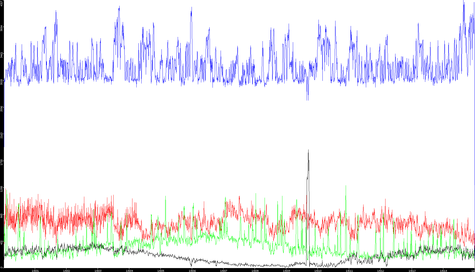 2004/10/14 Dest. IP vs. Time Dest. Port vs. Time Src. IP vs. Time Src. Port vs. Time Nb. of Packets vs. Time Throughput vs. Time Average Packet Size vs. Time Entropy of Port vs. Time