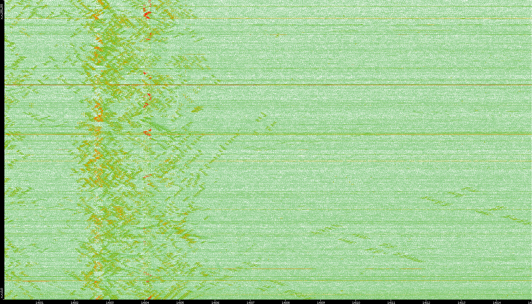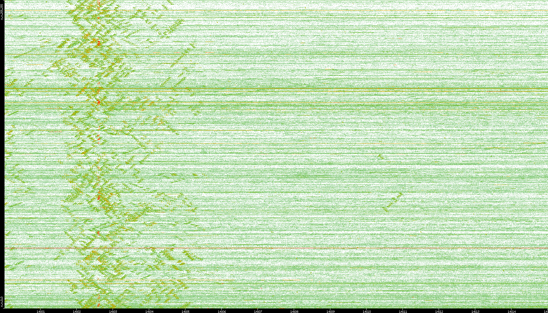 | Date | Dest. IP vs. Time | Dest. Port vs. Time | Src. IP vs. Time | Src. Port vs. Time | Nb. of Packets vs. Time | Throughput vs. Time | Average Packet Size vs. Time | Entropy of Port vs. Time |