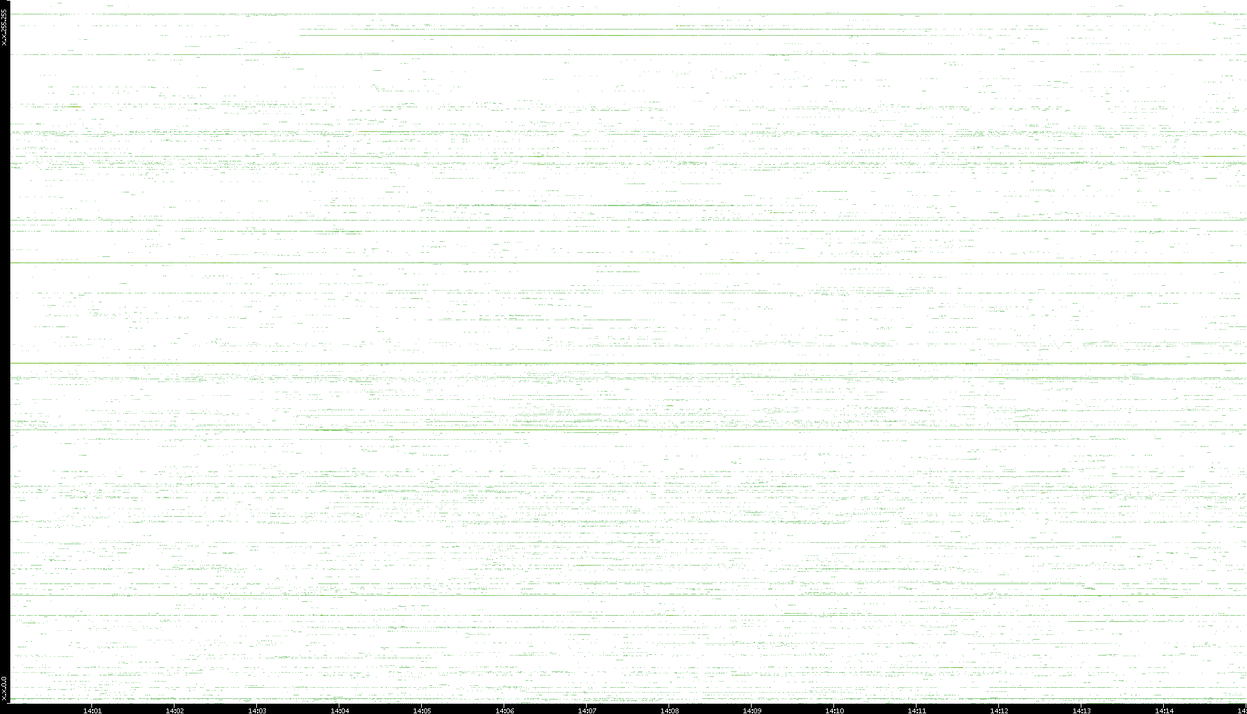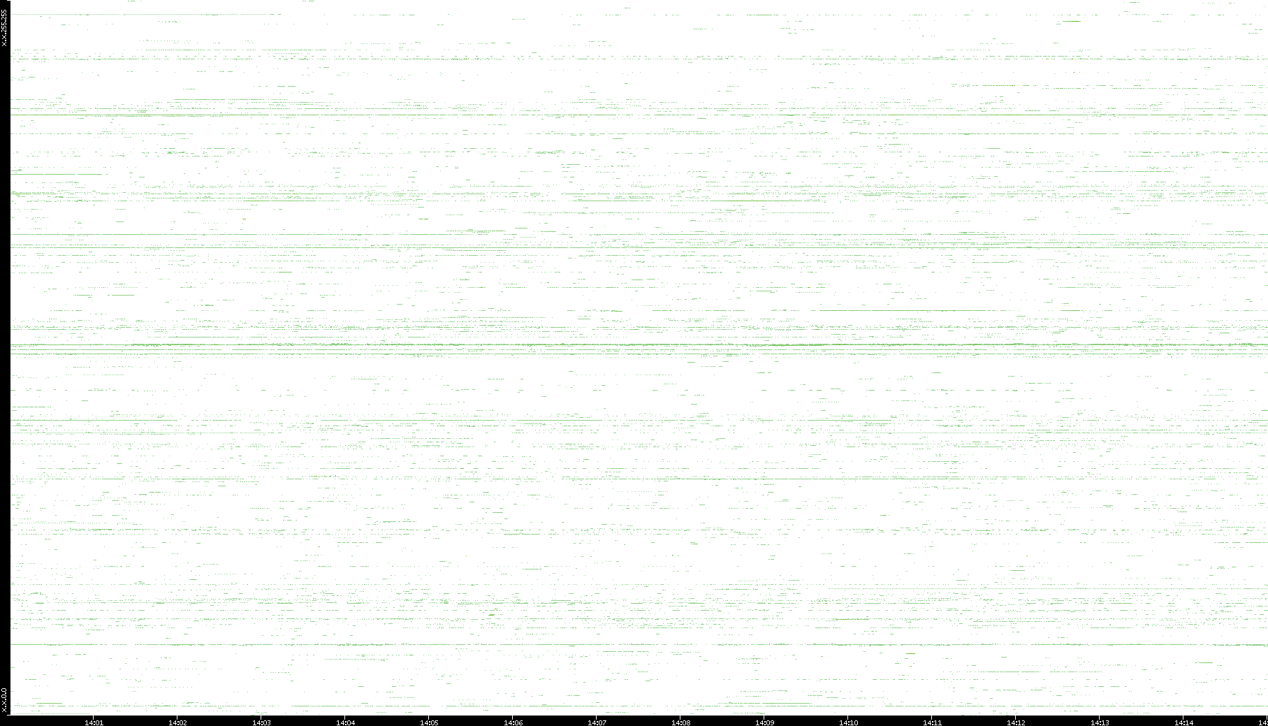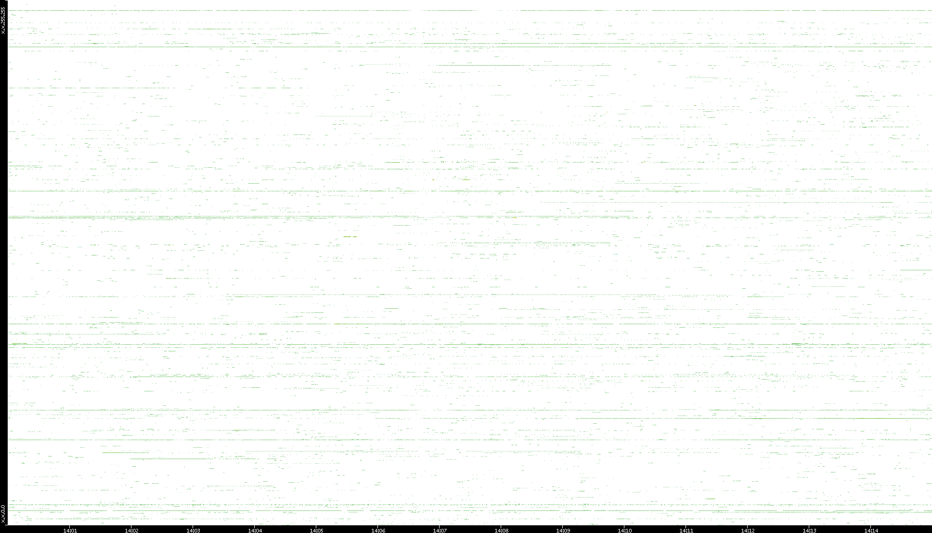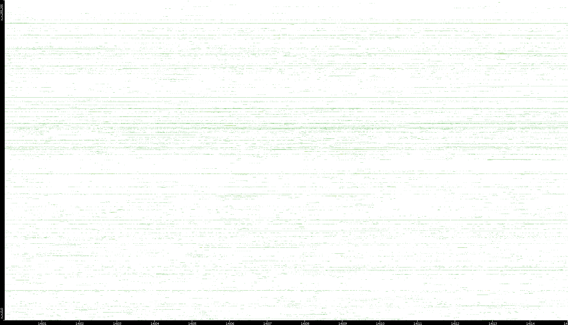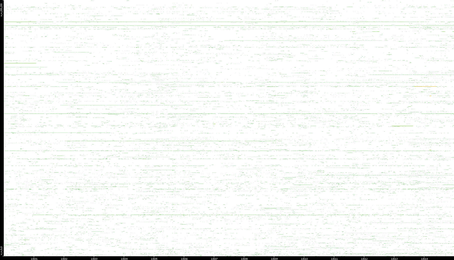 | Date | Dest. IP vs. Time | Dest. Port vs. Time | Src. IP vs. Time | Src. Port vs. Time | Nb. of Packets vs. Time | Throughput vs. Time | Average Packet Size vs. Time | Entropy of Port vs. Time |