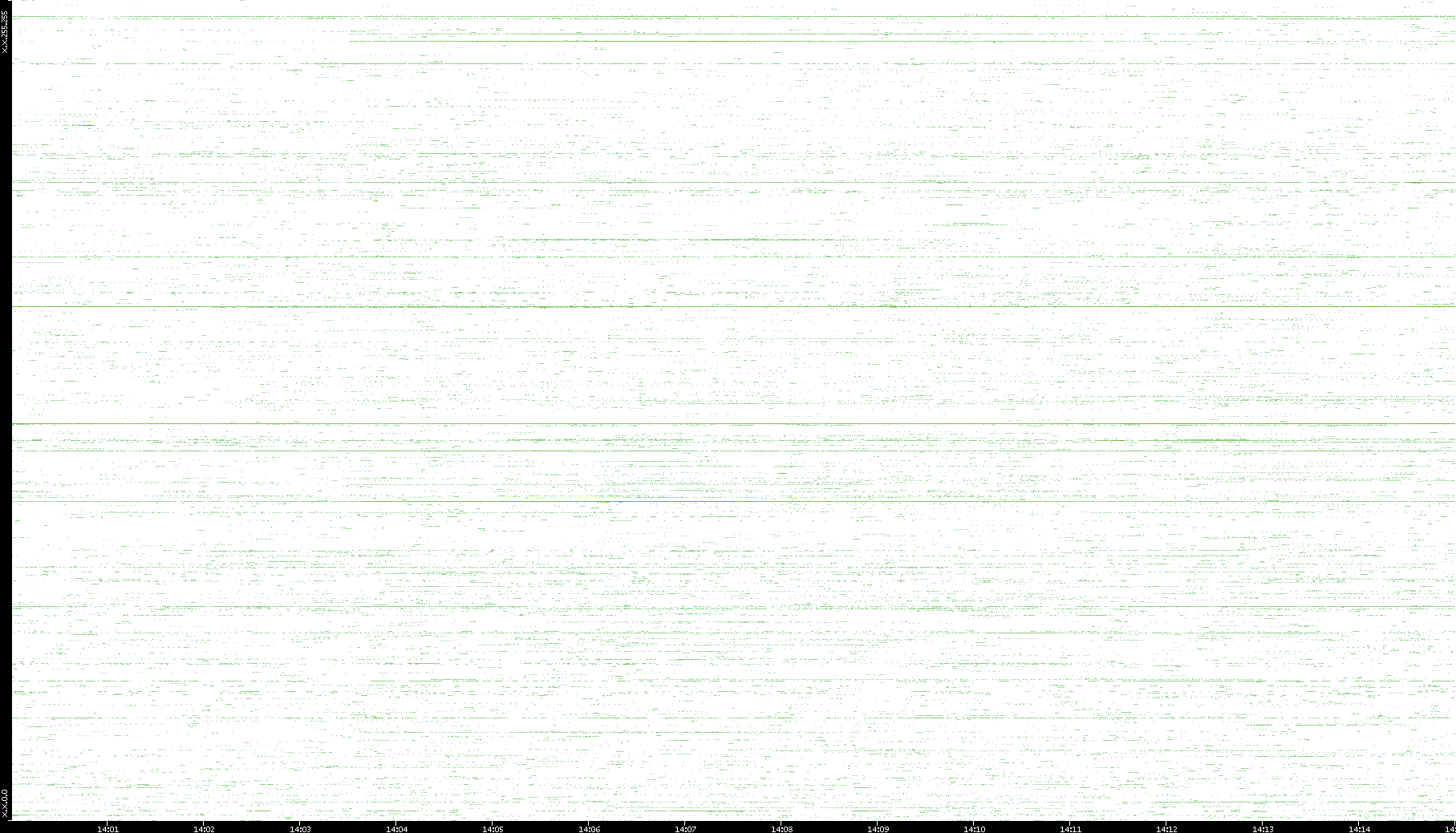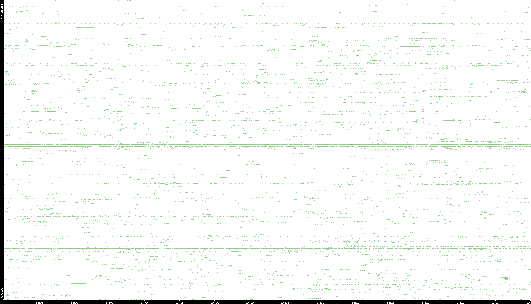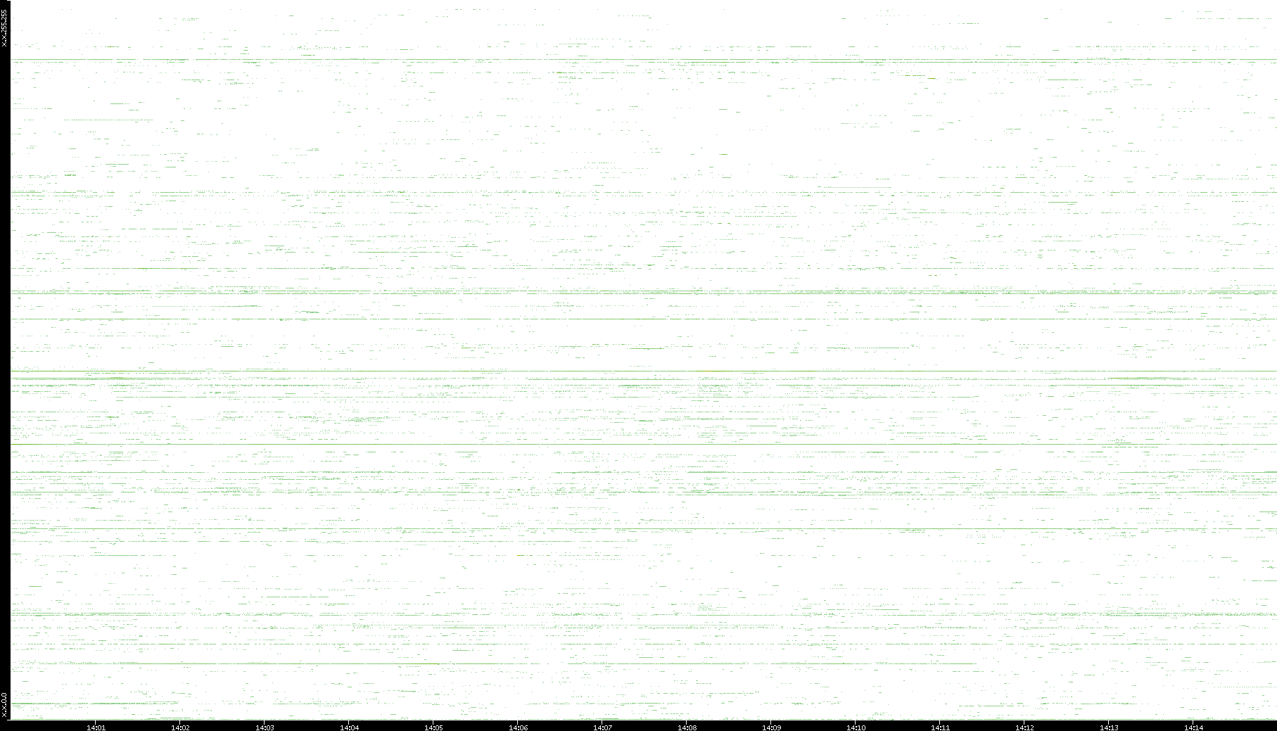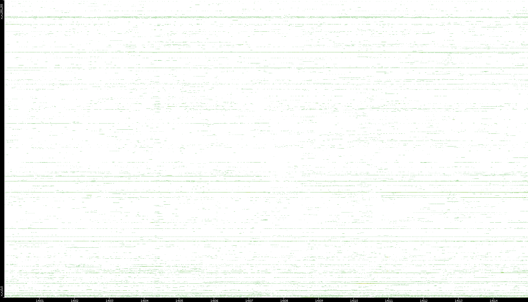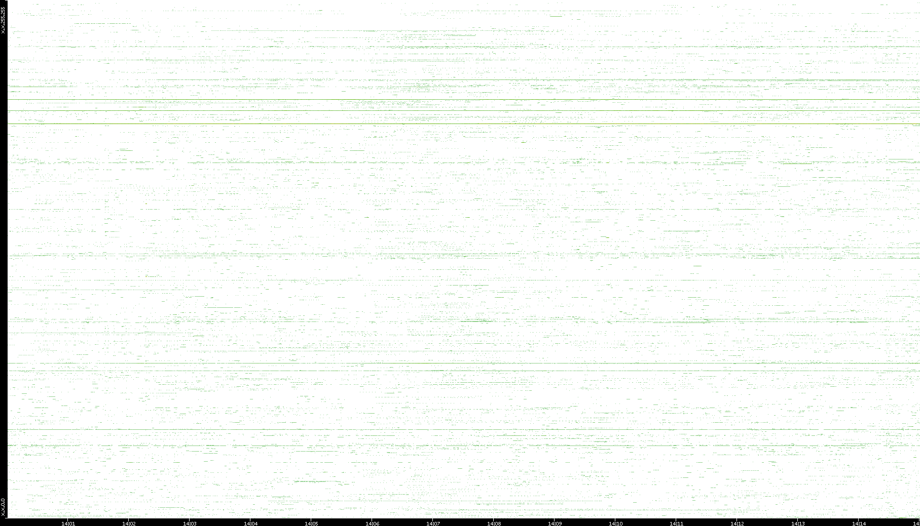 | Date | Dest. IP vs. Time | Dest. Port vs. Time | Src. IP vs. Time | Src. Port vs. Time | Nb. of Packets vs. Time | Throughput vs. Time | Average Packet Size vs. Time | Entropy of Port vs. Time |