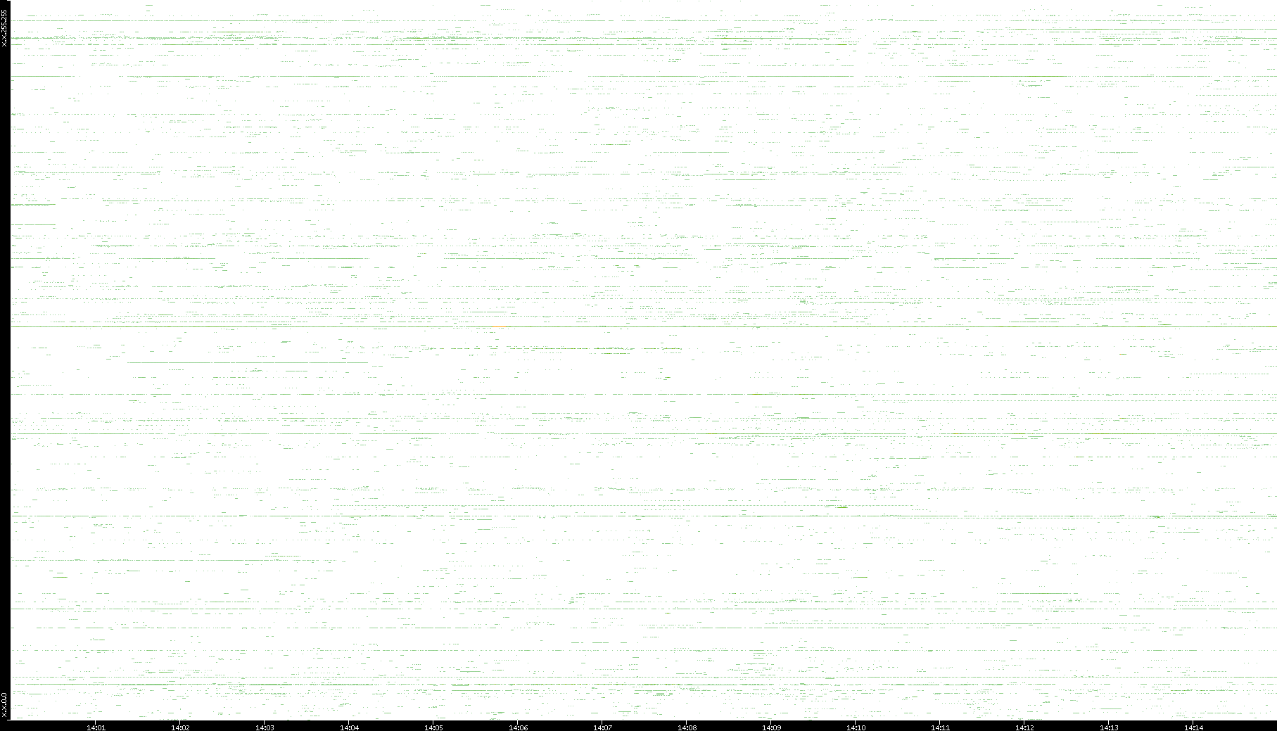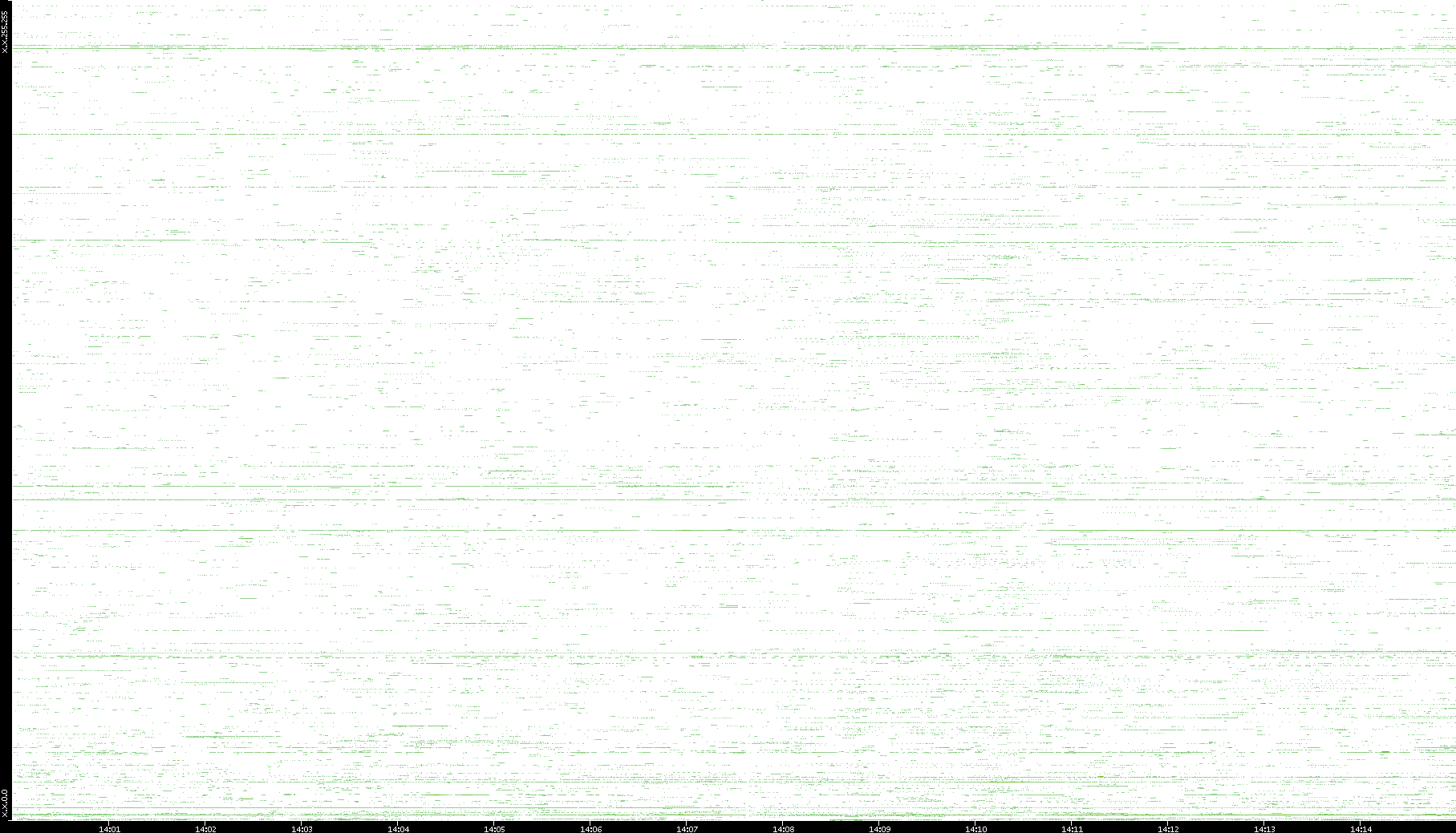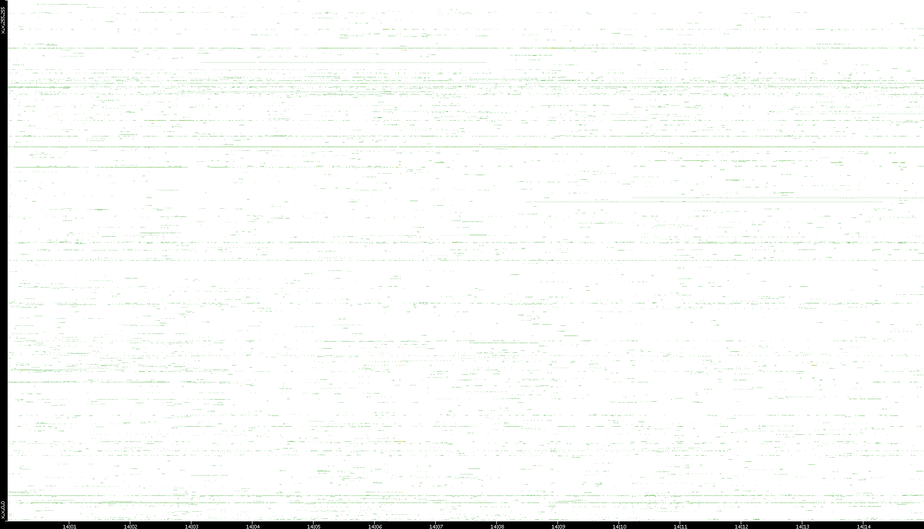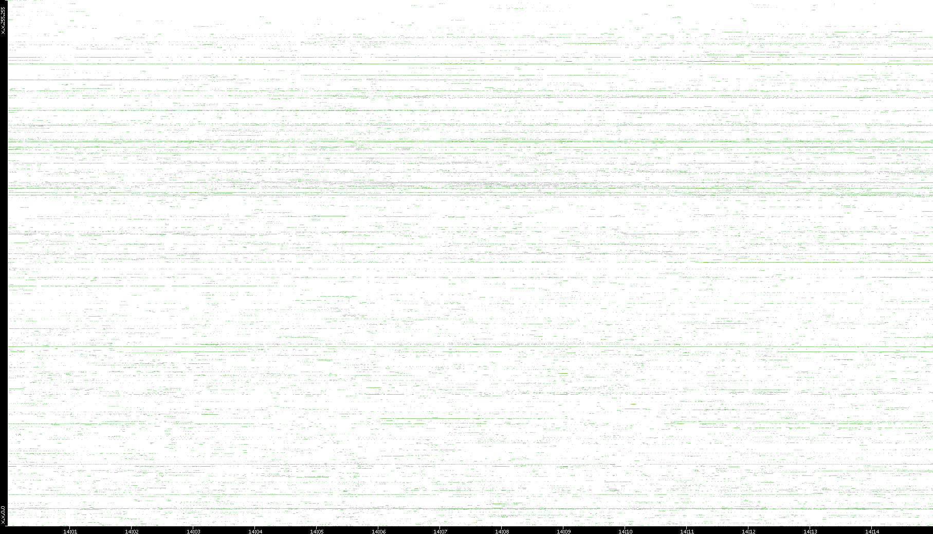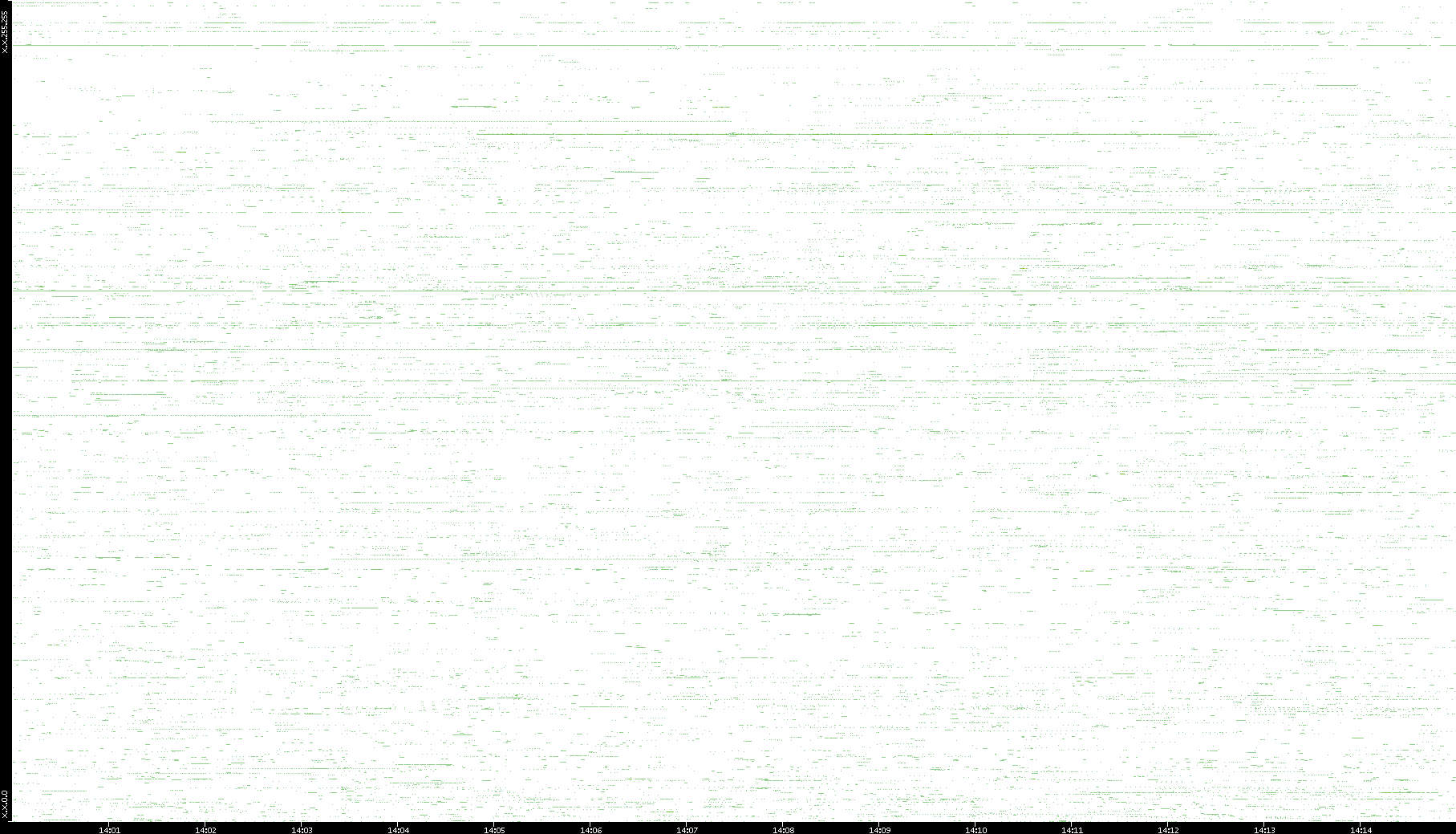 | Date | Dest. IP vs. Time | Dest. Port vs. Time | Src. IP vs. Time | Src. Port vs. Time | Nb. of Packets vs. Time | Throughput vs. Time | Average Packet Size vs. Time | Entropy of Port vs. Time |