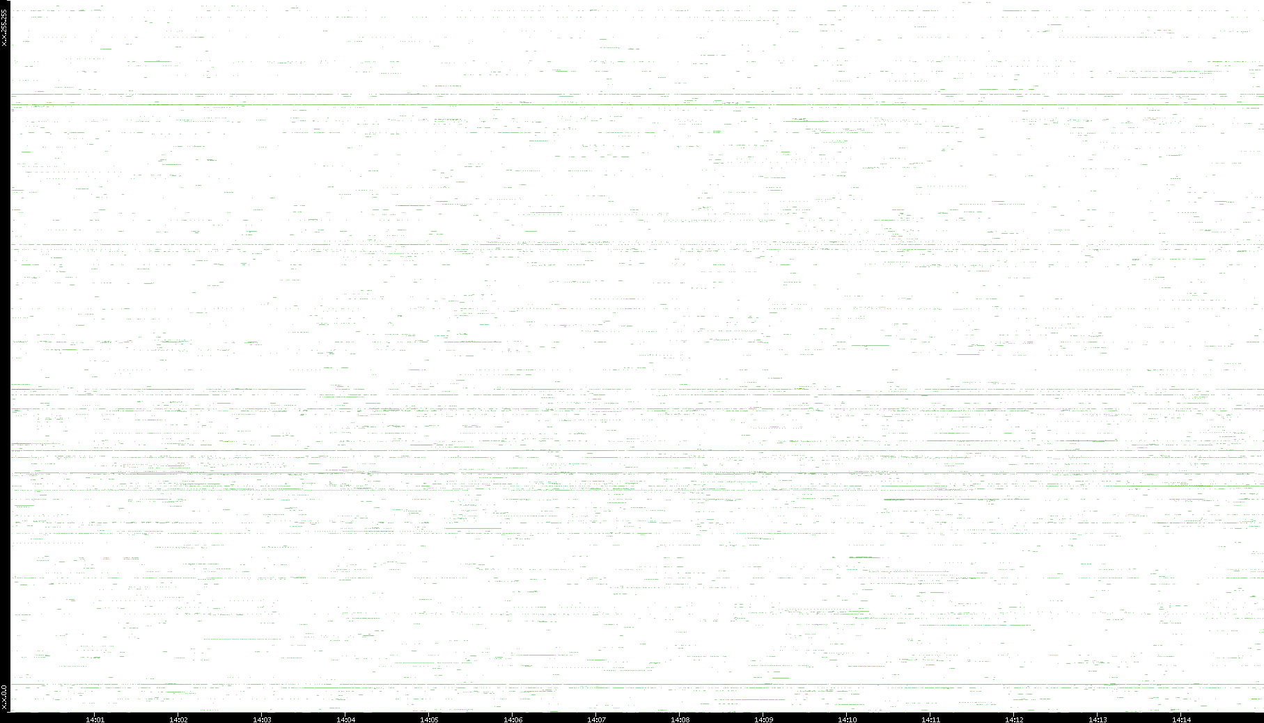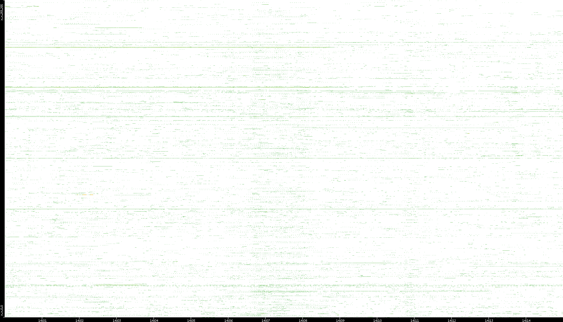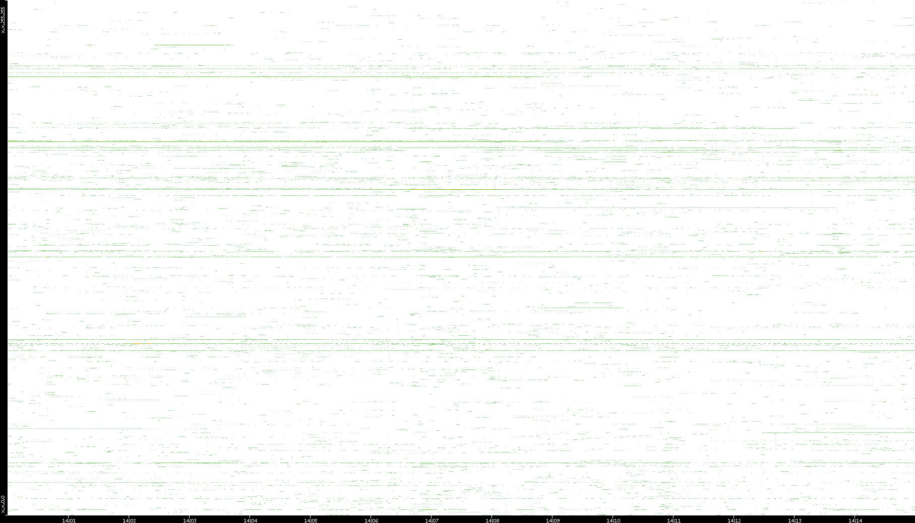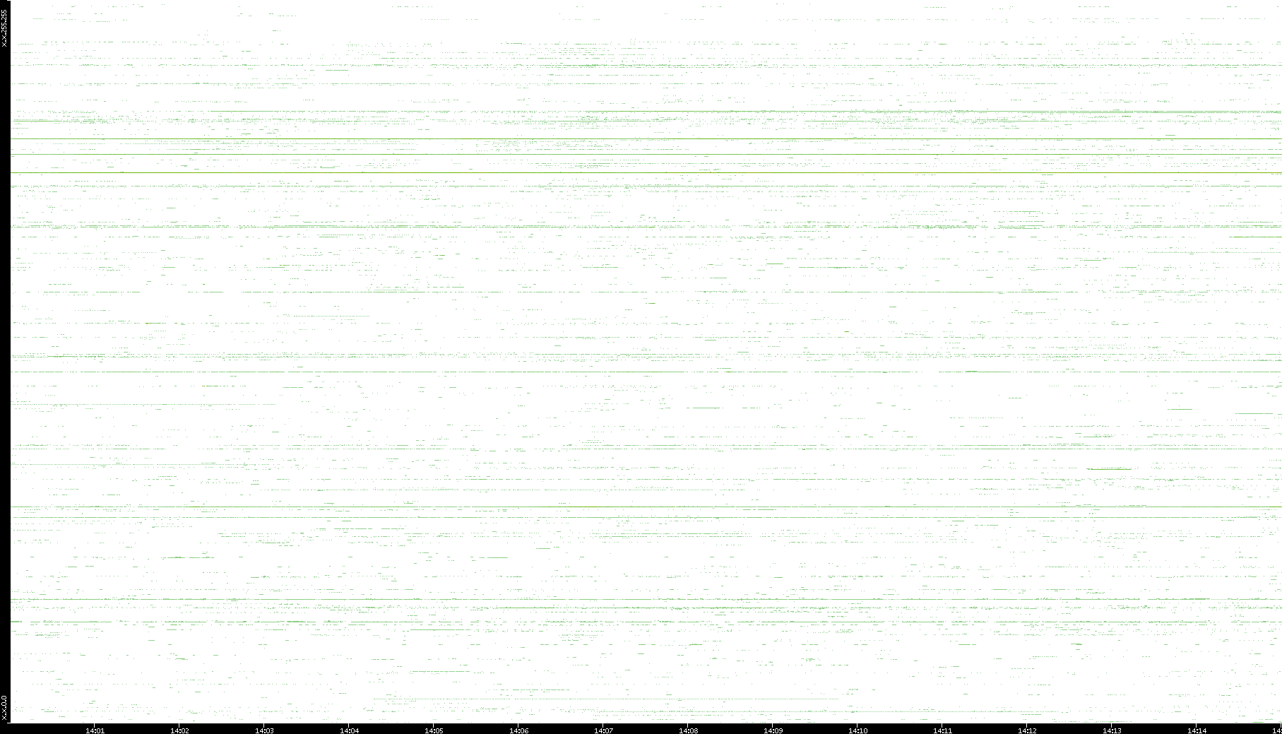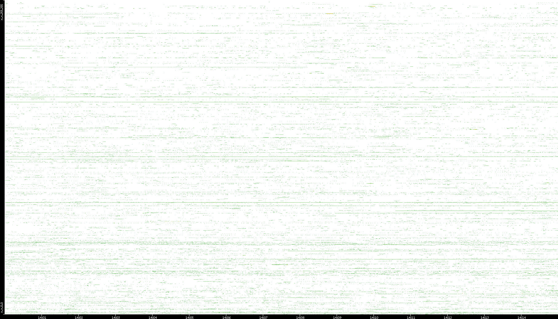 | Date | Dest. IP vs. Time | Dest. Port vs. Time | Src. IP vs. Time | Src. Port vs. Time | Nb. of Packets vs. Time | Throughput vs. Time | Average Packet Size vs. Time | Entropy of Port vs. Time |
