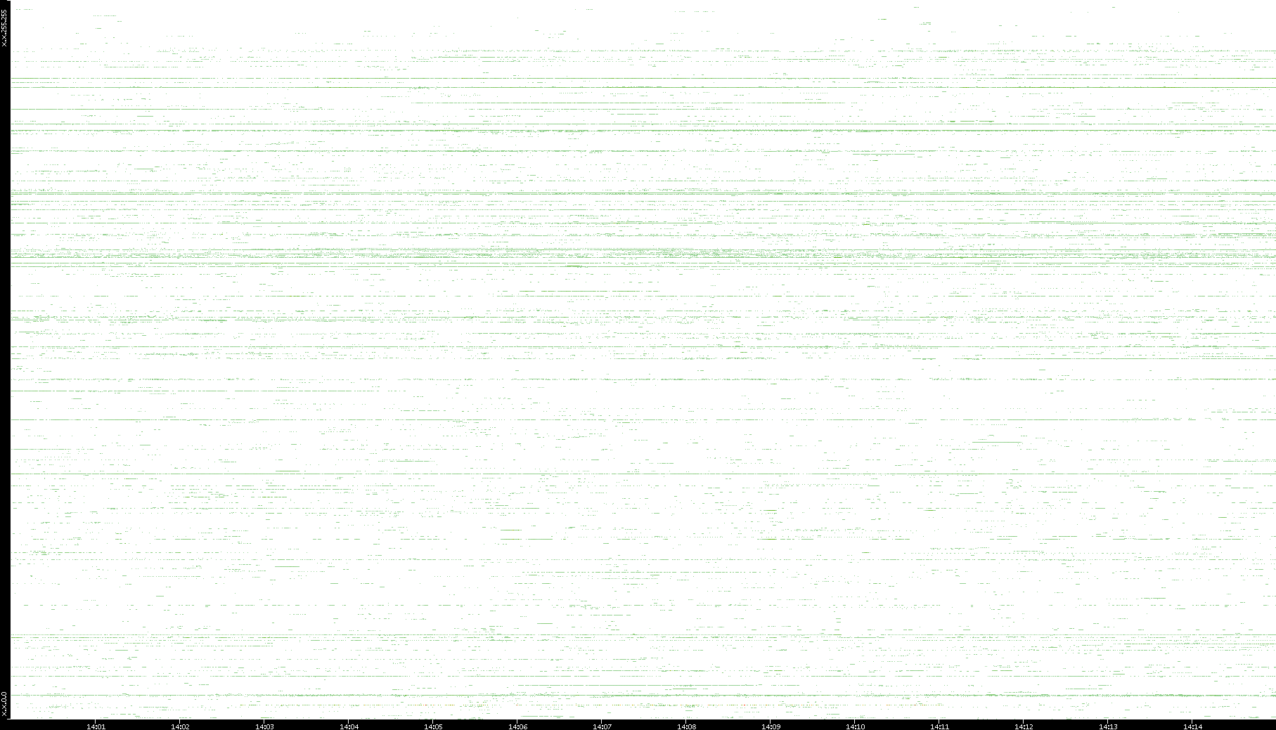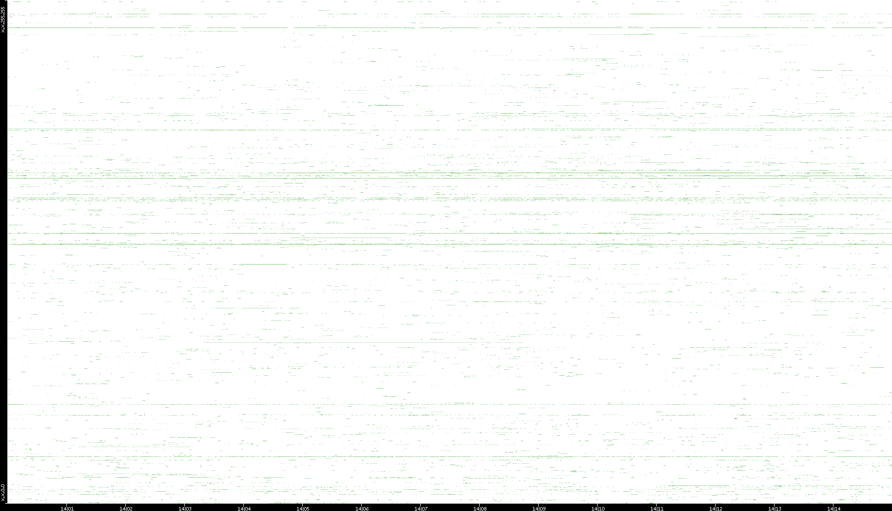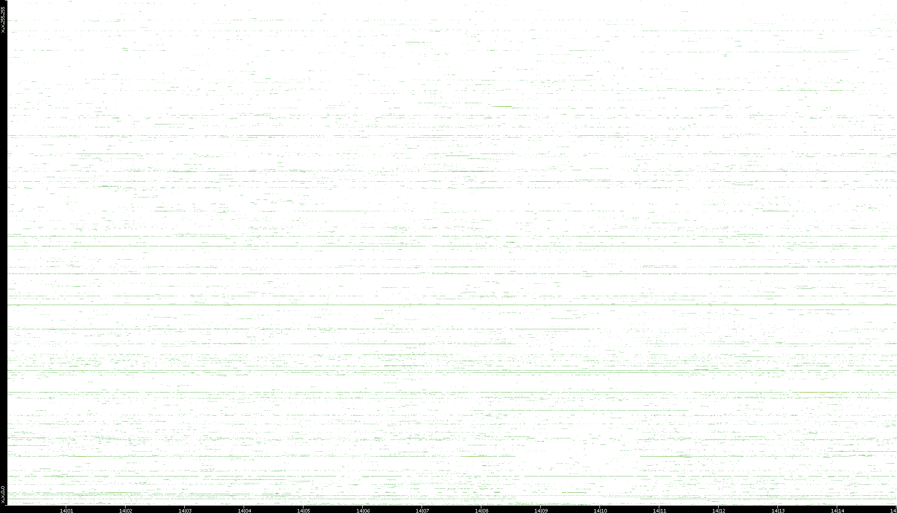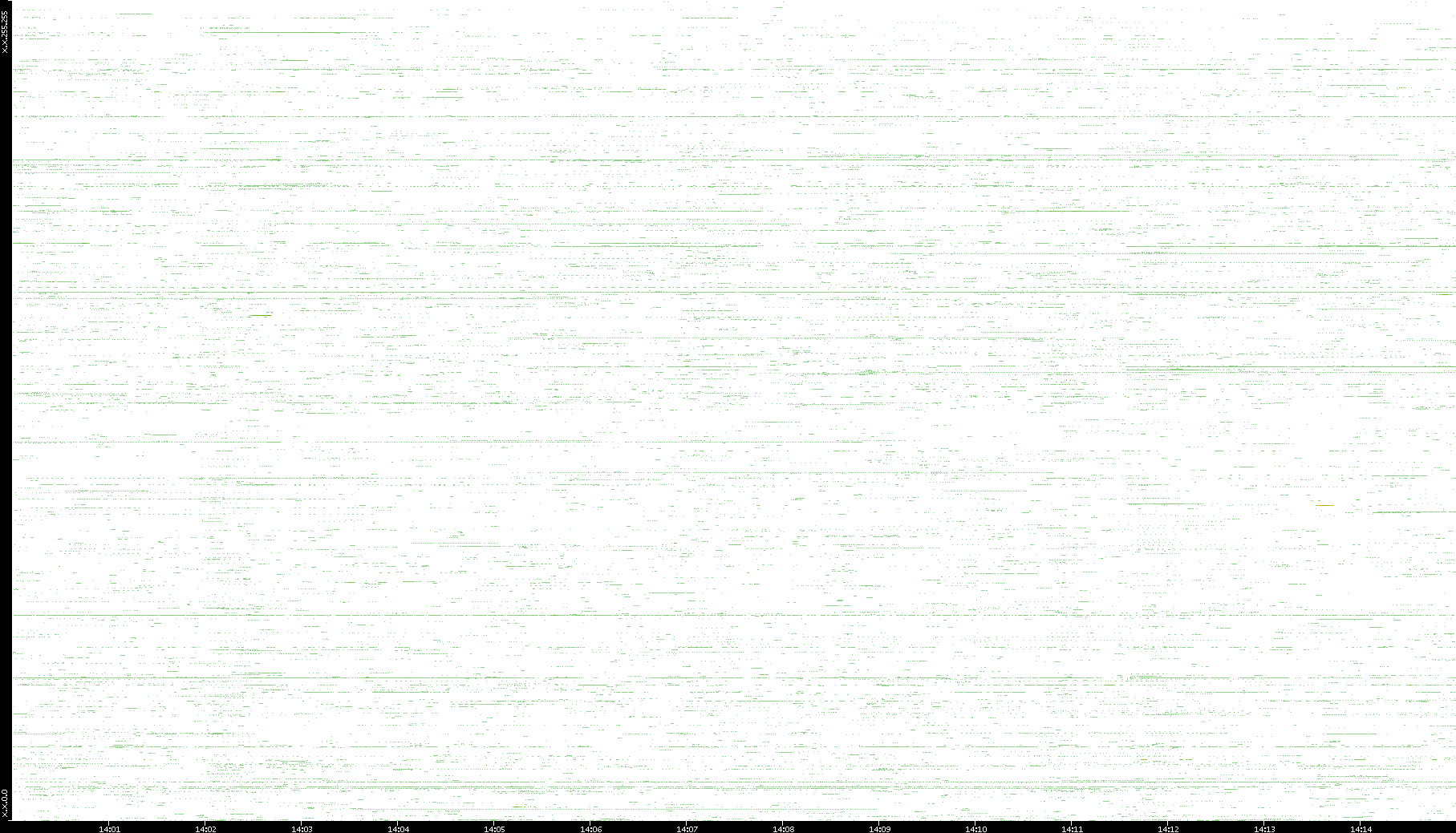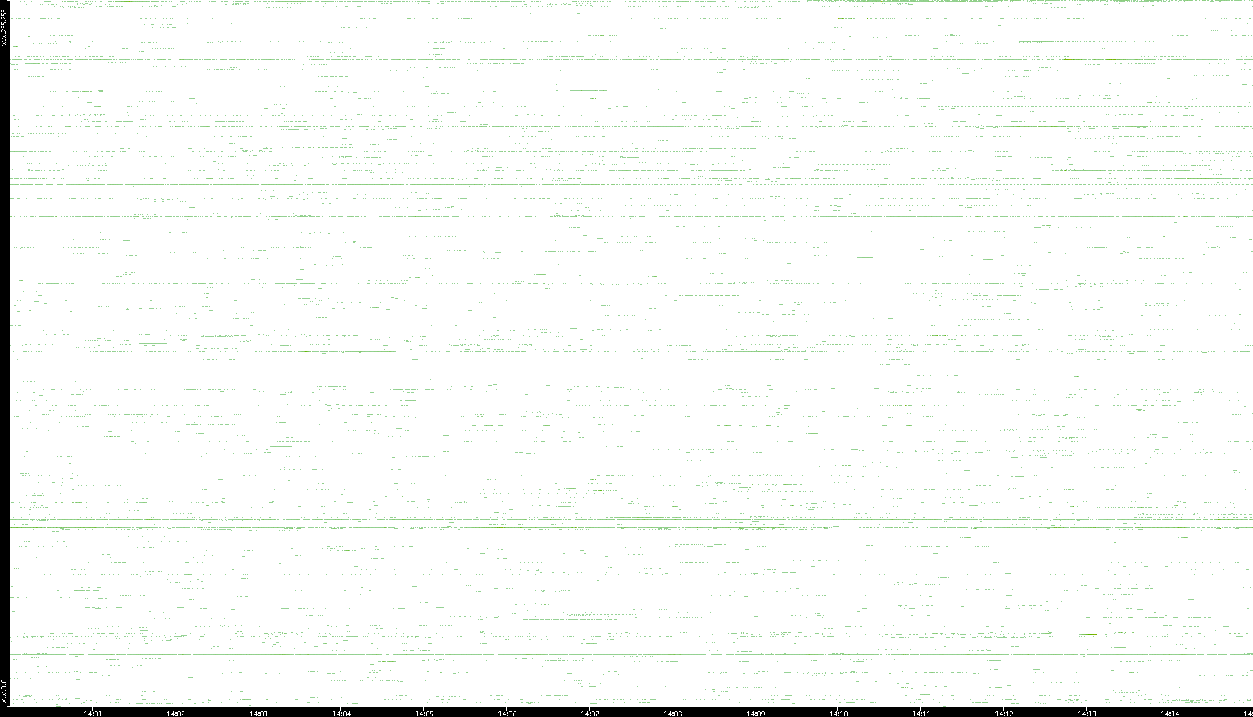 | Date | Dest. IP vs. Time | Dest. Port vs. Time | Src. IP vs. Time | Src. Port vs. Time | Nb. of Packets vs. Time | Throughput vs. Time | Average Packet Size vs. Time | Entropy of Port vs. Time |