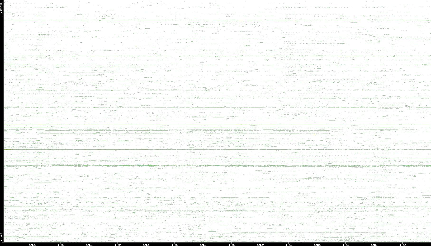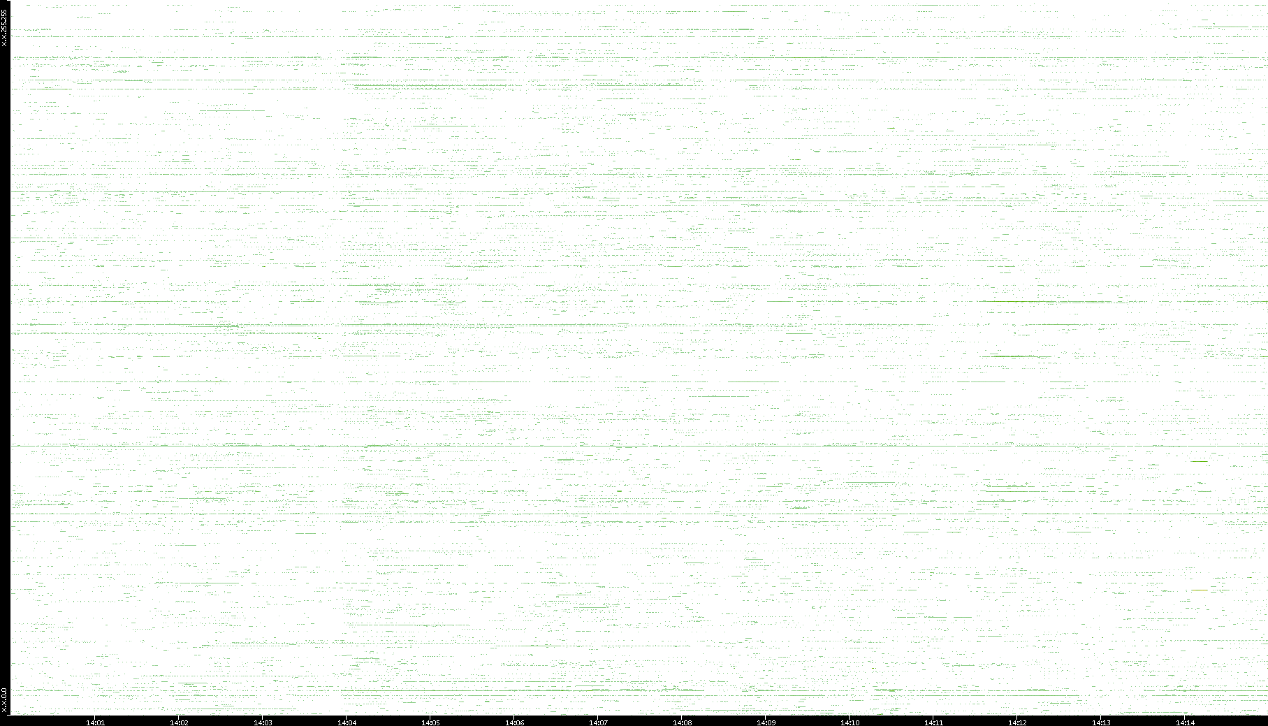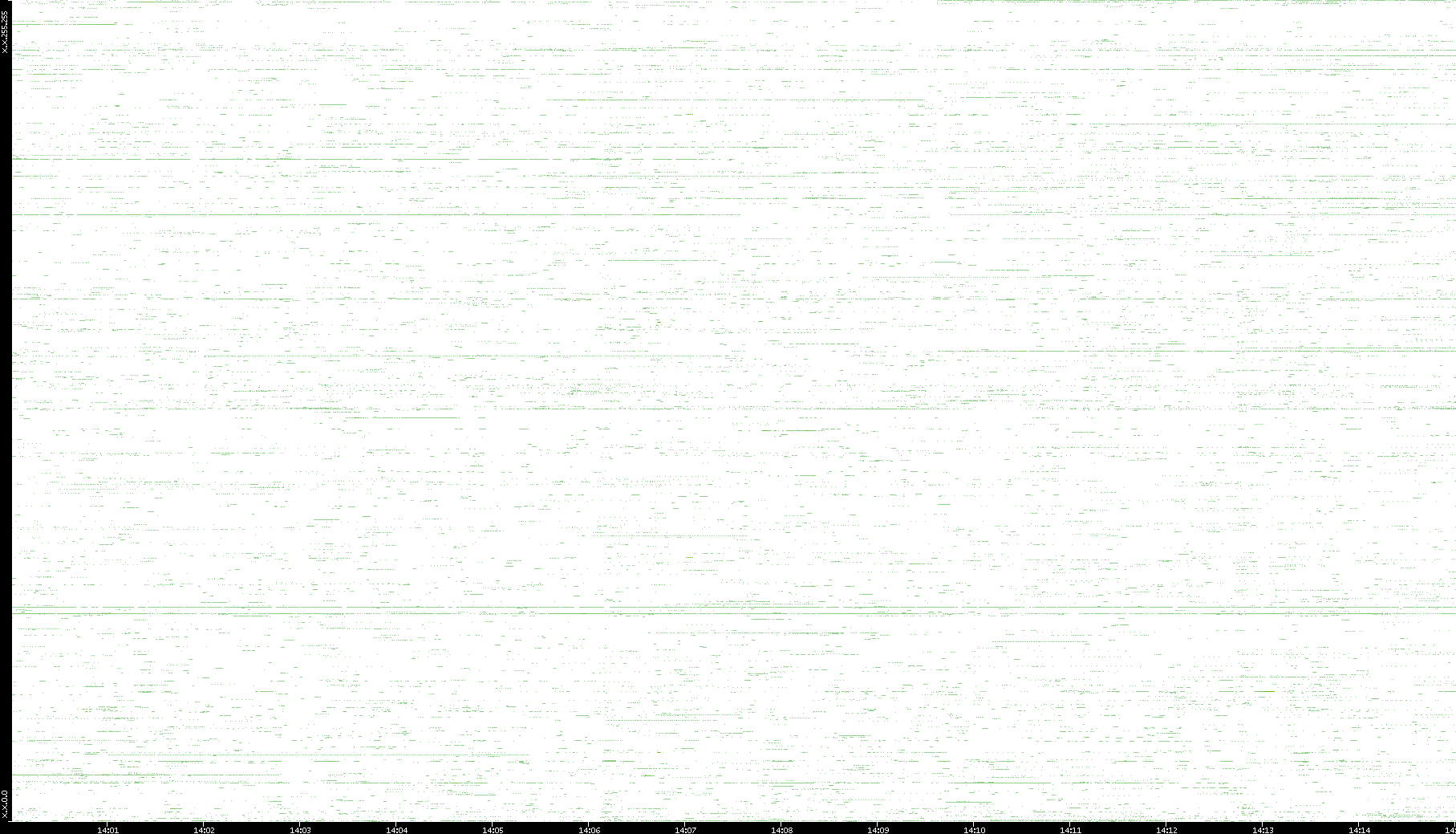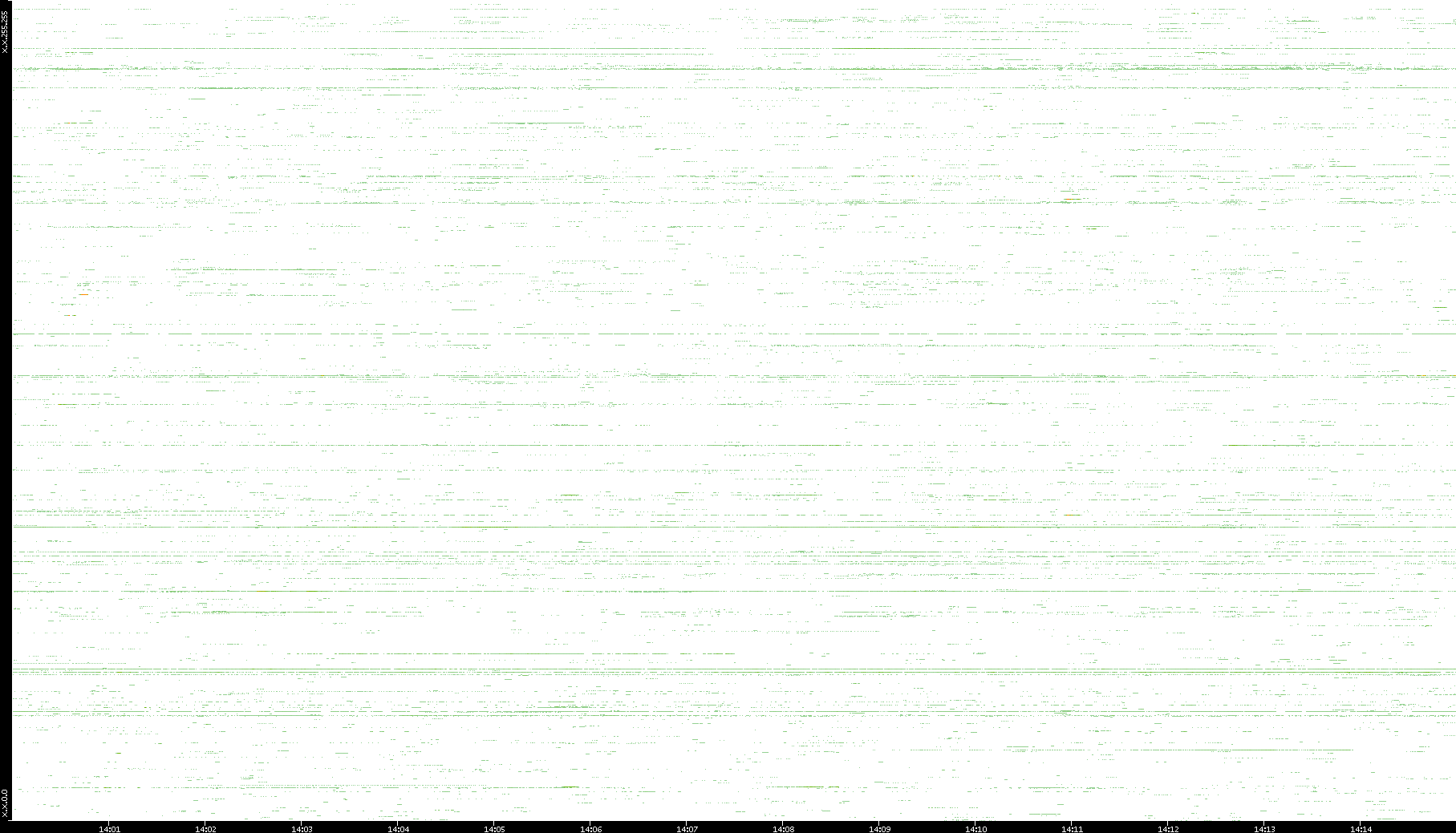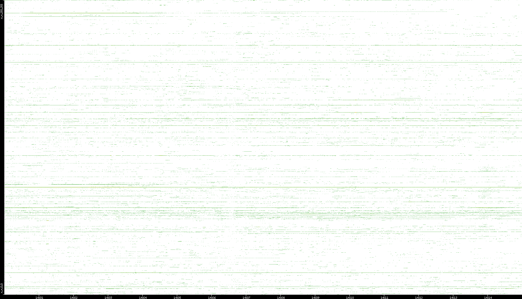 | Date | Dest. IP vs. Time | Dest. Port vs. Time | Src. IP vs. Time | Src. Port vs. Time | Nb. of Packets vs. Time | Throughput vs. Time | Average Packet Size vs. Time | Entropy of Port vs. Time |