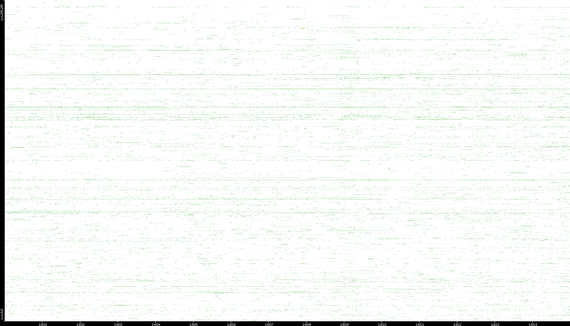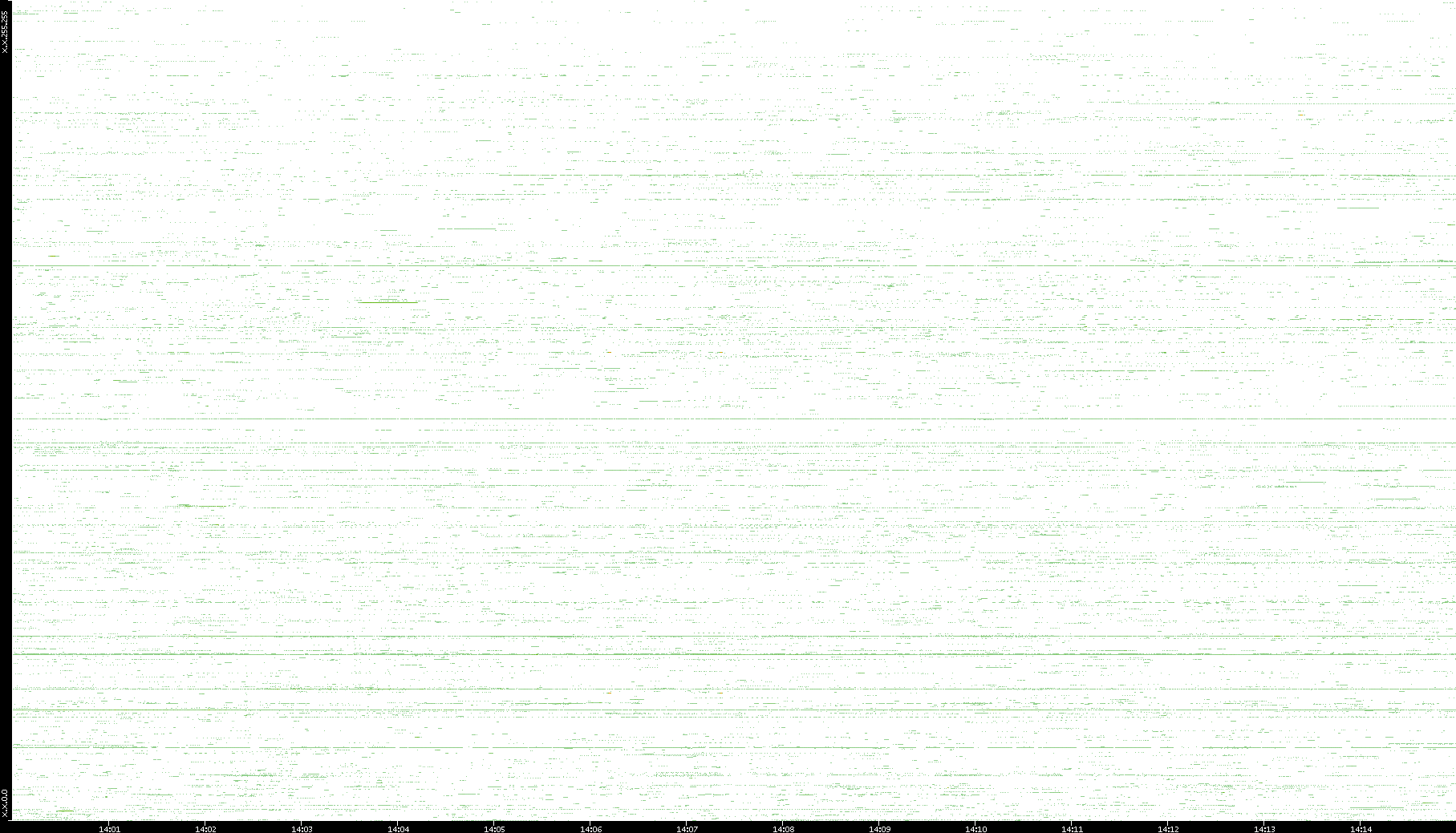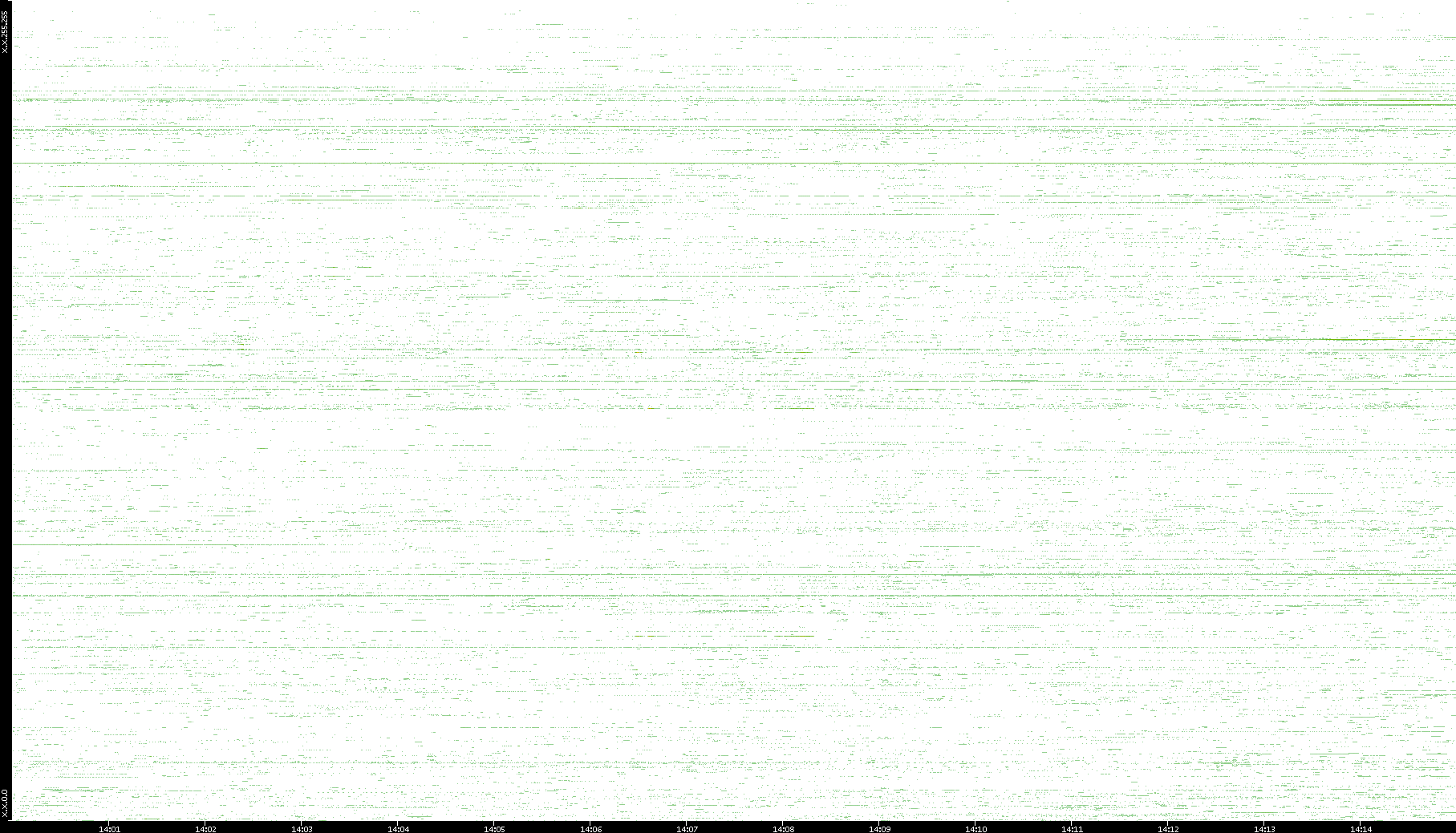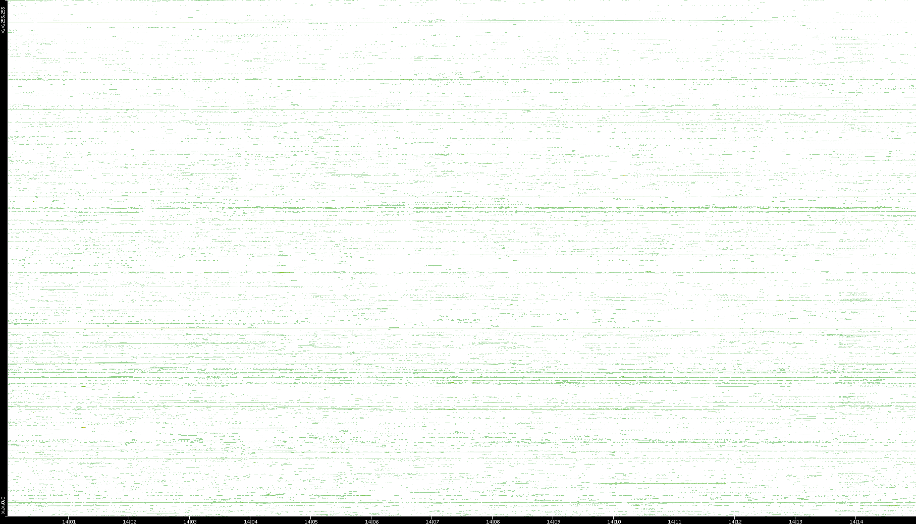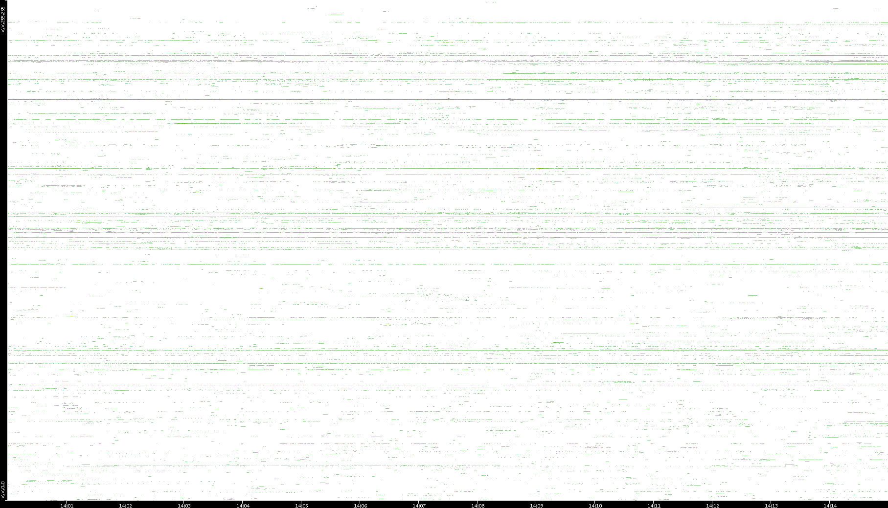 | Date | Dest. IP vs. Time | Dest. Port vs. Time | Src. IP vs. Time | Src. Port vs. Time | Nb. of Packets vs. Time | Throughput vs. Time | Average Packet Size vs. Time | Entropy of Port vs. Time |