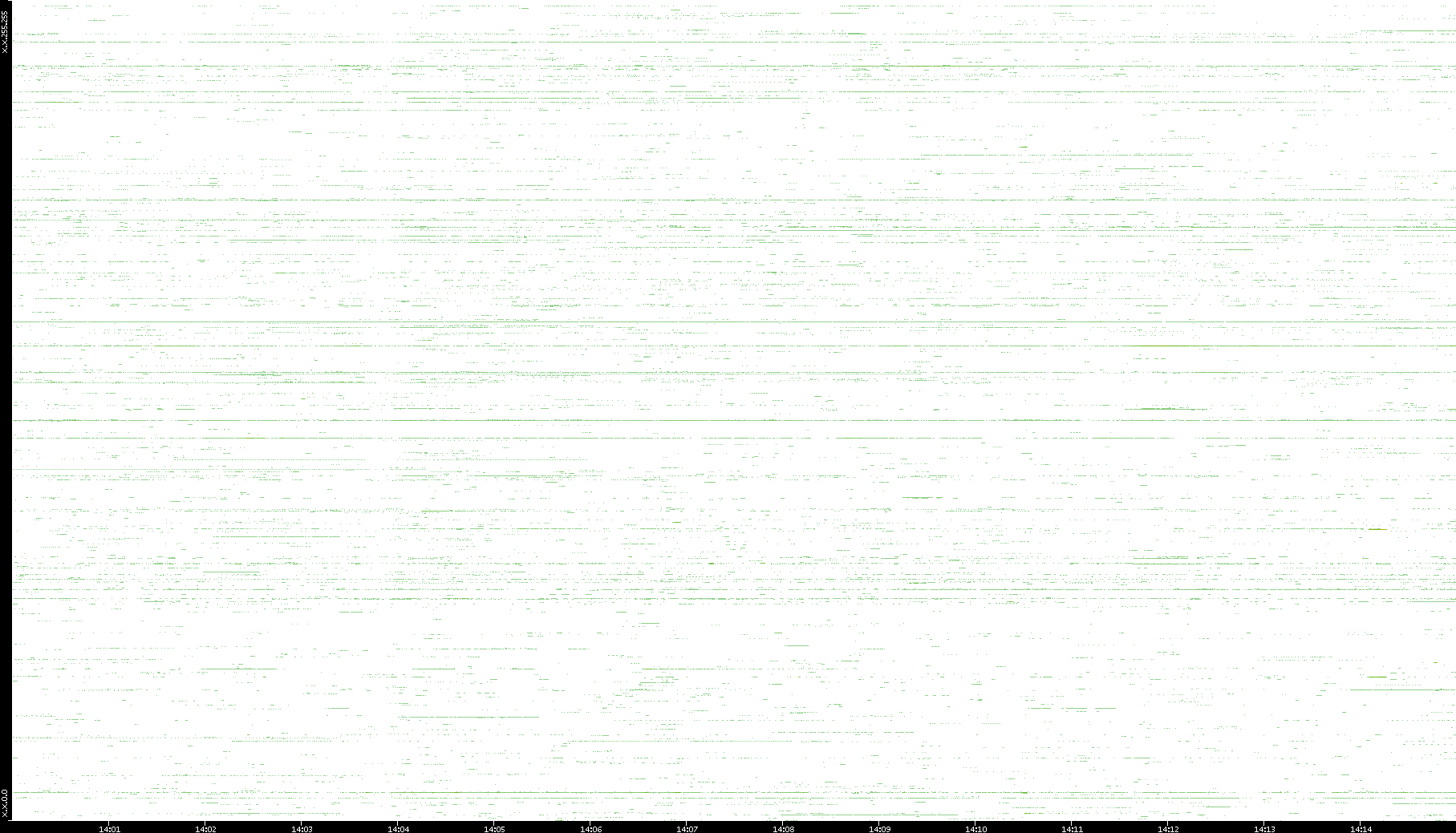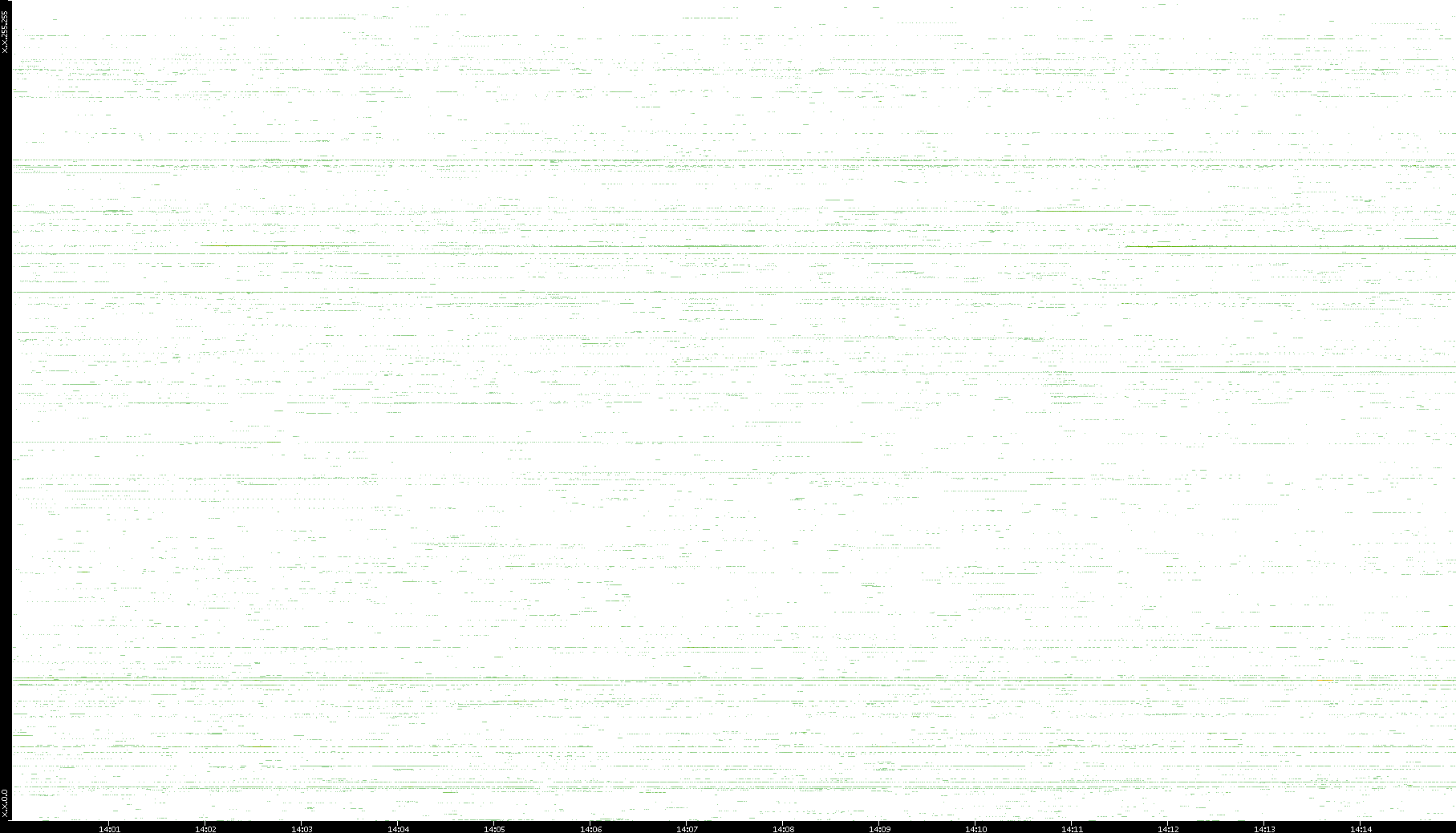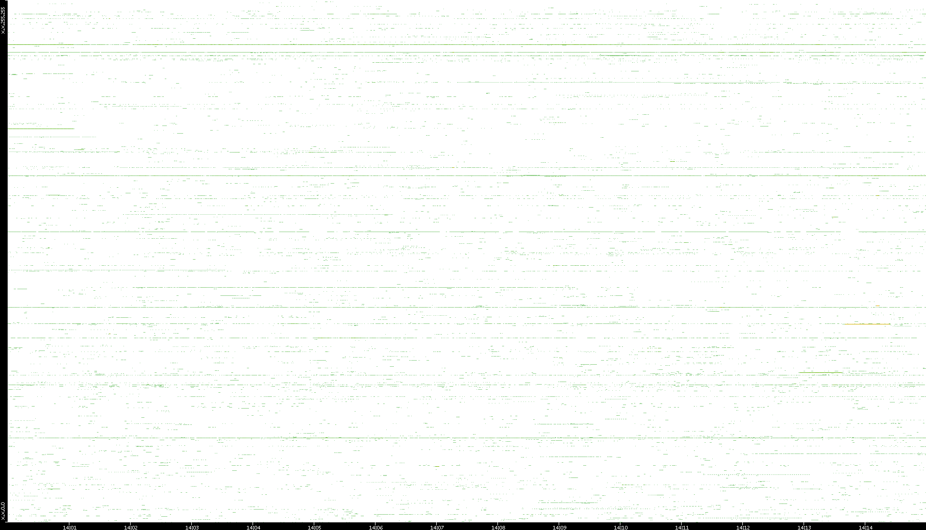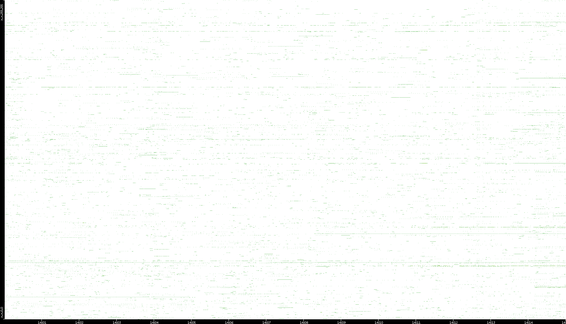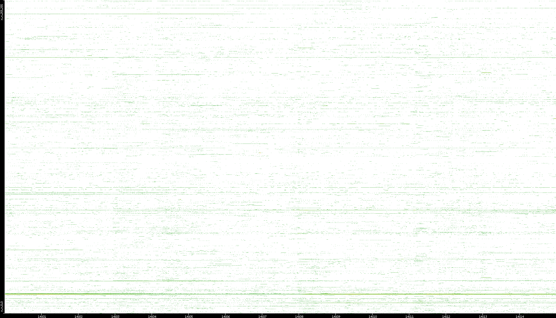 | Date | Dest. IP vs. Time | Dest. Port vs. Time | Src. IP vs. Time | Src. Port vs. Time | Nb. of Packets vs. Time | Throughput vs. Time | Average Packet Size vs. Time | Entropy of Port vs. Time |