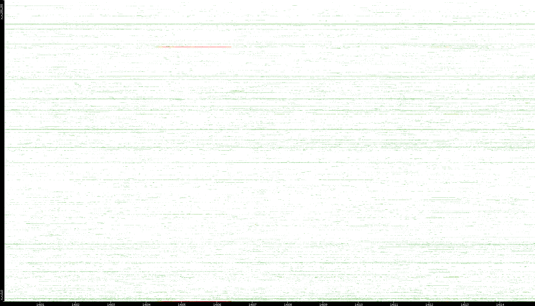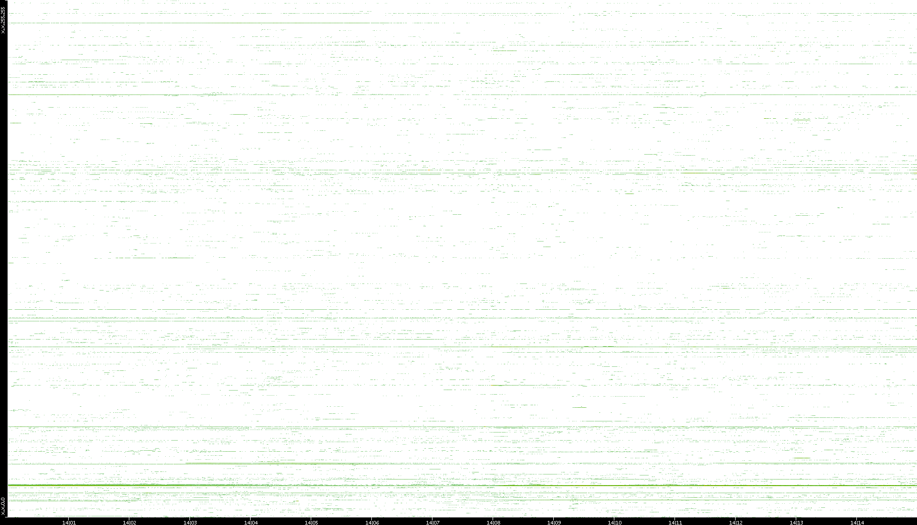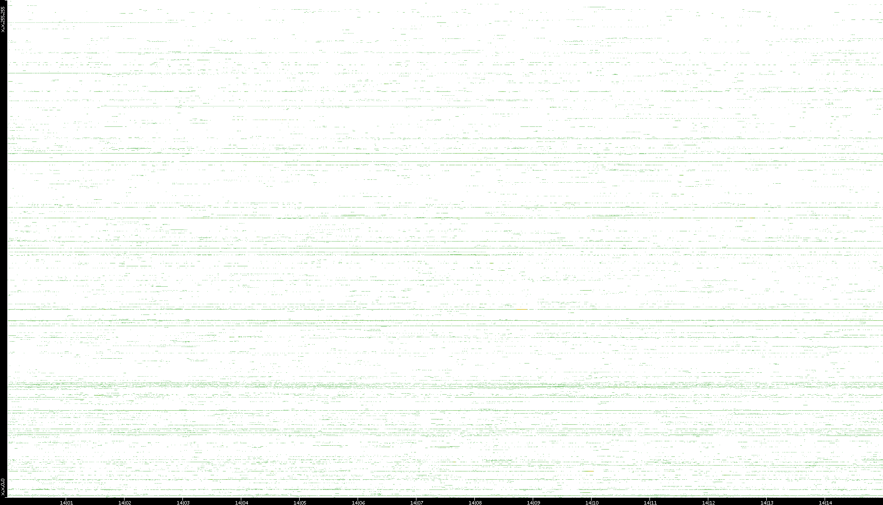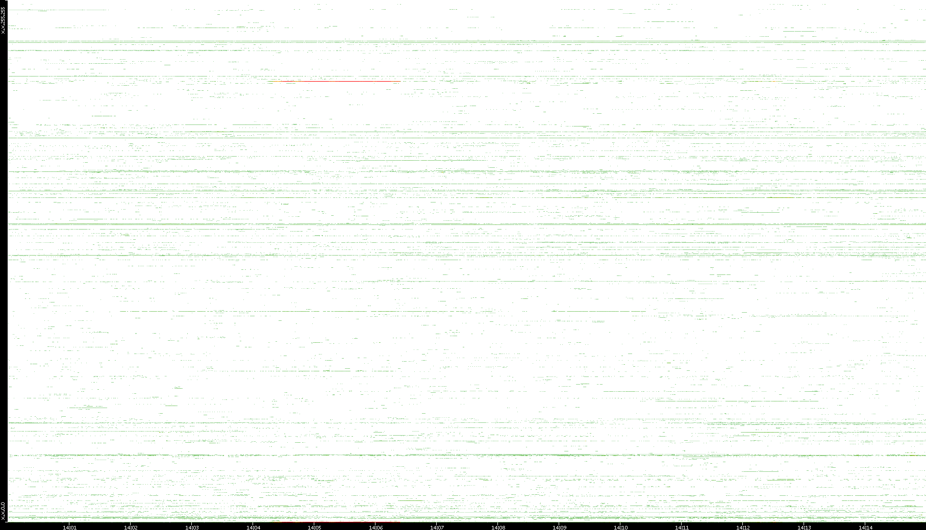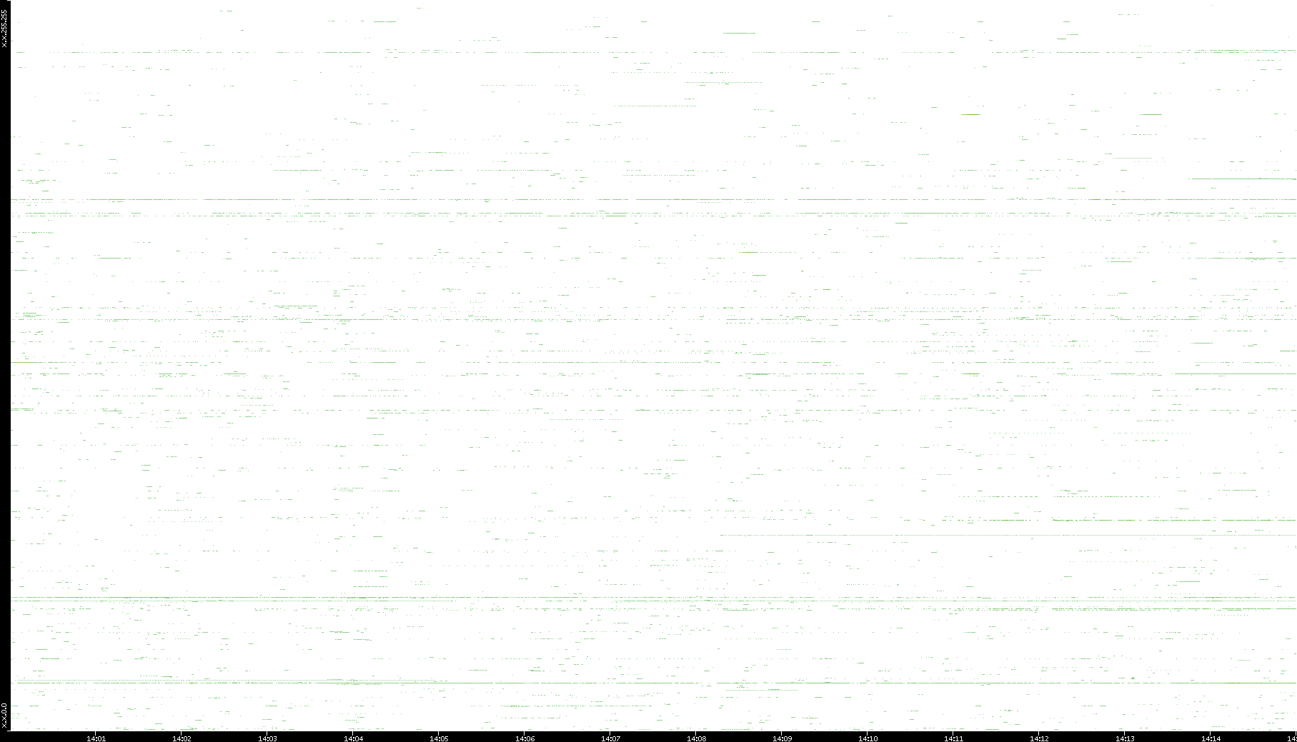 | Date | Dest. IP vs. Time | Dest. Port vs. Time | Src. IP vs. Time | Src. Port vs. Time | Nb. of Packets vs. Time | Throughput vs. Time | Average Packet Size vs. Time | Entropy of Port vs. Time |