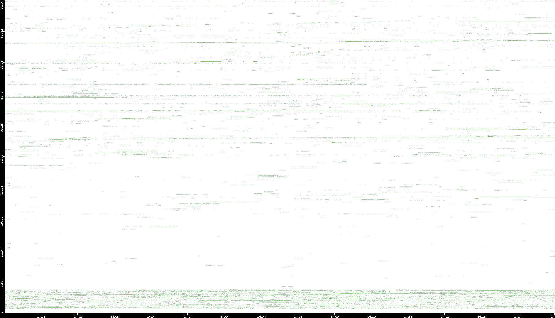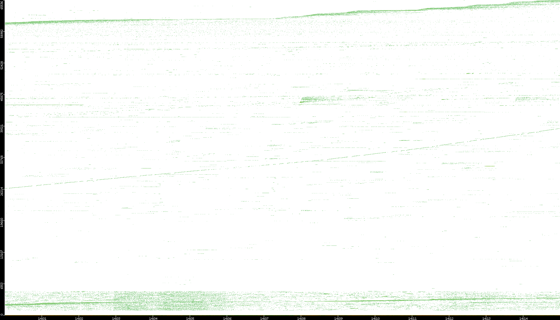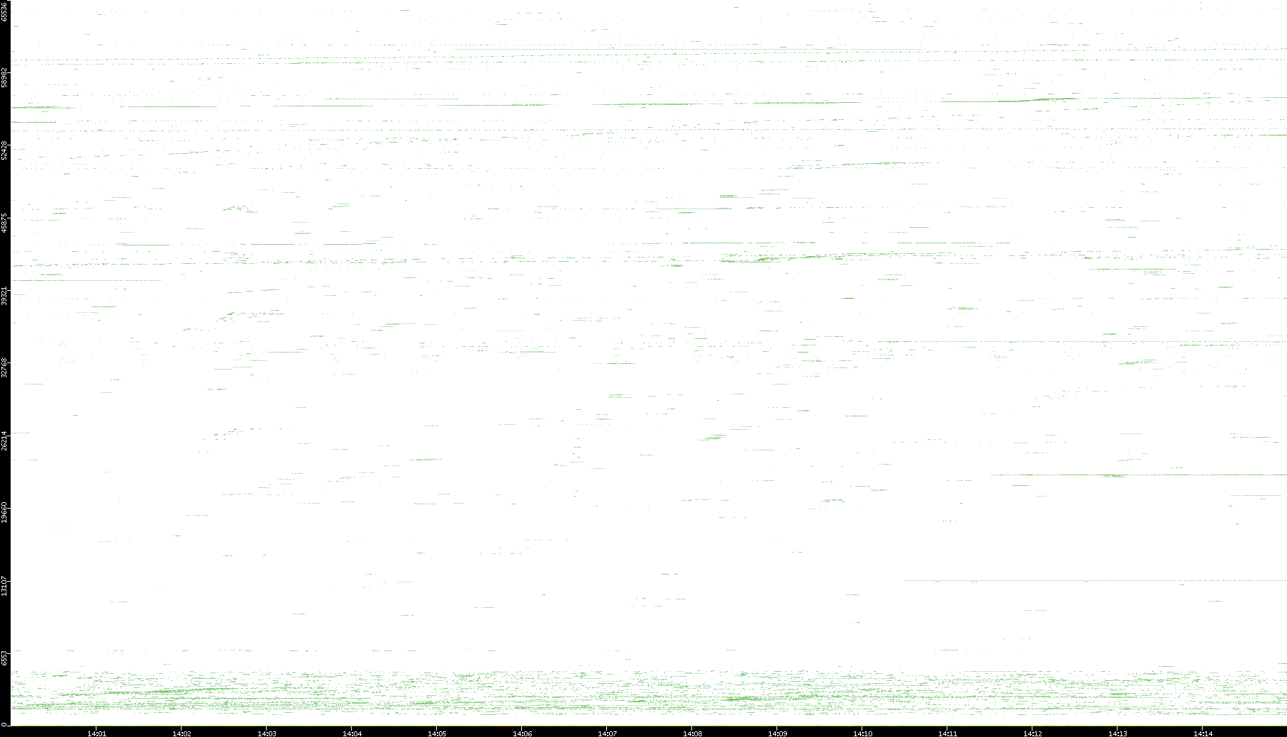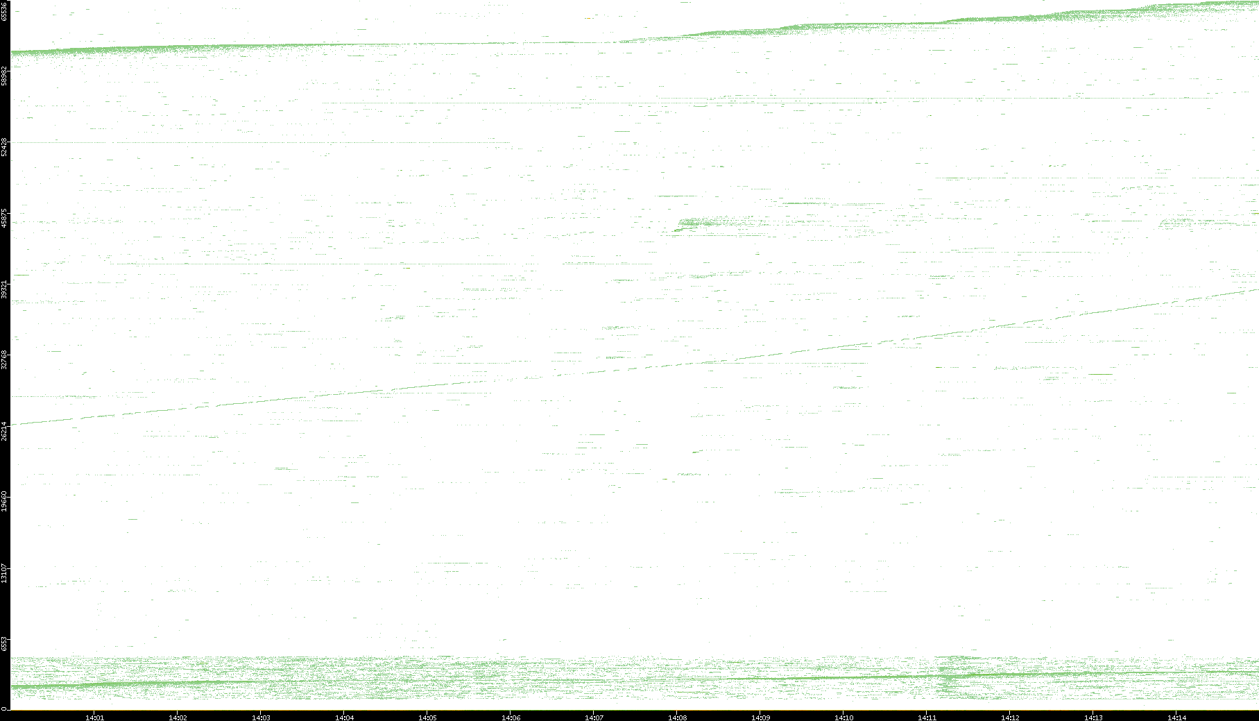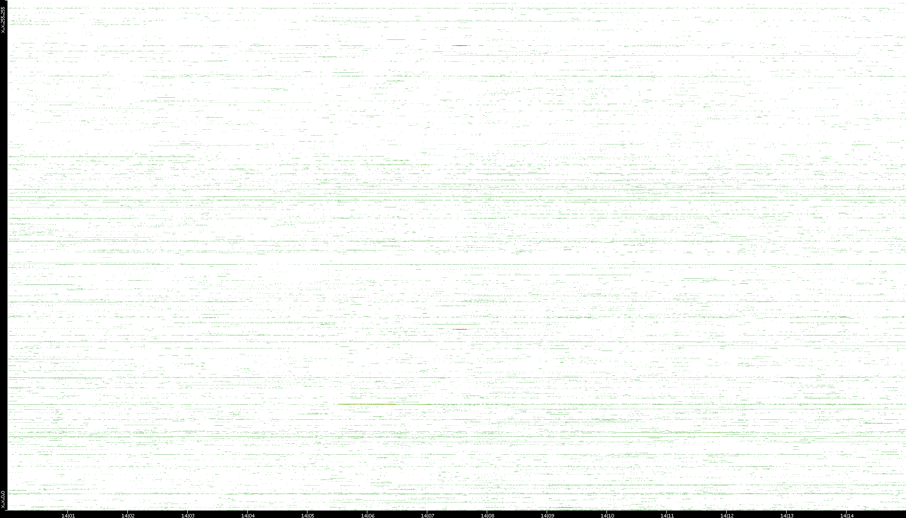 | Date | Dest. IP vs. Time | Dest. Port vs. Time | Src. IP vs. Time | Src. Port vs. Time | Nb. of Packets vs. Time | Throughput vs. Time | Average Packet Size vs. Time | Entropy of Port vs. Time |