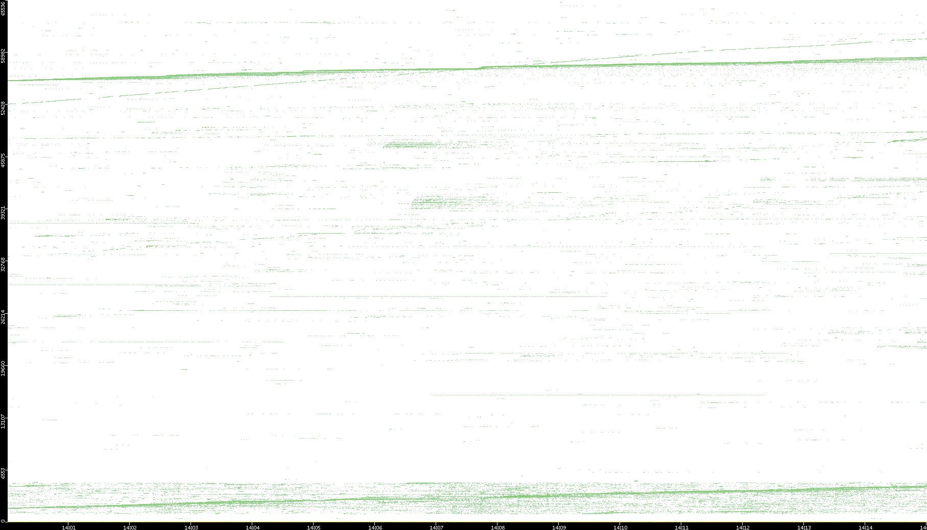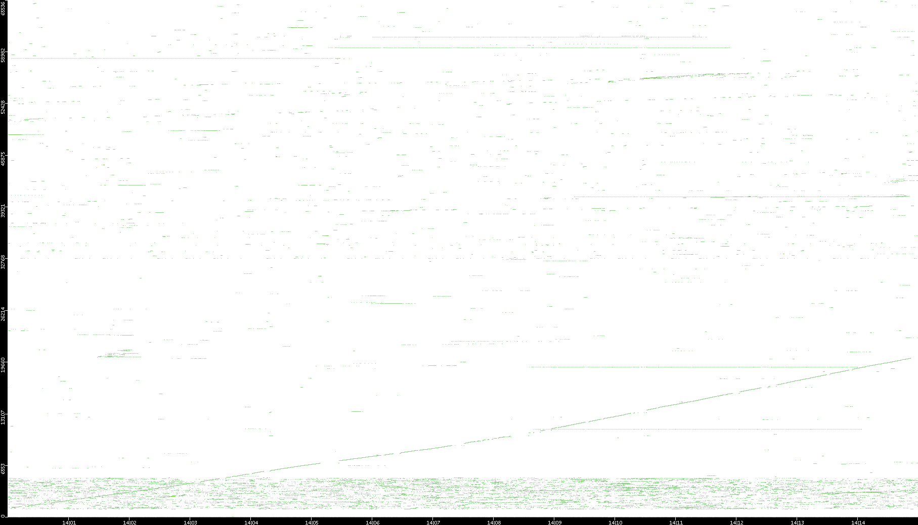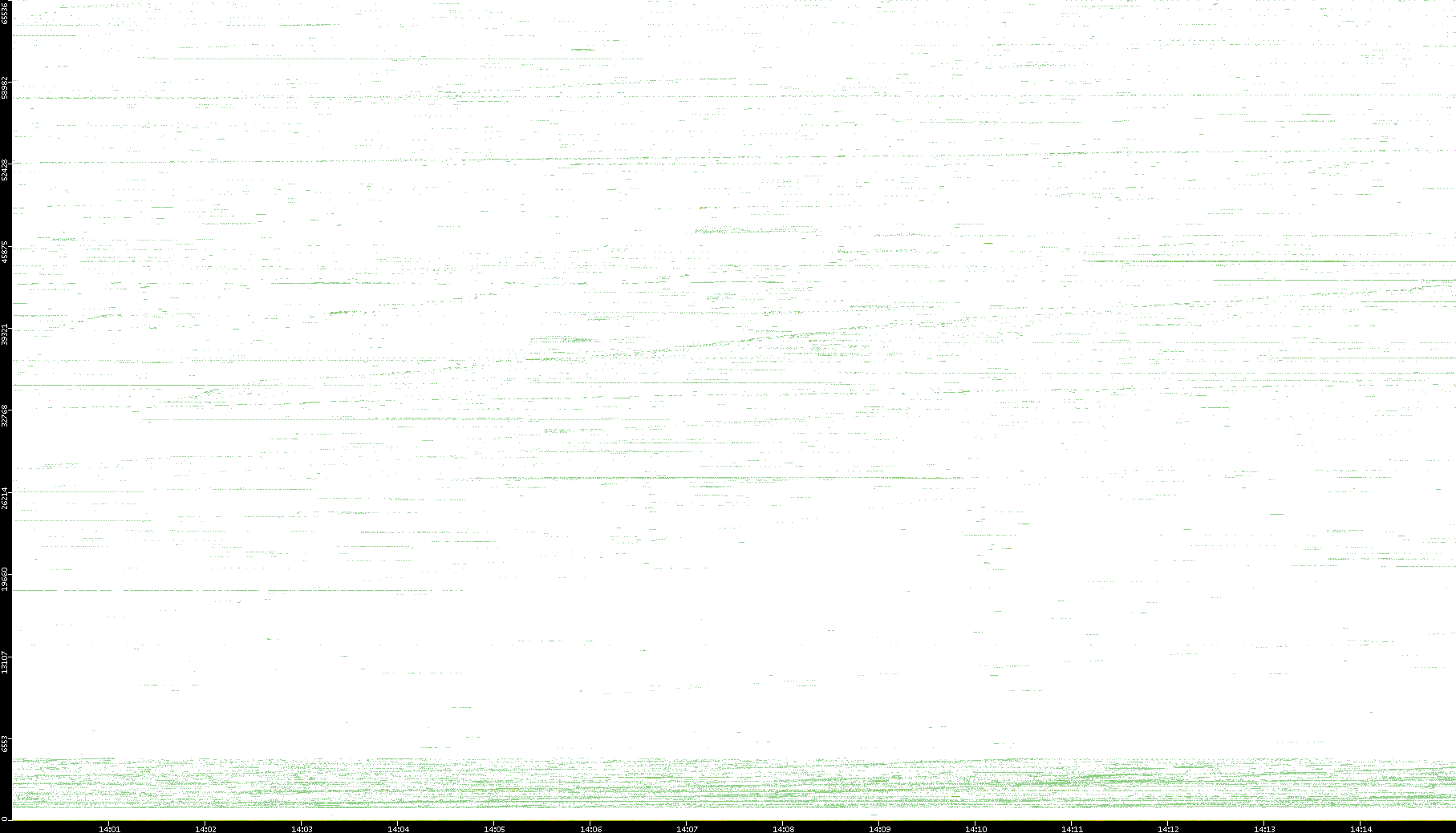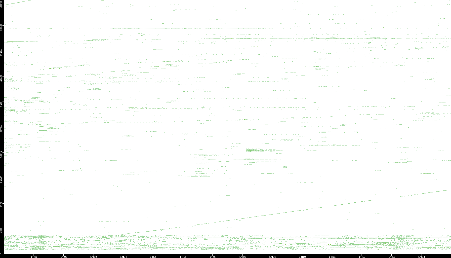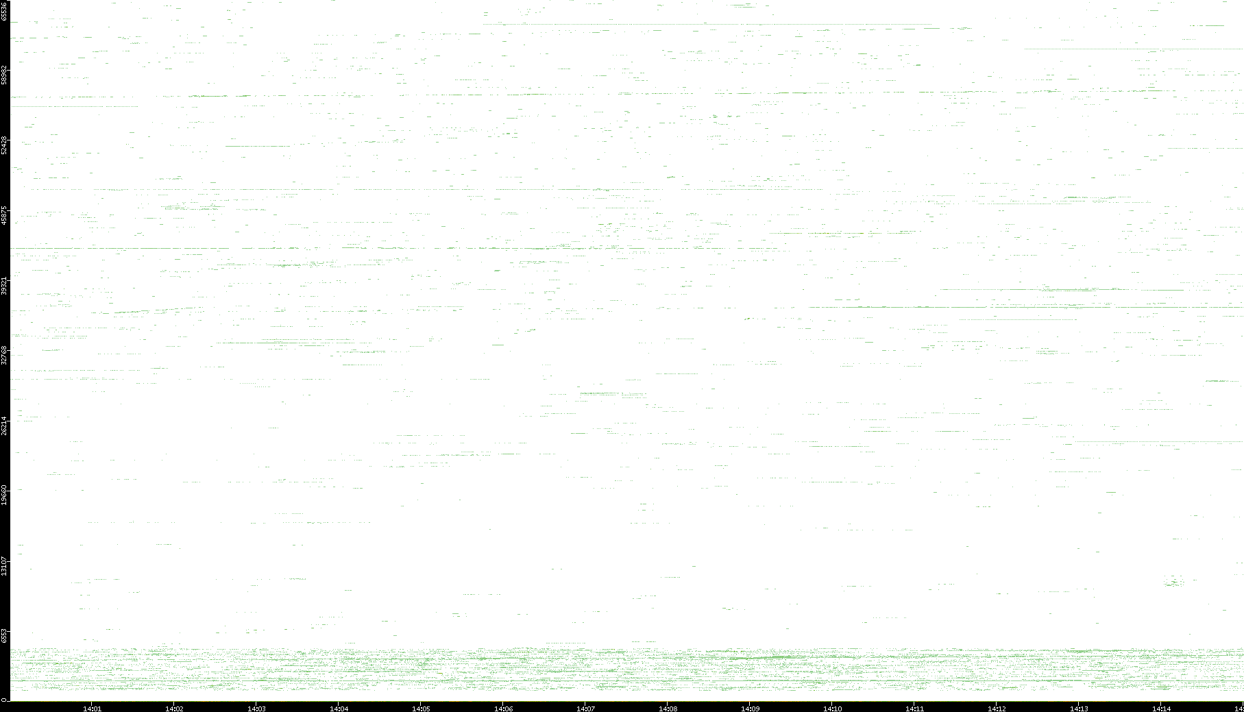 | Date | Dest. IP vs. Time | Dest. Port vs. Time | Src. IP vs. Time | Src. Port vs. Time | Nb. of Packets vs. Time | Throughput vs. Time | Average Packet Size vs. Time | Entropy of Port vs. Time |