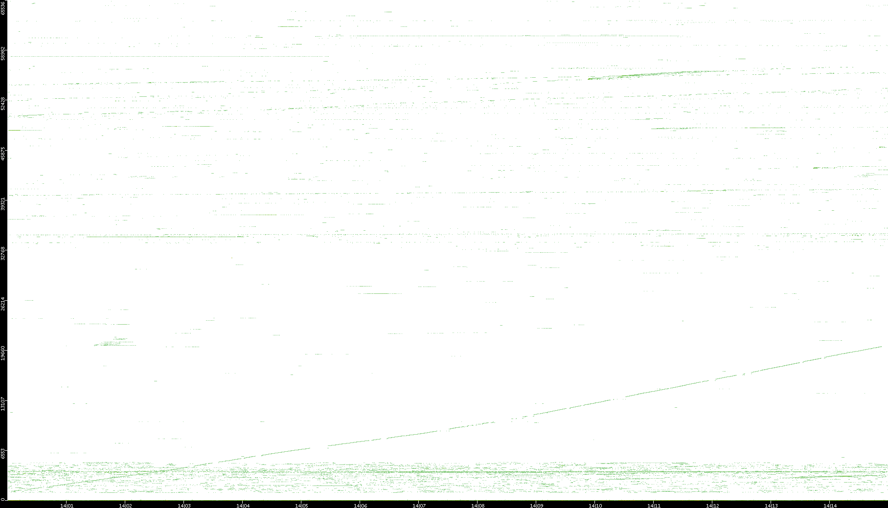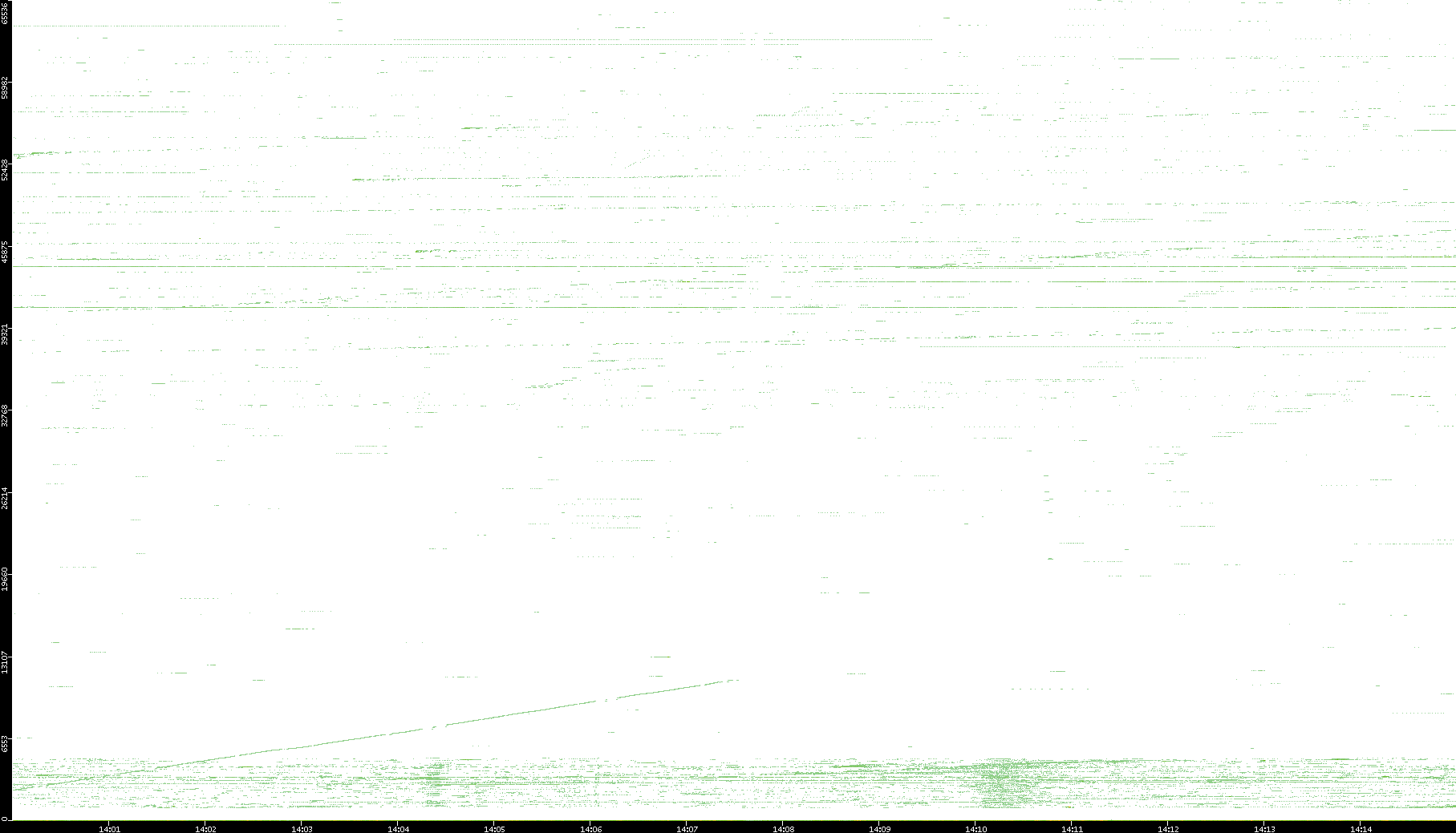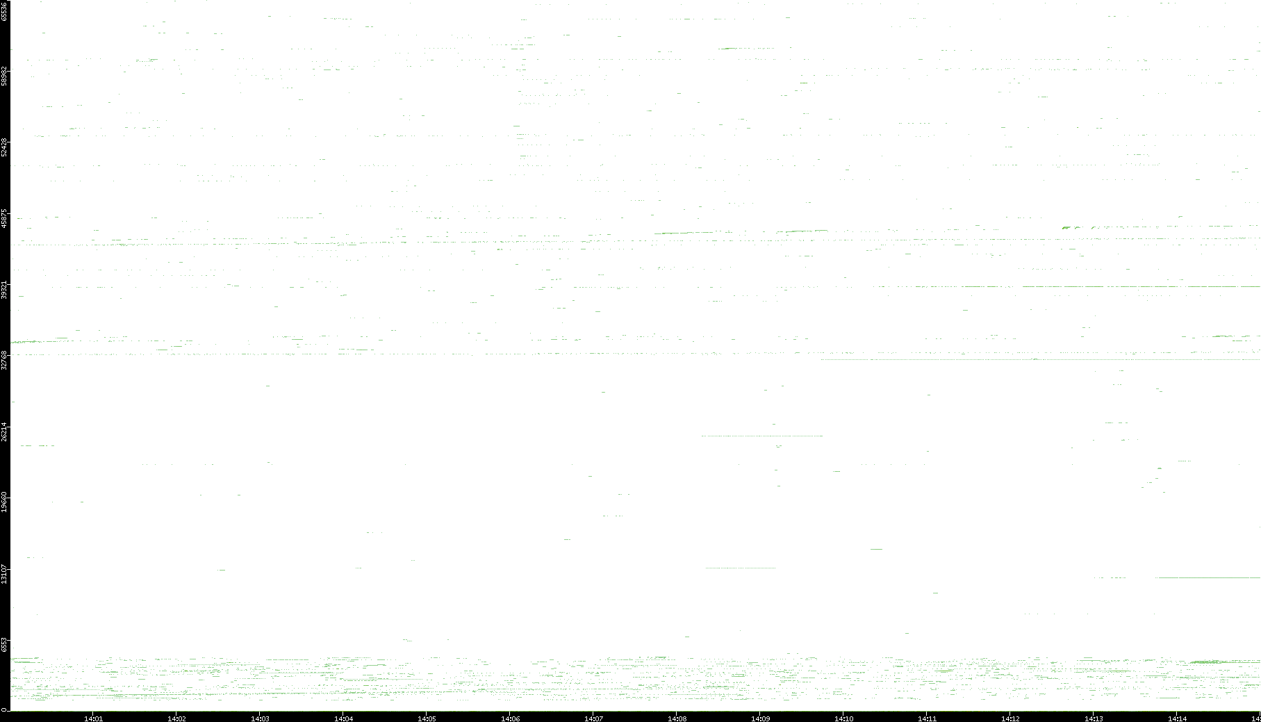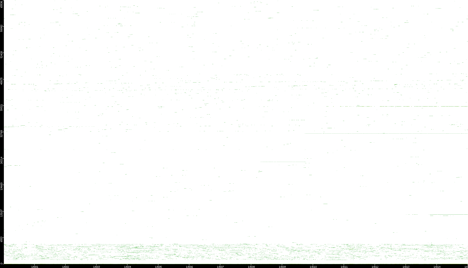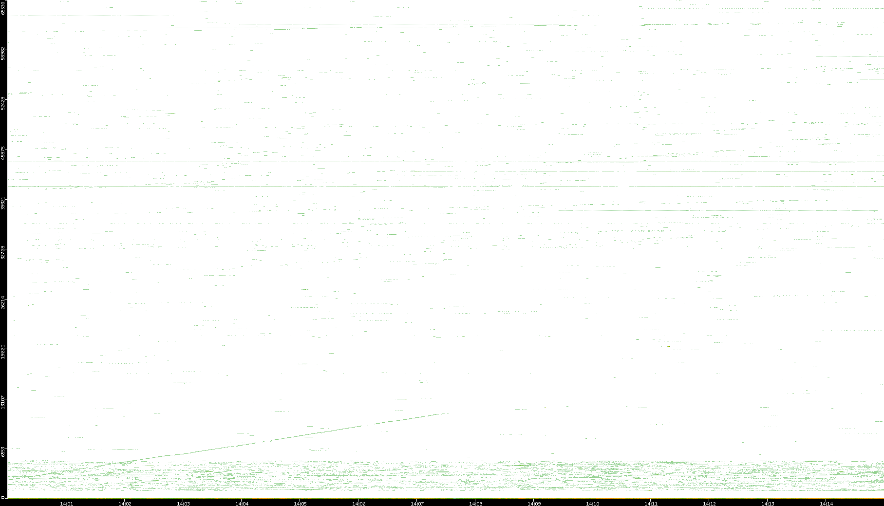 | Date | Dest. IP vs. Time | Dest. Port vs. Time | Src. IP vs. Time | Src. Port vs. Time | Nb. of Packets vs. Time | Throughput vs. Time | Average Packet Size vs. Time | Entropy of Port vs. Time |