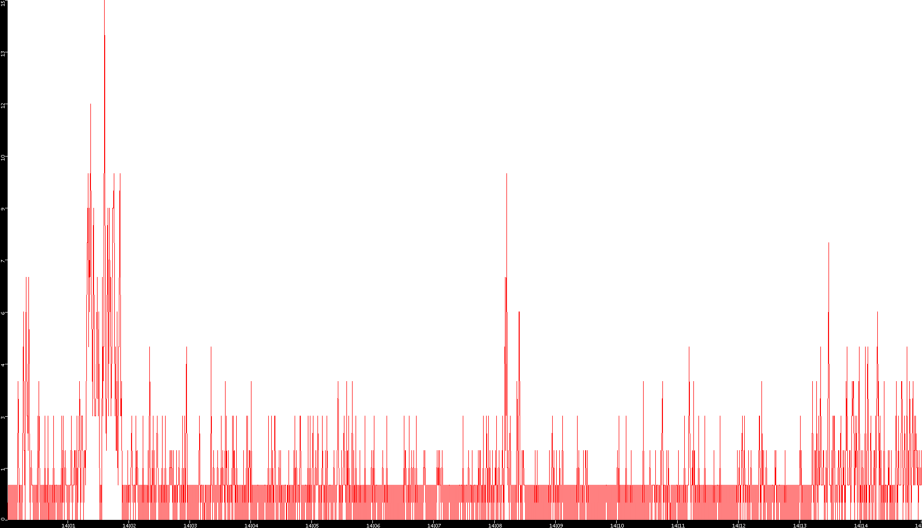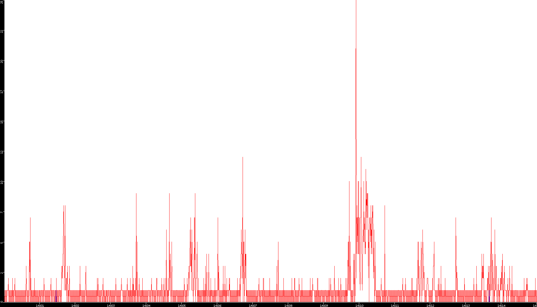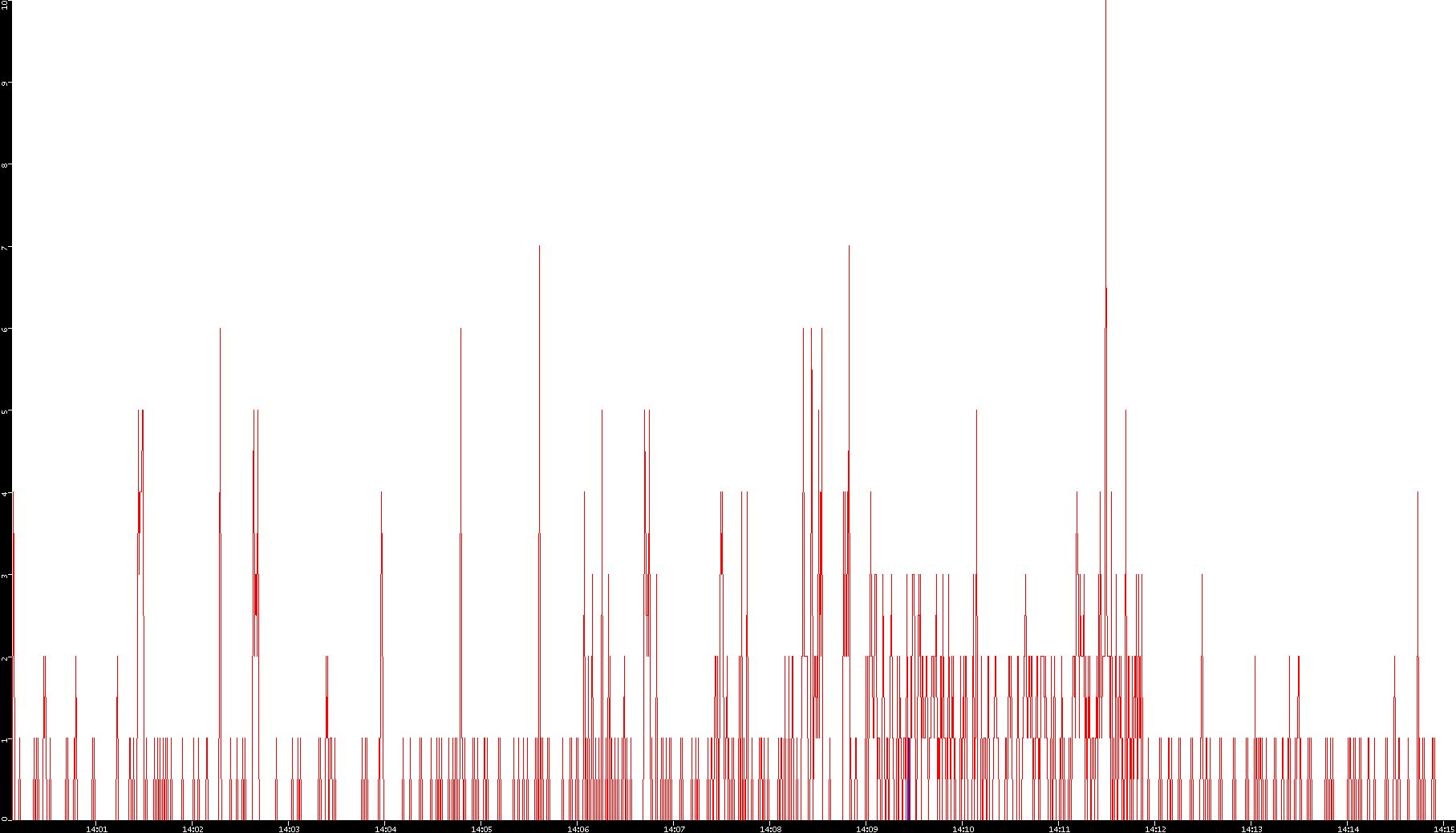 2005/01/14 Dest. IP vs. Time Dest. Port vs. Time Src. IP vs. Time Src. Port vs. Time Nb. of Packets vs. Time Throughput vs. Time Average Packet Size vs. Time Entropy of Port vs. Time