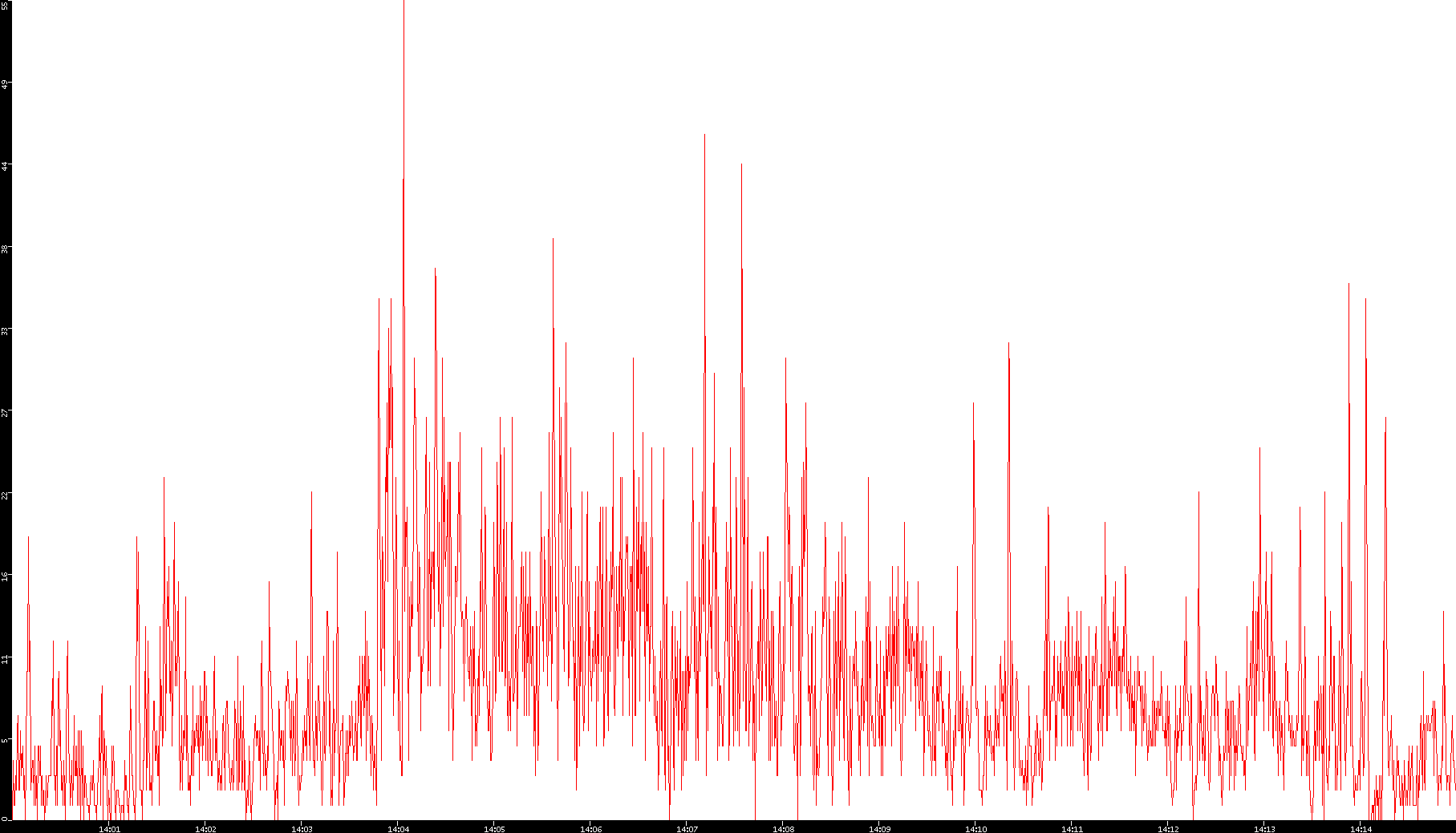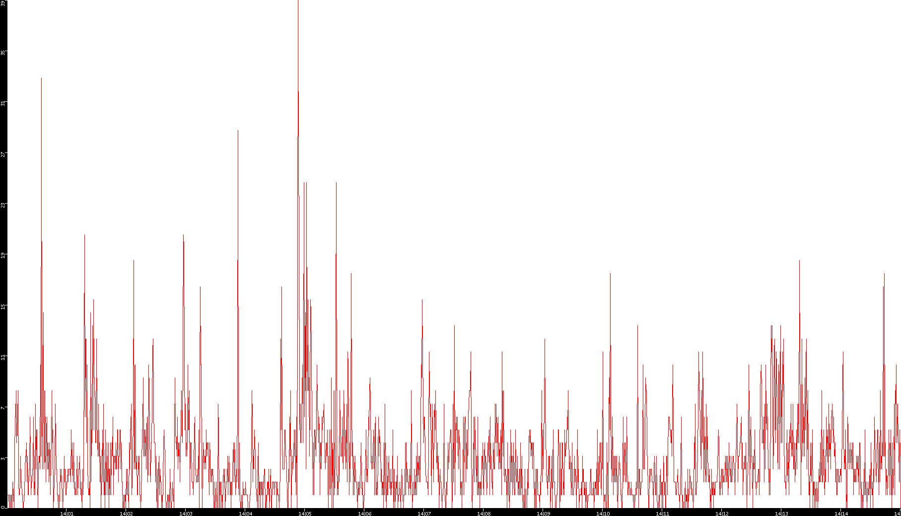 2005/04/13 Dest. IP vs. Time Dest. Port vs. Time Src. IP vs. Time Src. Port vs. Time Nb. of Packets vs. Time Throughput vs. Time Average Packet Size vs. Time Entropy of Port vs. Time