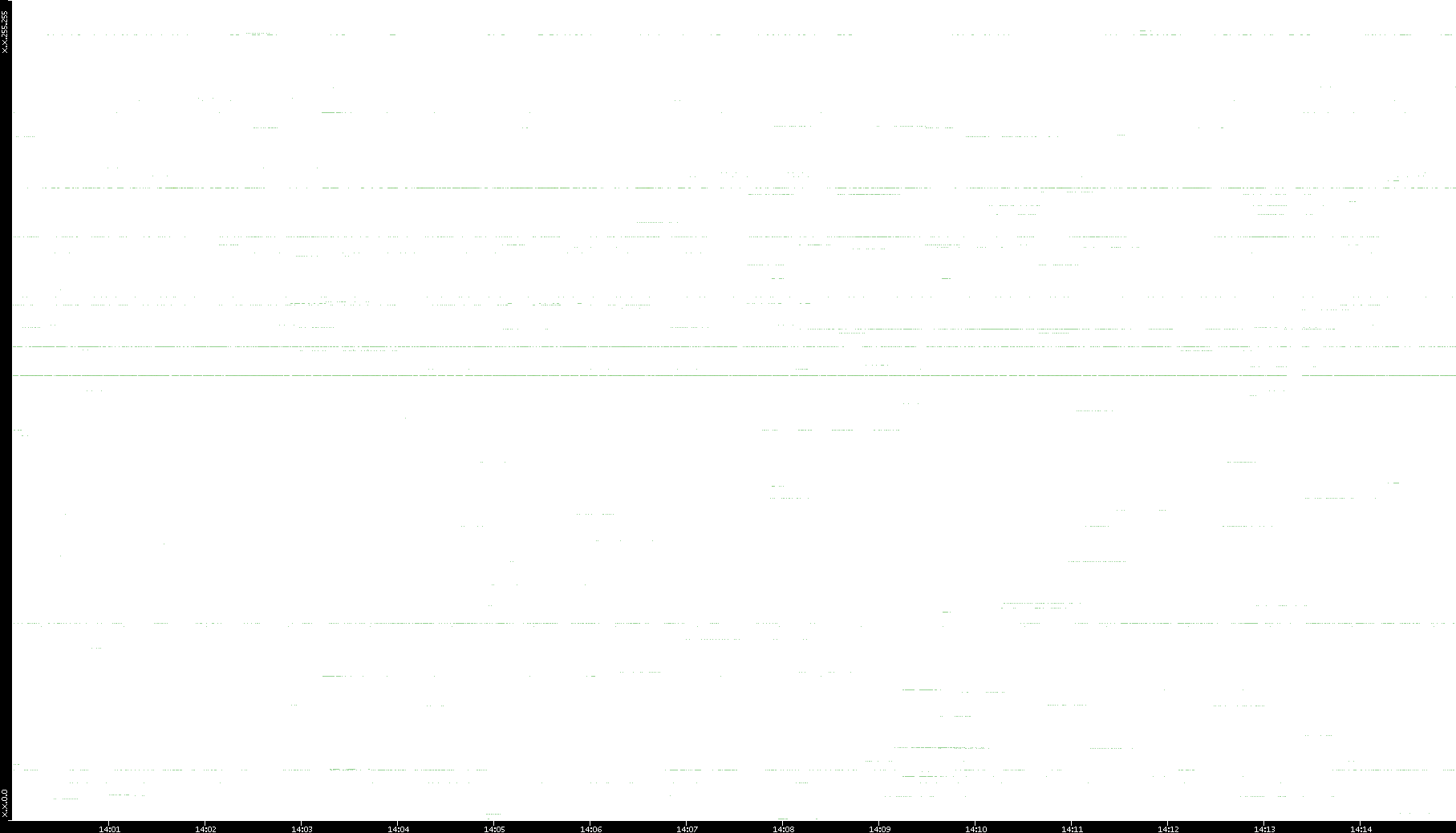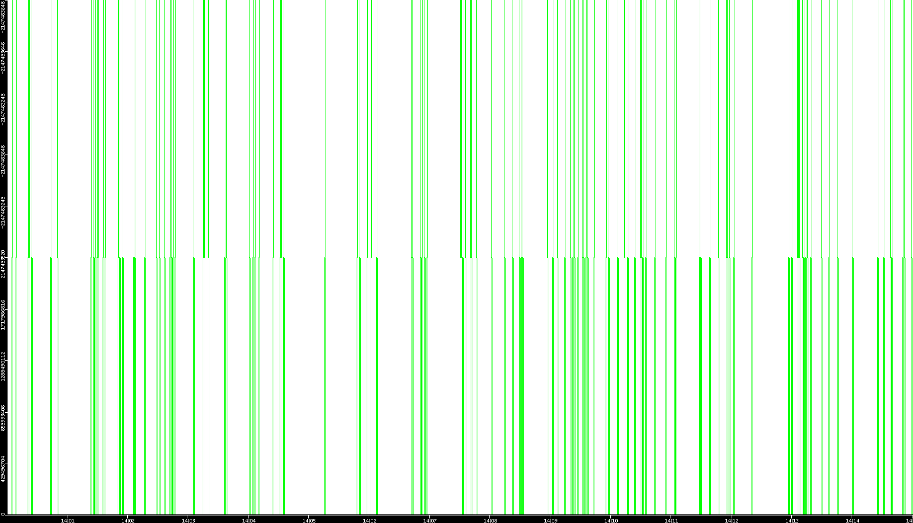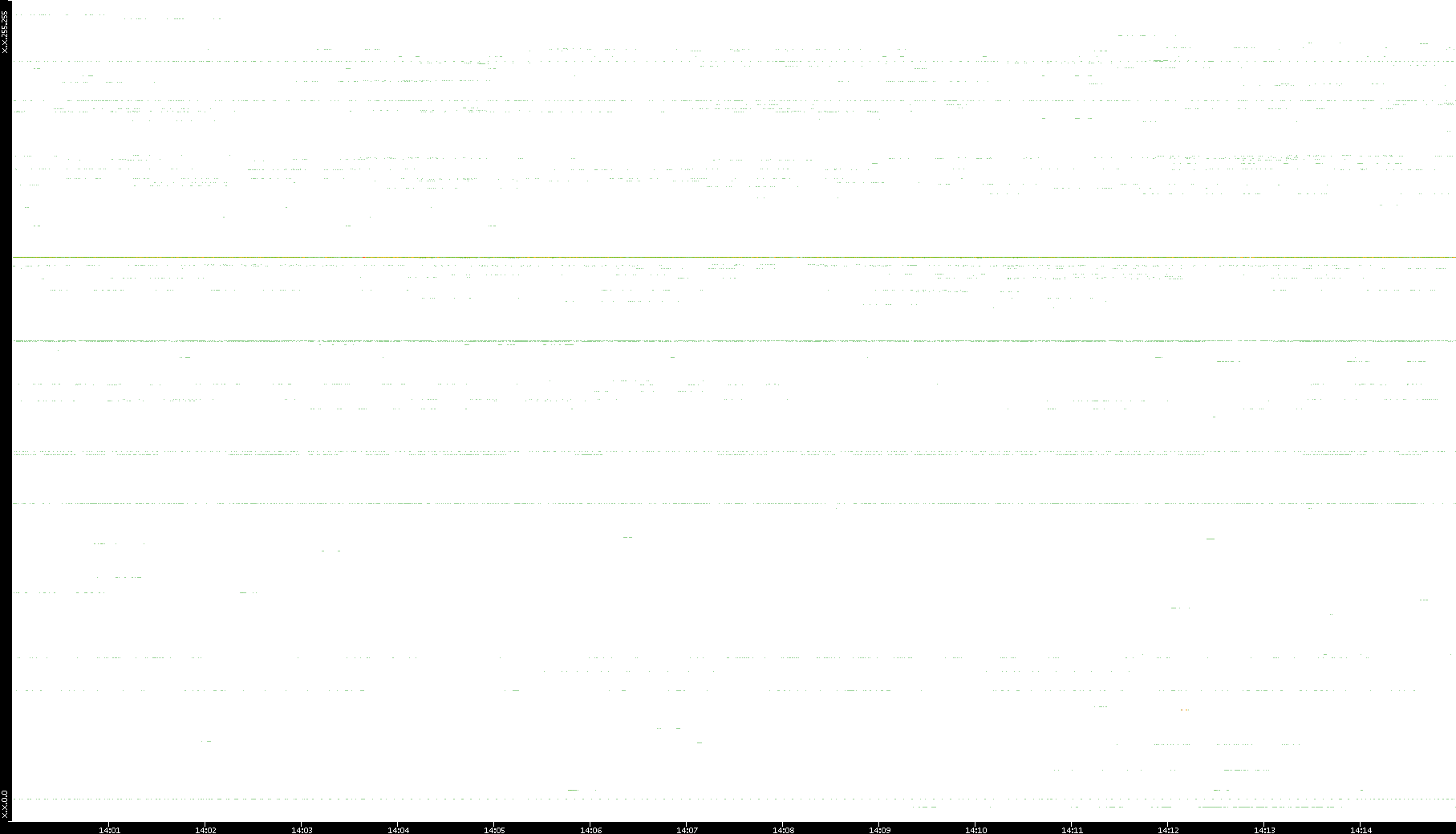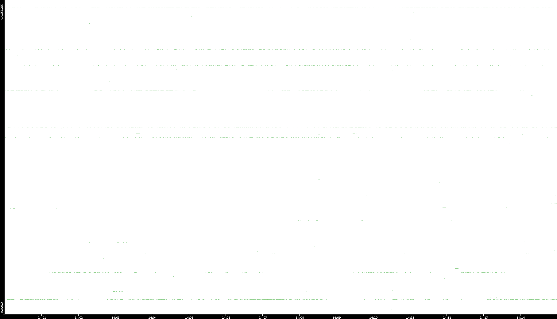 2005/04/14 Dest. IP vs. Time Dest. Port vs. Time Src. IP vs. Time Src. Port vs. Time Nb. of Packets vs. Time Throughput vs. Time Average Packet Size vs. Time Entropy of Port vs. Time
