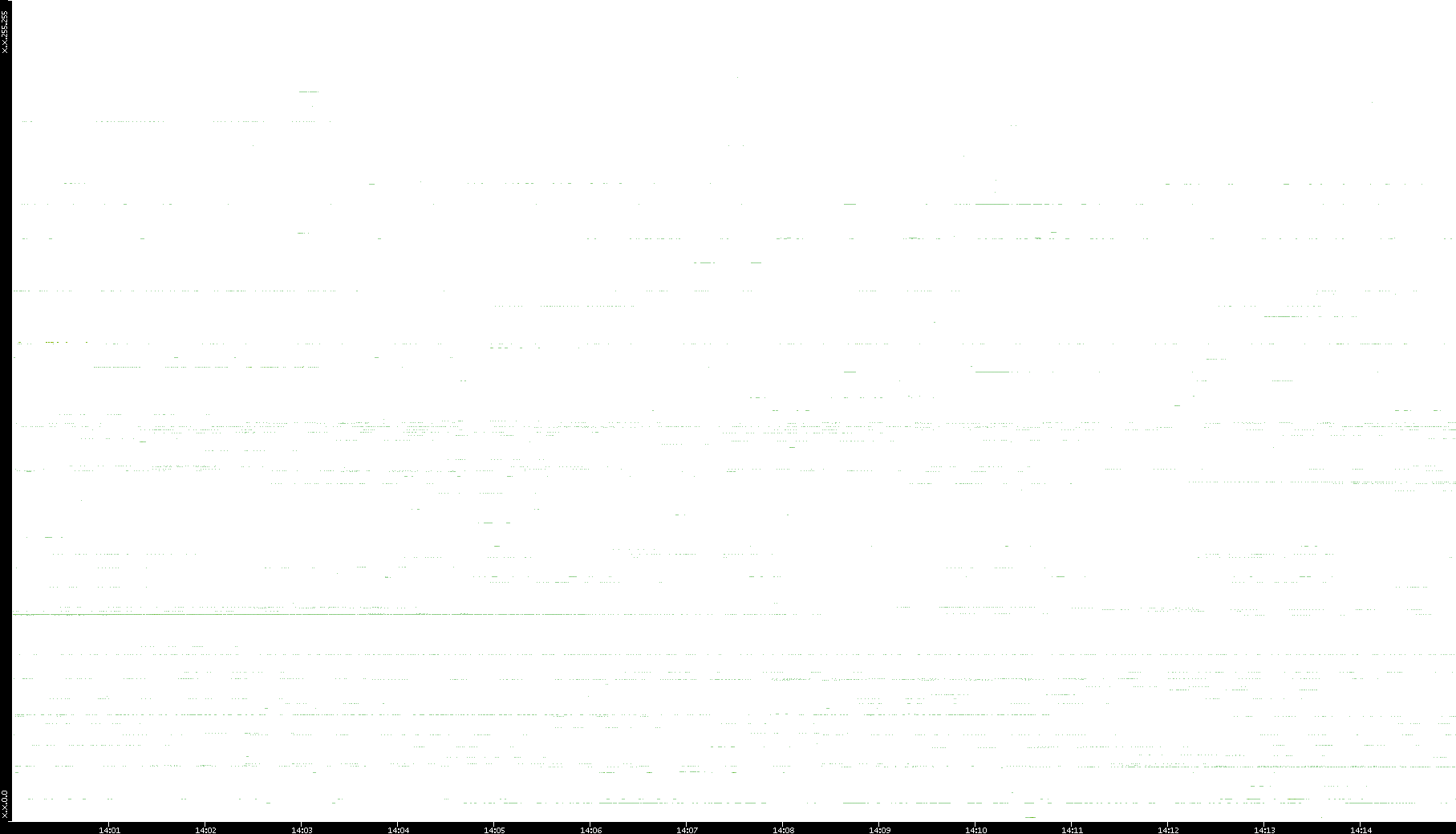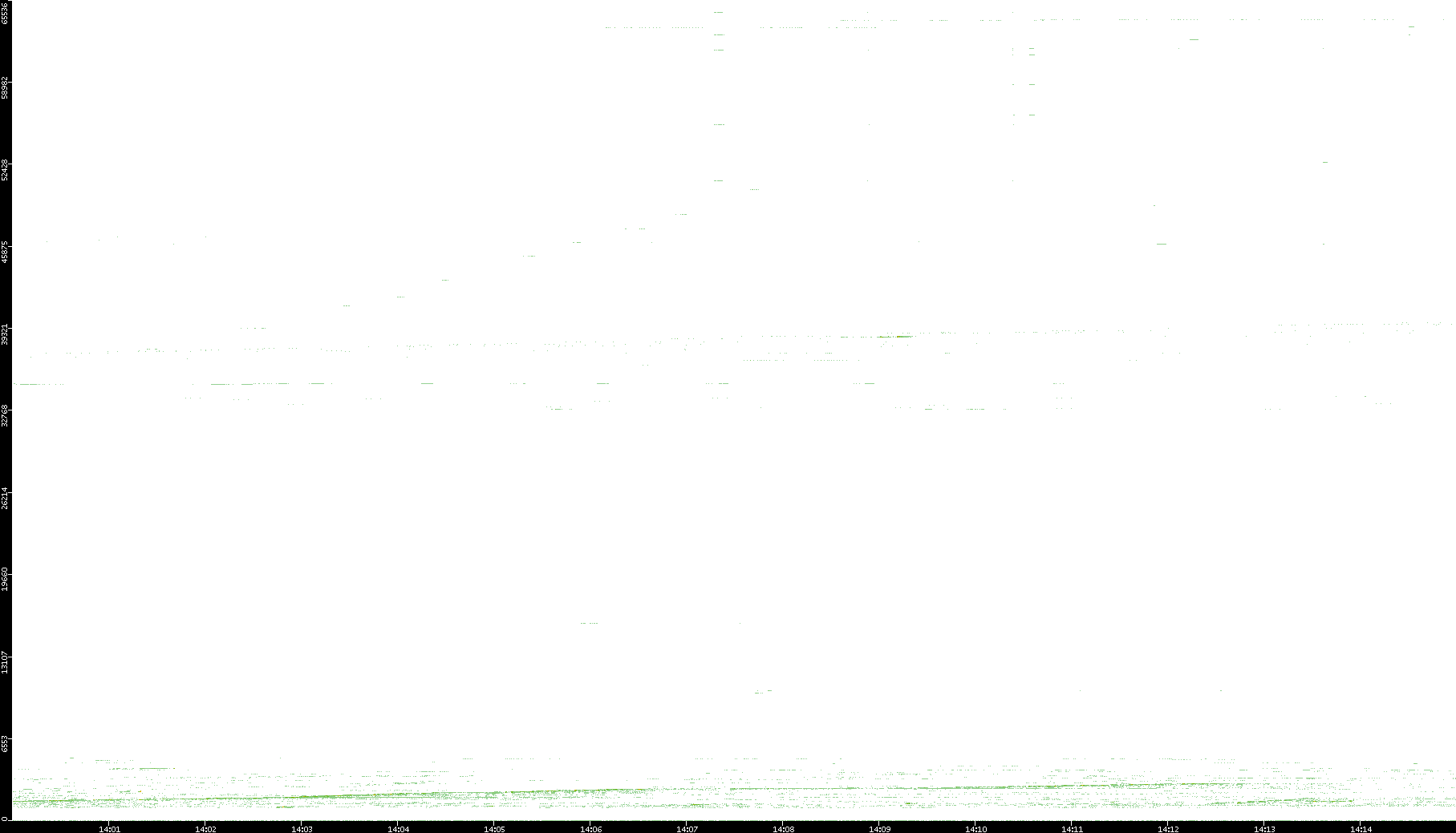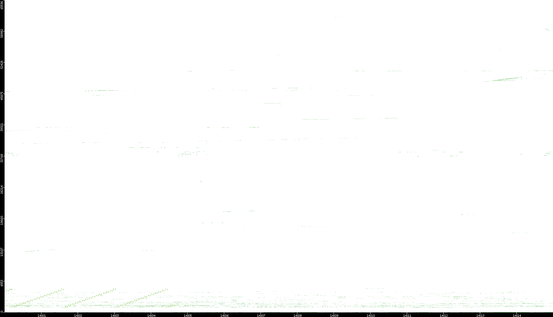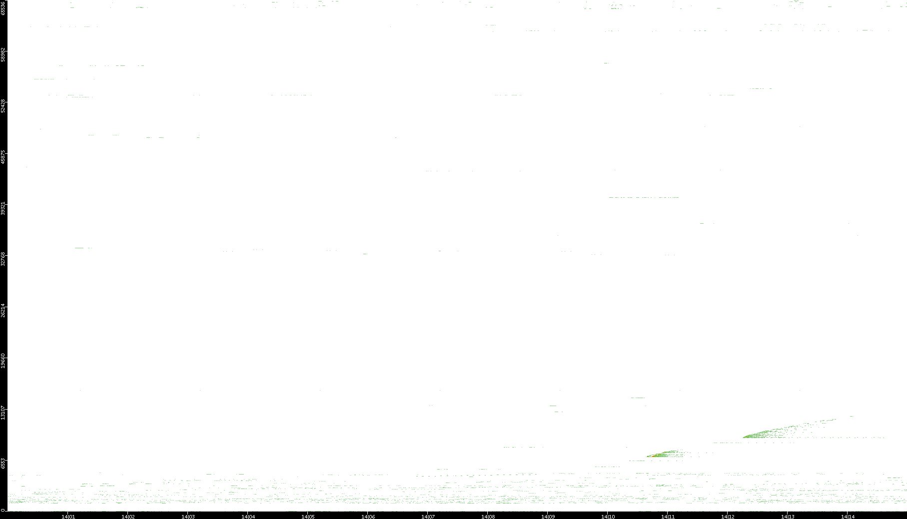 2005/04/14 Dest. IP vs. Time Dest. Port vs. Time Src. IP vs. Time Src. Port vs. Time Nb. of Packets vs. Time Throughput vs. Time Average Packet Size vs. Time Entropy of Port vs. Time