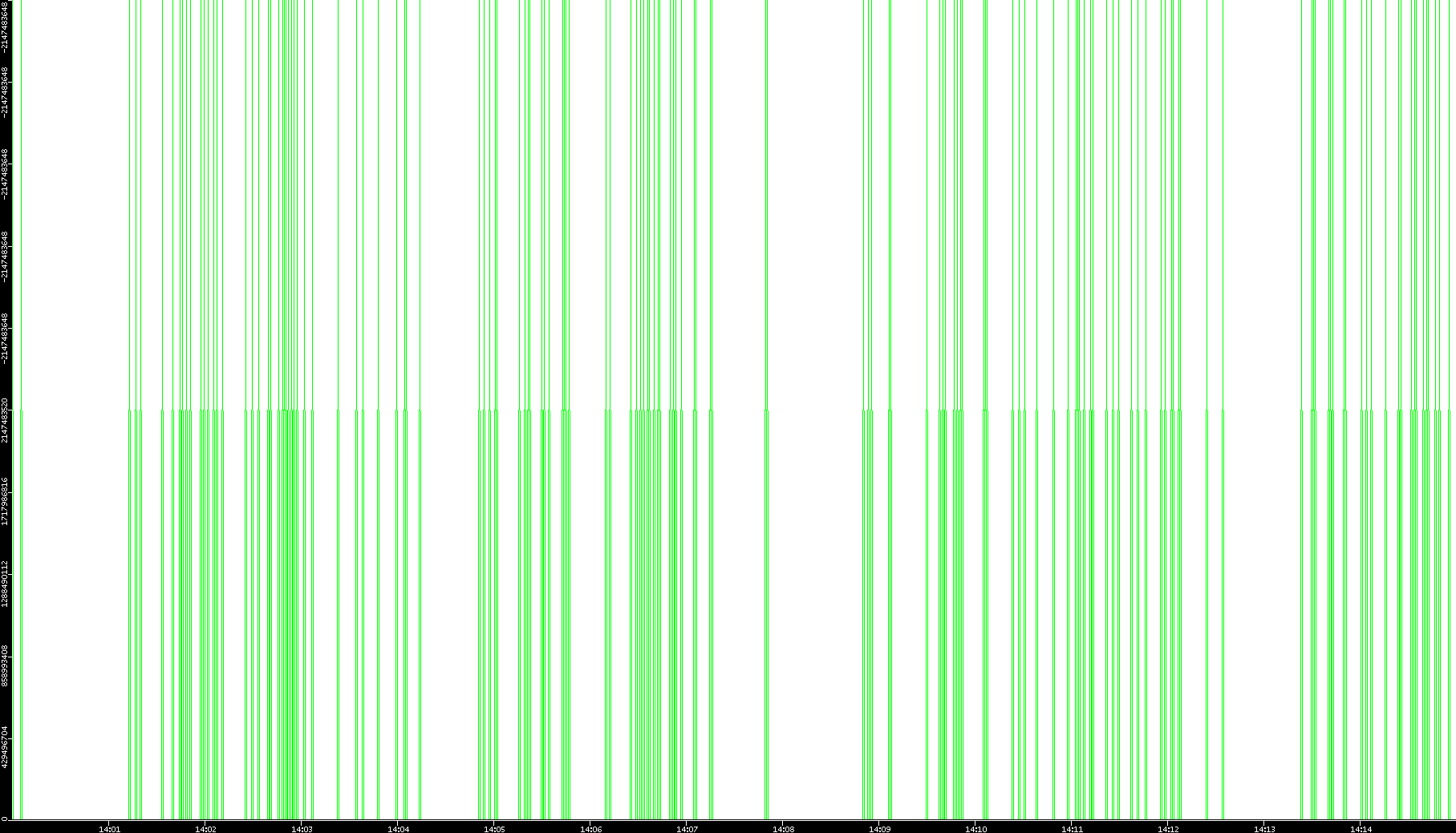 2005/04/11 Dest. IP vs. Time Dest. Port vs. Time Src. IP vs. Time Src. Port vs. Time Nb. of Packets vs. Time Throughput vs. Time Average Packet Size vs. Time Entropy of Port vs. Time