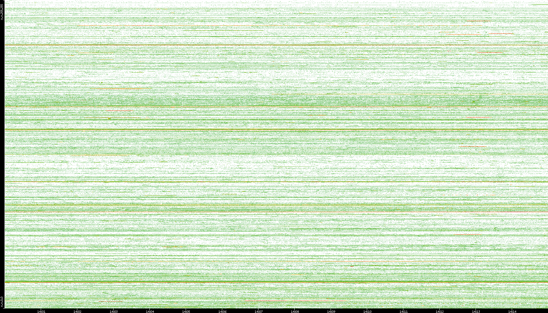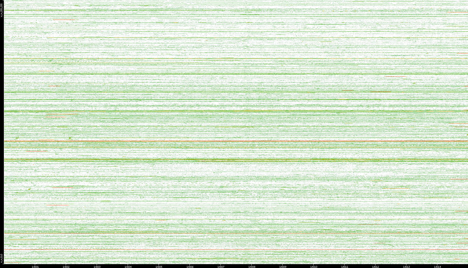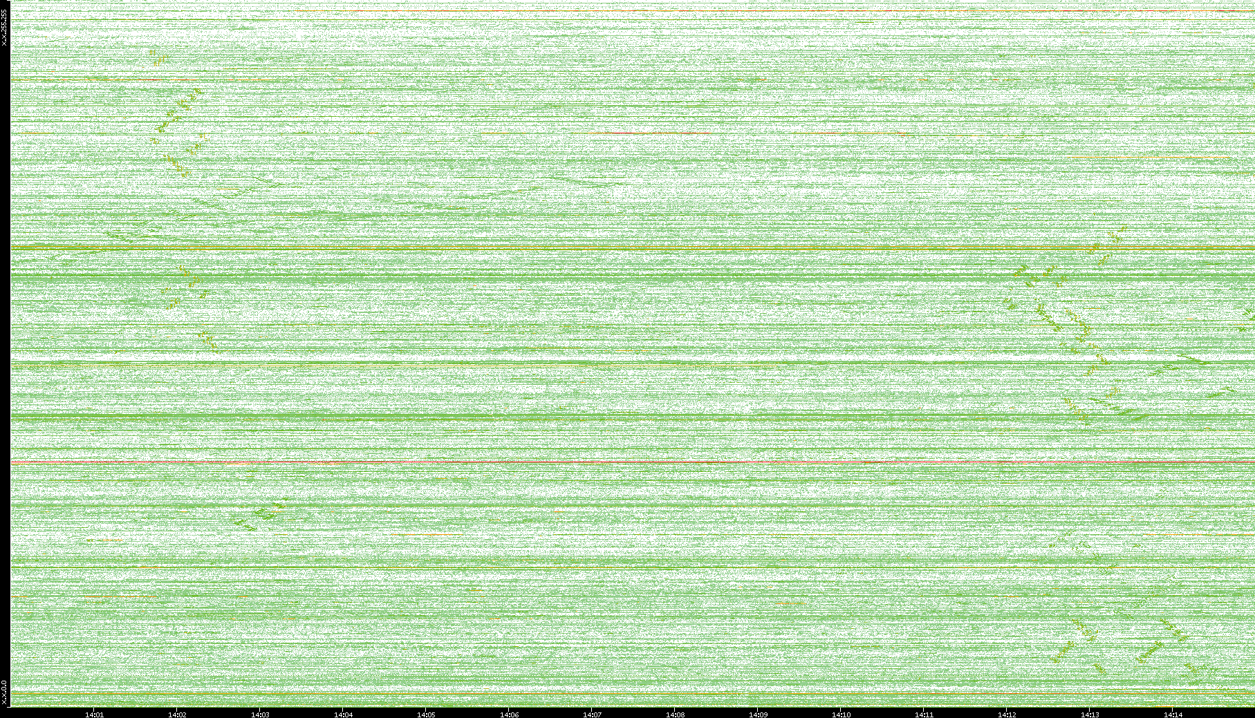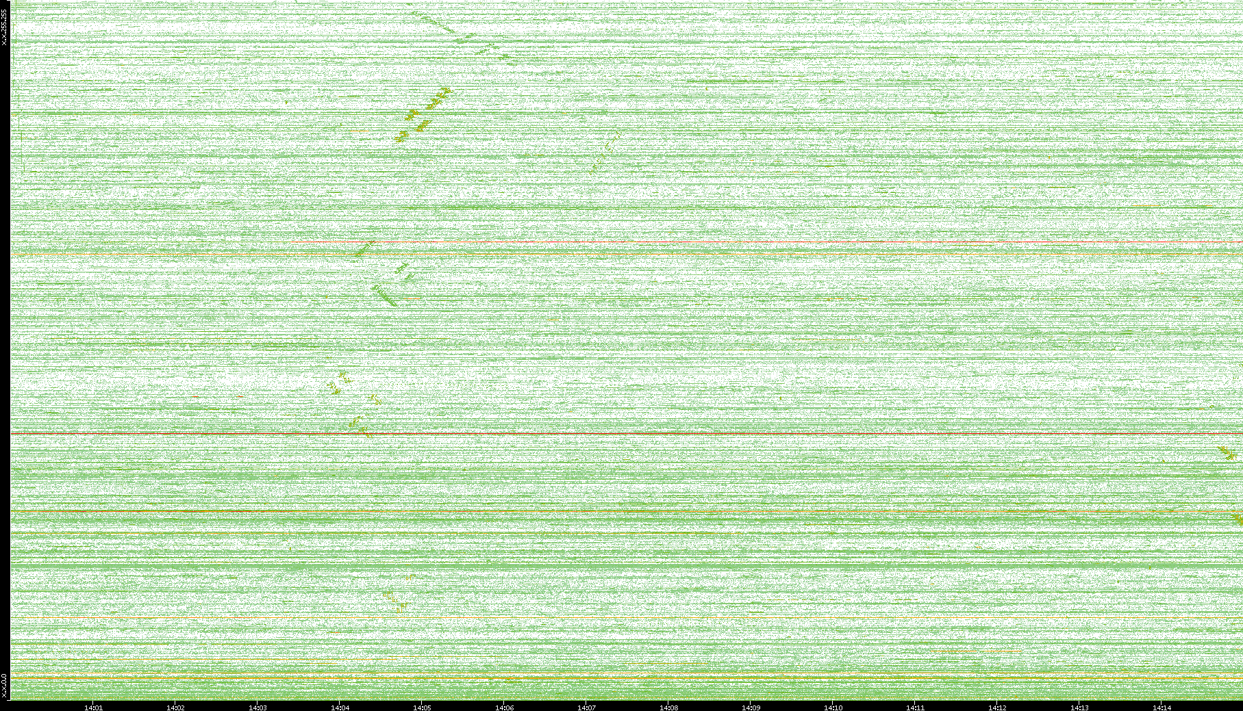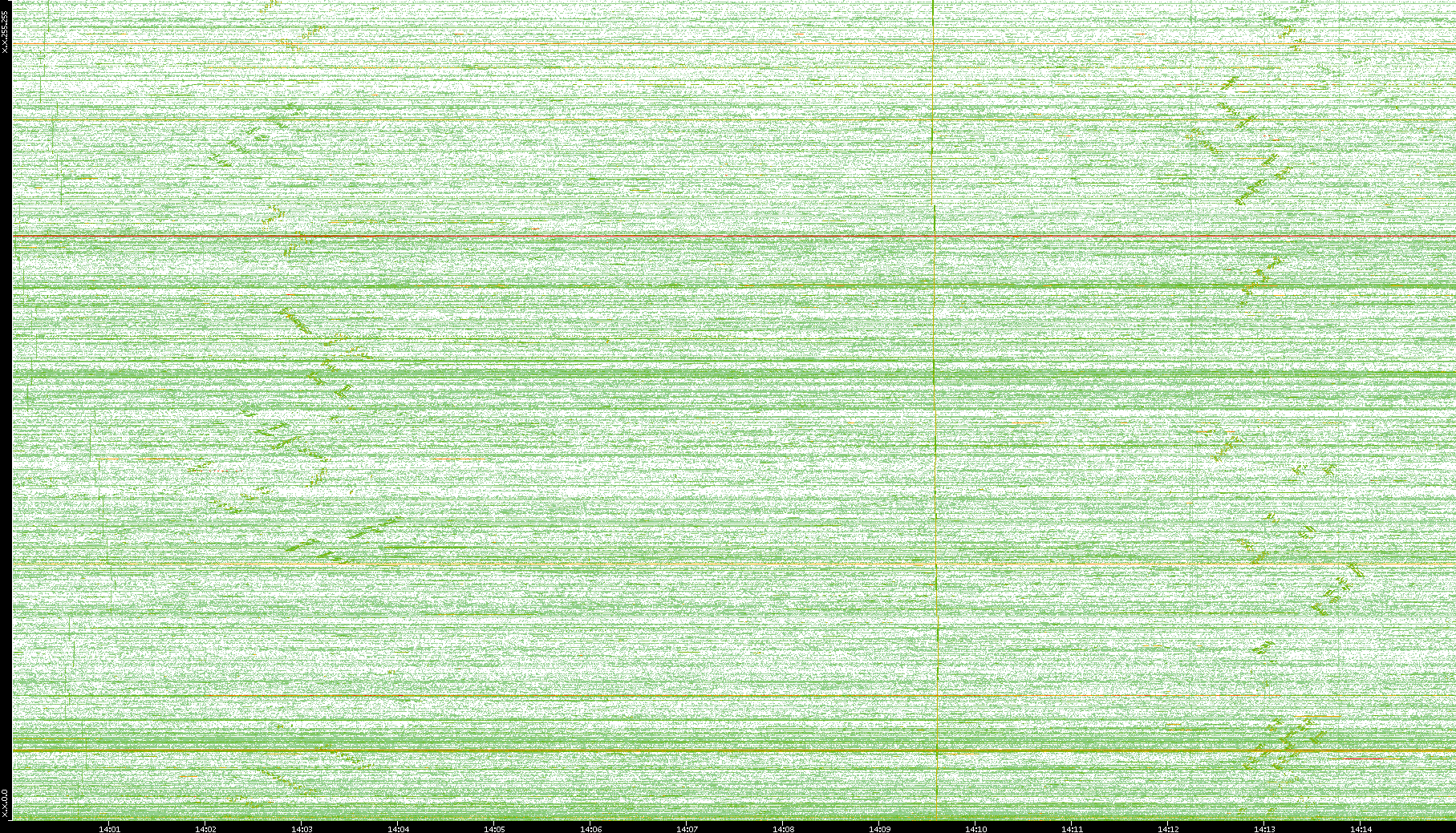 | Date | Dest. IP vs. Time | Dest. Port vs. Time | Src. IP vs. Time | Src. Port vs. Time | Nb. of Packets vs. Time | Throughput vs. Time | Average Packet Size vs. Time | Entropy of Port vs. Time |