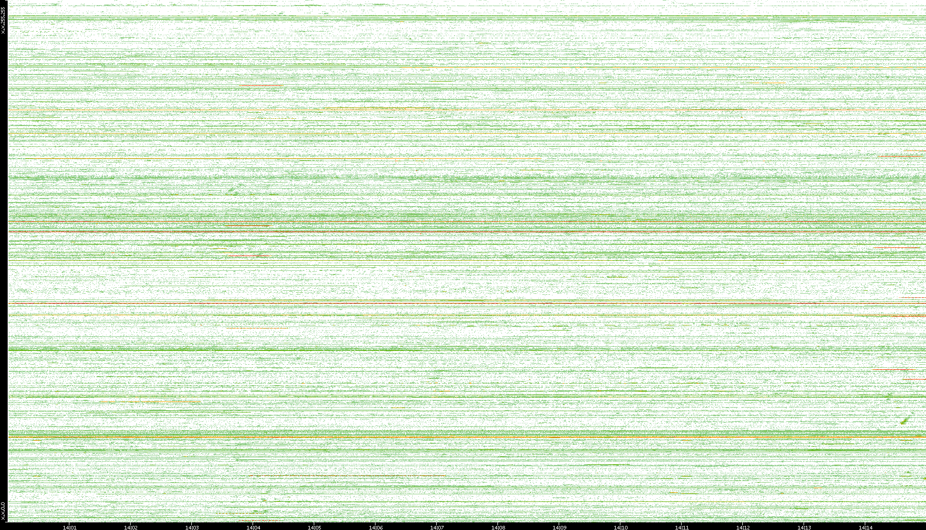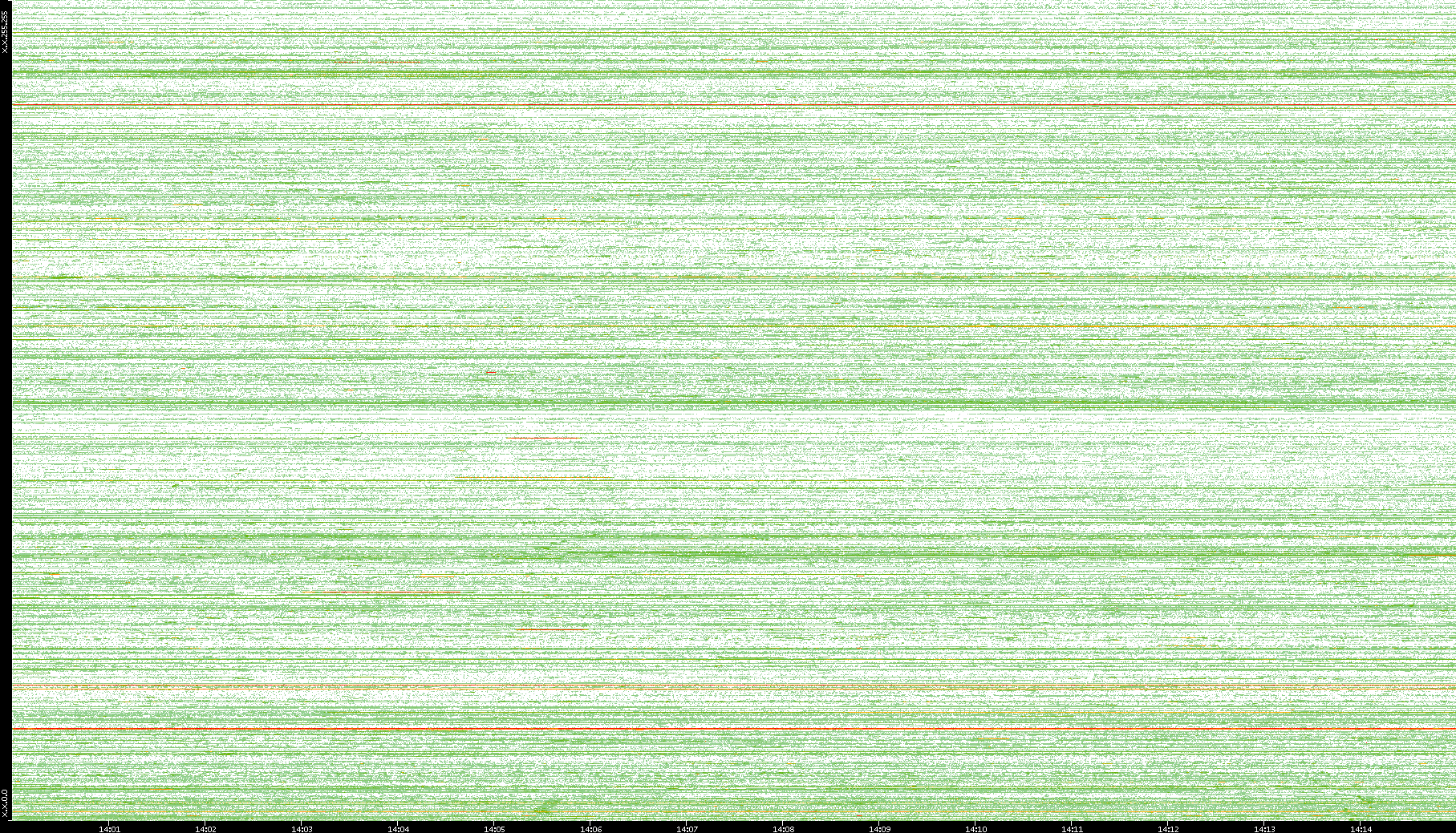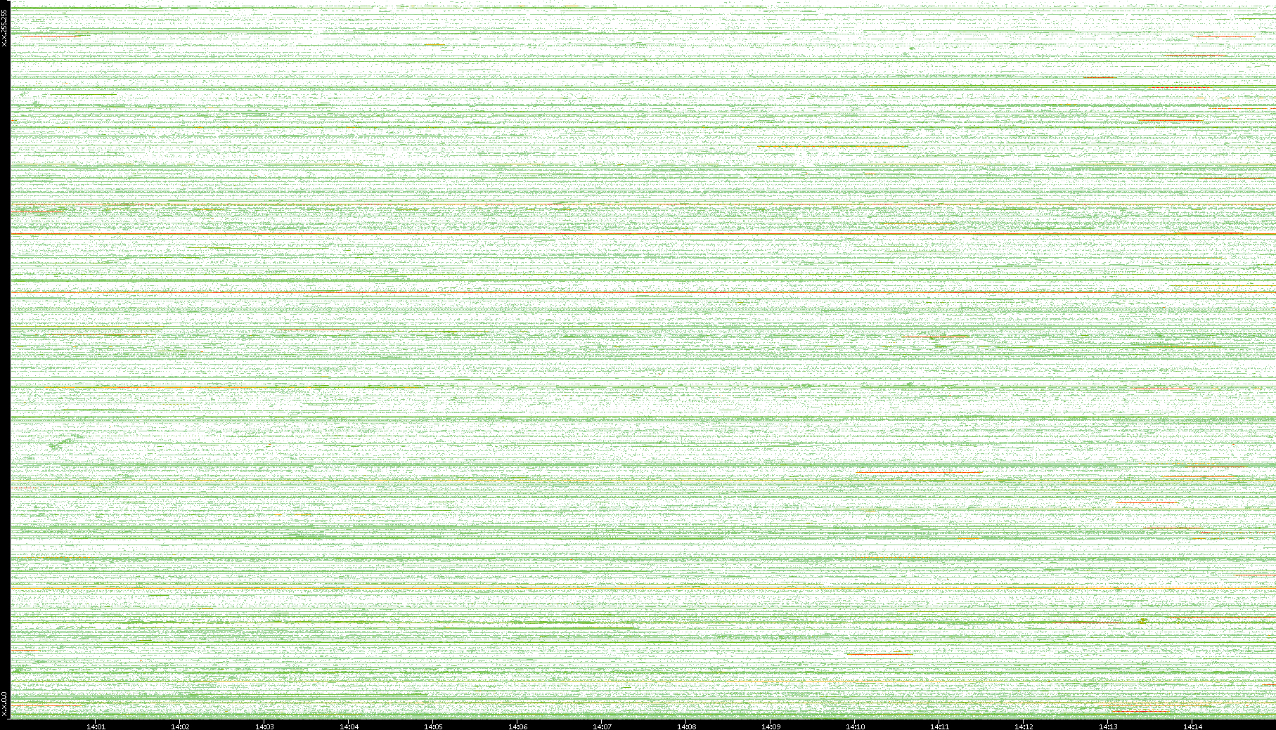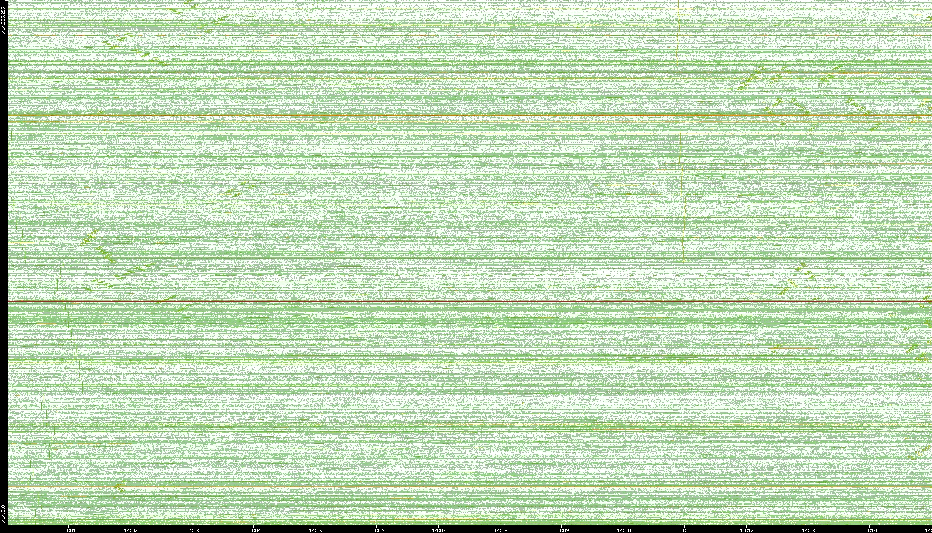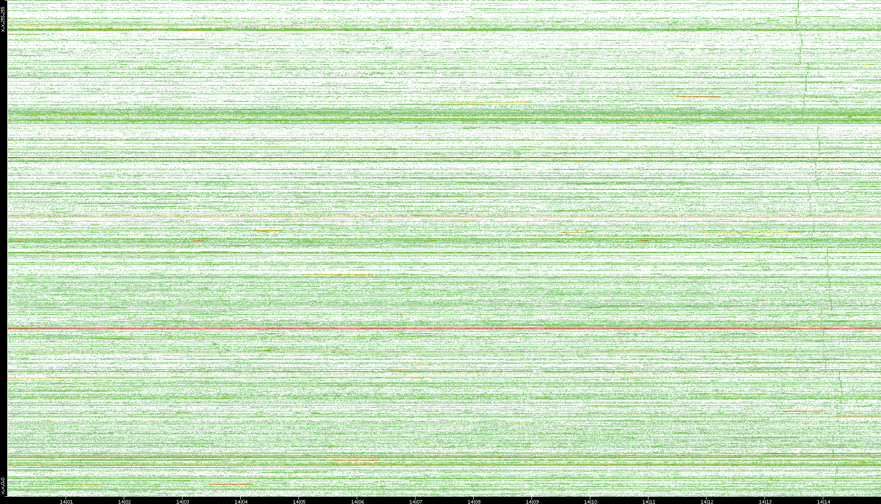 | Date | Dest. IP vs. Time | Dest. Port vs. Time | Src. IP vs. Time | Src. Port vs. Time | Nb. of Packets vs. Time | Throughput vs. Time | Average Packet Size vs. Time | Entropy of Port vs. Time |