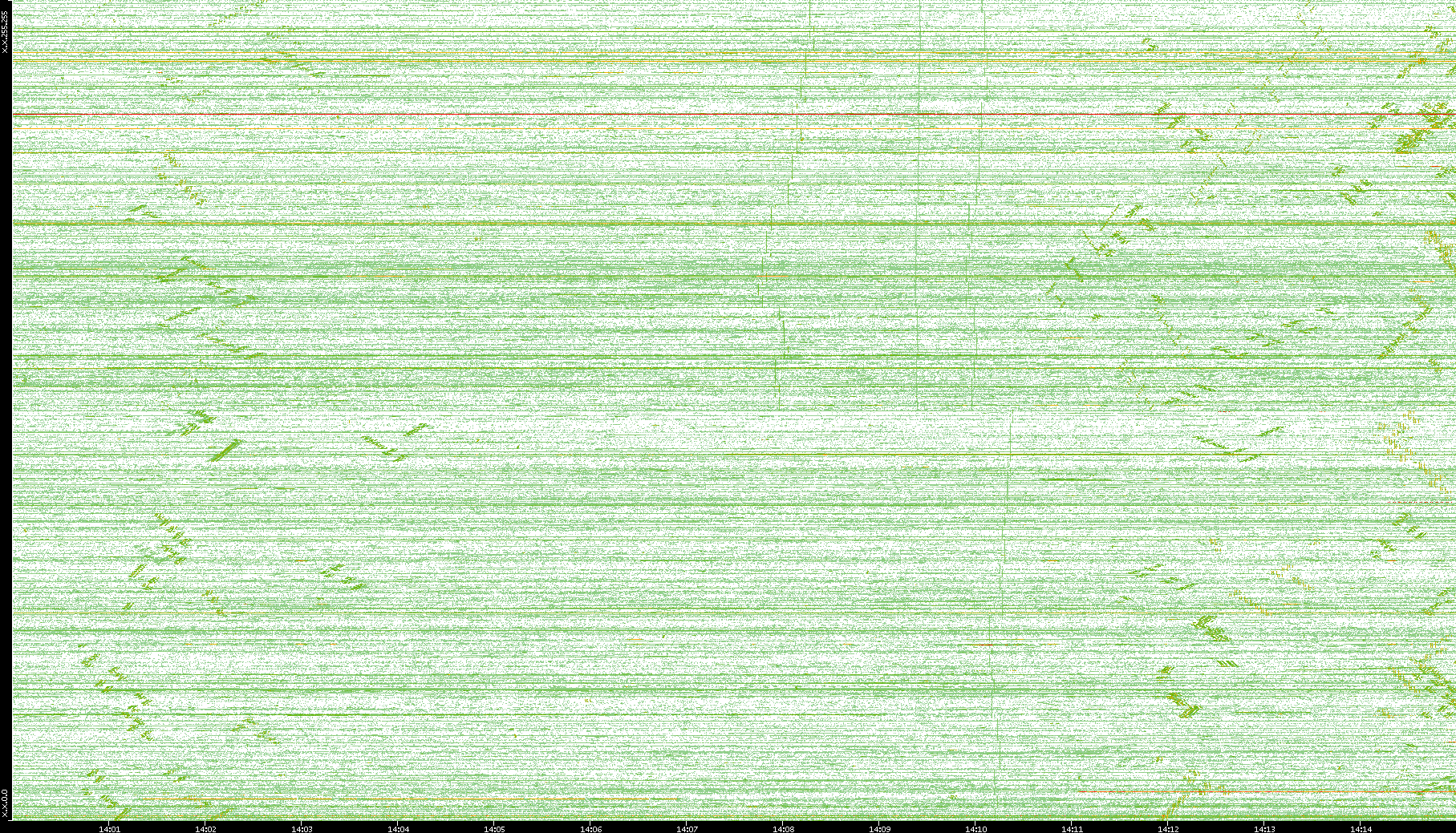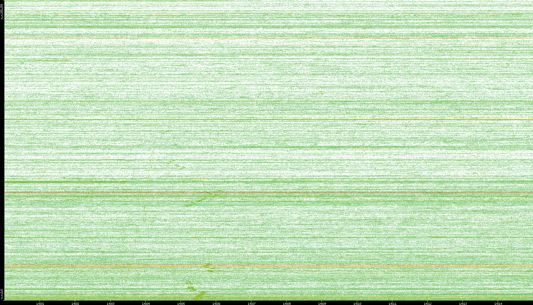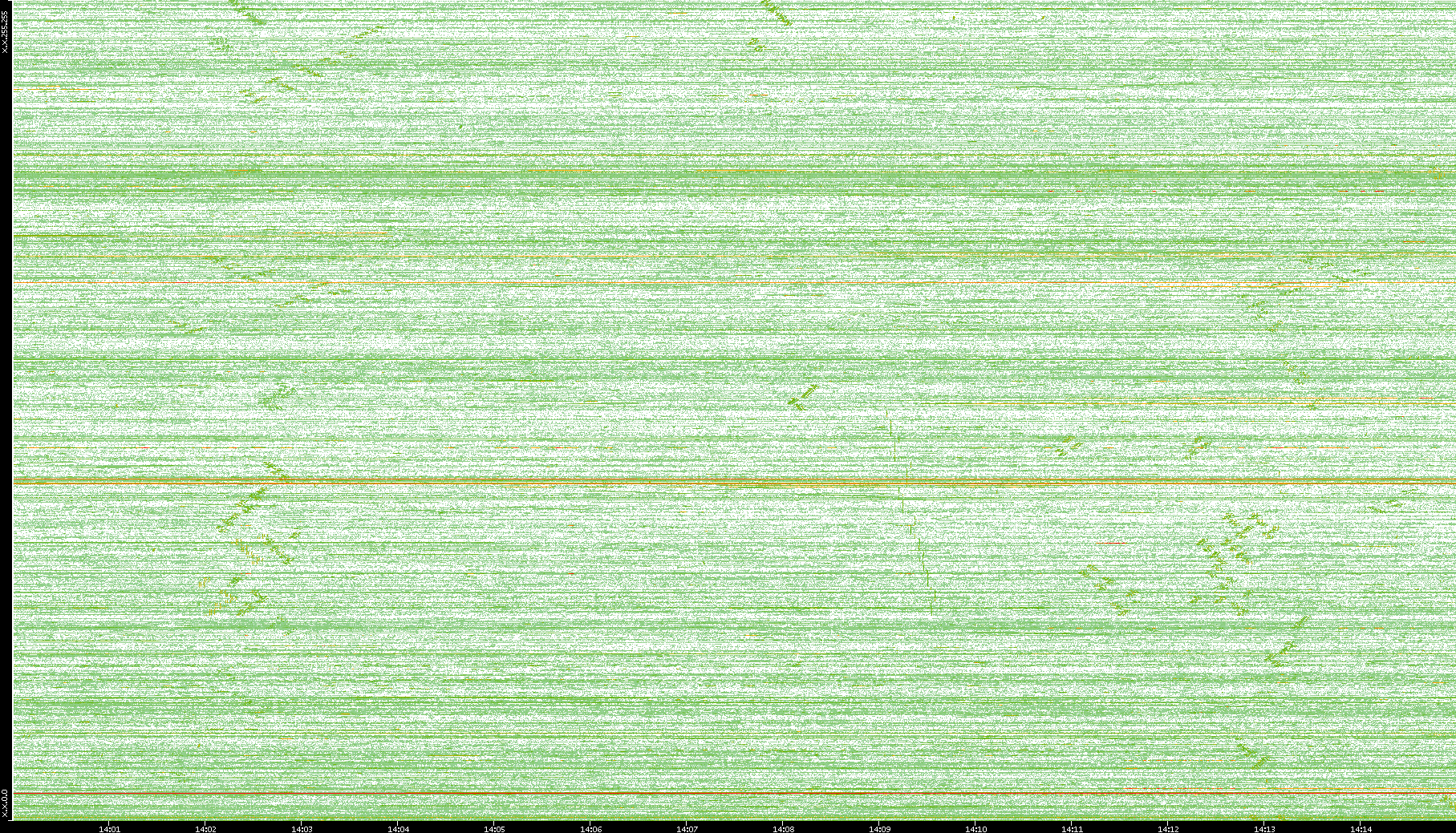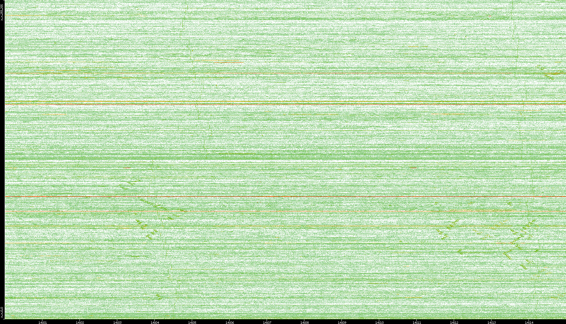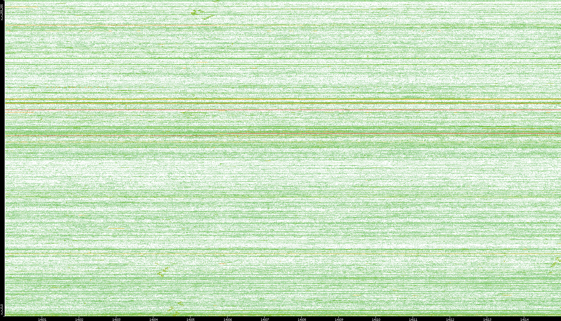 | Date | Dest. IP vs. Time | Dest. Port vs. Time | Src. IP vs. Time | Src. Port vs. Time | Nb. of Packets vs. Time | Throughput vs. Time | Average Packet Size vs. Time | Entropy of Port vs. Time |
