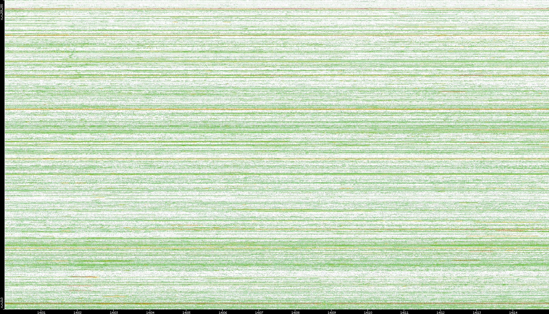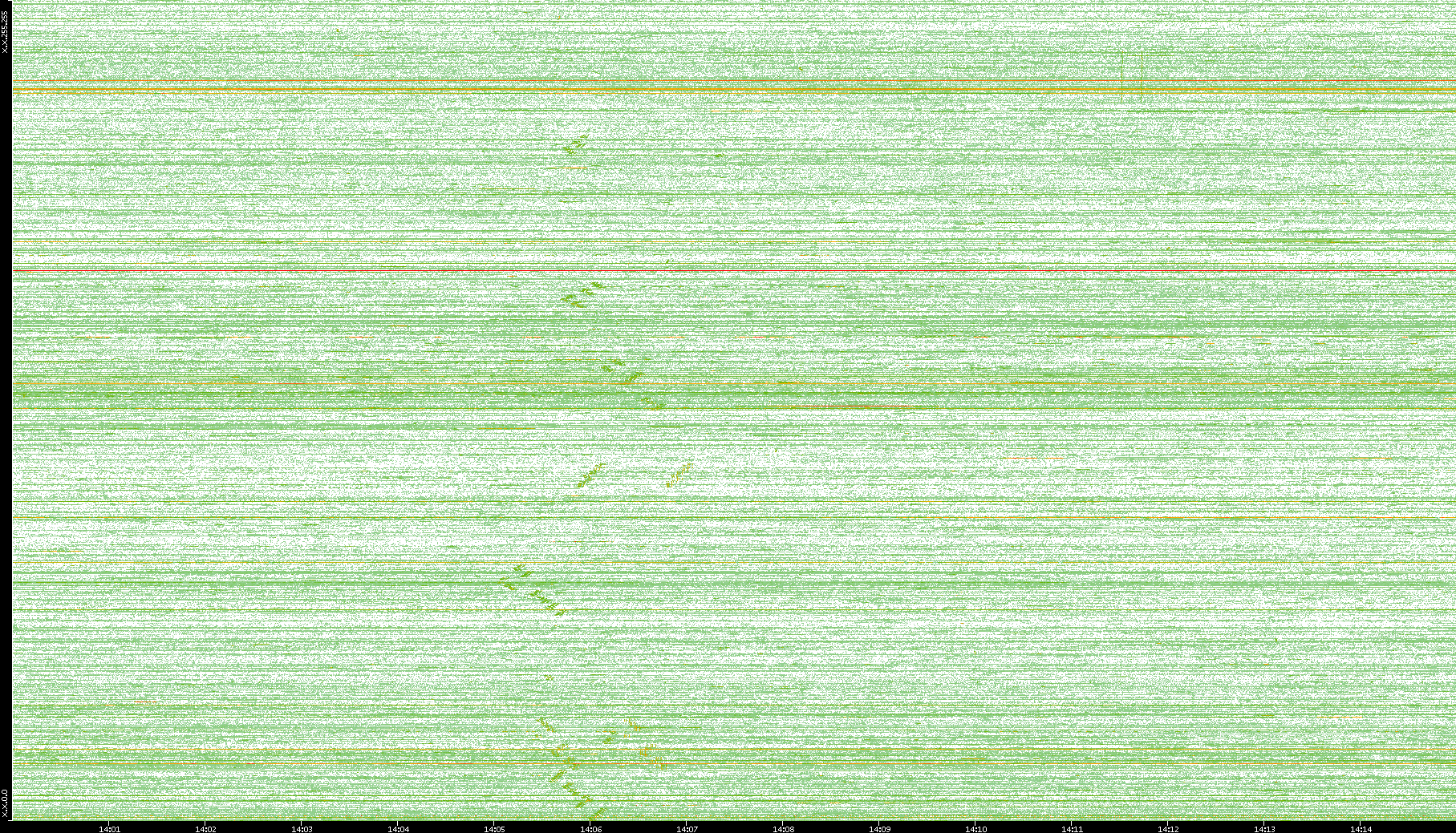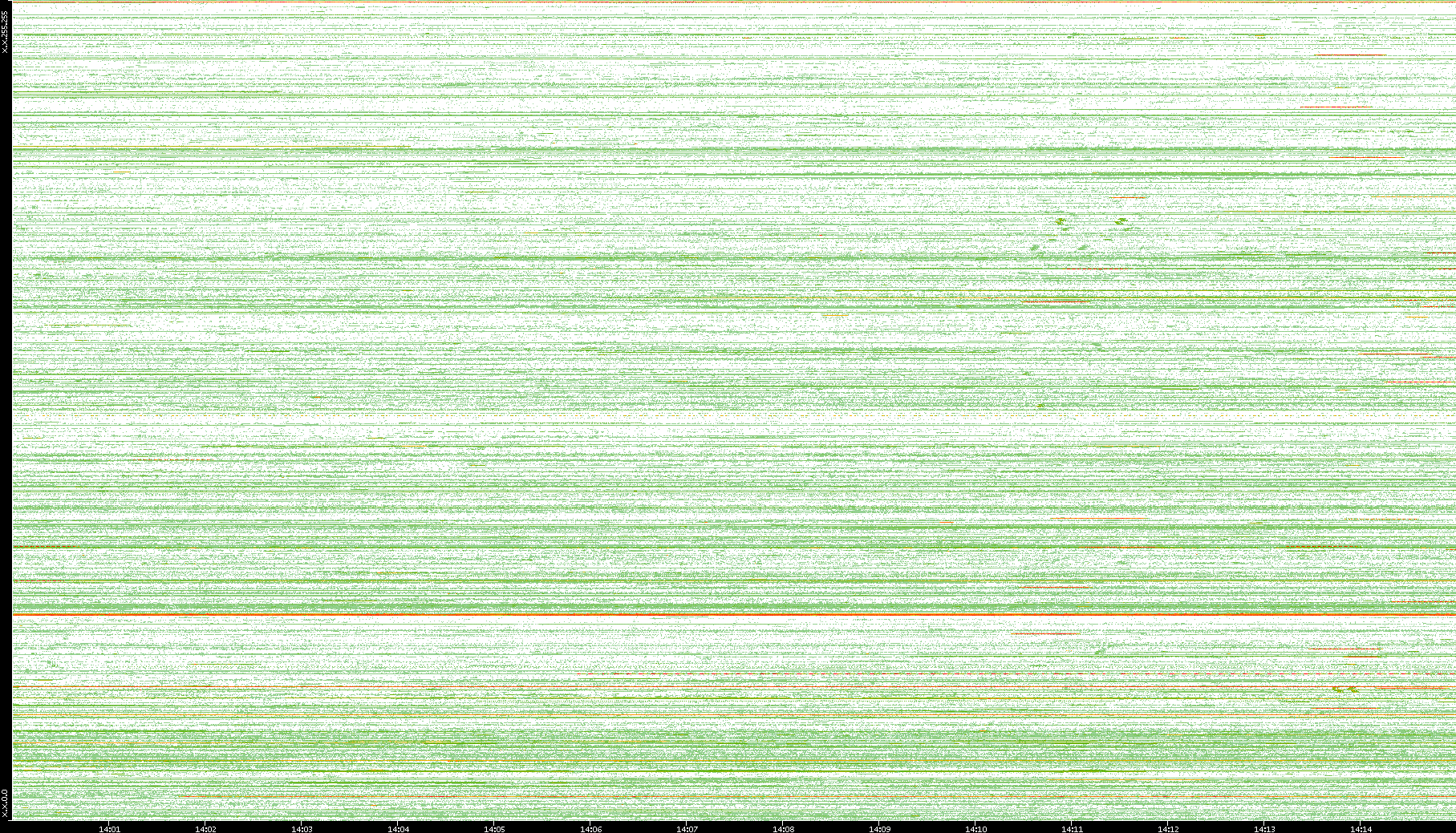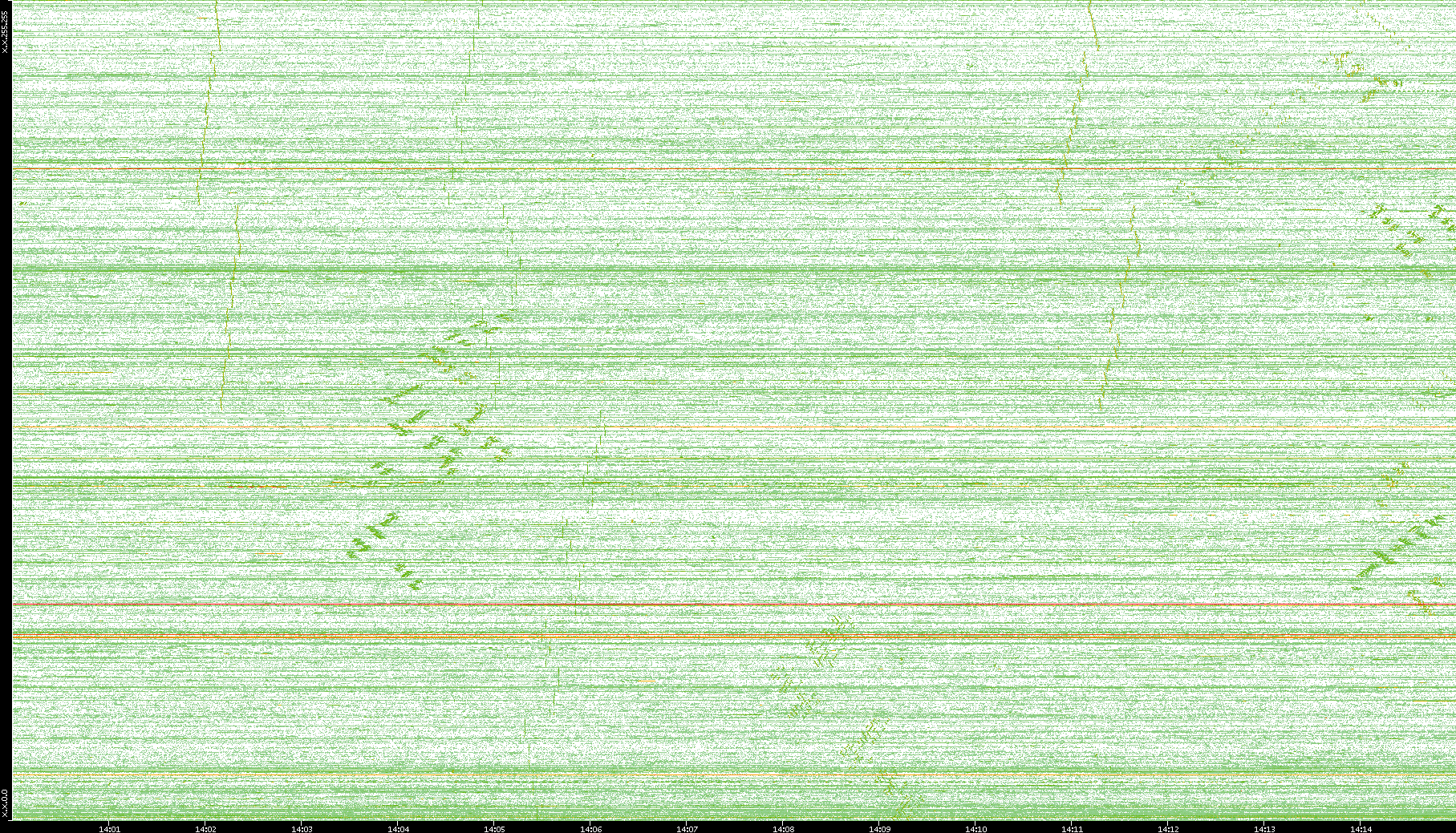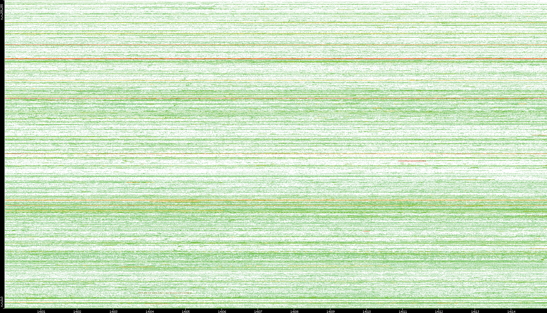 | Date | Dest. IP vs. Time | Dest. Port vs. Time | Src. IP vs. Time | Src. Port vs. Time | Nb. of Packets vs. Time | Throughput vs. Time | Average Packet Size vs. Time | Entropy of Port vs. Time |