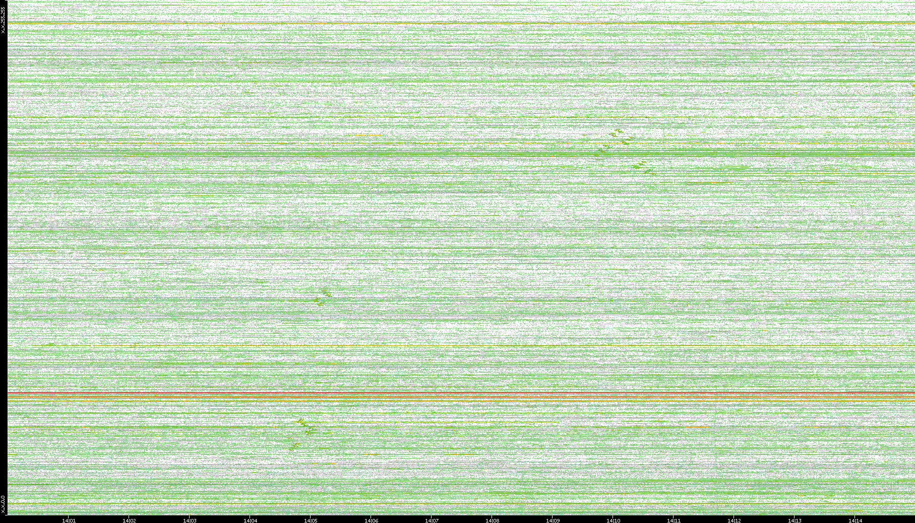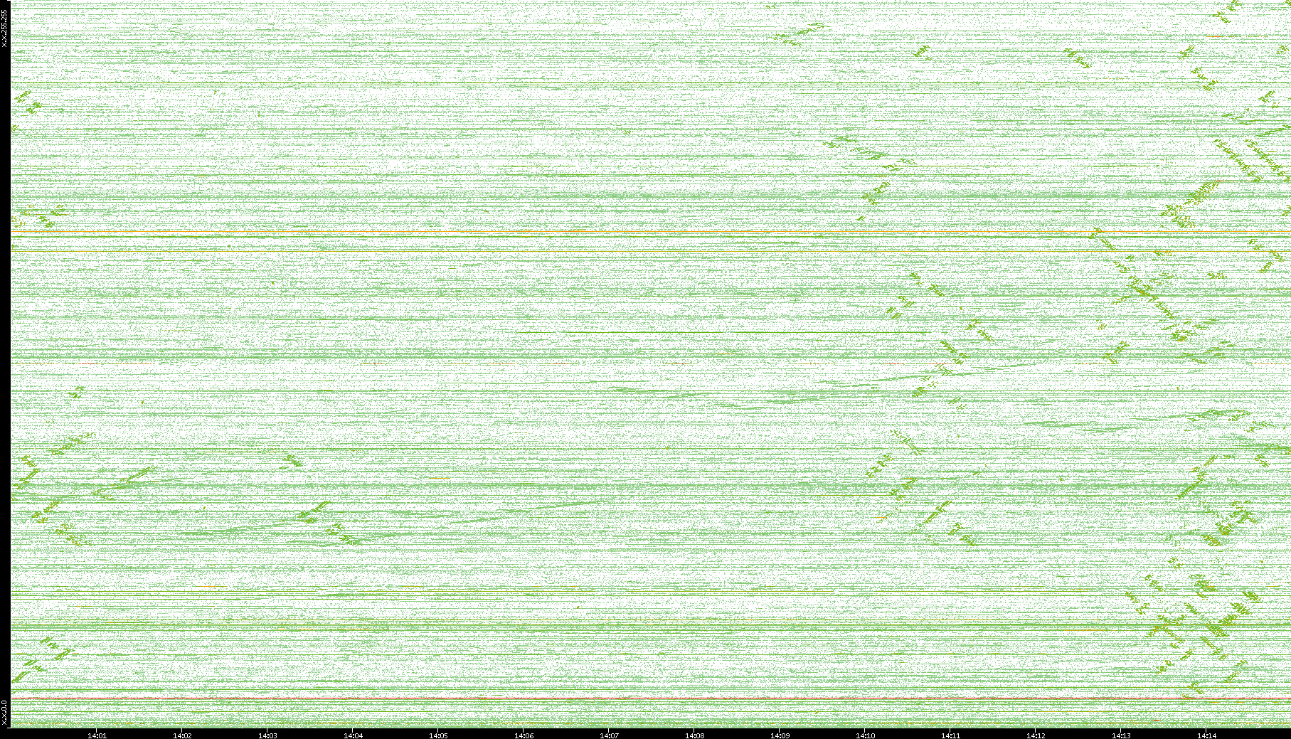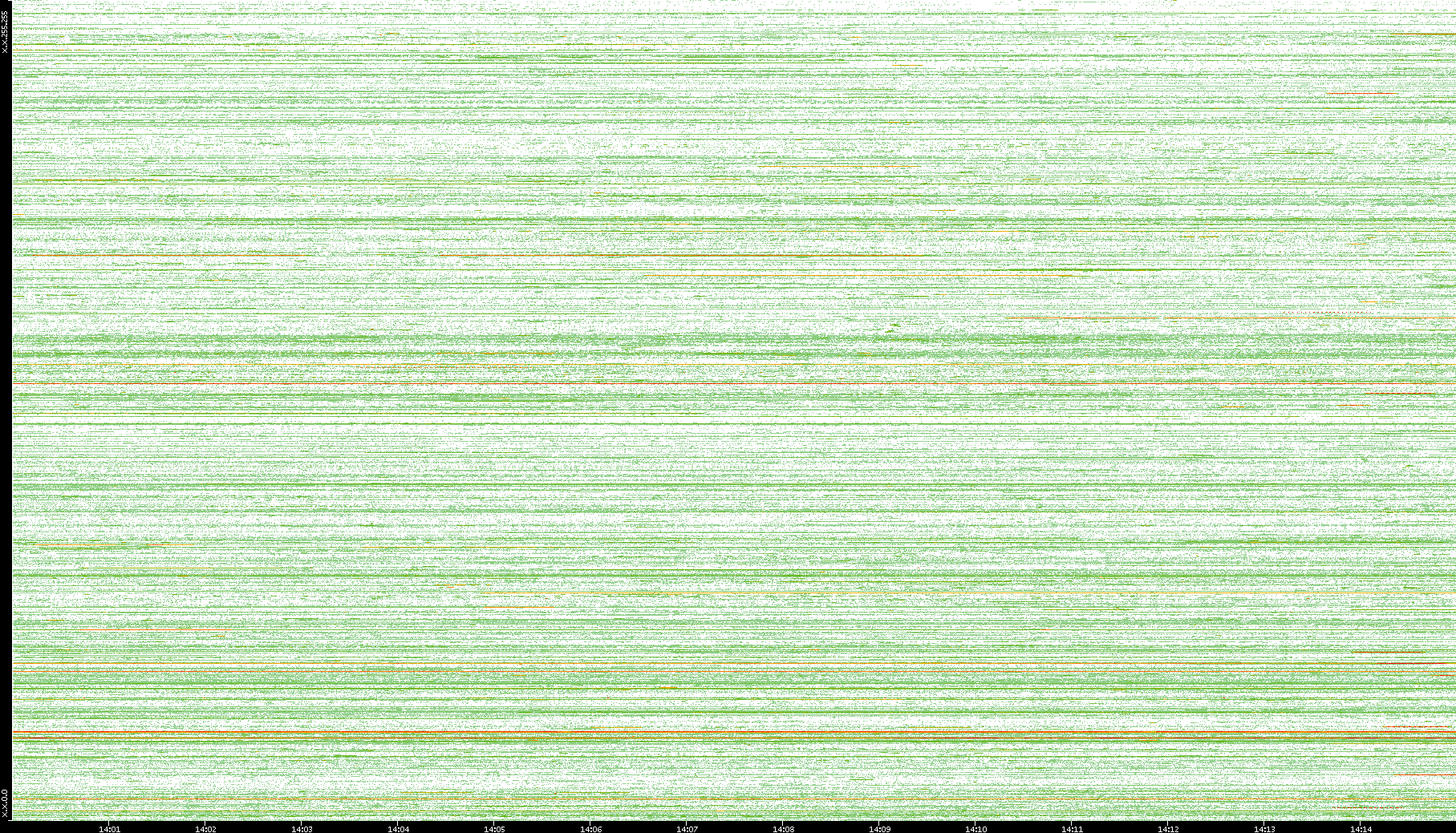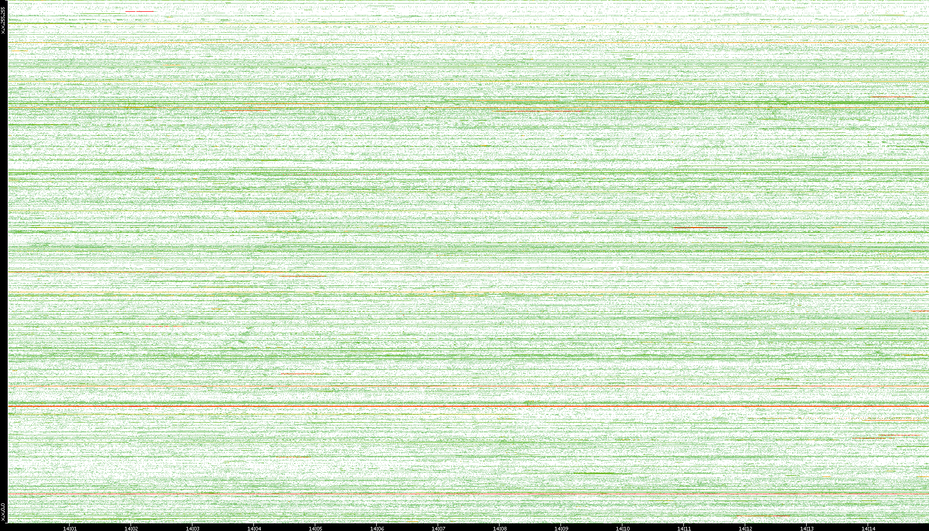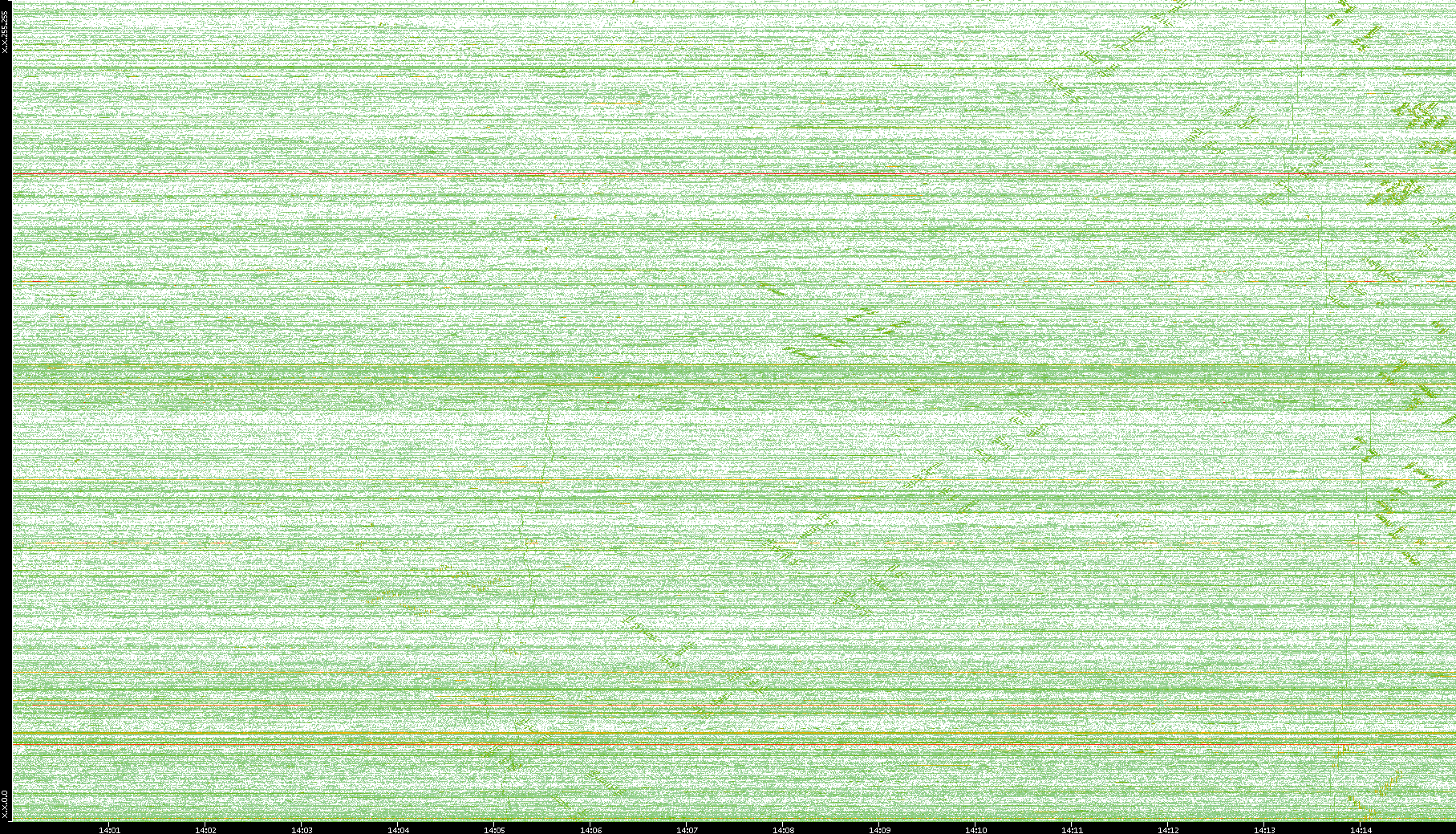 | Date | Dest. IP vs. Time | Dest. Port vs. Time | Src. IP vs. Time | Src. Port vs. Time | Nb. of Packets vs. Time | Throughput vs. Time | Average Packet Size vs. Time | Entropy of Port vs. Time |