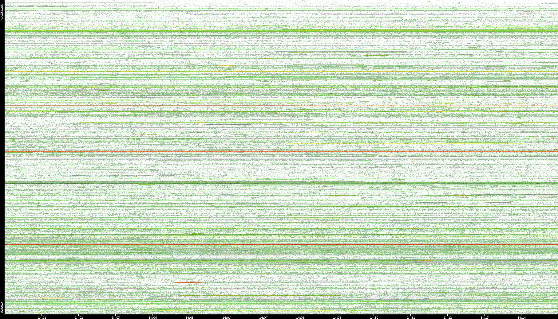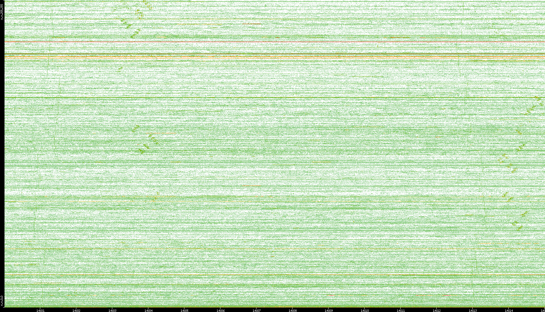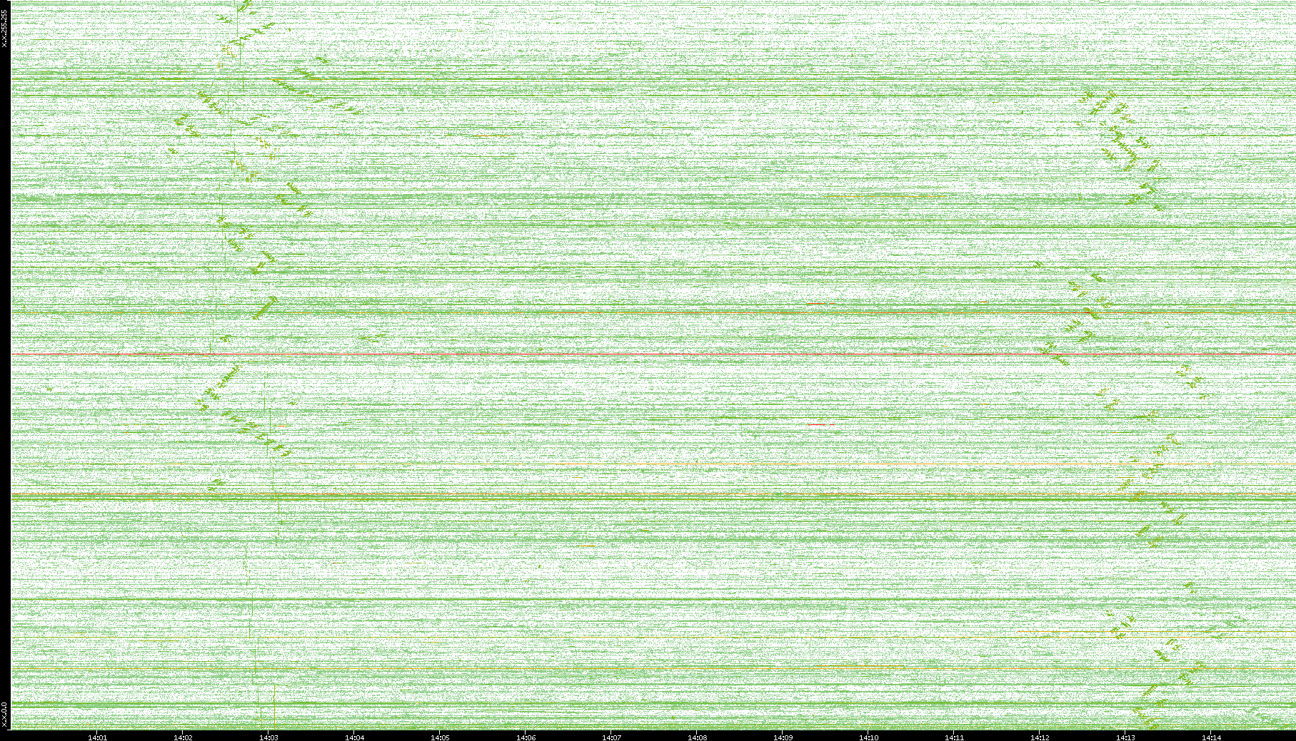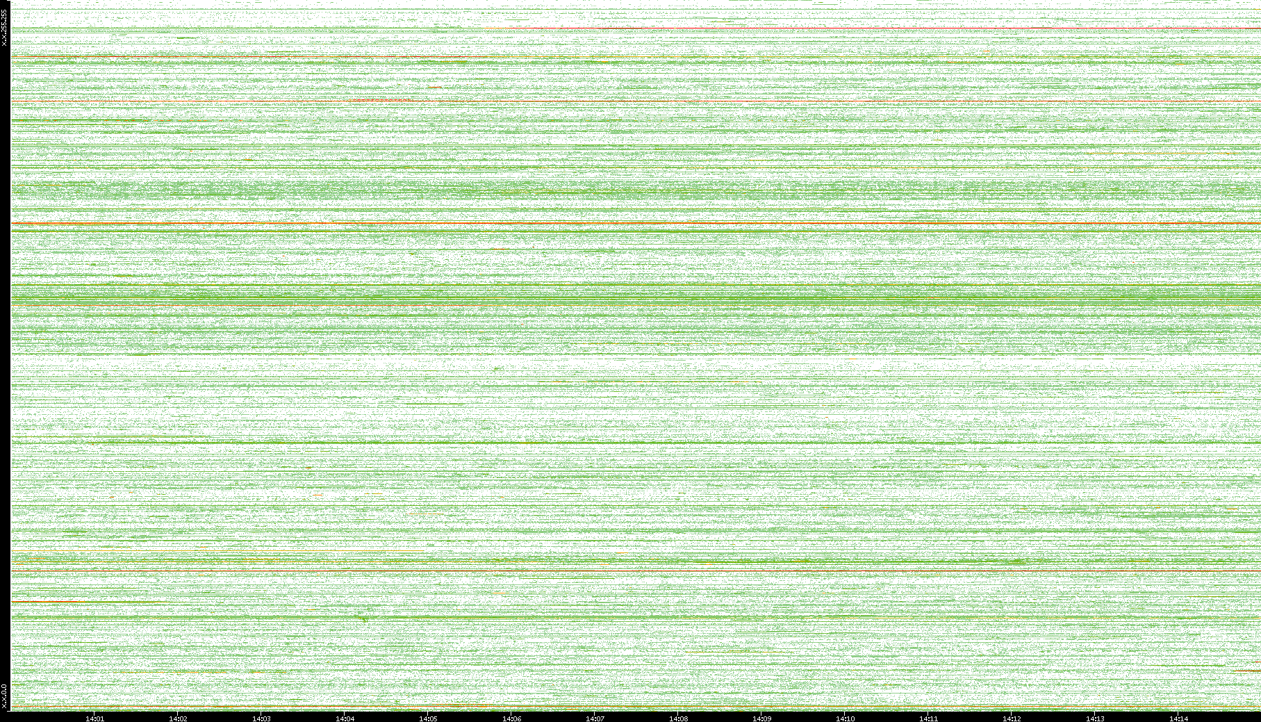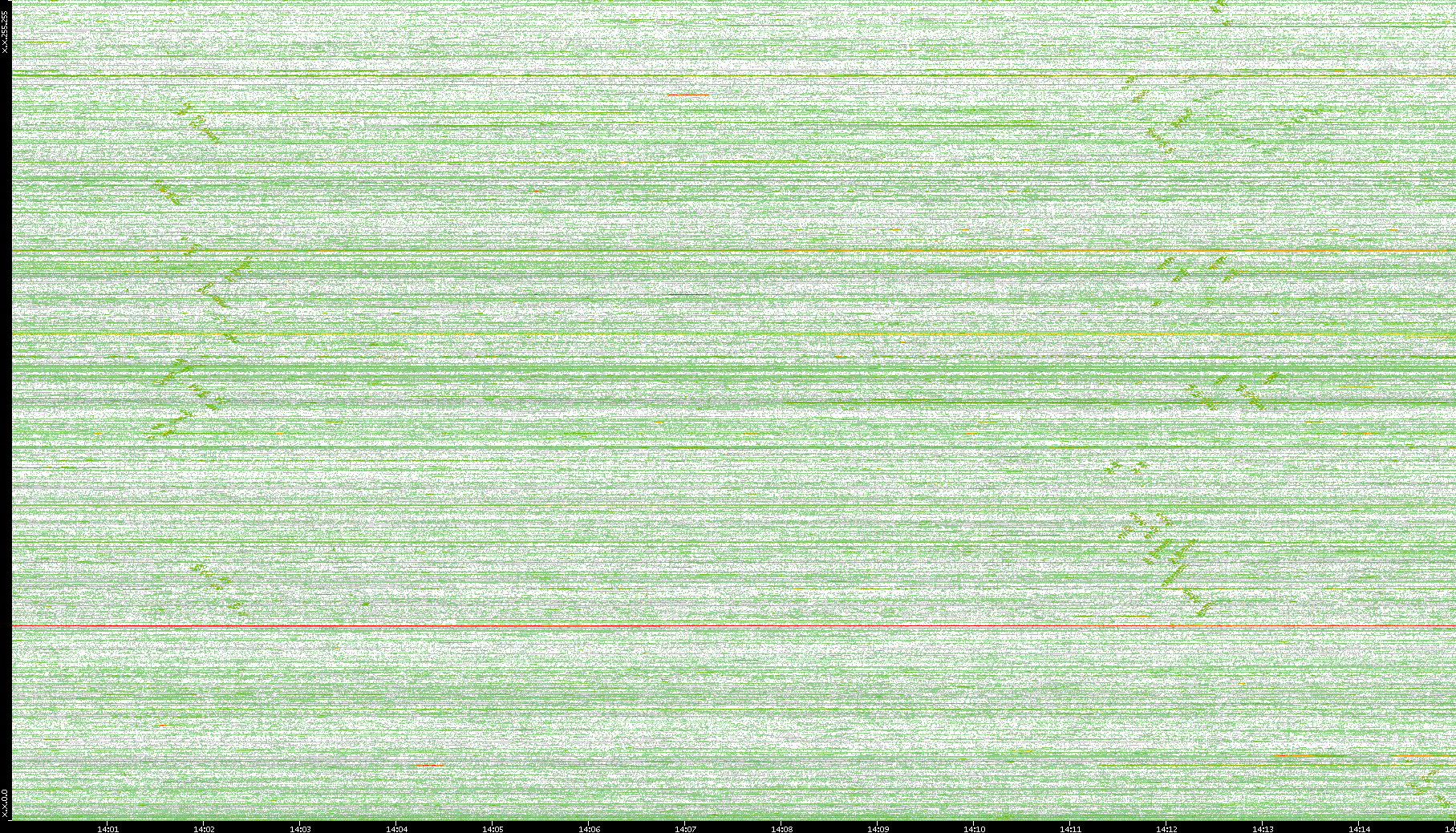 | Date | Dest. IP vs. Time | Dest. Port vs. Time | Src. IP vs. Time | Src. Port vs. Time | Nb. of Packets vs. Time | Throughput vs. Time | Average Packet Size vs. Time | Entropy of Port vs. Time |