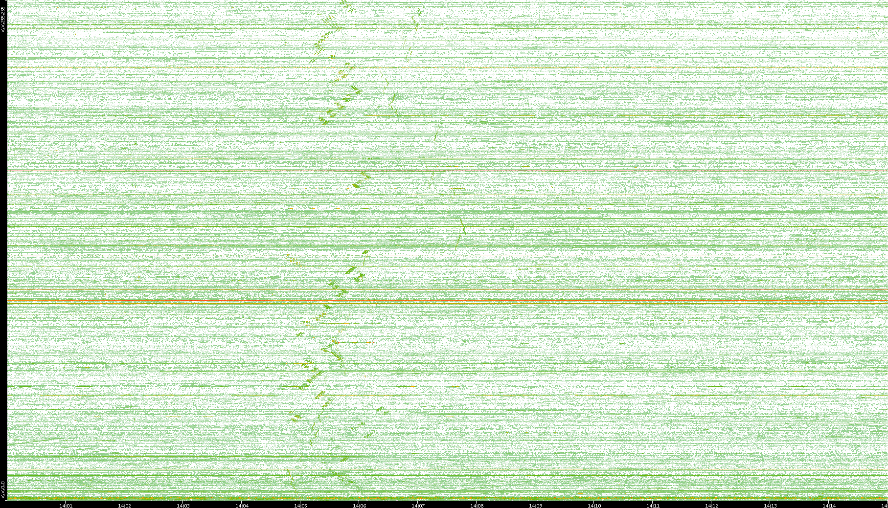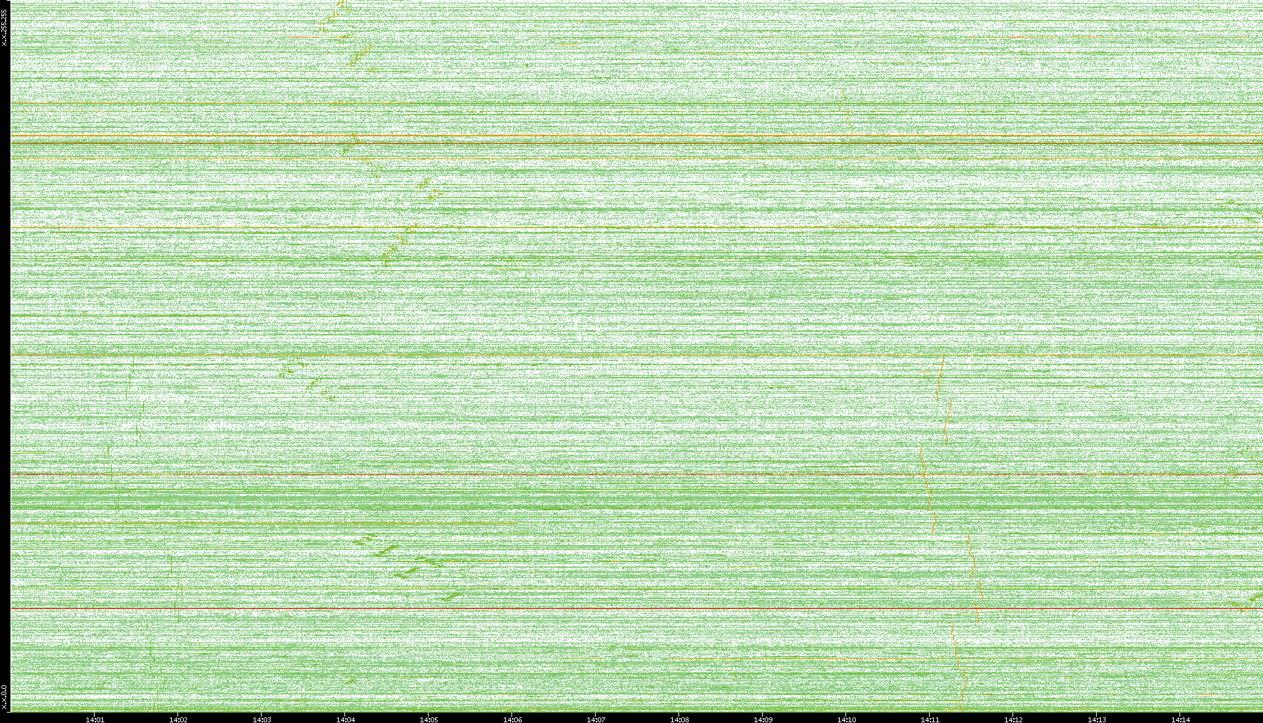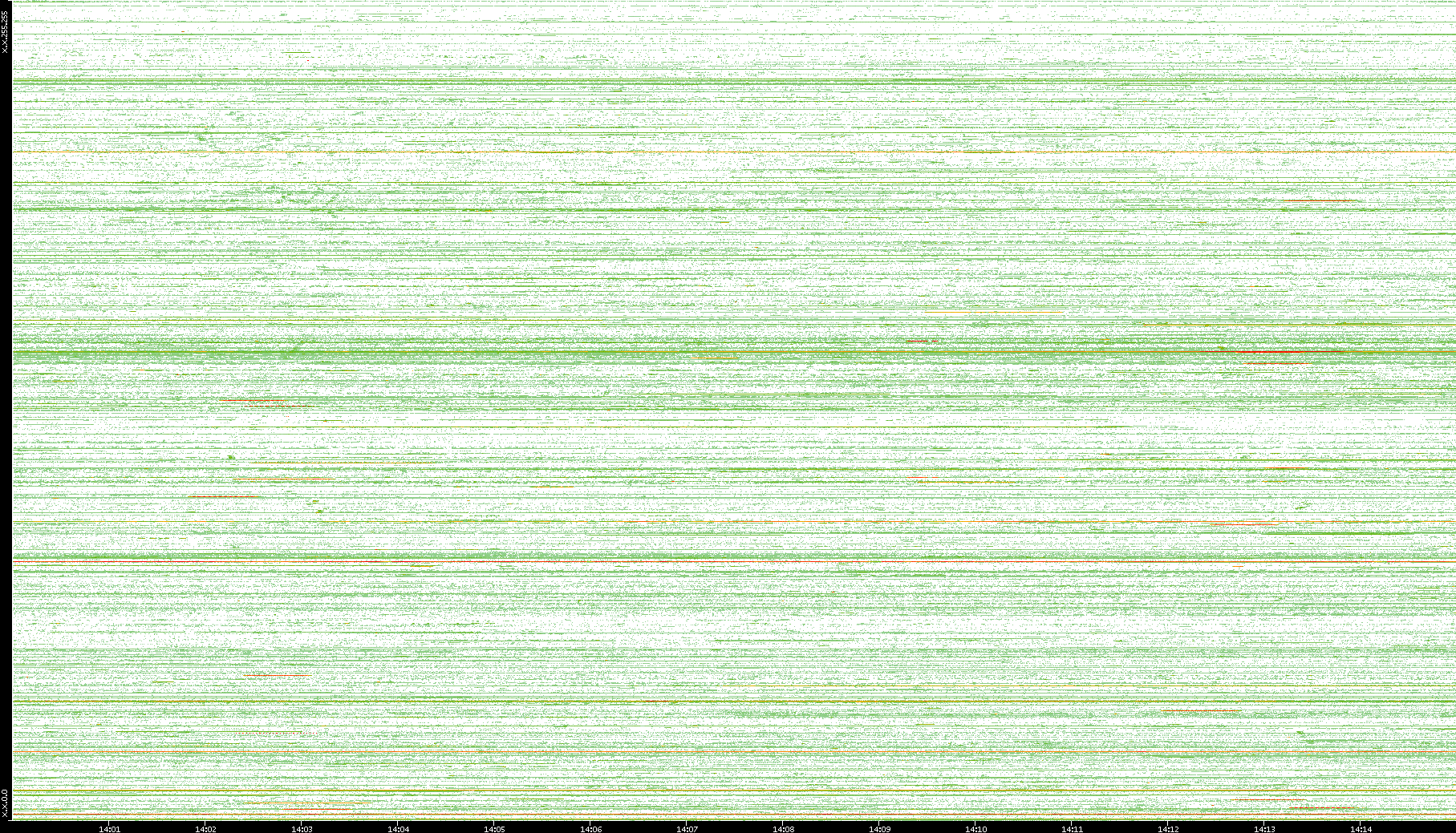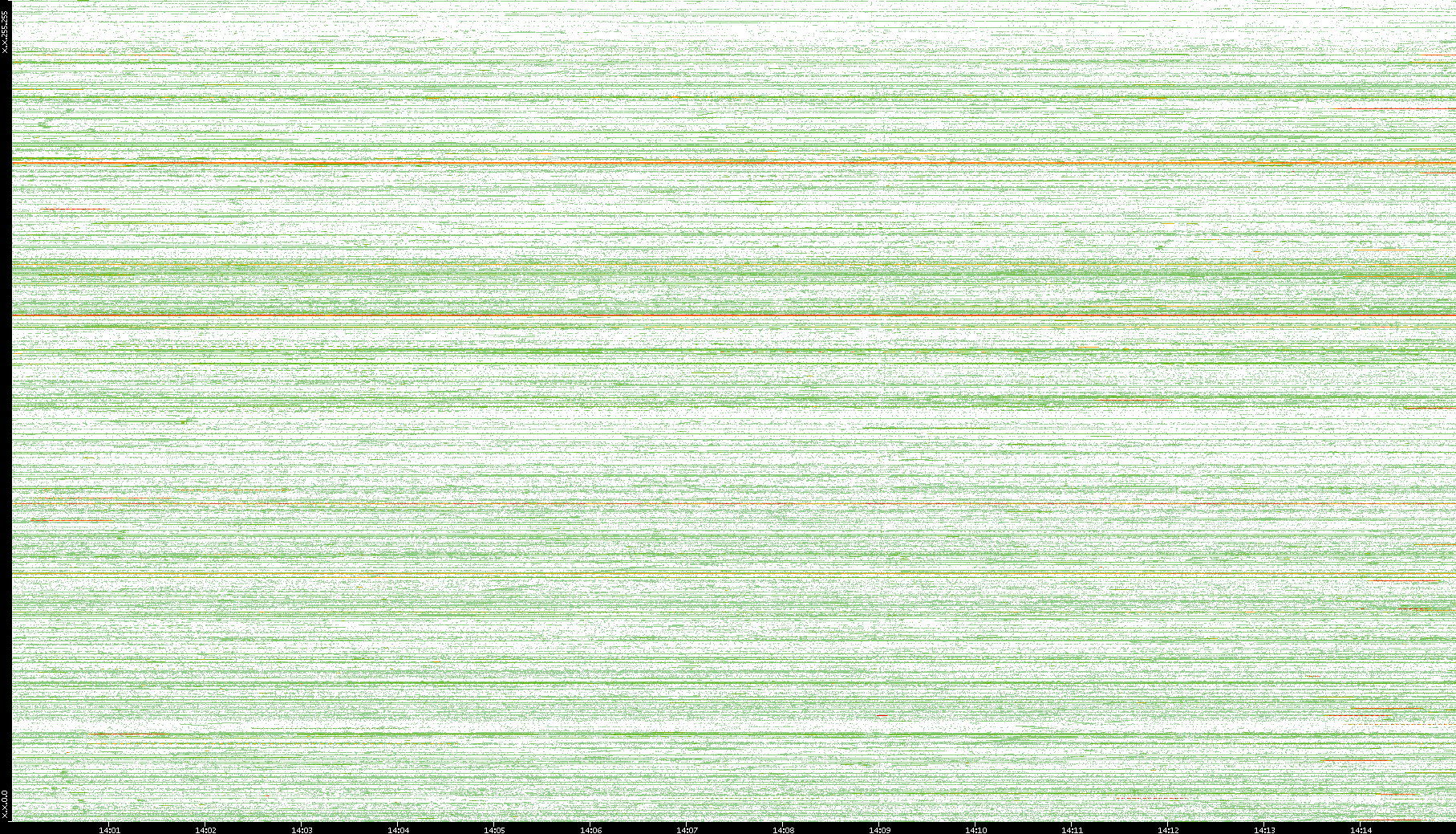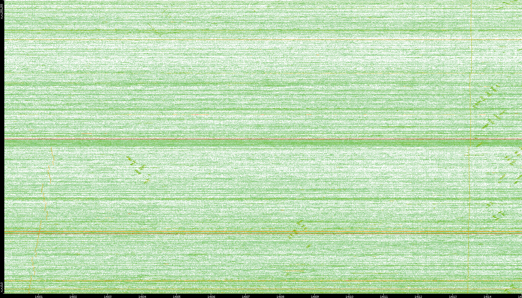 | Date | Dest. IP vs. Time | Dest. Port vs. Time | Src. IP vs. Time | Src. Port vs. Time | Nb. of Packets vs. Time | Throughput vs. Time | Average Packet Size vs. Time | Entropy of Port vs. Time |