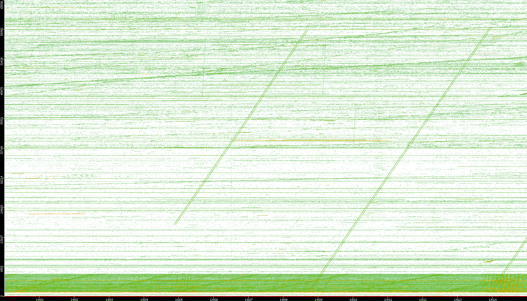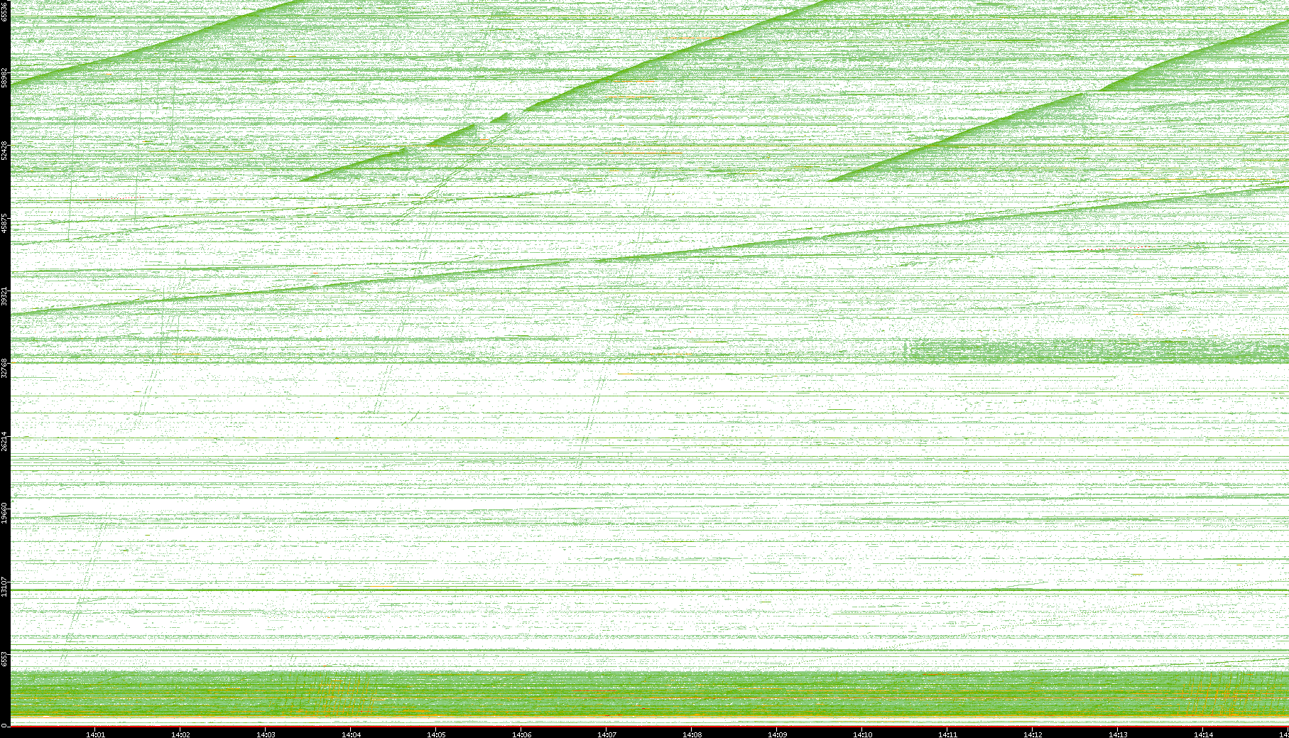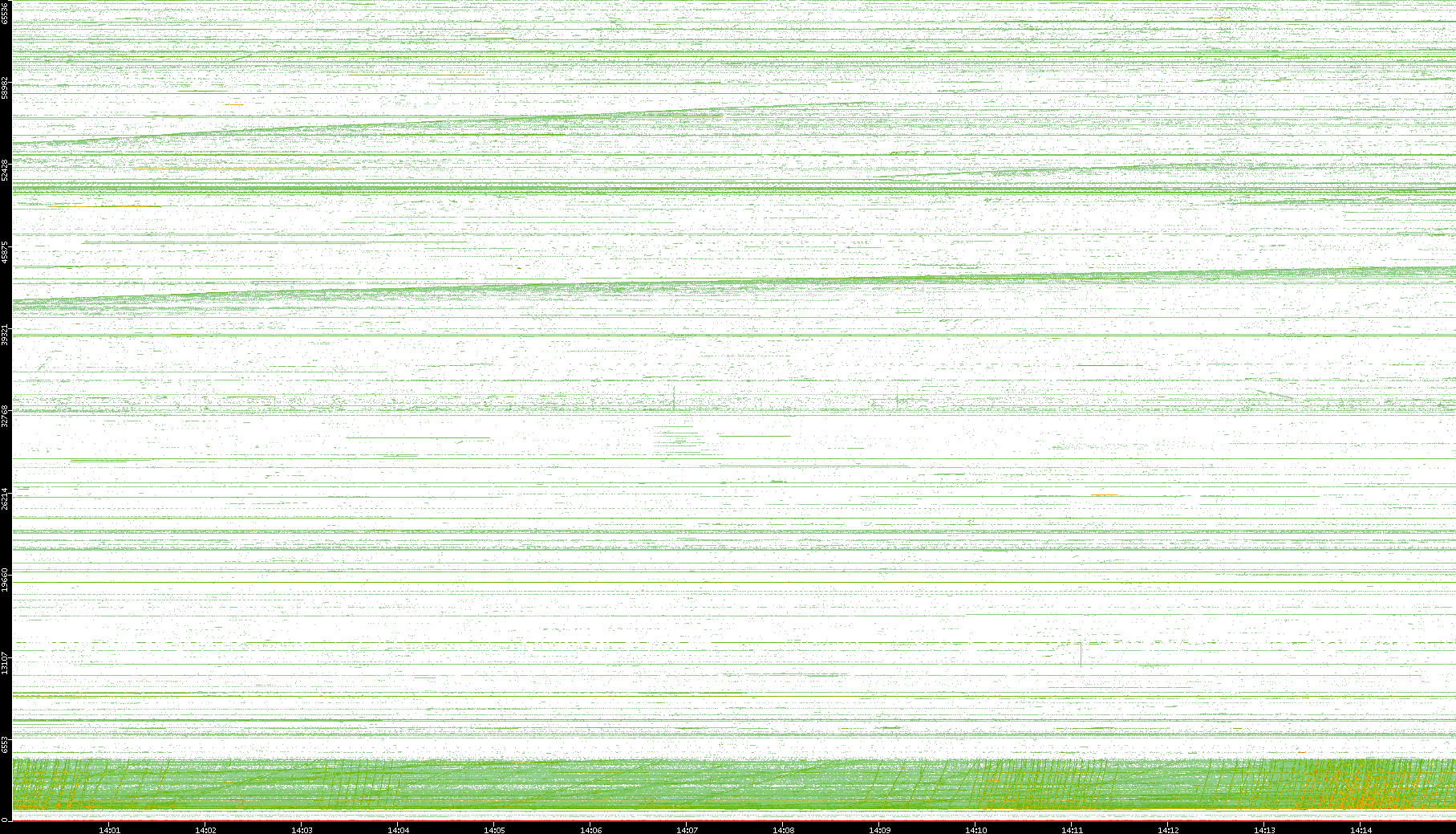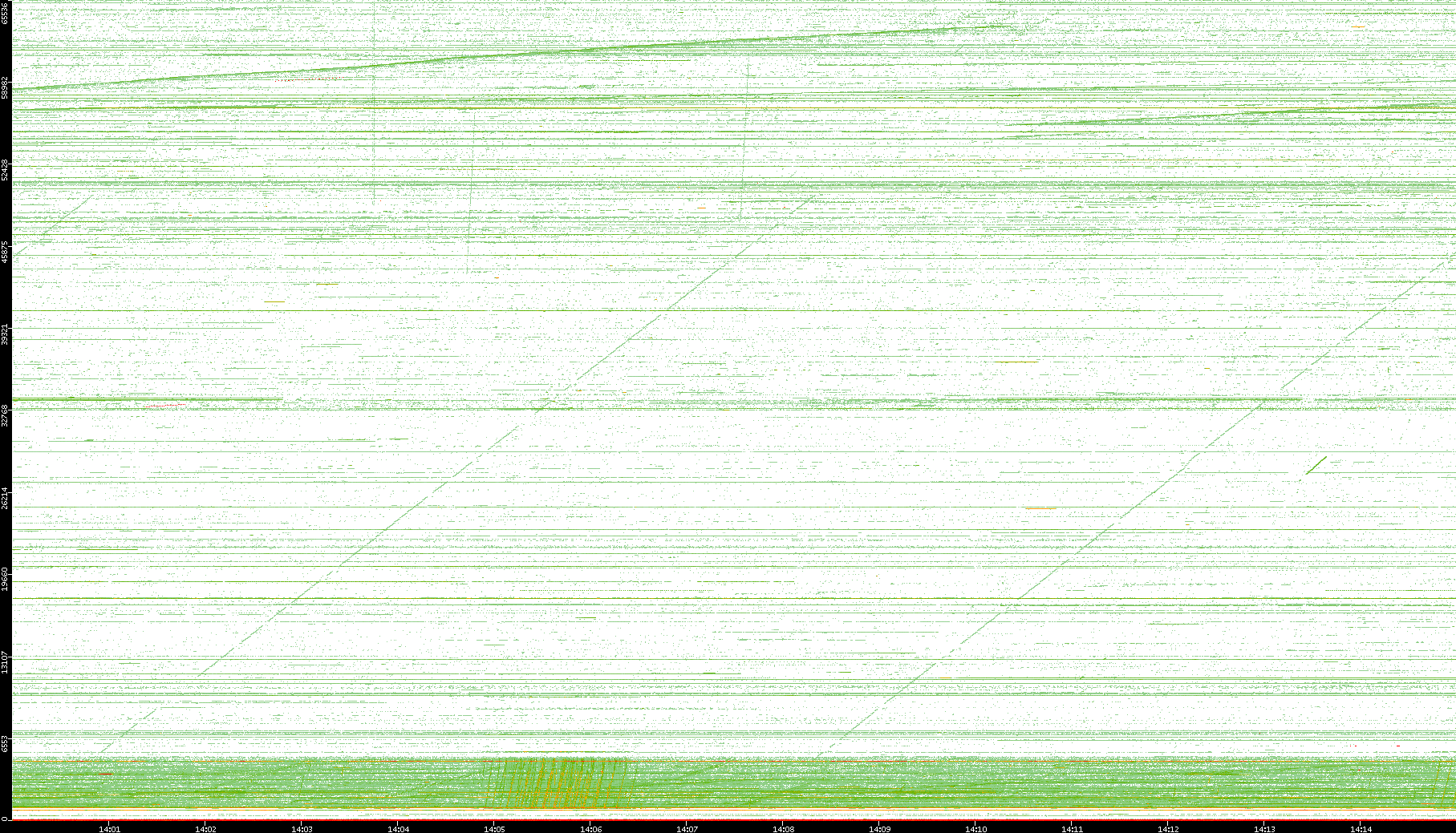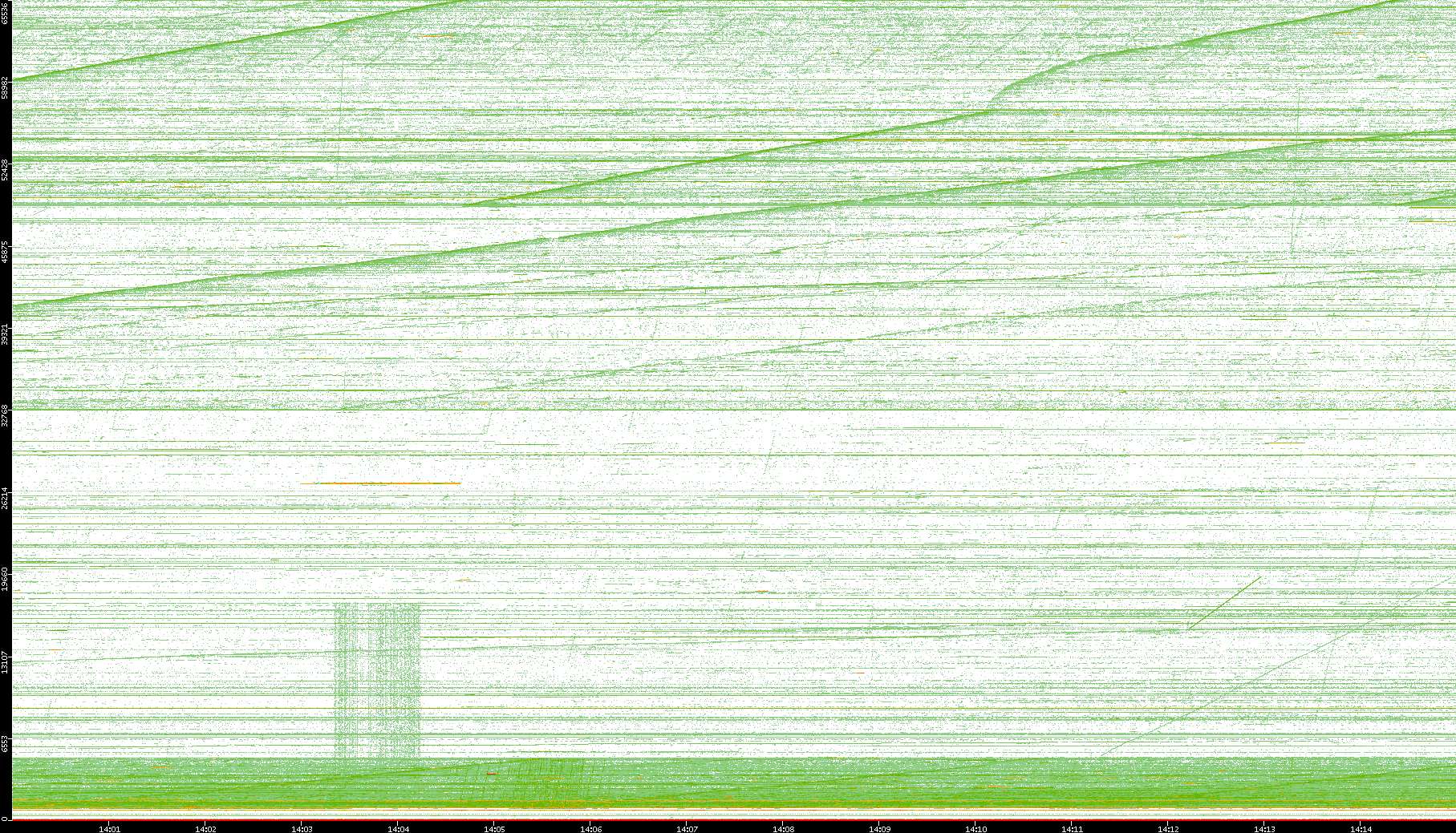 | Date | Dest. IP vs. Time | Dest. Port vs. Time | Src. IP vs. Time | Src. Port vs. Time | Nb. of Packets vs. Time | Throughput vs. Time | Average Packet Size vs. Time | Entropy of Port vs. Time |