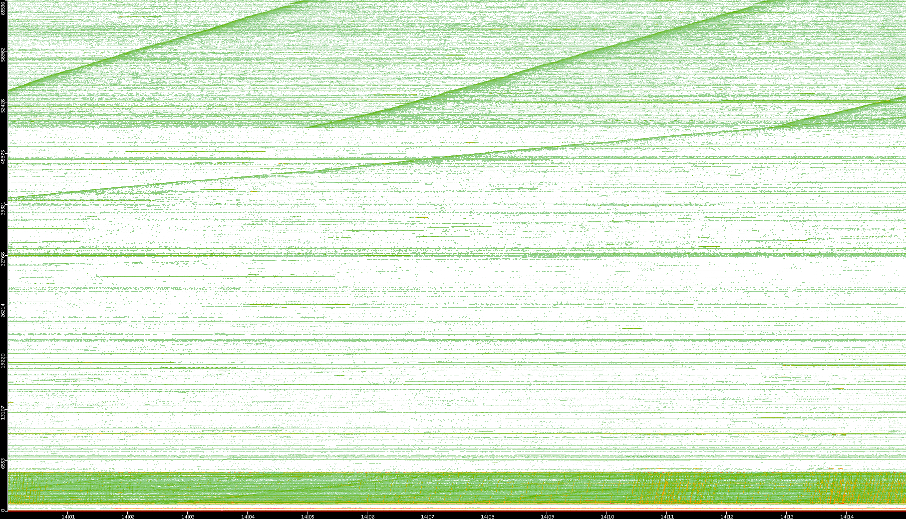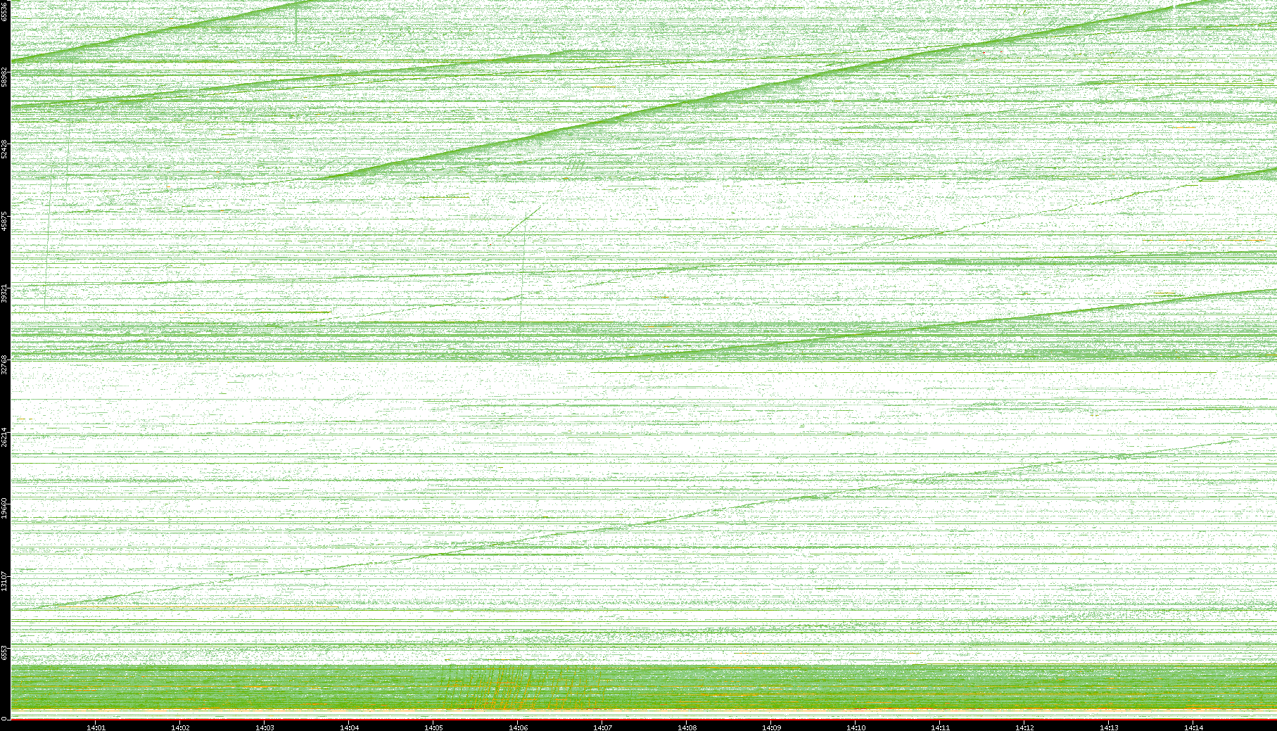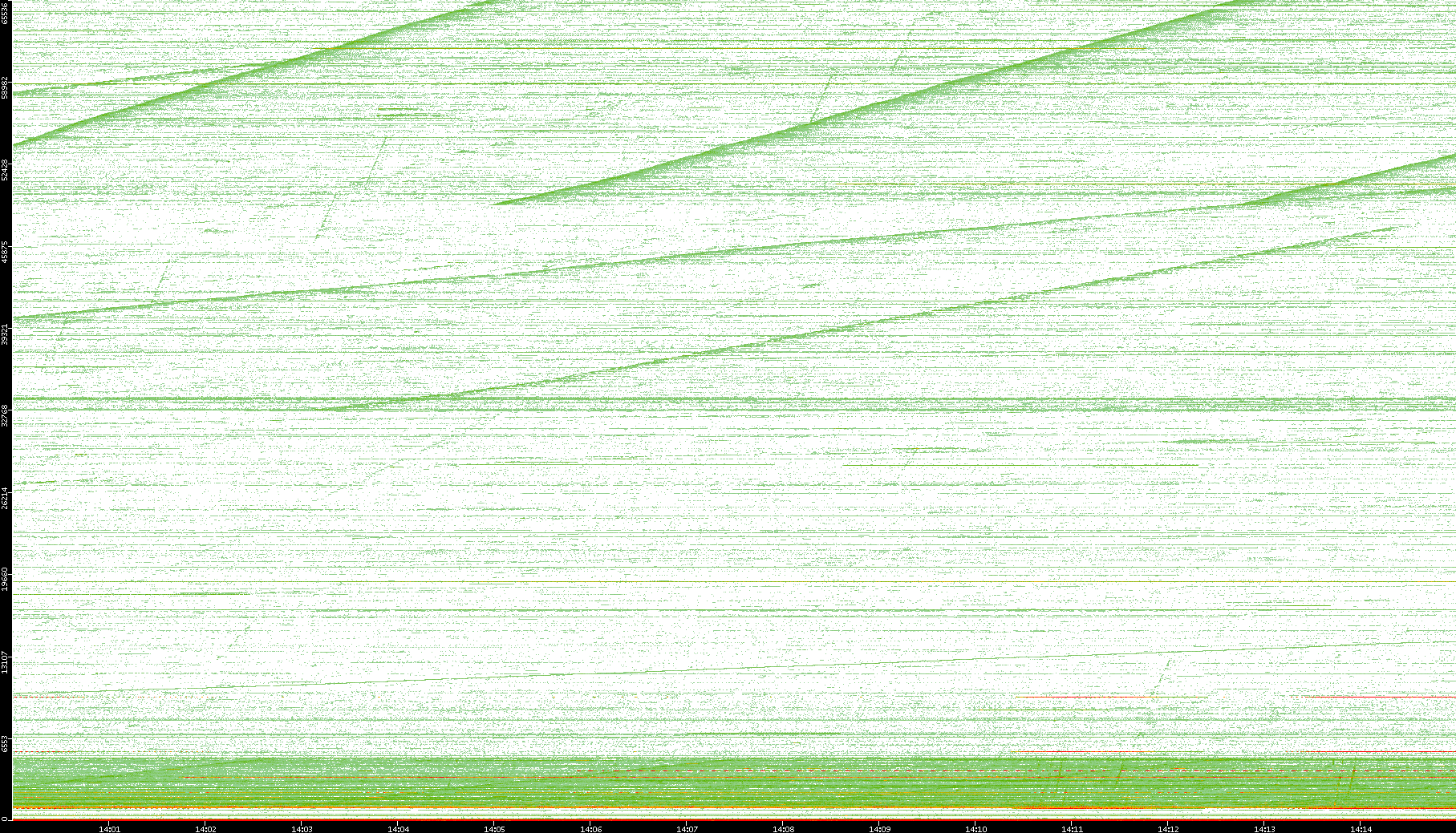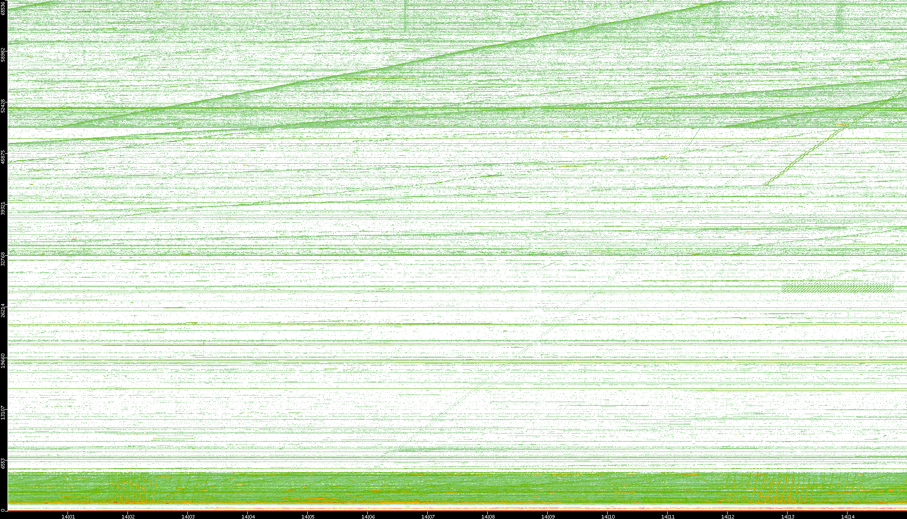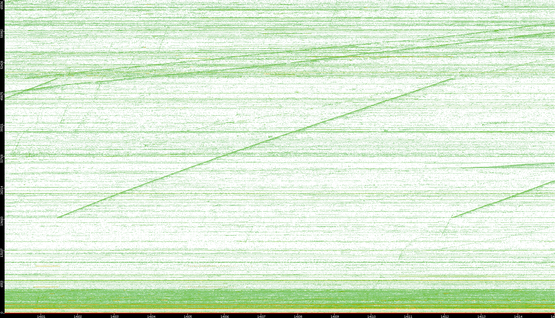 | Date | Dest. IP vs. Time | Dest. Port vs. Time | Src. IP vs. Time | Src. Port vs. Time | Nb. of Packets vs. Time | Throughput vs. Time | Average Packet Size vs. Time | Entropy of Port vs. Time |
