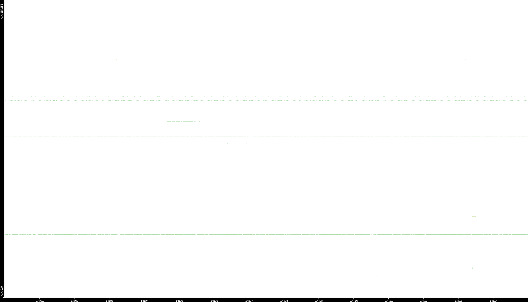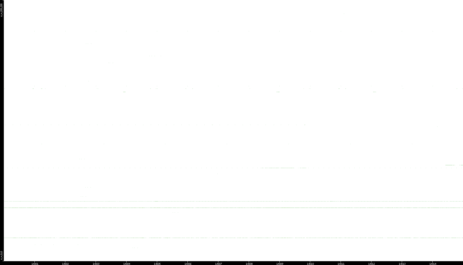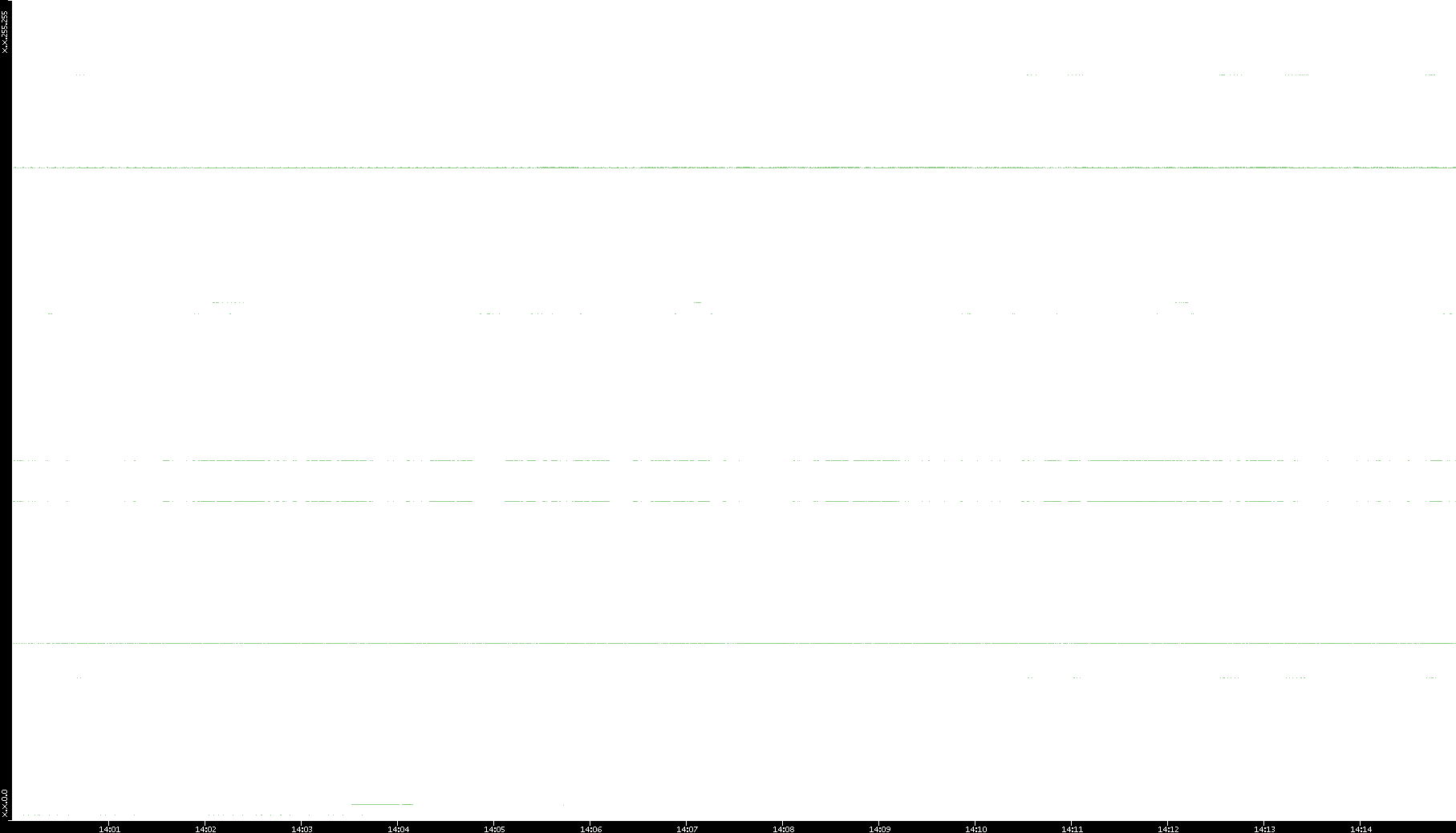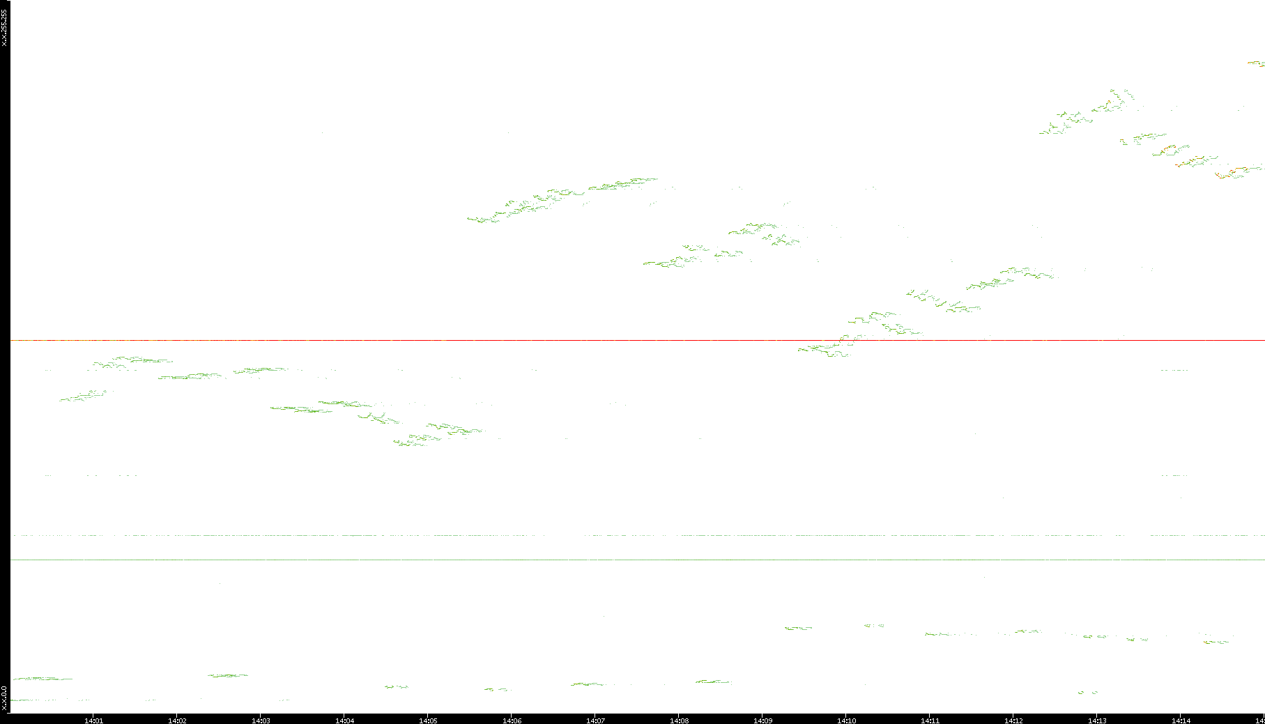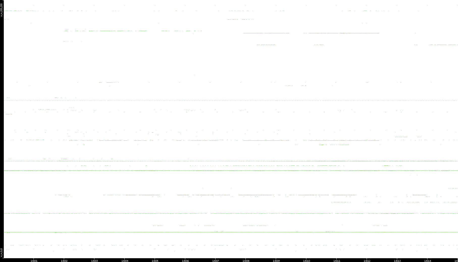 2005/07/08 Dest. IP vs. Time Dest. Port vs. Time Src. IP vs. Time Src. Port vs. Time Nb. of Packets vs. Time Throughput vs. Time Average Packet Size vs. Time Entropy of Port vs. Time