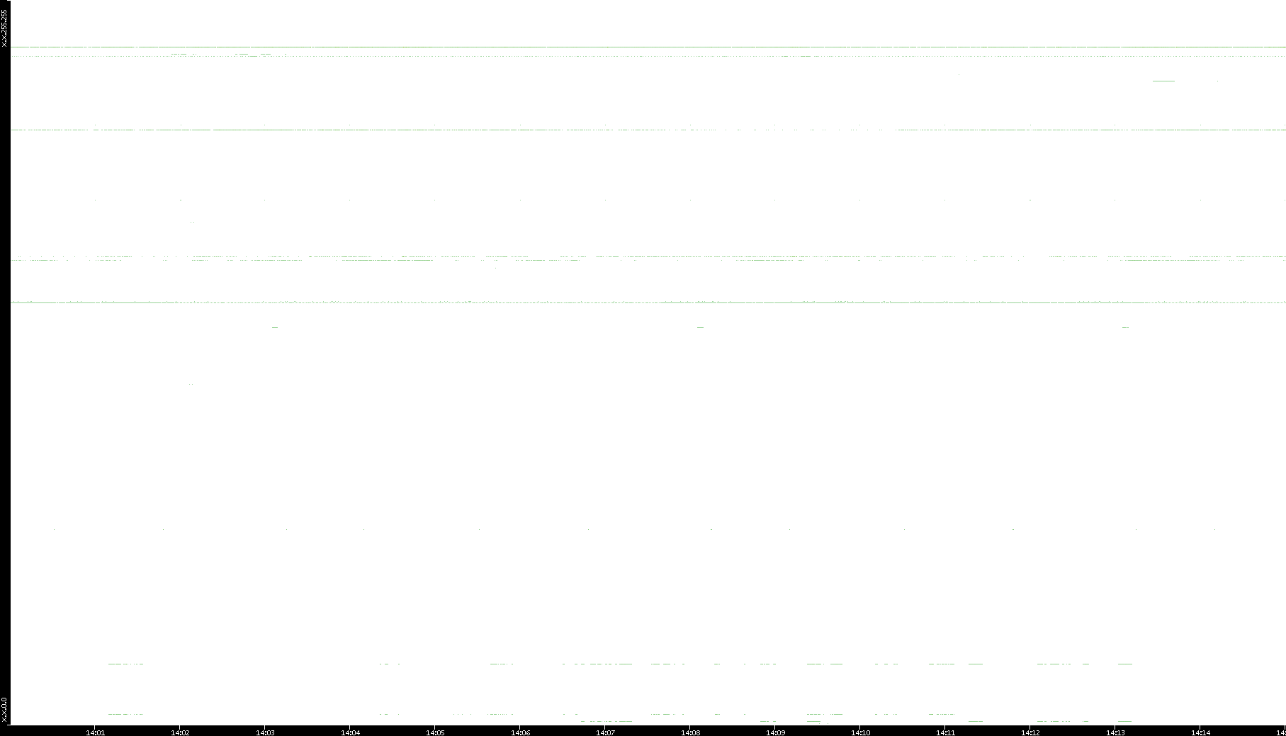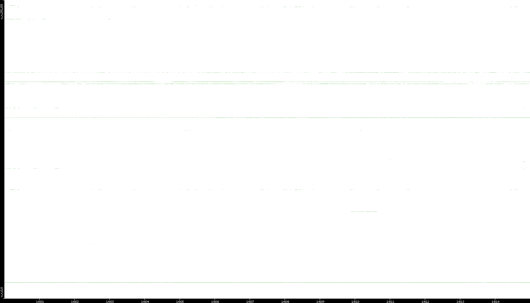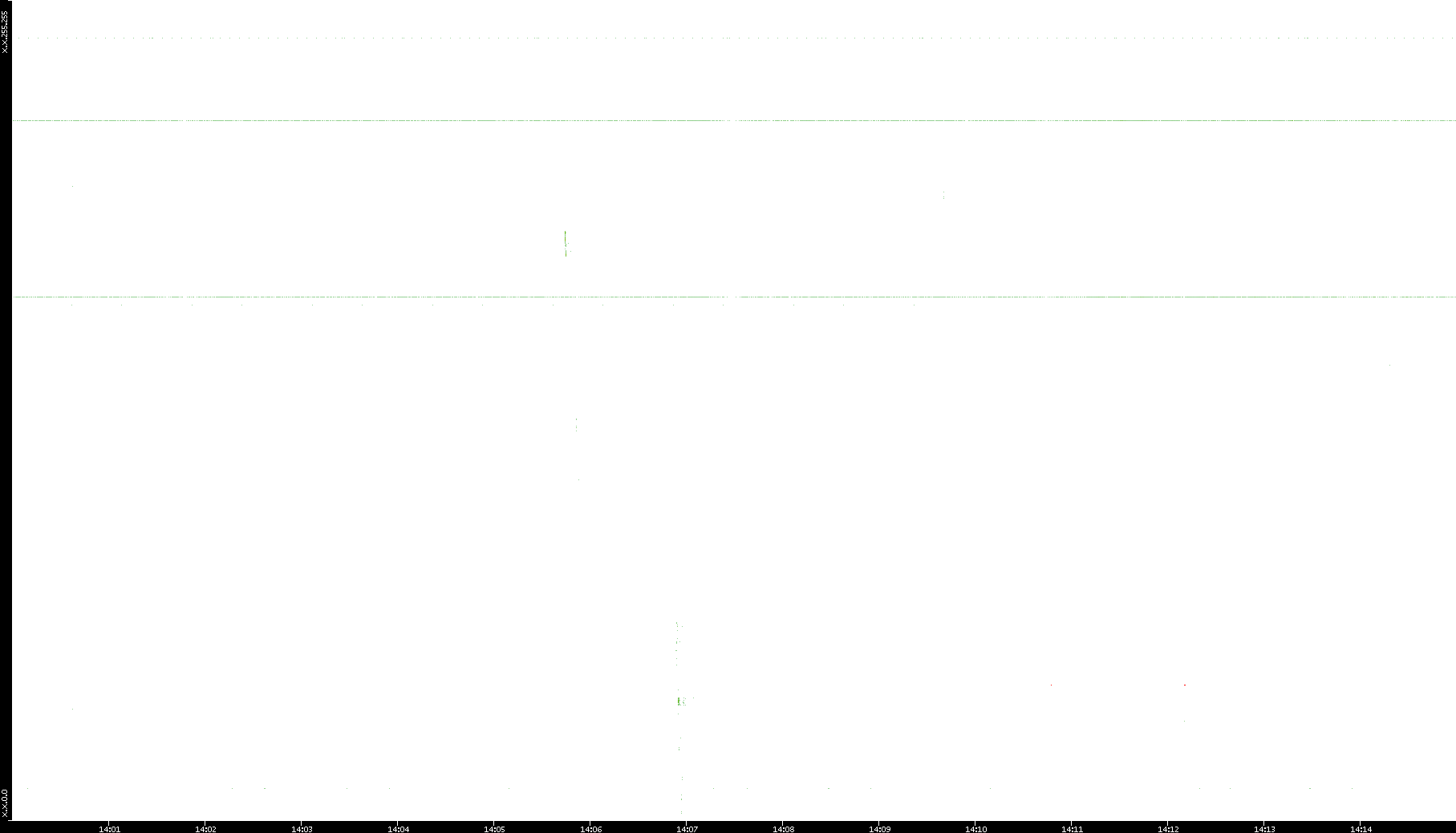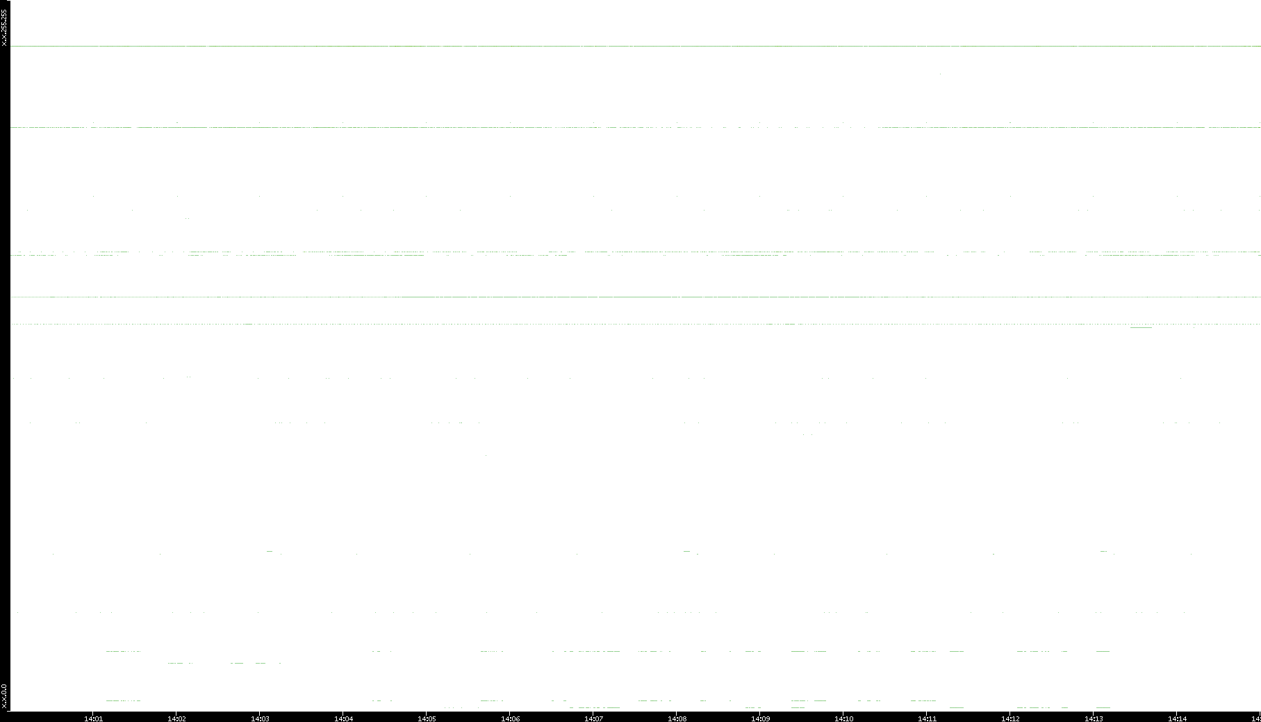 2005/07/08 Dest. IP vs. Time Dest. Port vs. Time Src. IP vs. Time Src. Port vs. Time Nb. of Packets vs. Time Throughput vs. Time Average Packet Size vs. Time Entropy of Port vs. Time