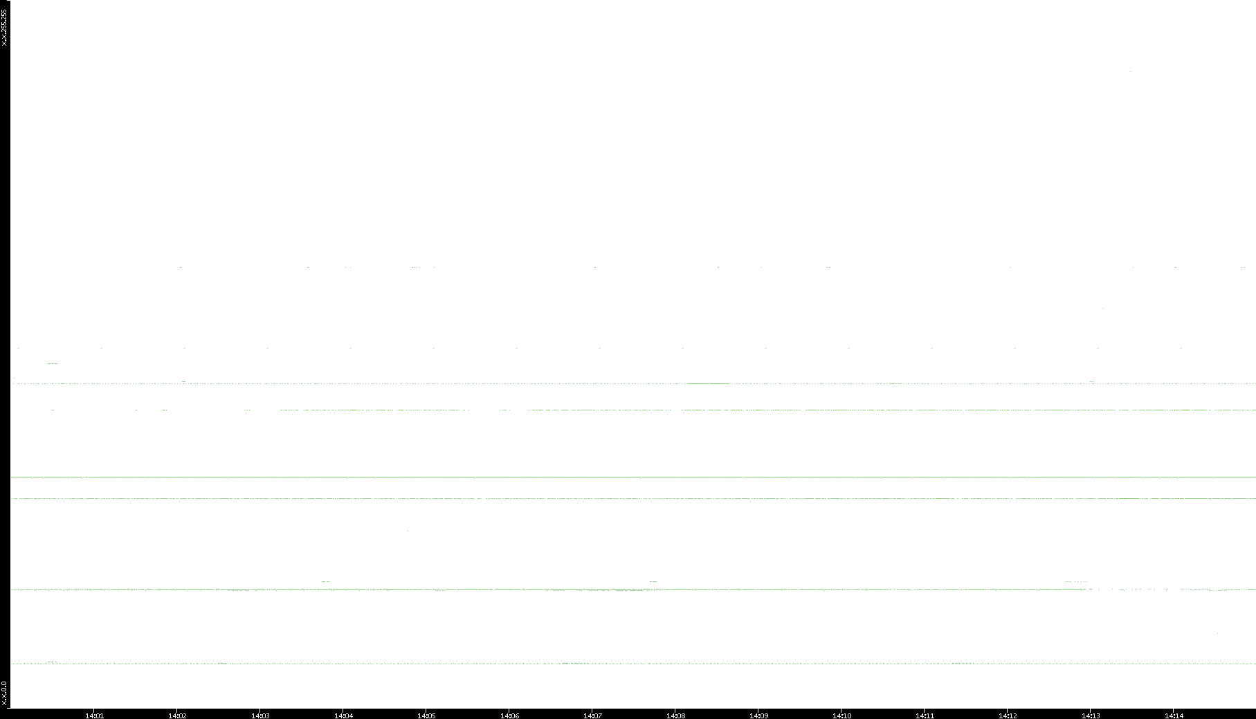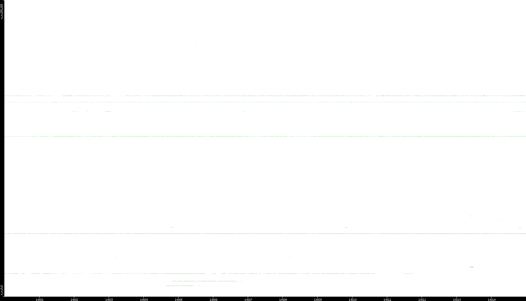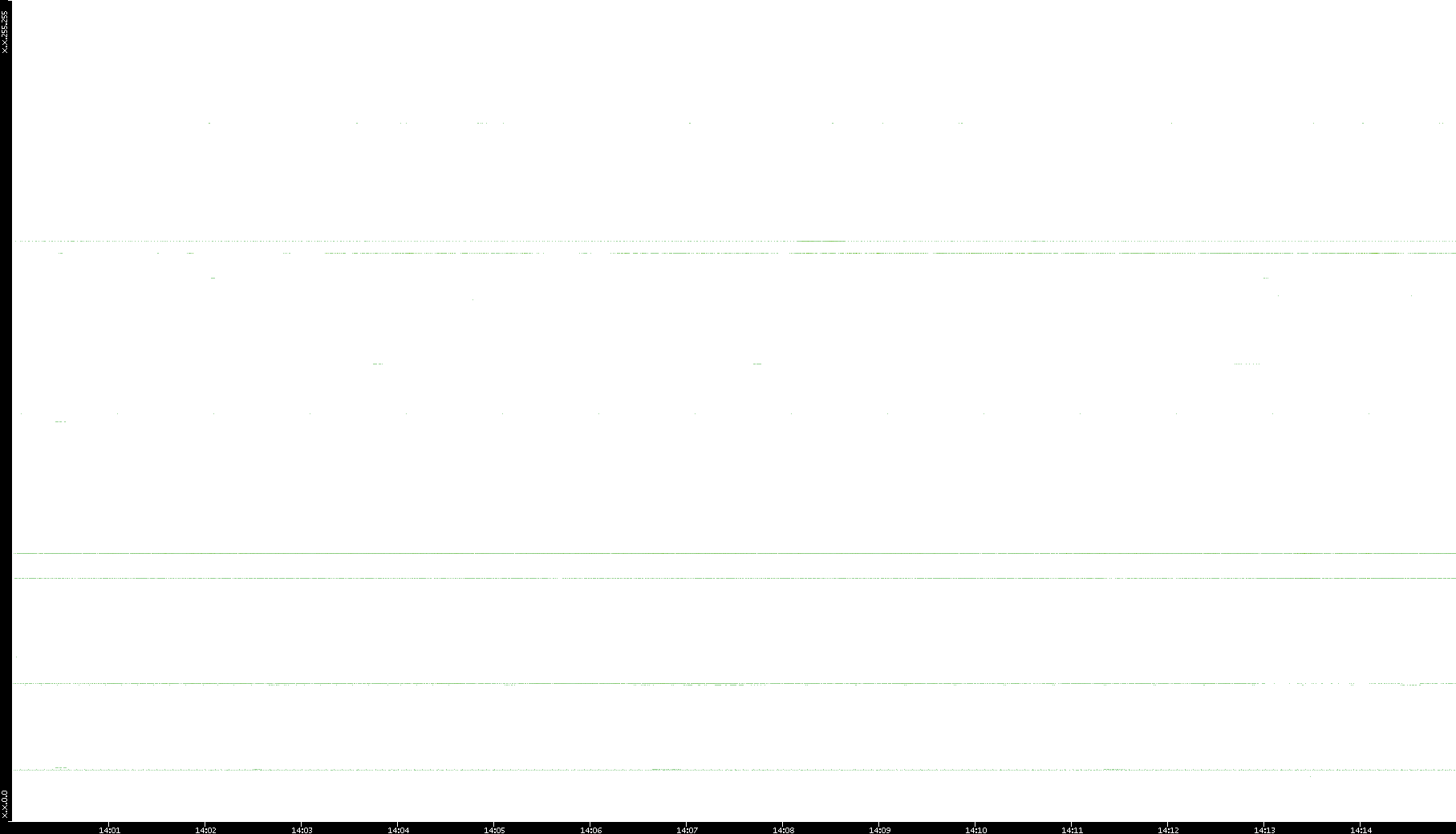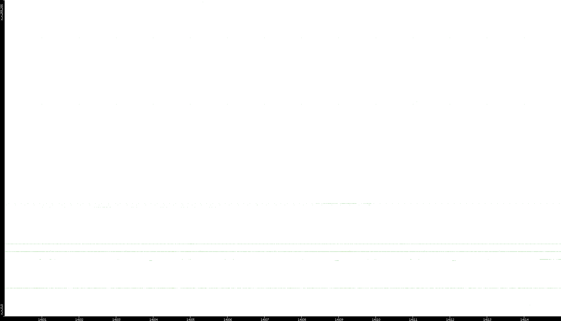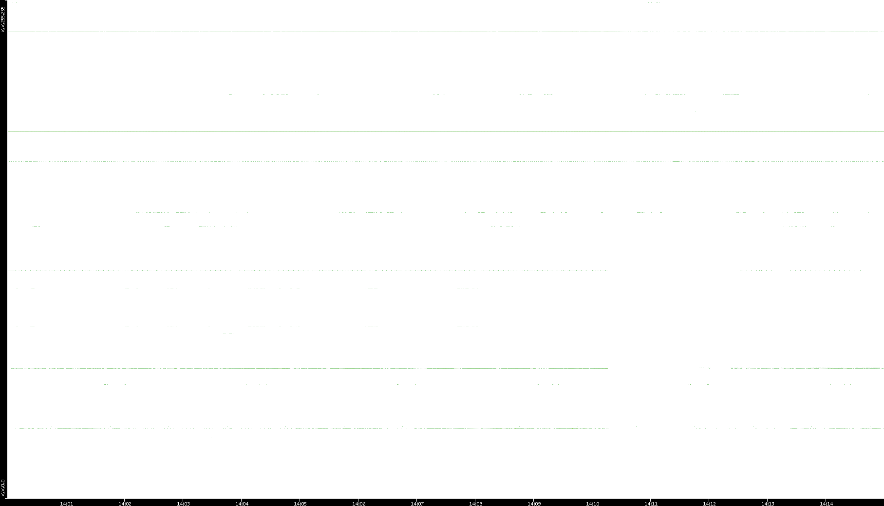2005/07/08 Dest. IP vs. Time Dest. Port vs. Time Src. IP vs. Time Src. Port vs. Time Nb. of Packets vs. Time Throughput vs. Time Average Packet Size vs. Time Entropy of Port vs. Time