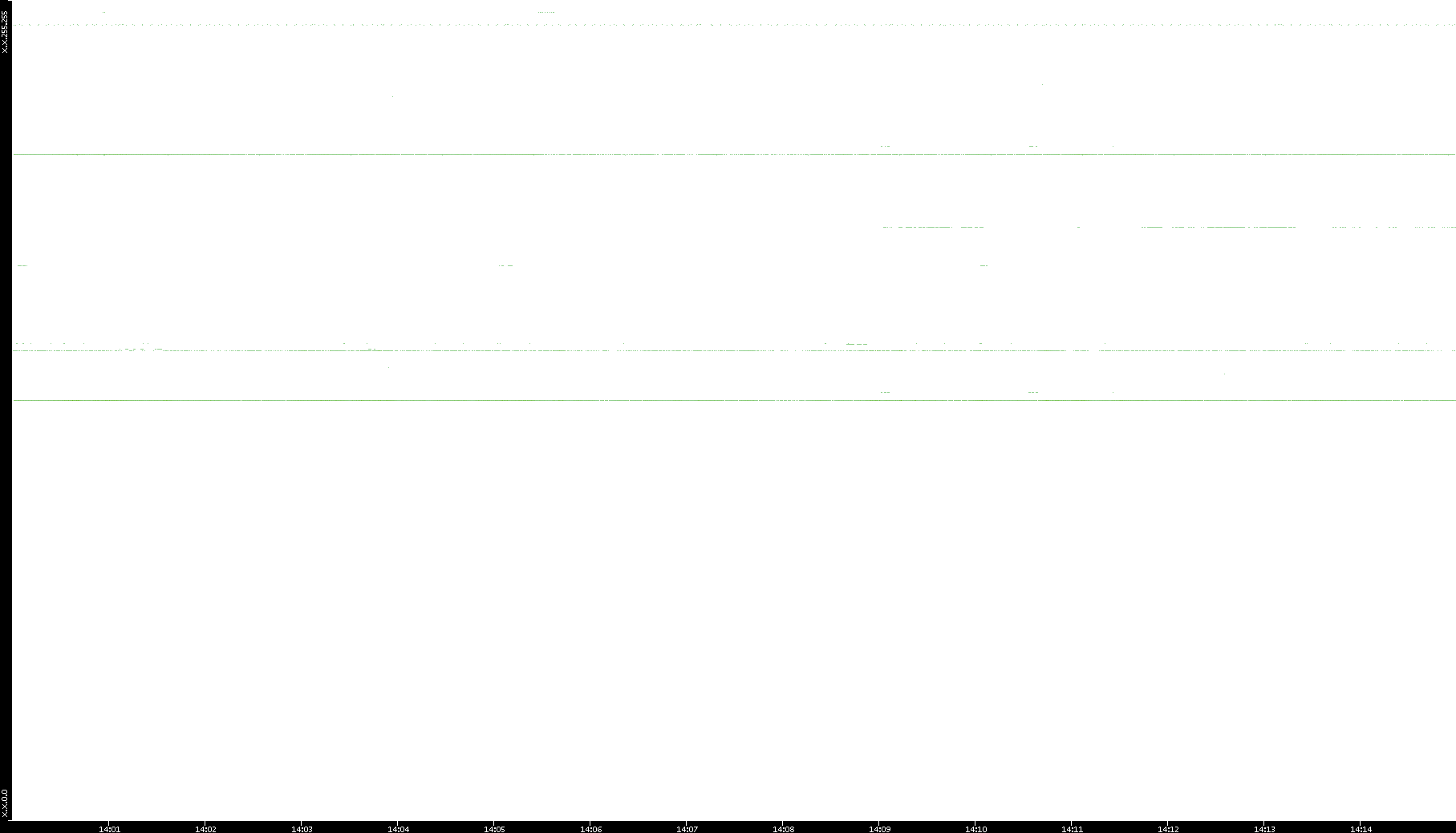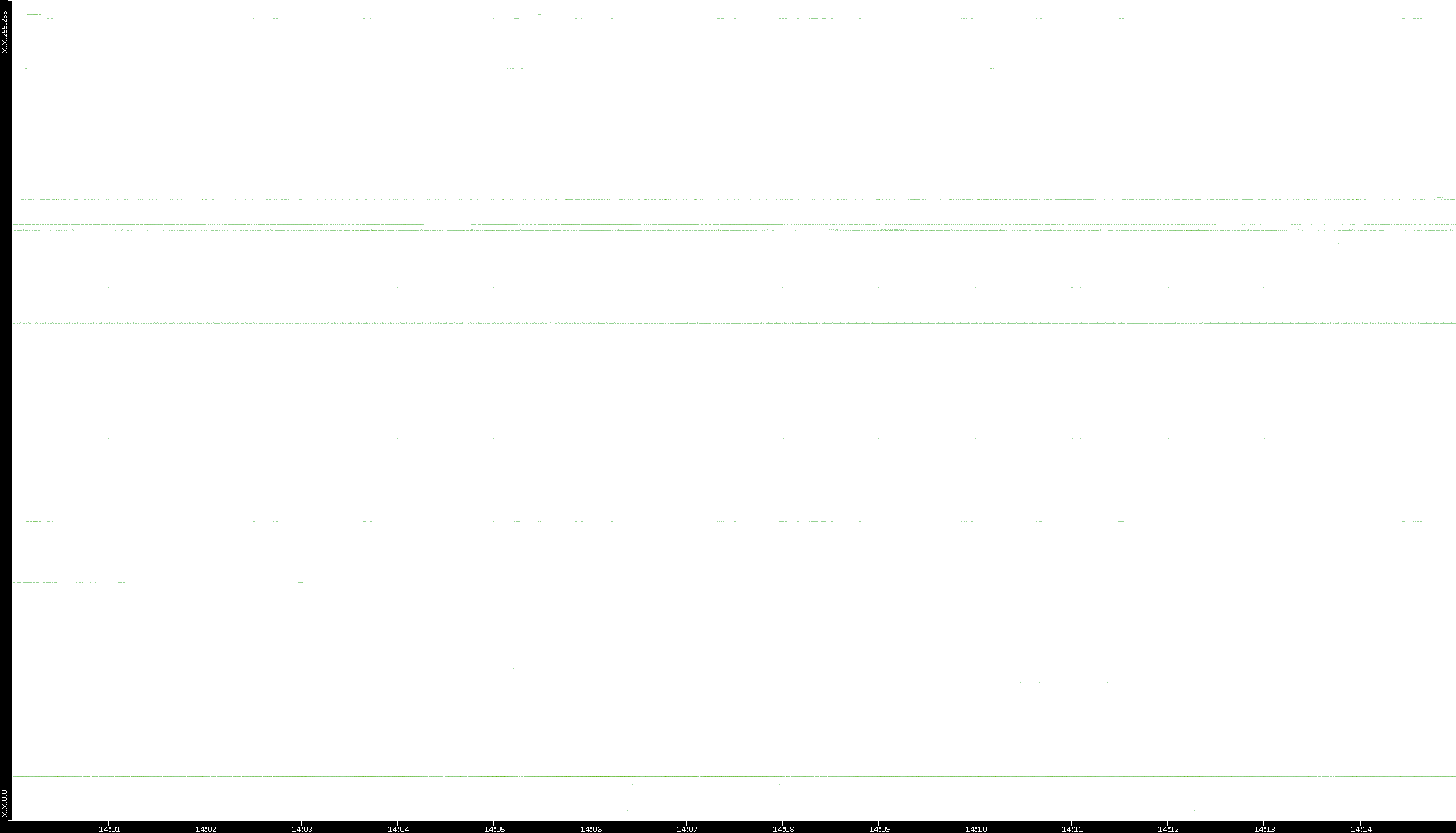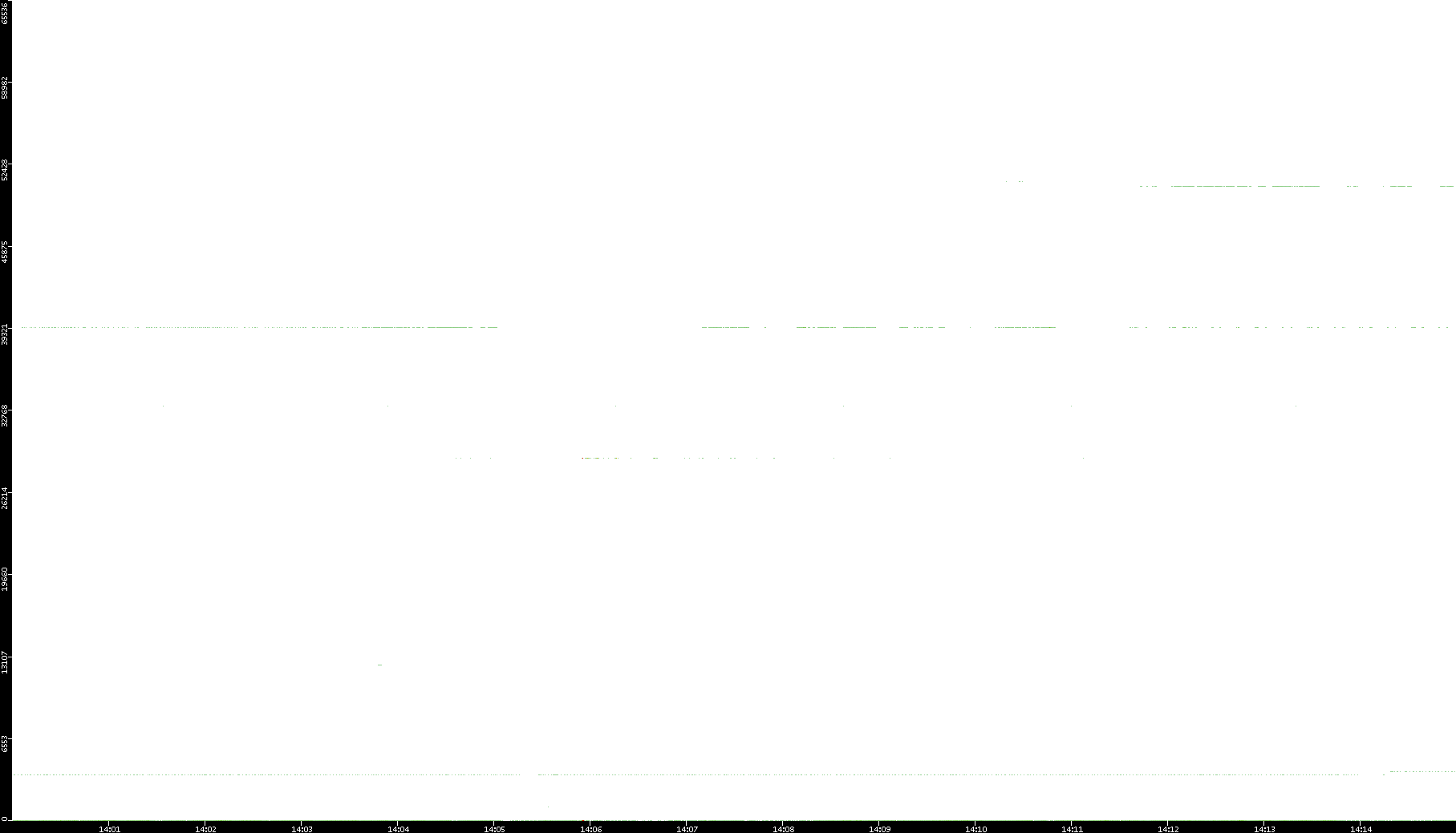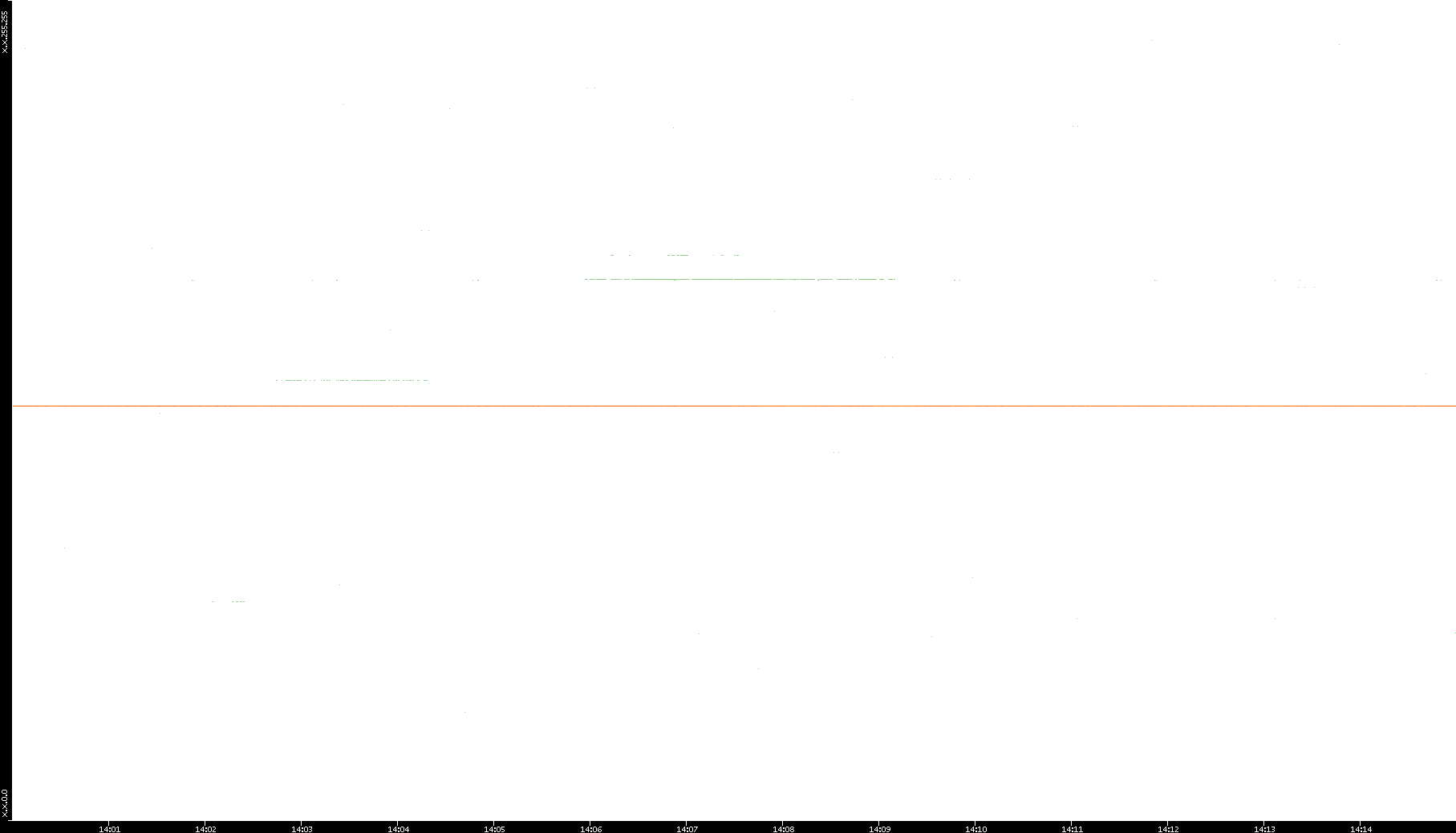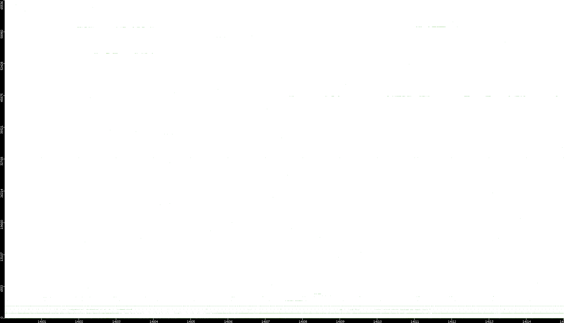 2005/07/08 Dest. IP vs. Time Dest. Port vs. Time Src. IP vs. Time Src. Port vs. Time Nb. of Packets vs. Time Throughput vs. Time Average Packet Size vs. Time Entropy of Port vs. Time