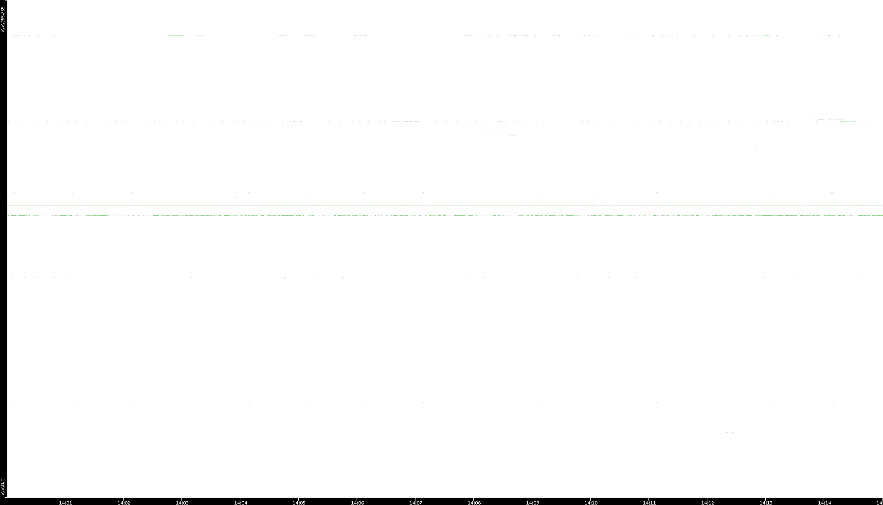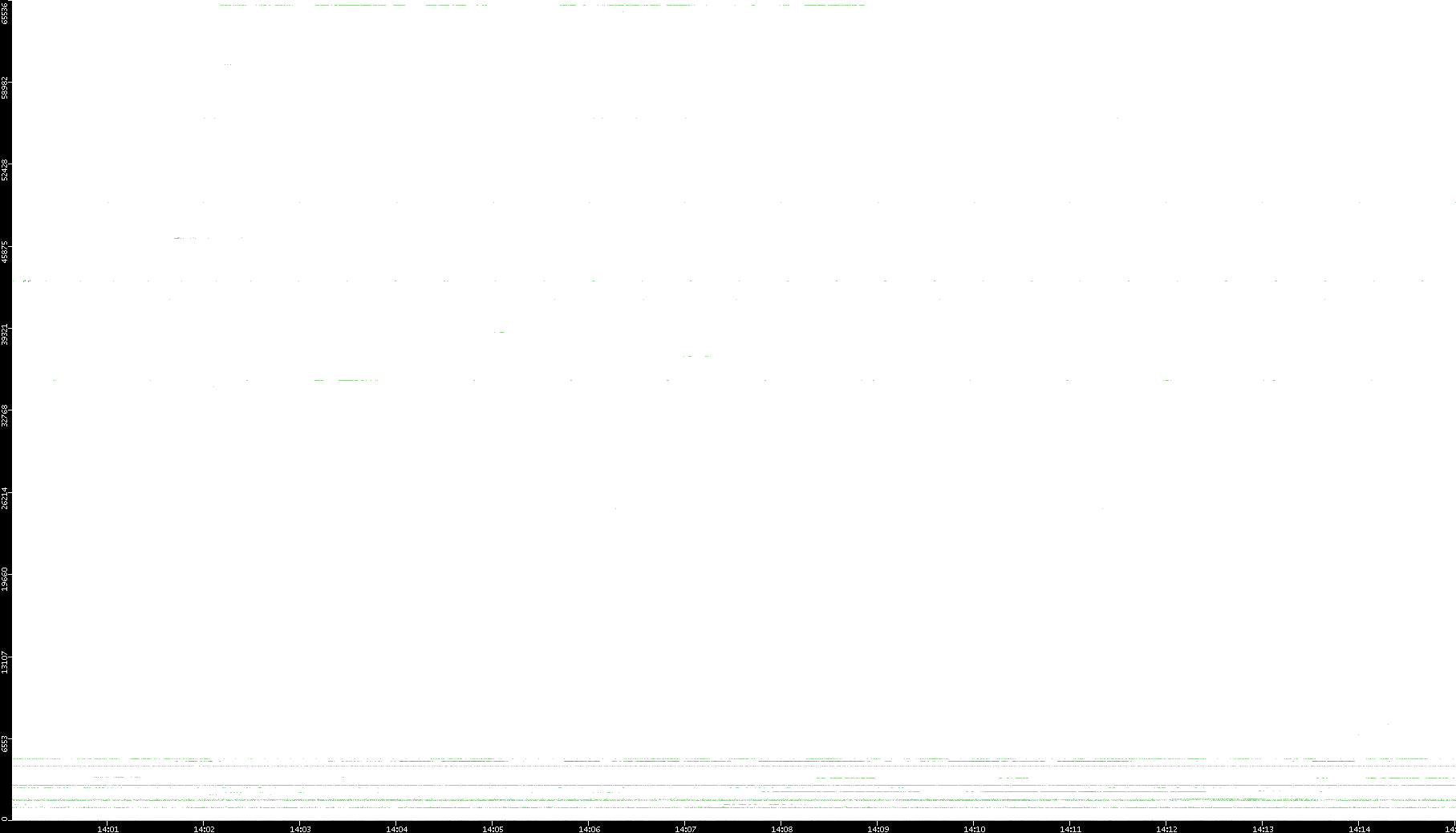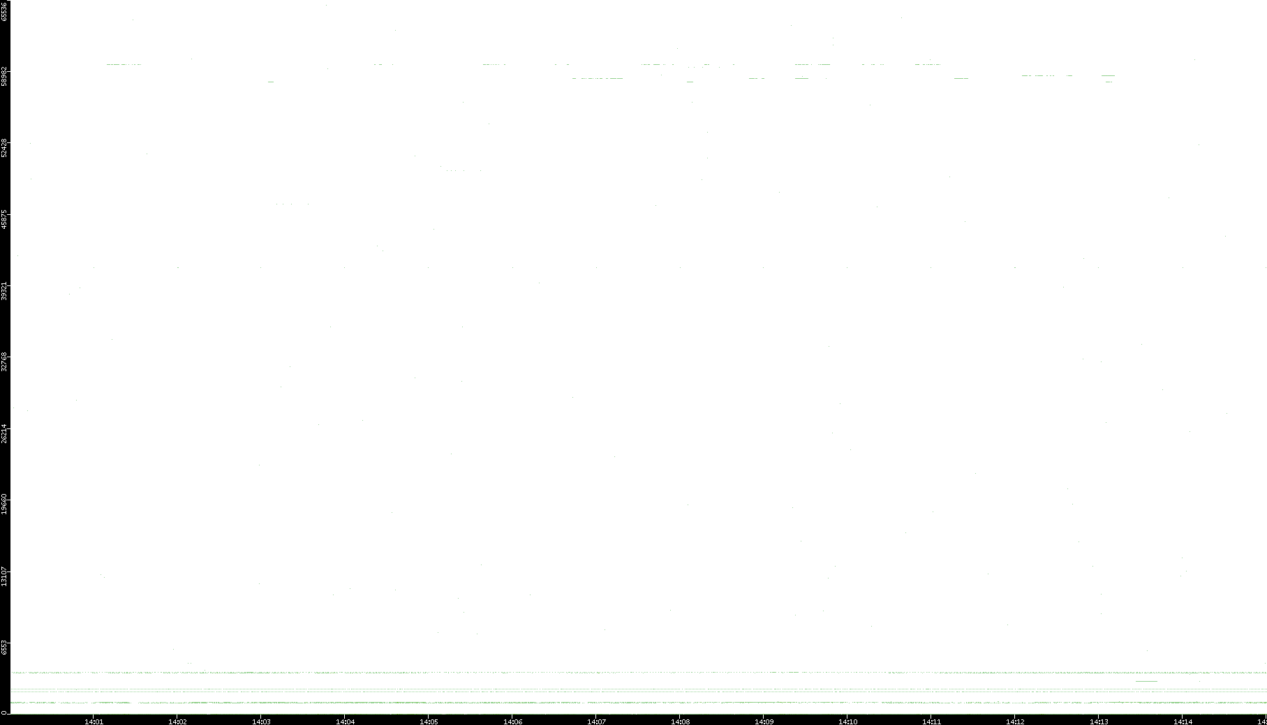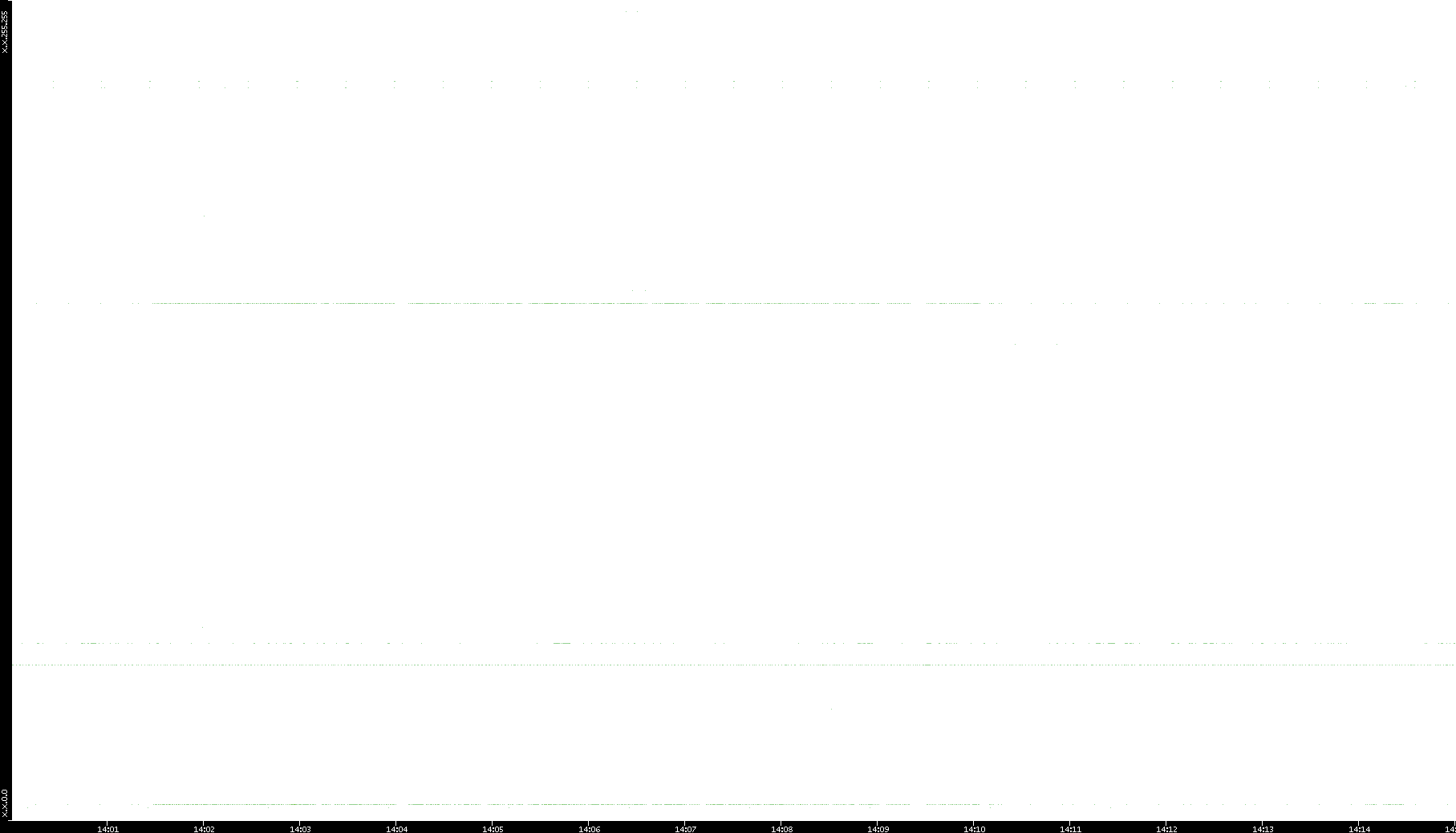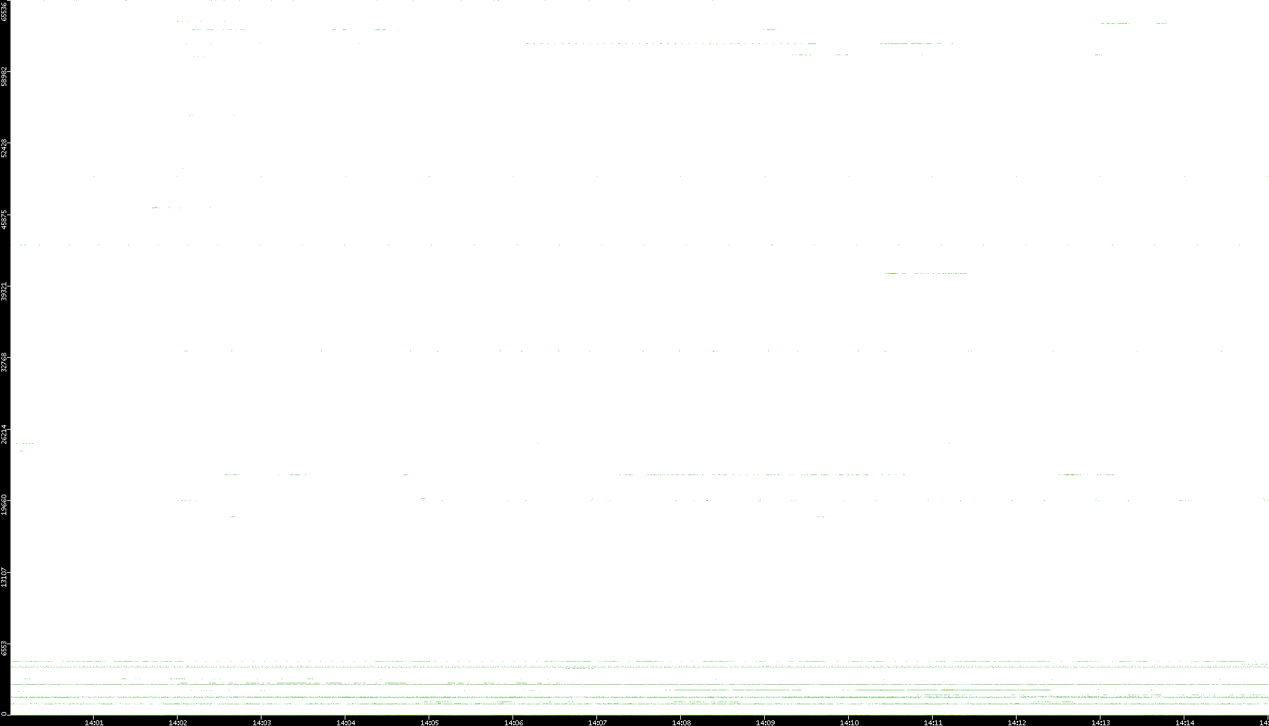 2005/07/08 Dest. IP vs. Time Dest. Port vs. Time Src. IP vs. Time Src. Port vs. Time Nb. of Packets vs. Time Throughput vs. Time Average Packet Size vs. Time Entropy of Port vs. Time