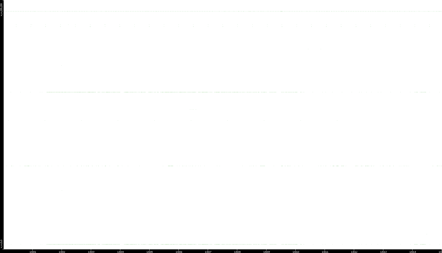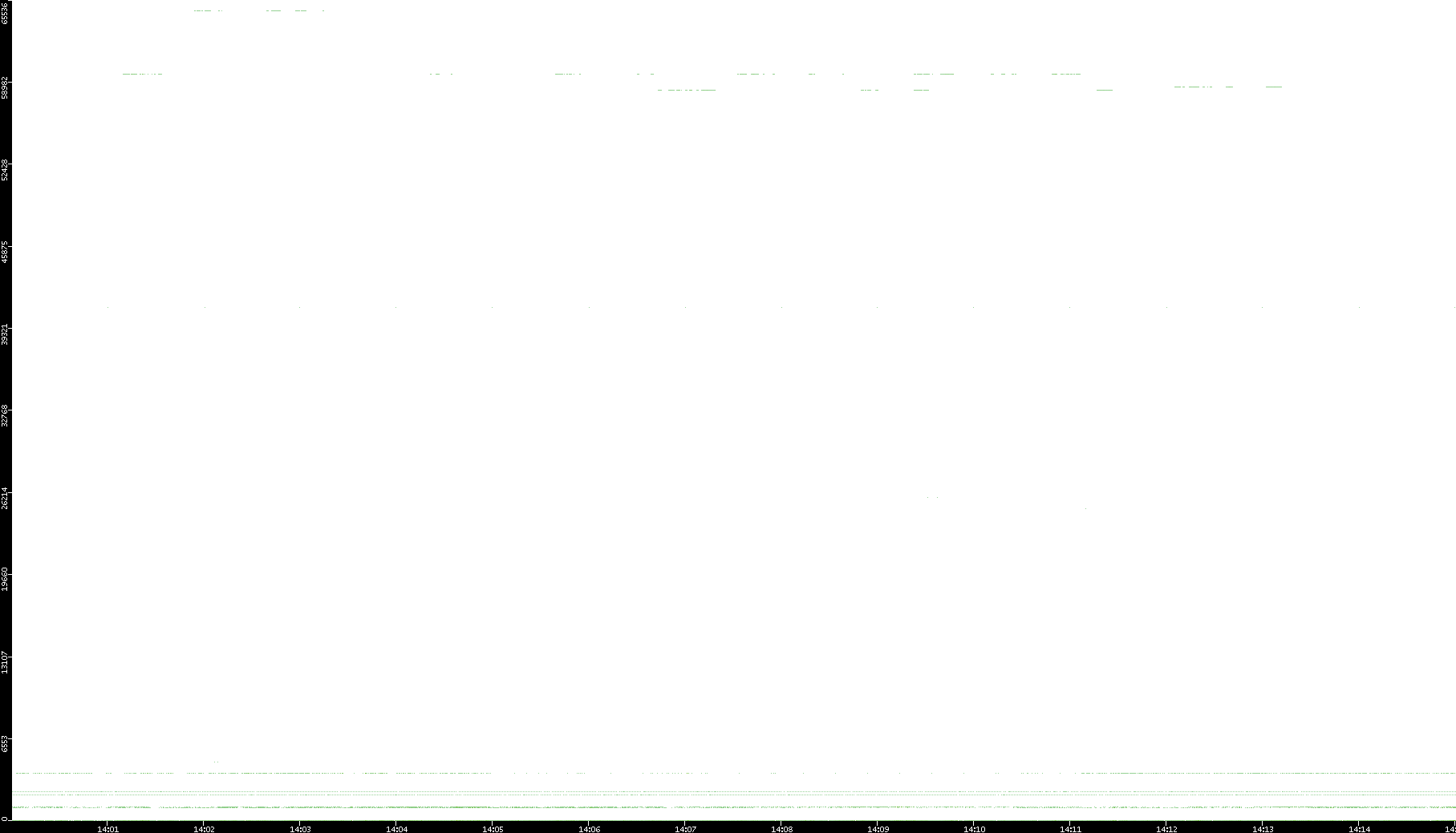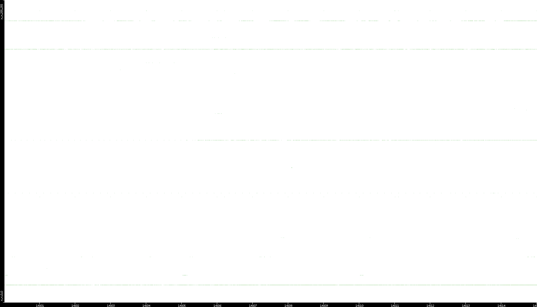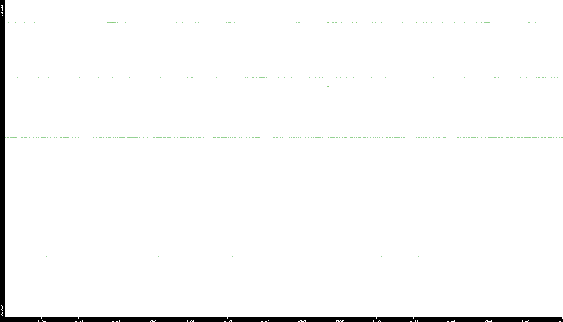 2005/07/08 Dest. IP vs. Time Dest. Port vs. Time Src. IP vs. Time Src. Port vs. Time Nb. of Packets vs. Time Throughput vs. Time Average Packet Size vs. Time Entropy of Port vs. Time