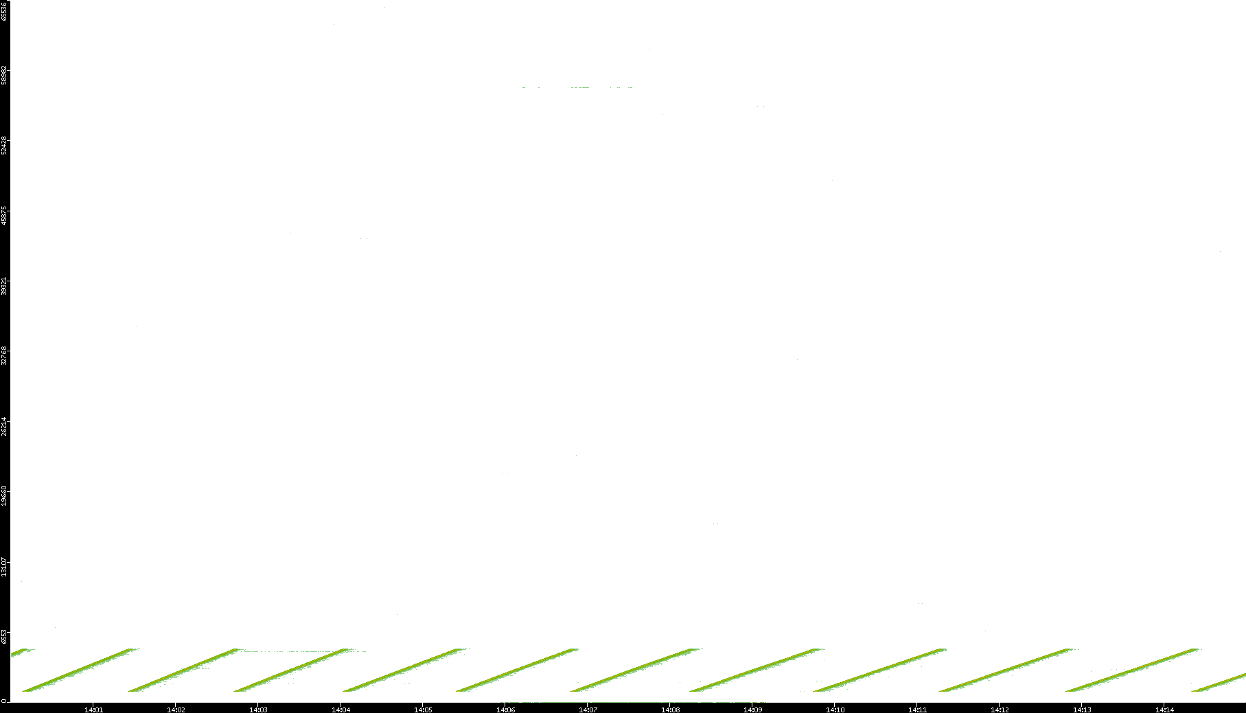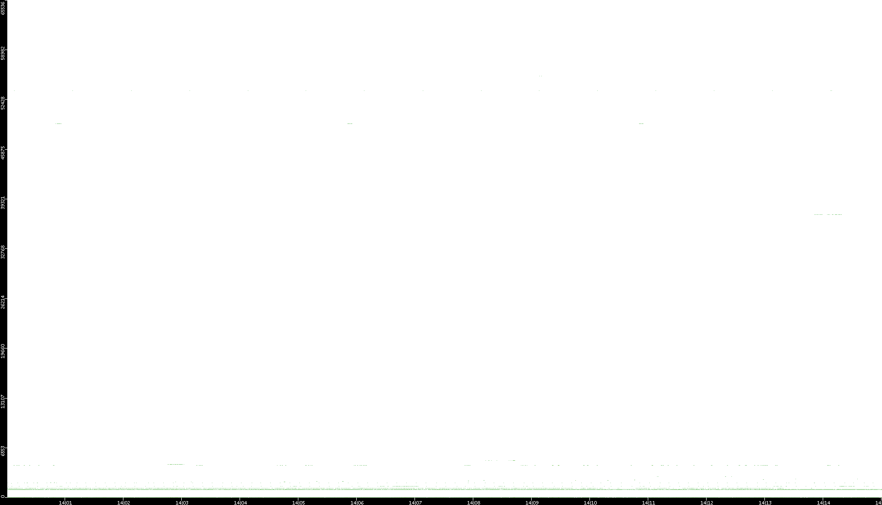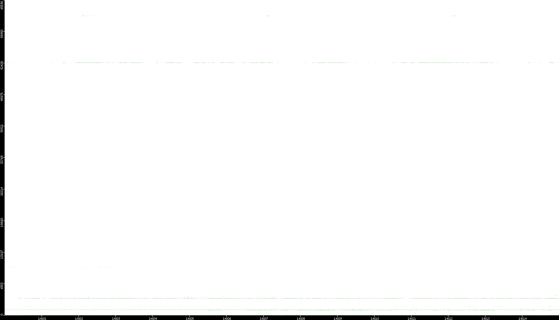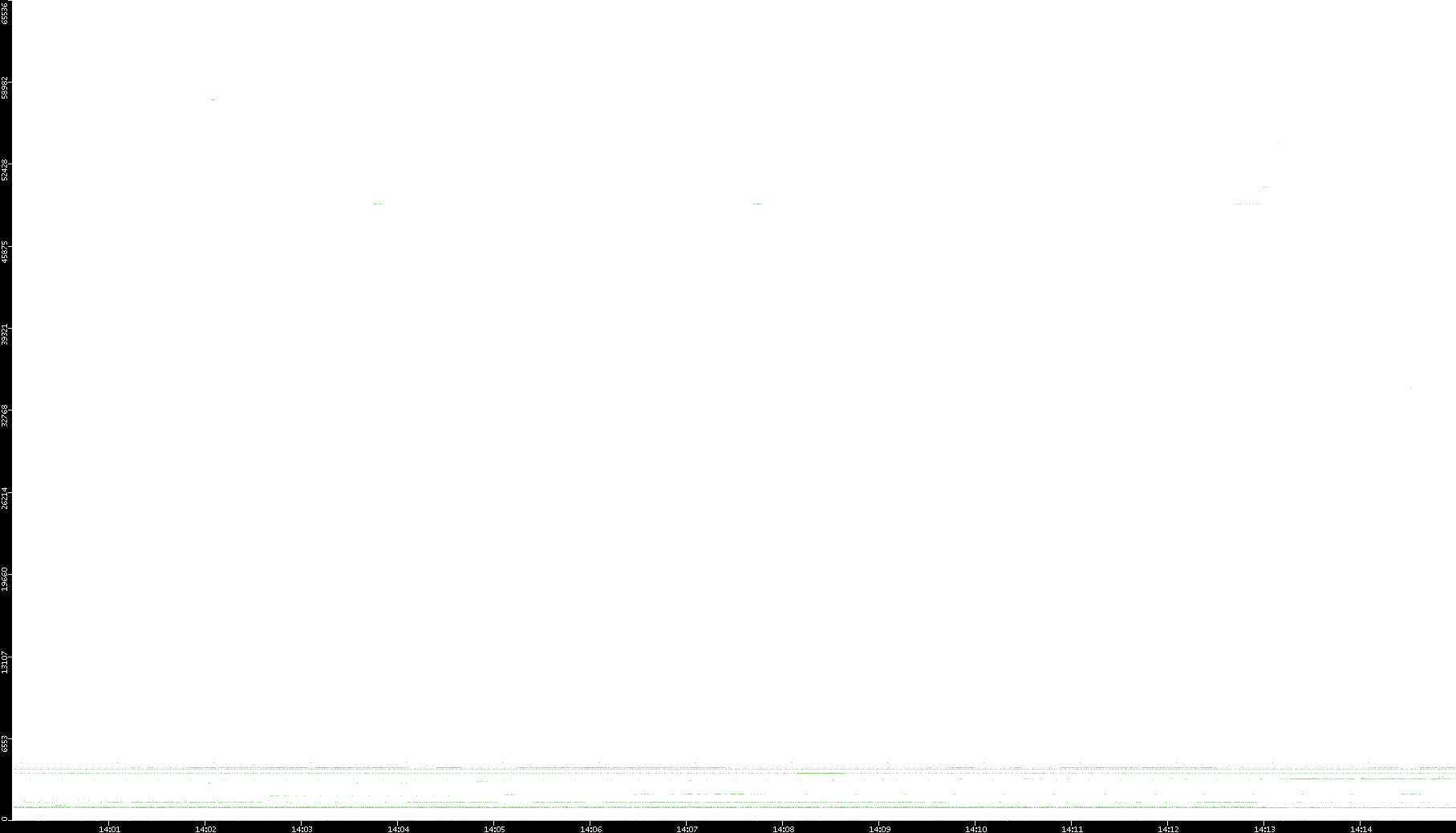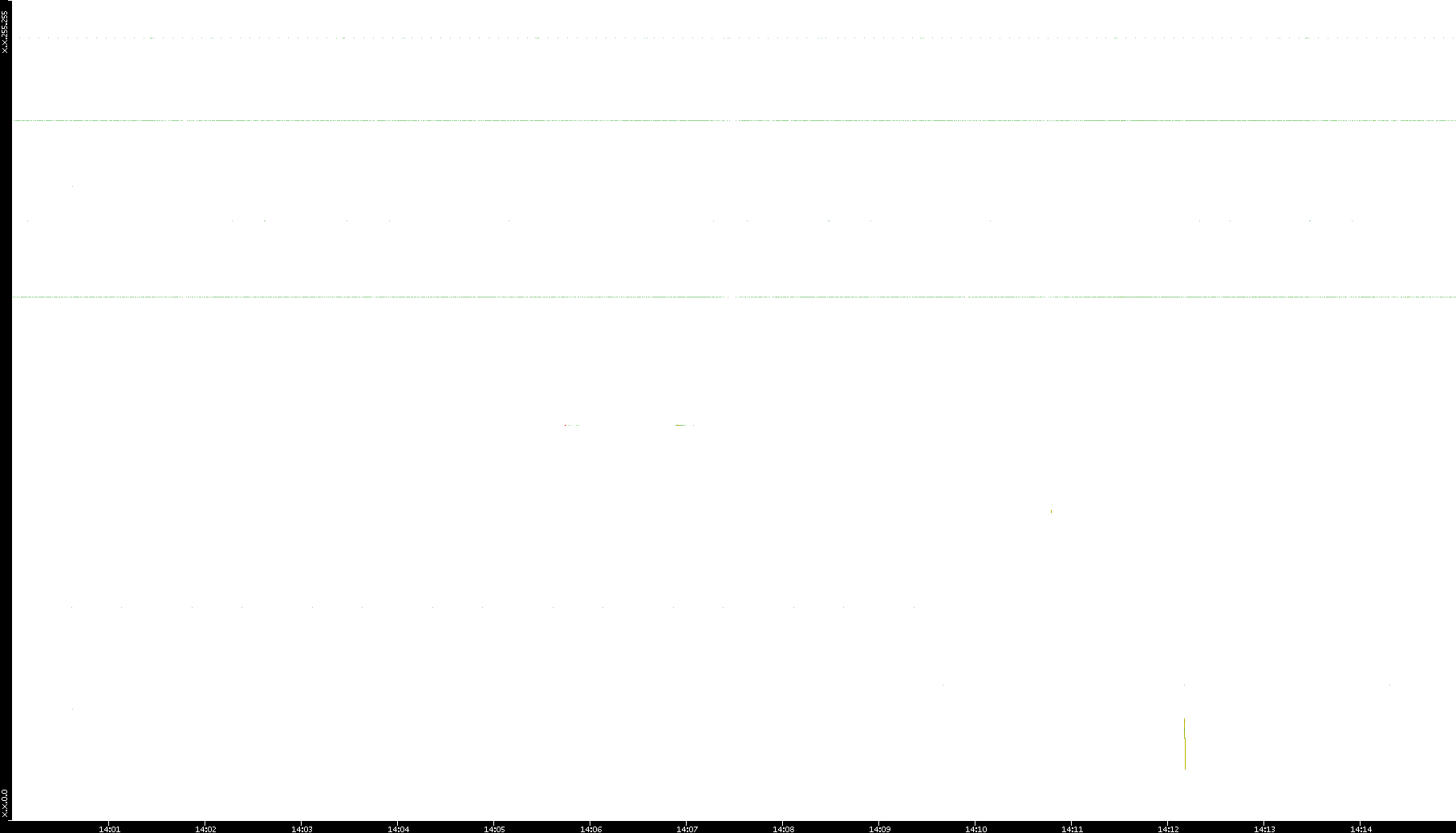 2005/07/08 Dest. IP vs. Time Dest. Port vs. Time Src. IP vs. Time Src. Port vs. Time Nb. of Packets vs. Time Throughput vs. Time Average Packet Size vs. Time Entropy of Port vs. Time