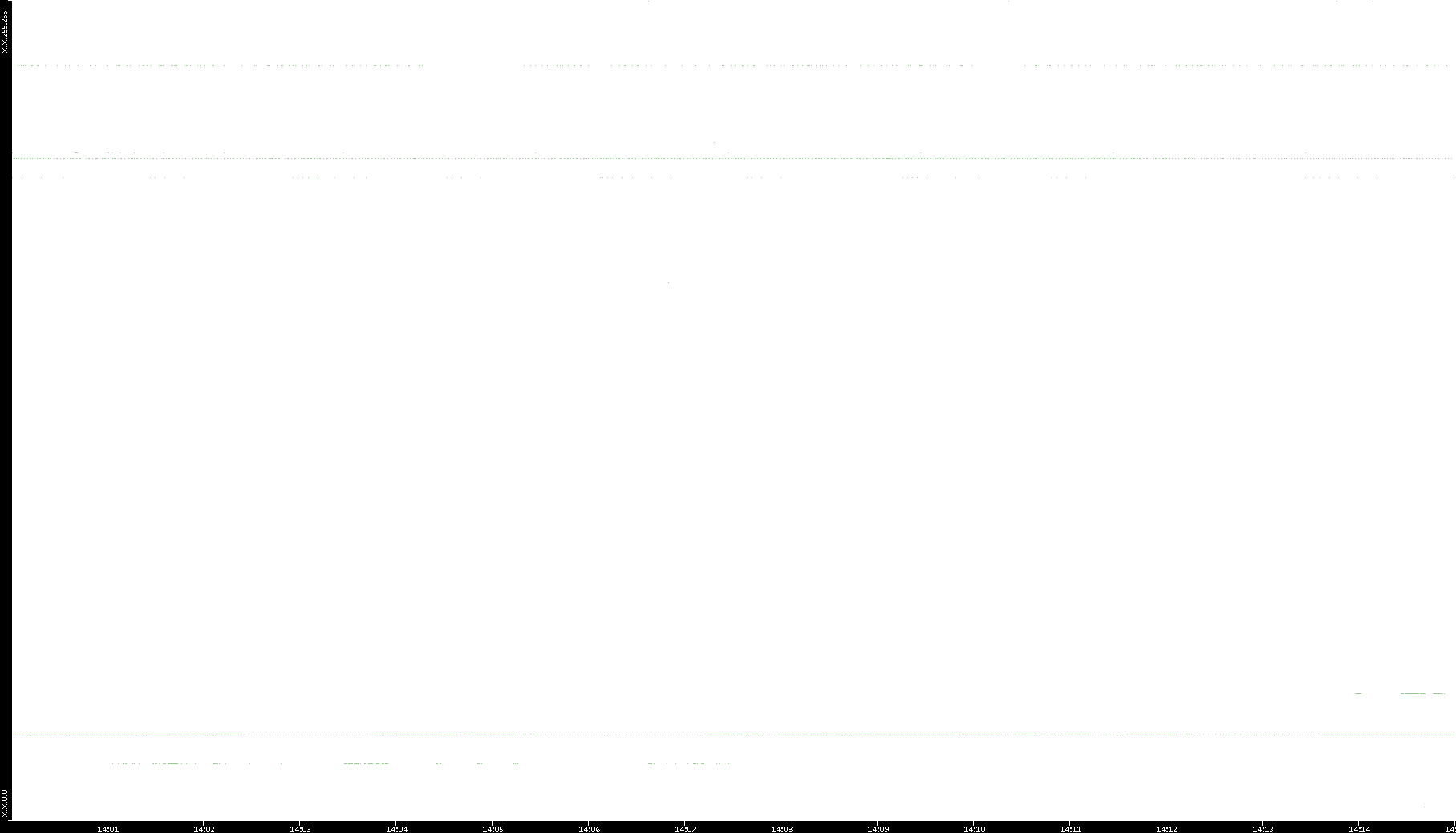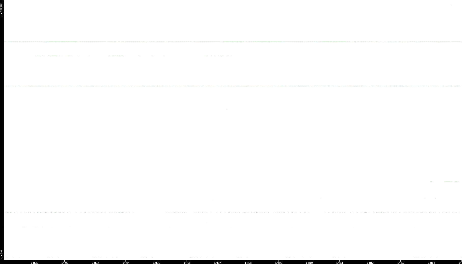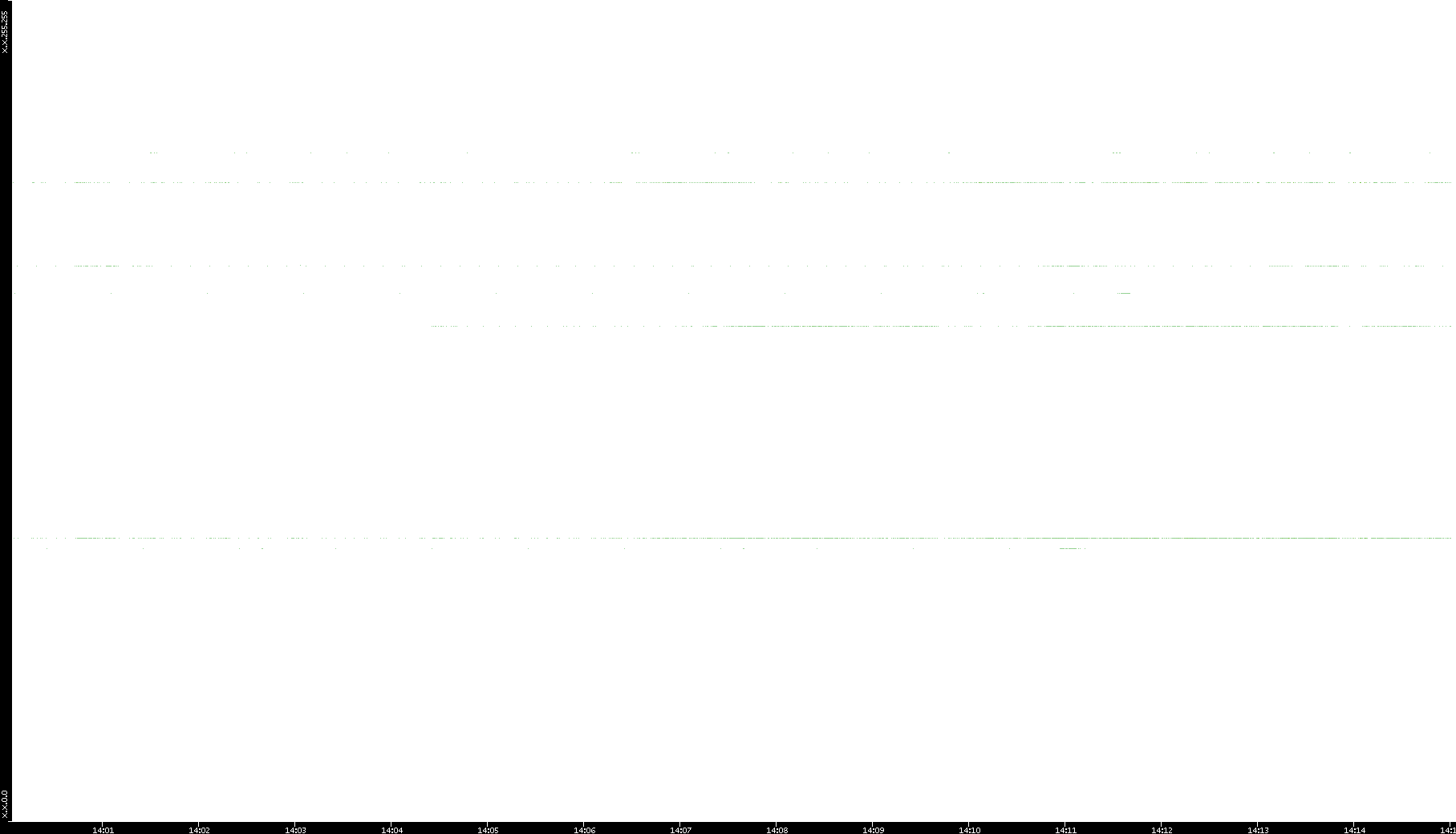 2005/07/01 Dest. IP vs. Time Dest. Port vs. Time Src. IP vs. Time Src. Port vs. Time Nb. of Packets vs. Time Throughput vs. Time Average Packet Size vs. Time Entropy of Port vs. Time
