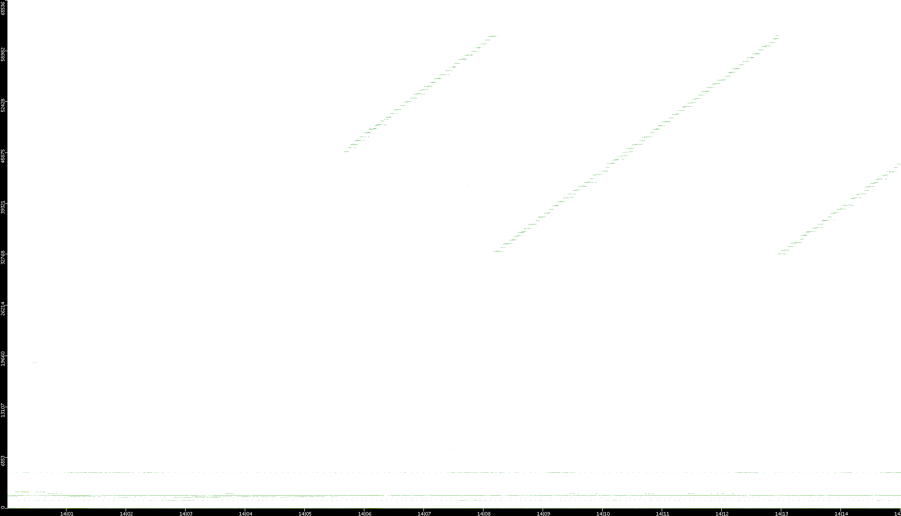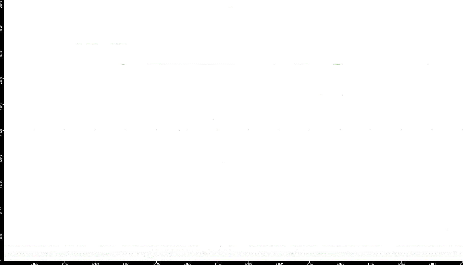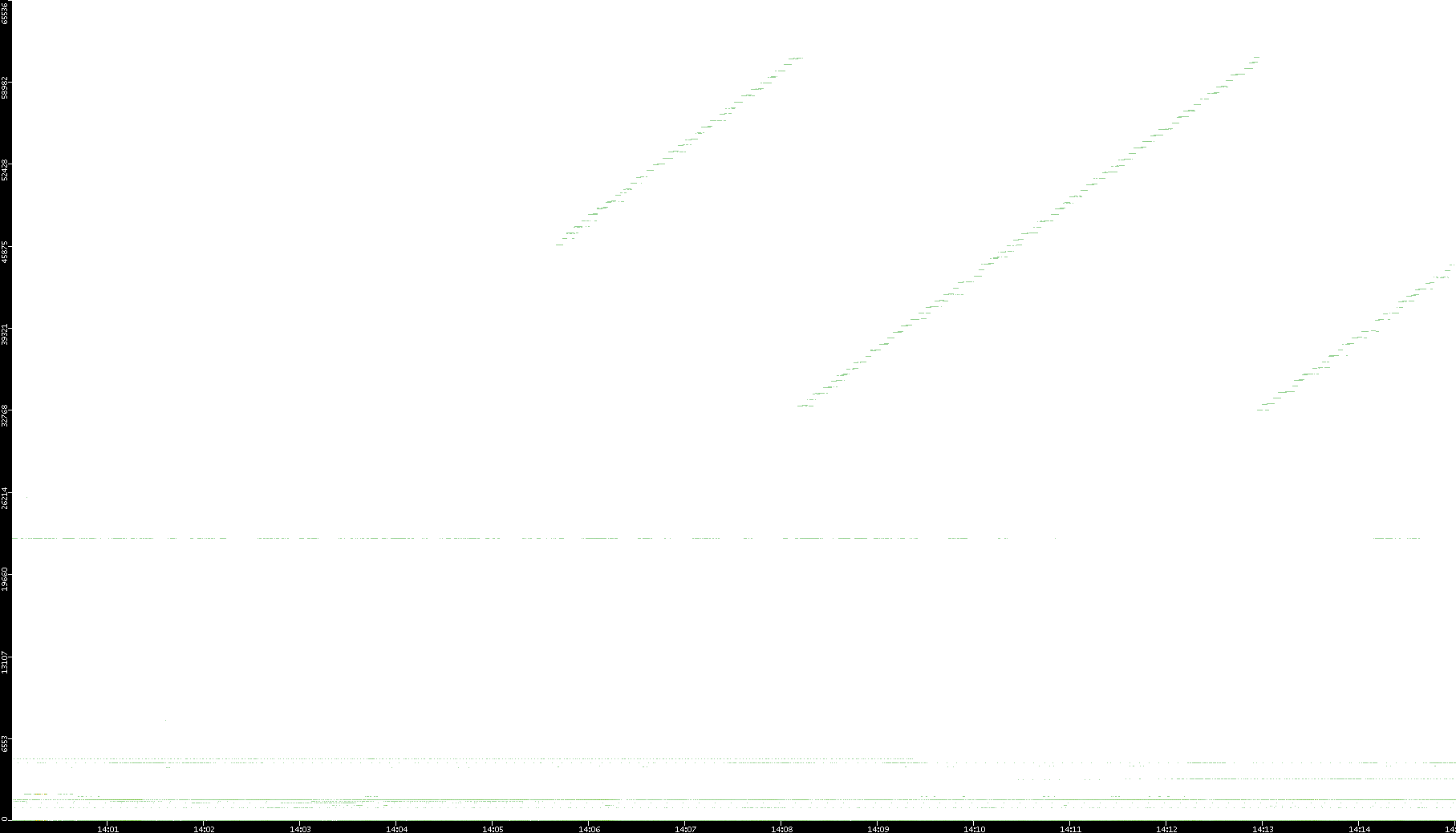 2005/07/01 Dest. IP vs. Time Dest. Port vs. Time Src. IP vs. Time Src. Port vs. Time Nb. of Packets vs. Time Throughput vs. Time Average Packet Size vs. Time Entropy of Port vs. Time