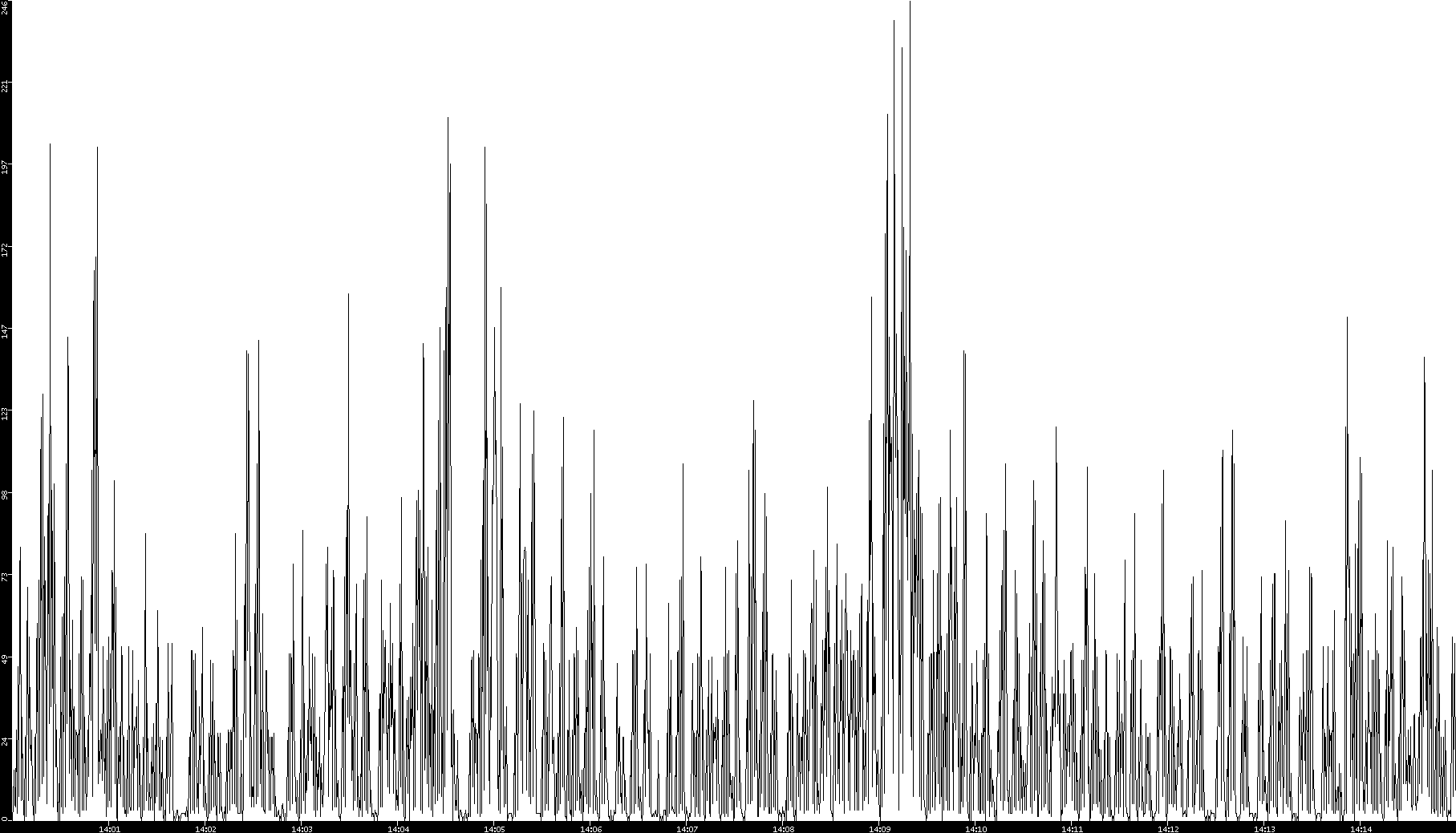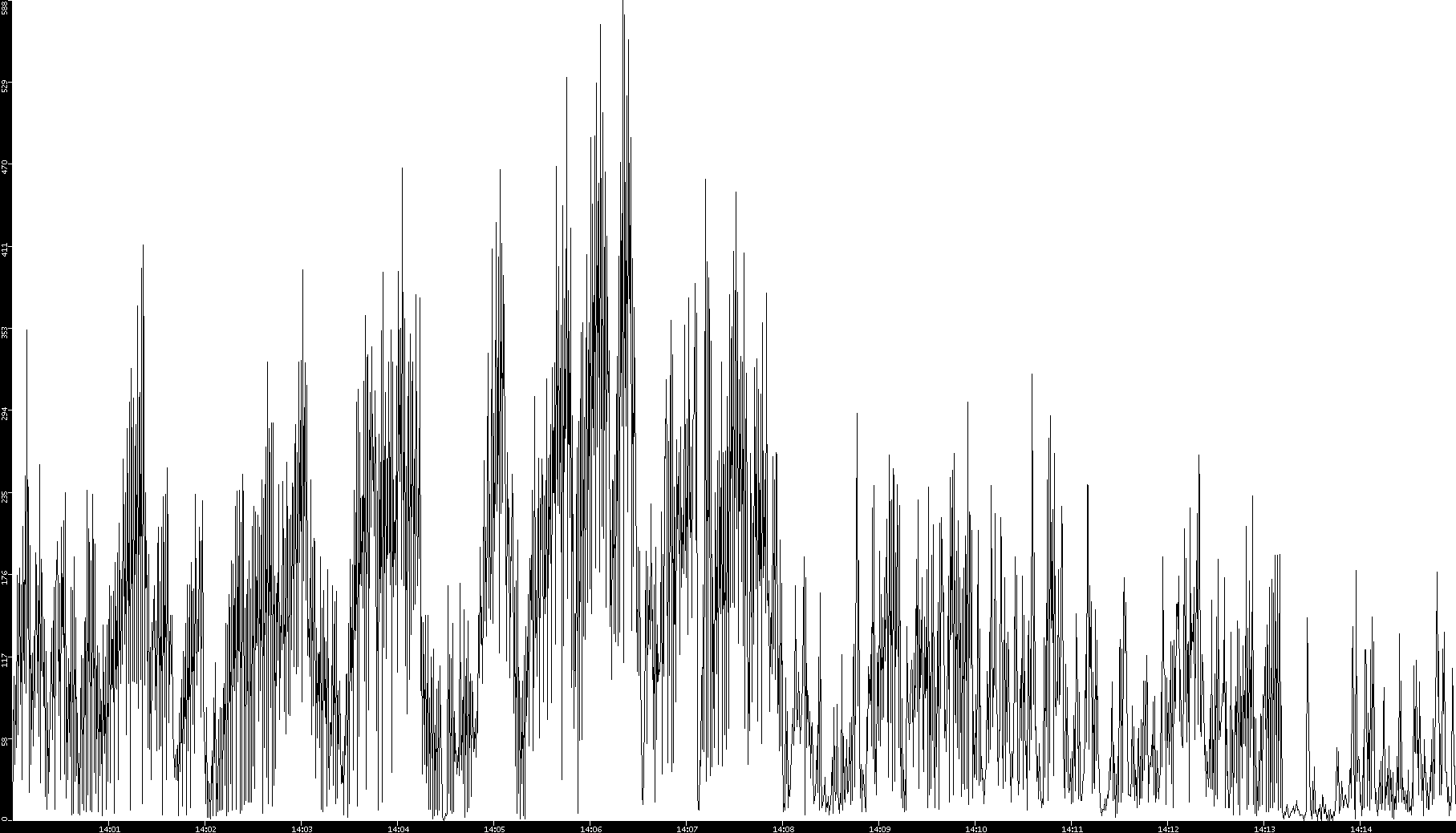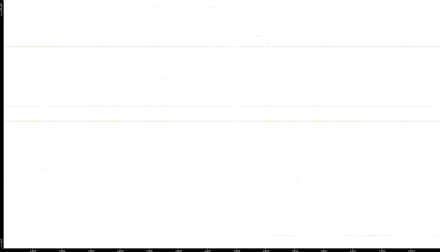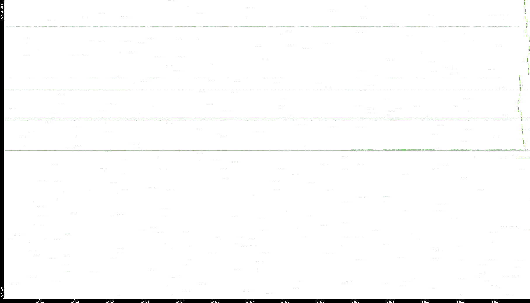 2005/07/13 Dest. IP vs. Time Dest. Port vs. Time Src. IP vs. Time Src. Port vs. Time Nb. of Packets vs. Time Throughput vs. Time Average Packet Size vs. Time Entropy of Port vs. Time