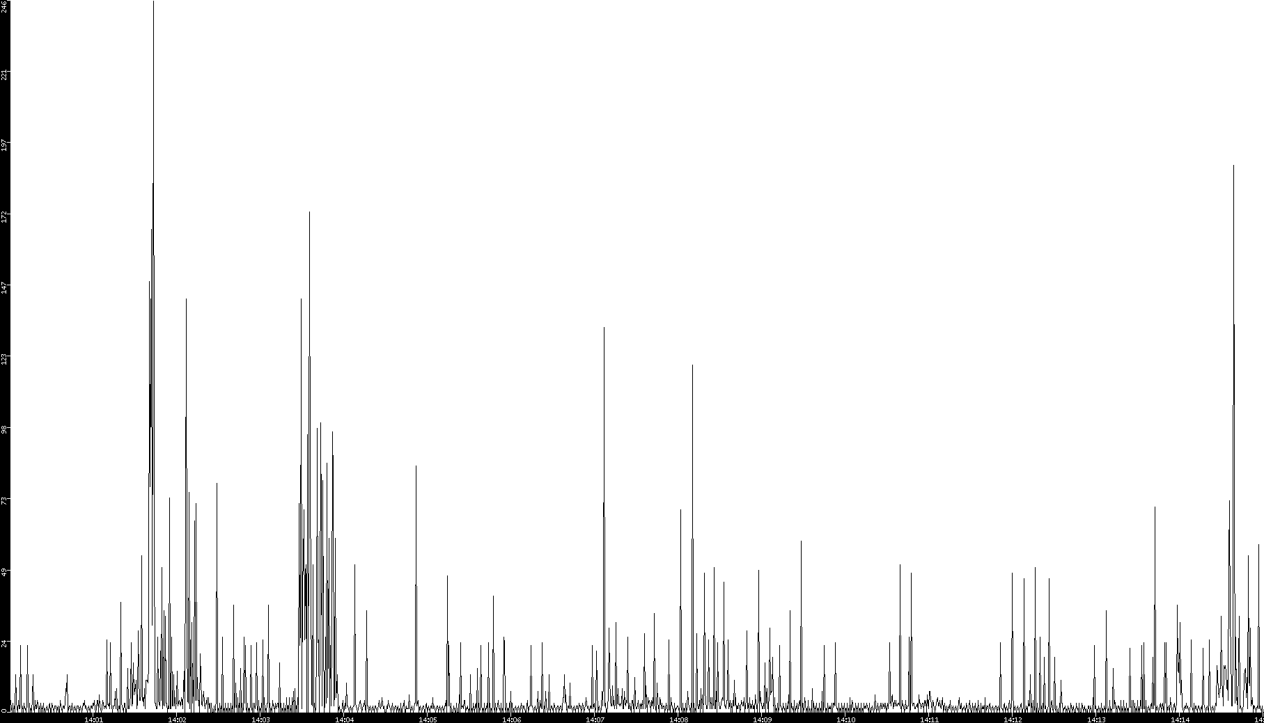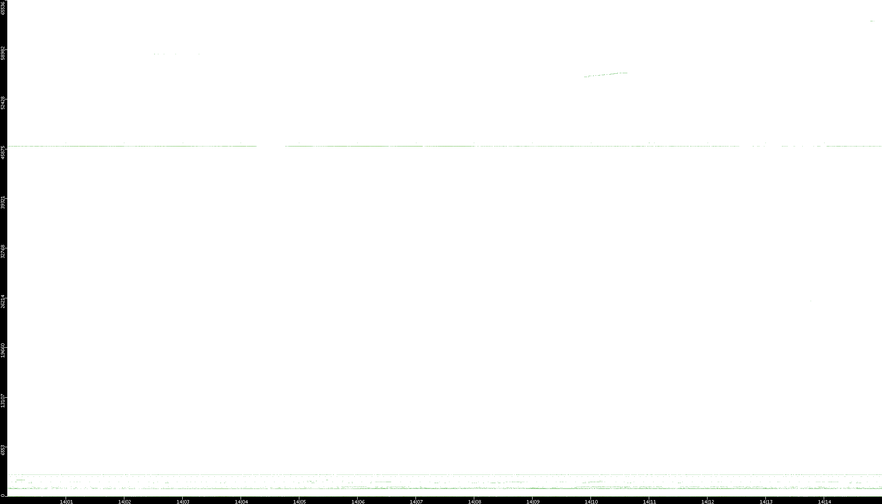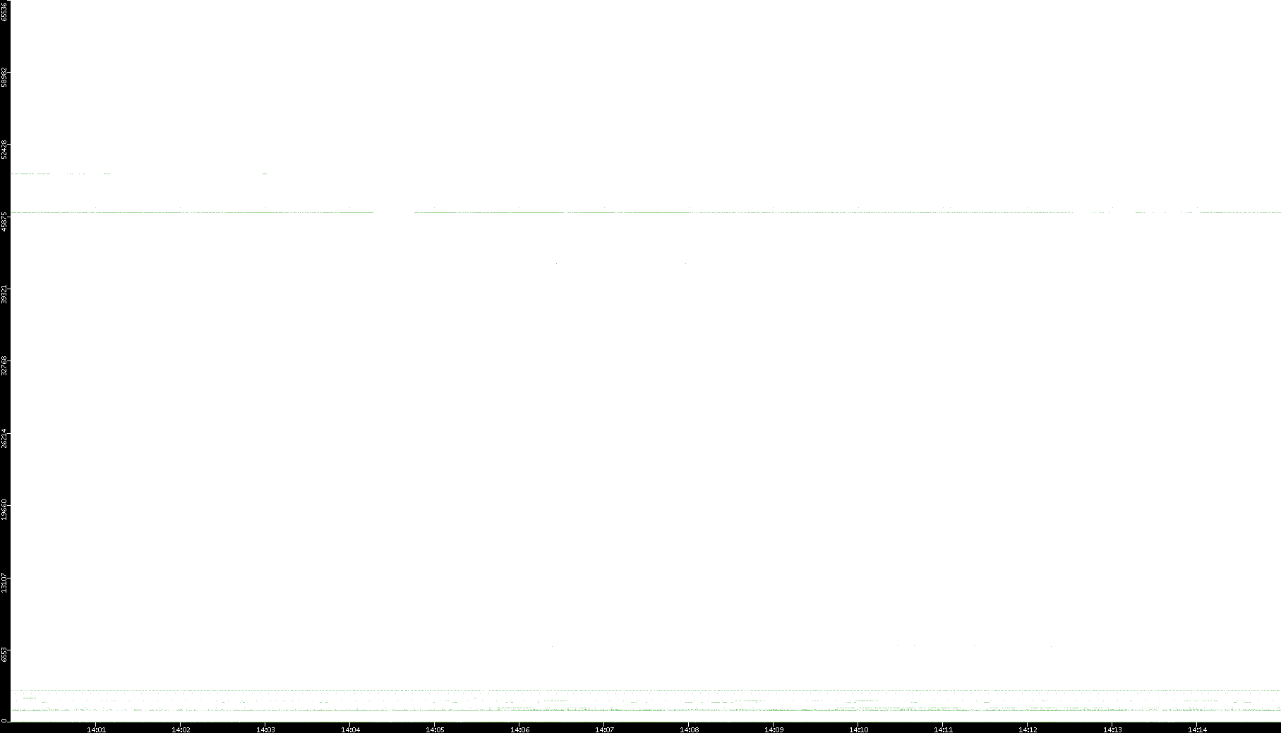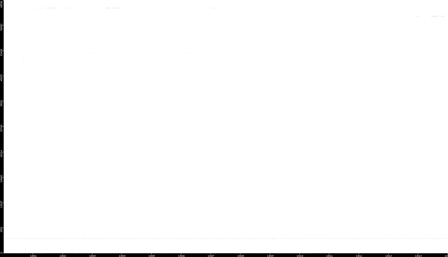 2005/07/13 Dest. IP vs. Time Dest. Port vs. Time Src. IP vs. Time Src. Port vs. Time Nb. of Packets vs. Time Throughput vs. Time Average Packet Size vs. Time Entropy of Port vs. Time