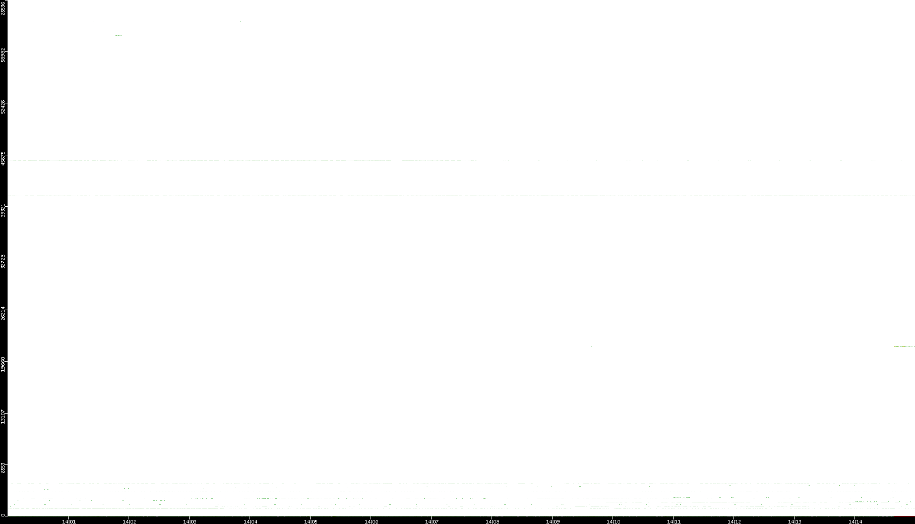 2005/07/15 Dest. IP vs. Time Dest. Port vs. Time Src. IP vs. Time Src. Port vs. Time Nb. of Packets vs. Time Throughput vs. Time Average Packet Size vs. Time Entropy of Port vs. Time