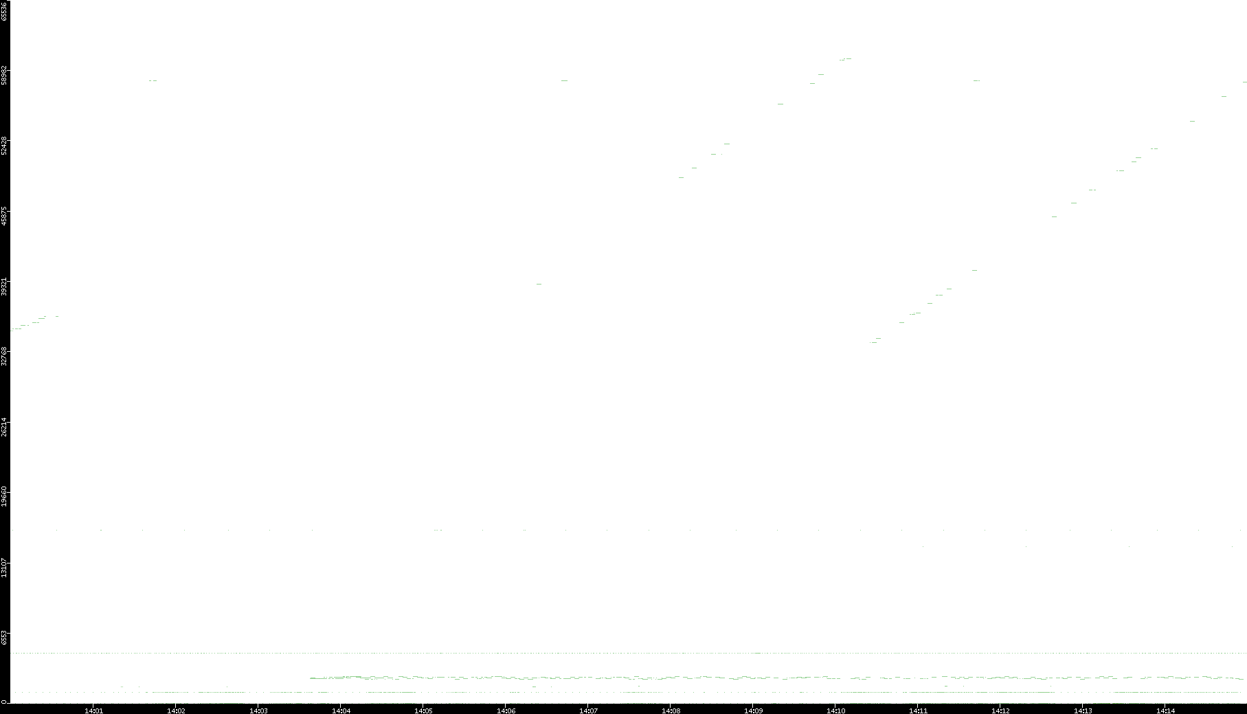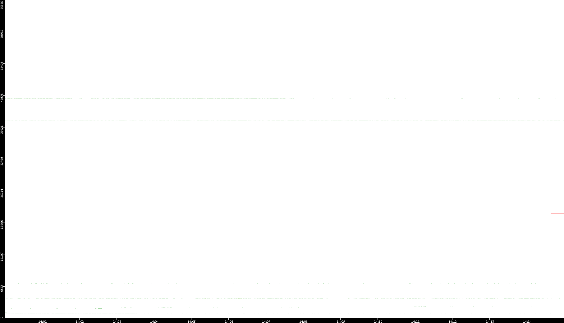 2005/07/16 Dest. IP vs. Time Dest. Port vs. Time Src. IP vs. Time Src. Port vs. Time Nb. of Packets vs. Time Throughput vs. Time Average Packet Size vs. Time Entropy of Port vs. Time