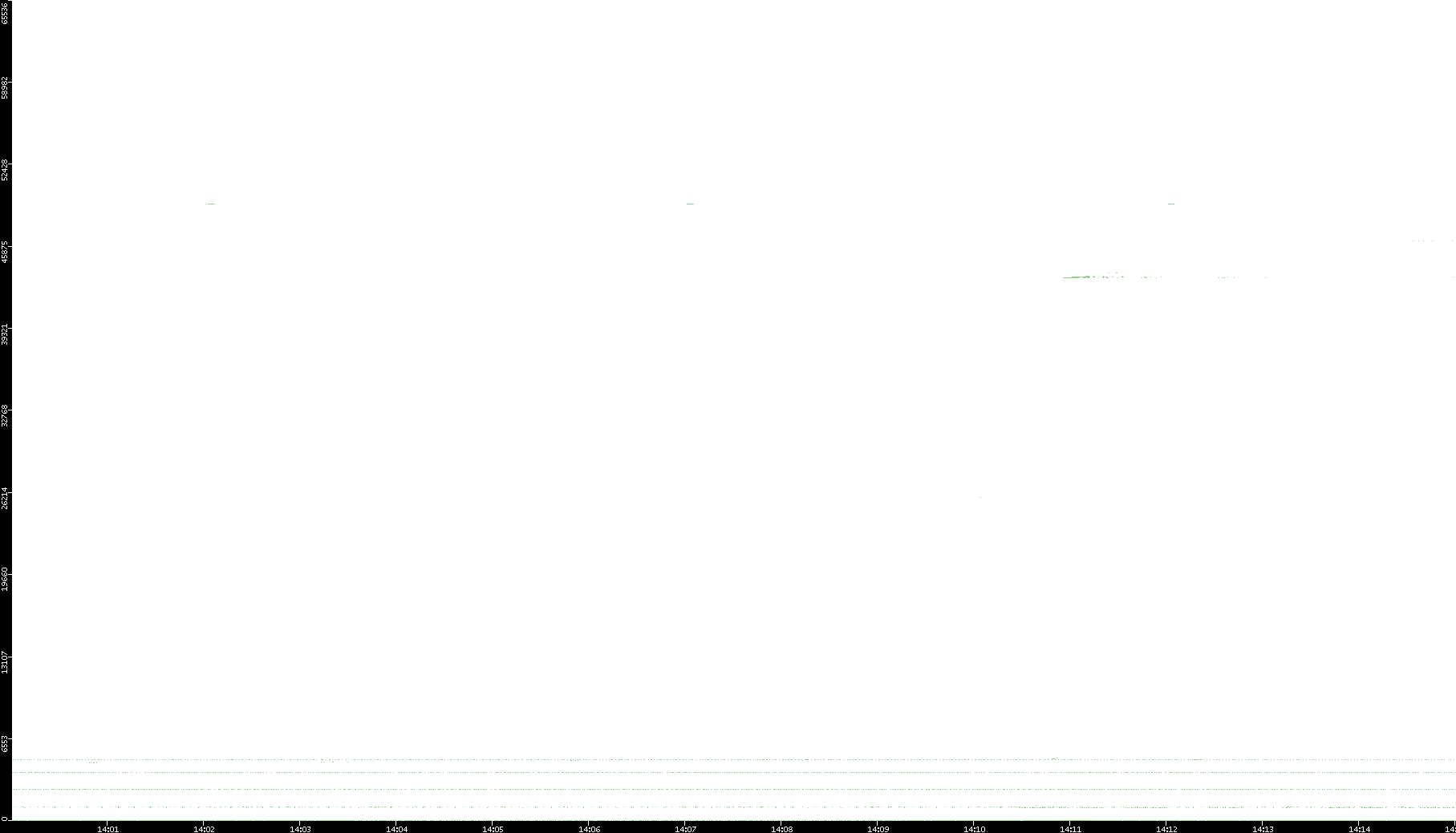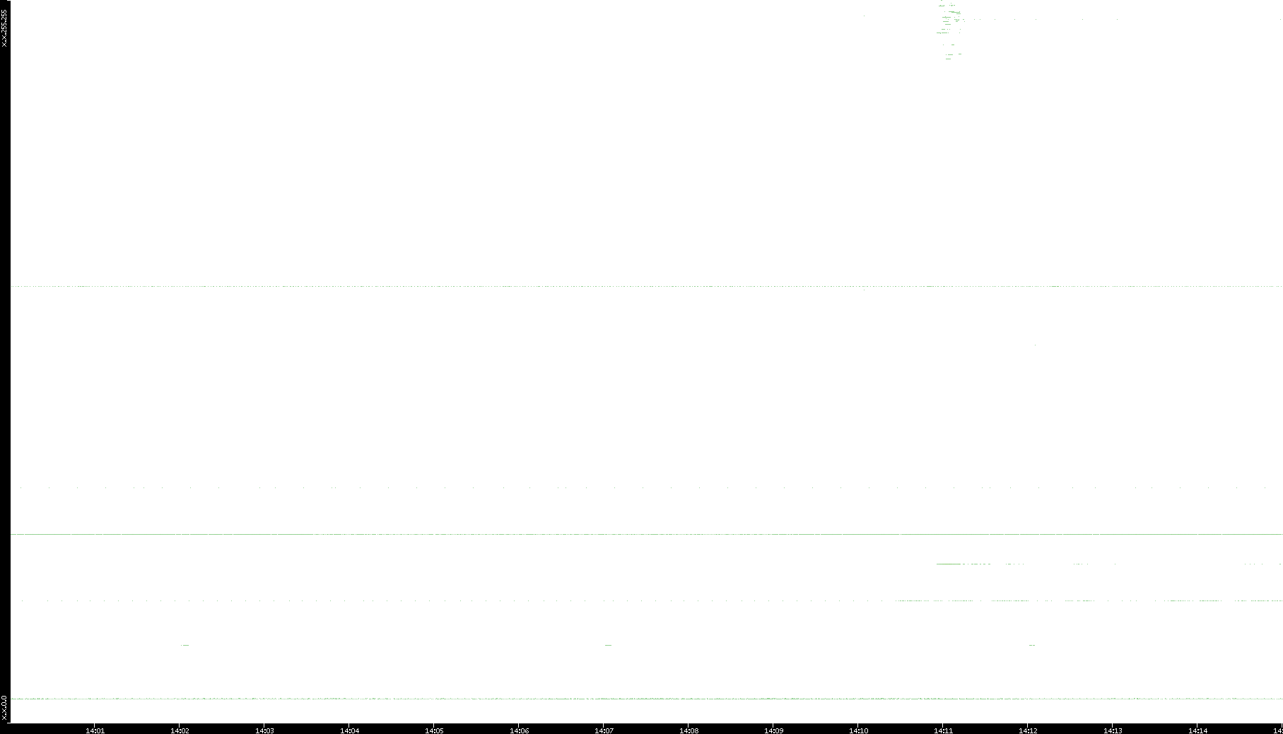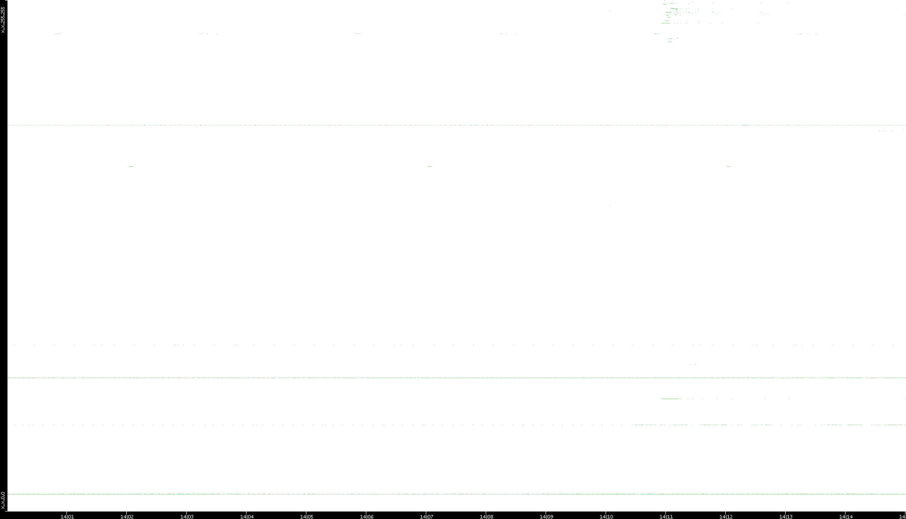2005/07/11 Dest. IP vs. Time Dest. Port vs. Time Src. IP vs. Time Src. Port vs. Time Nb. of Packets vs. Time Throughput vs. Time Average Packet Size vs. Time Entropy of Port vs. Time