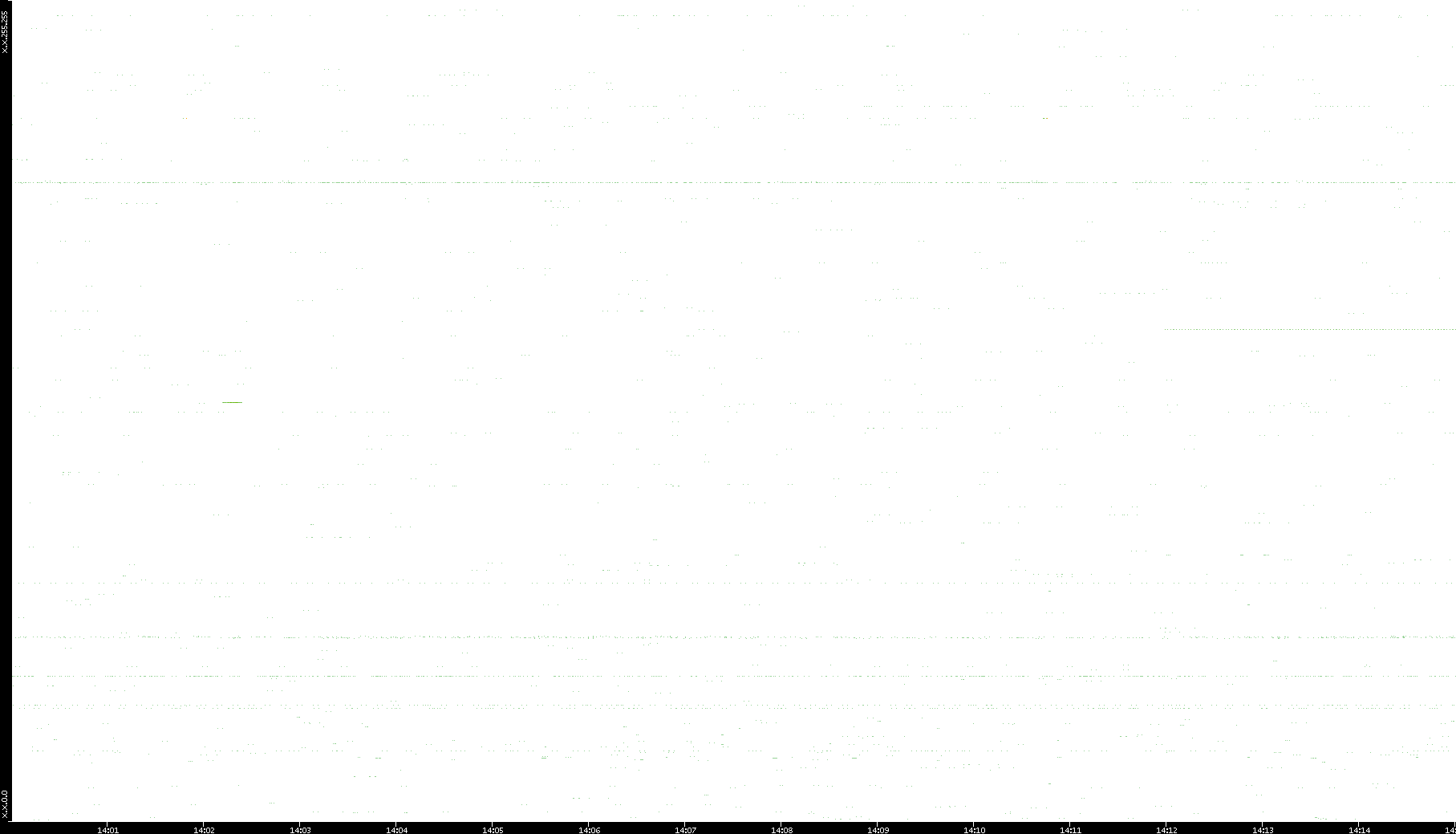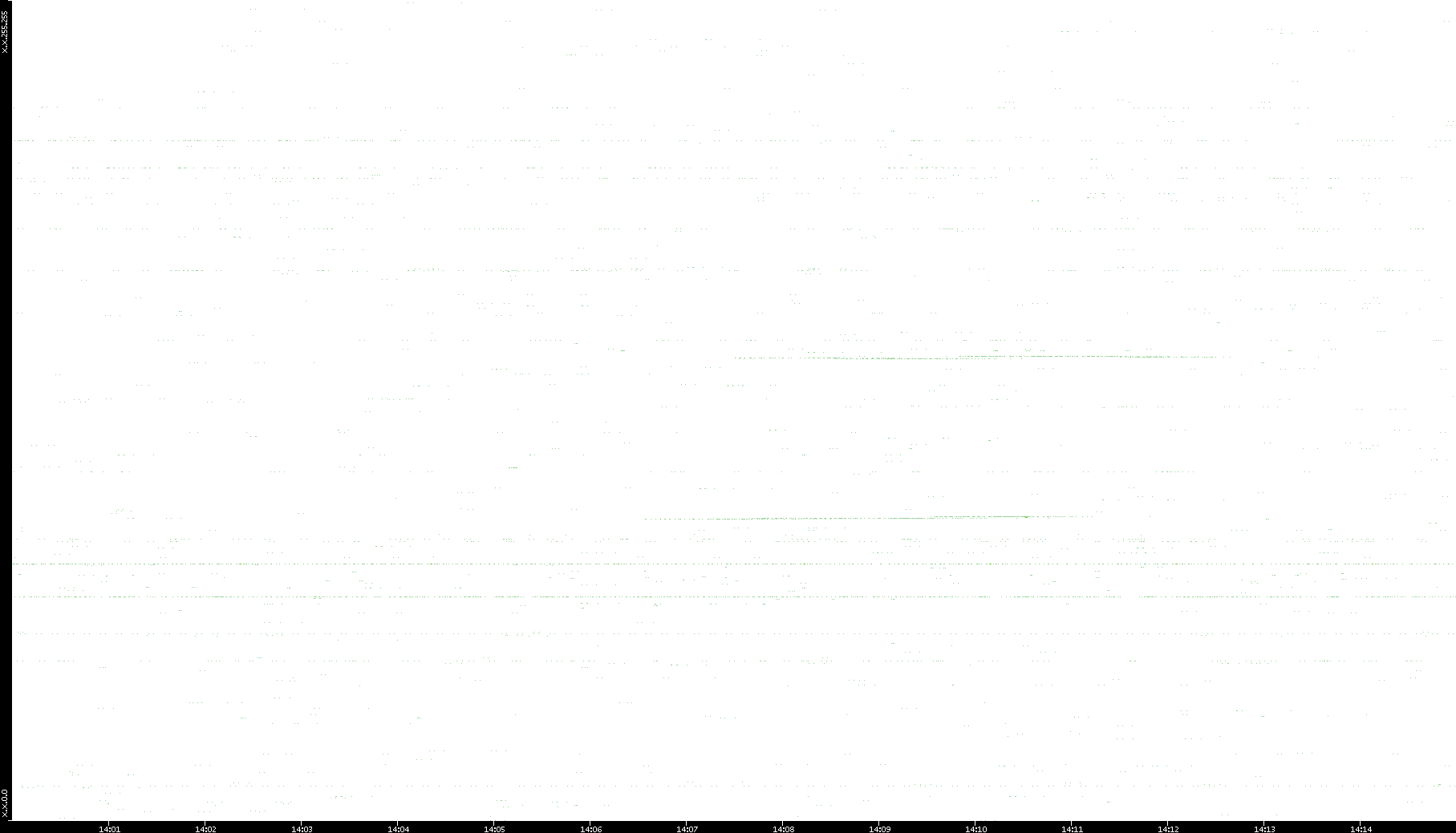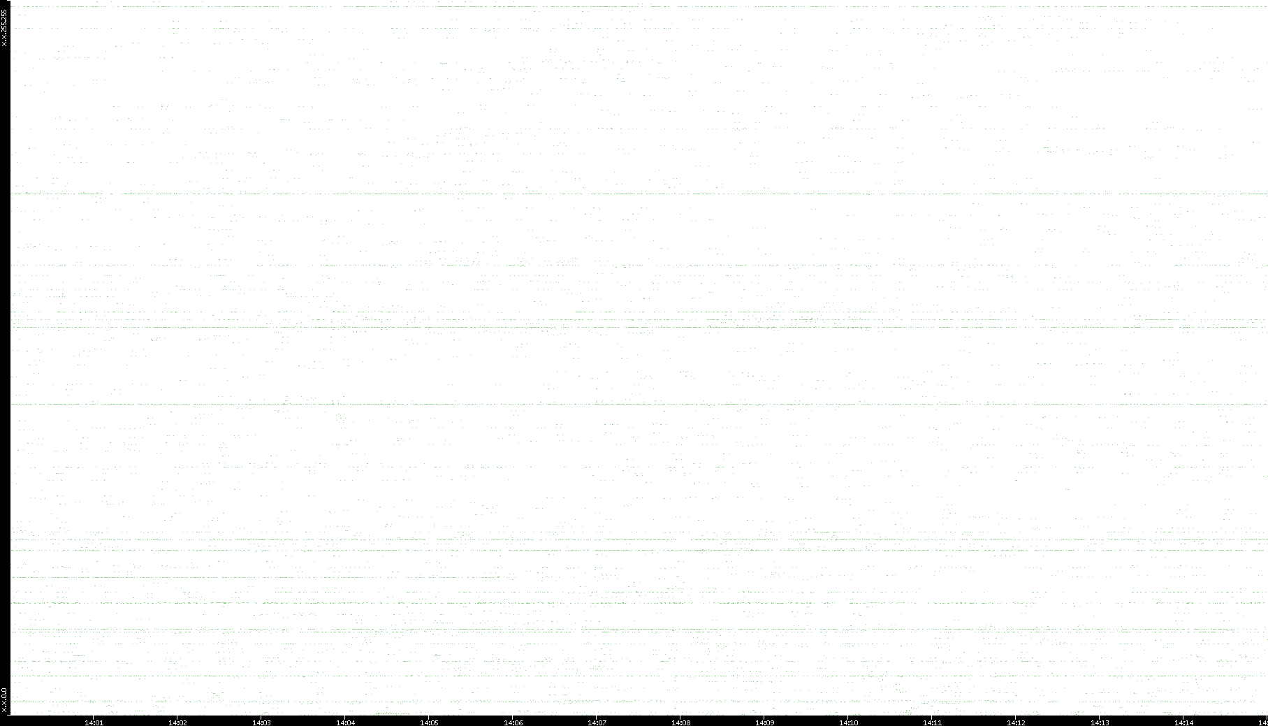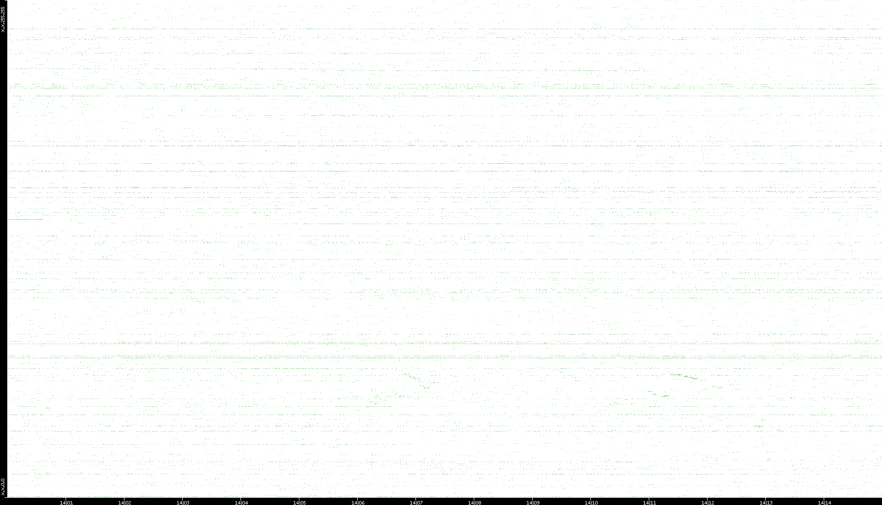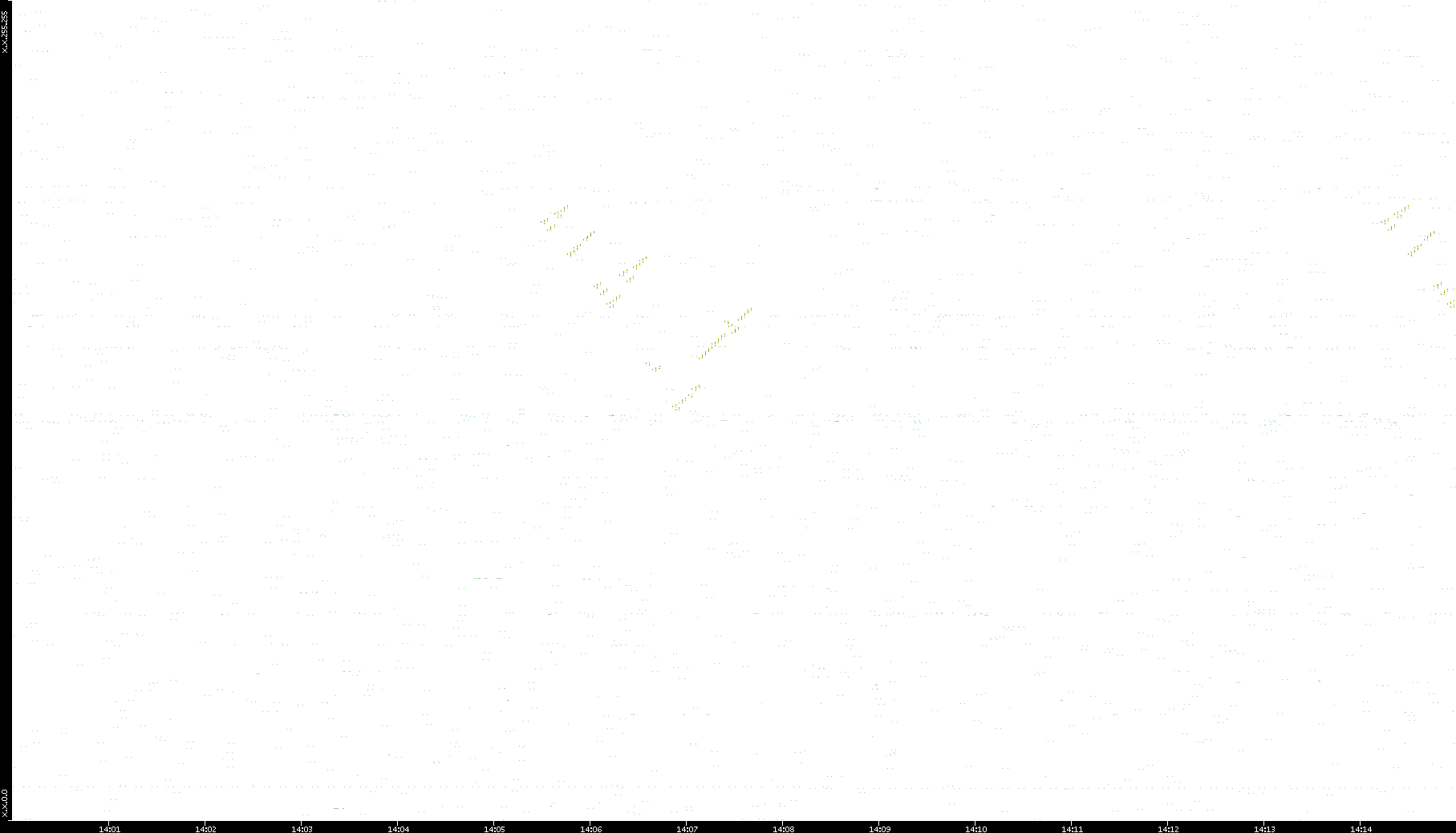 2006/02/13 Dest. IP vs. Time Dest. Port vs. Time Src. IP vs. Time Src. Port vs. Time Nb. of Packets vs. Time Throughput vs. Time Average Packet Size vs. Time Entropy of Port vs. Time