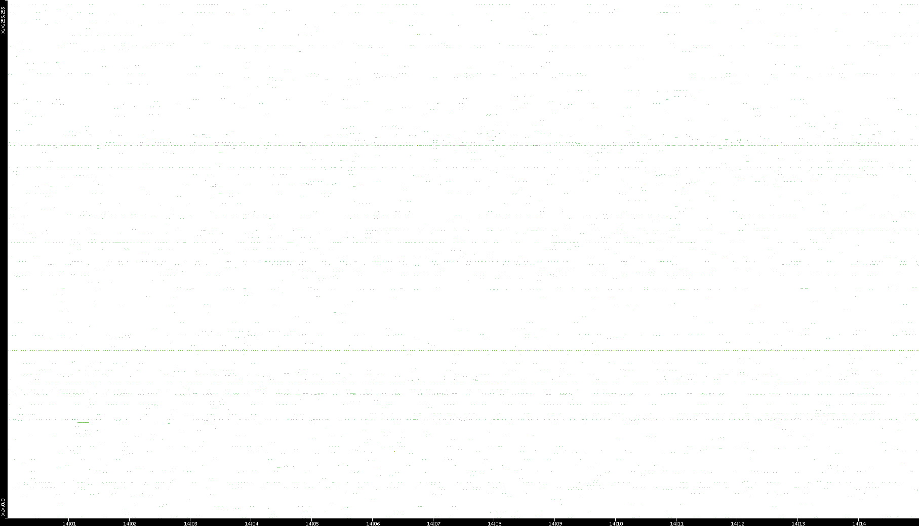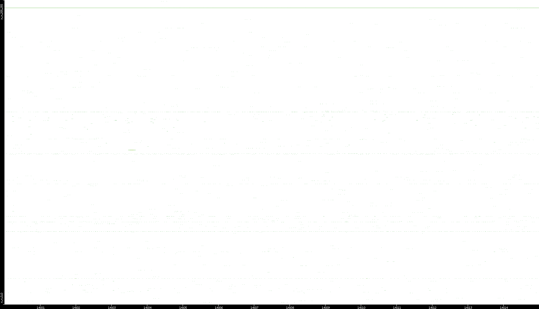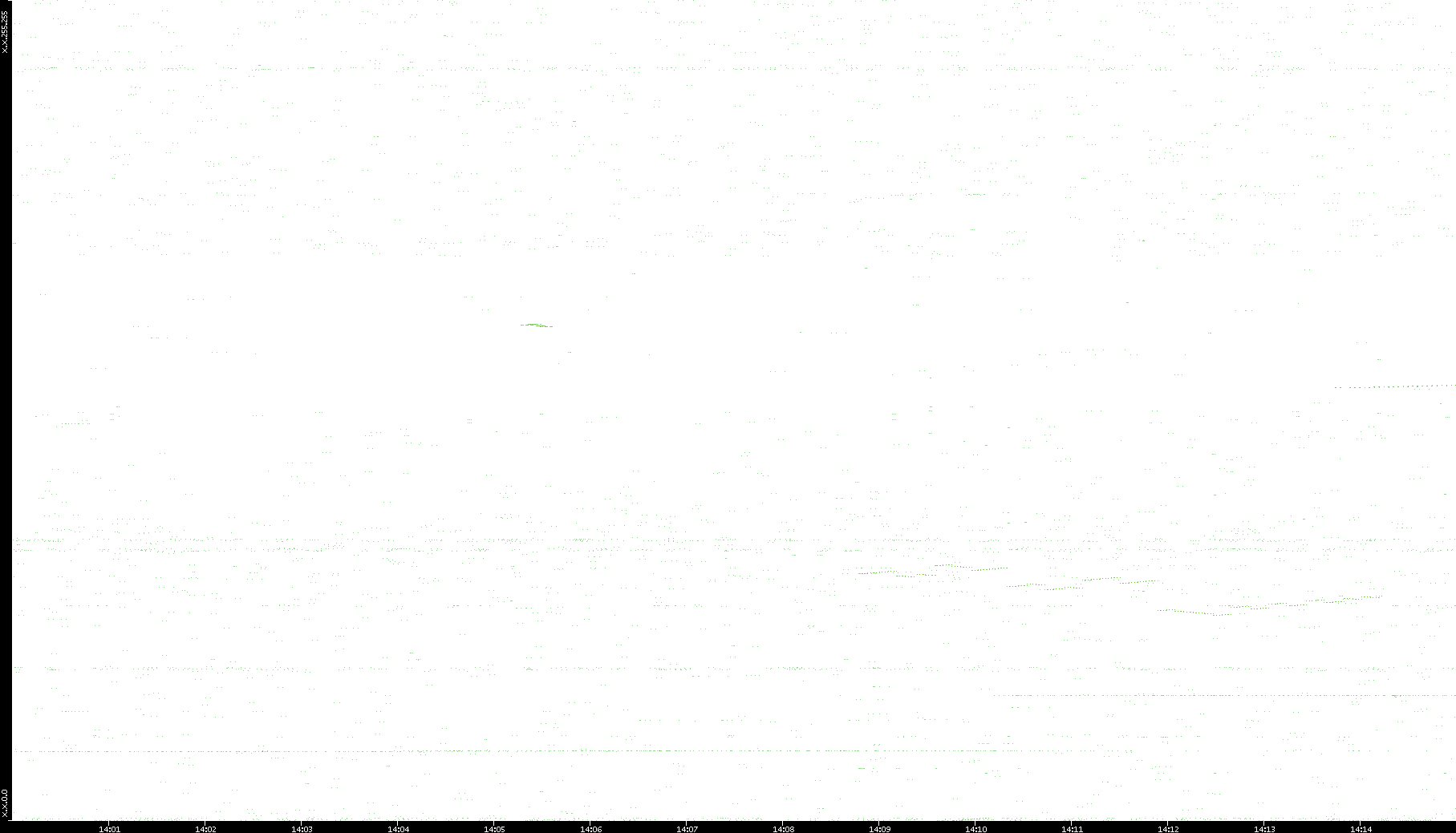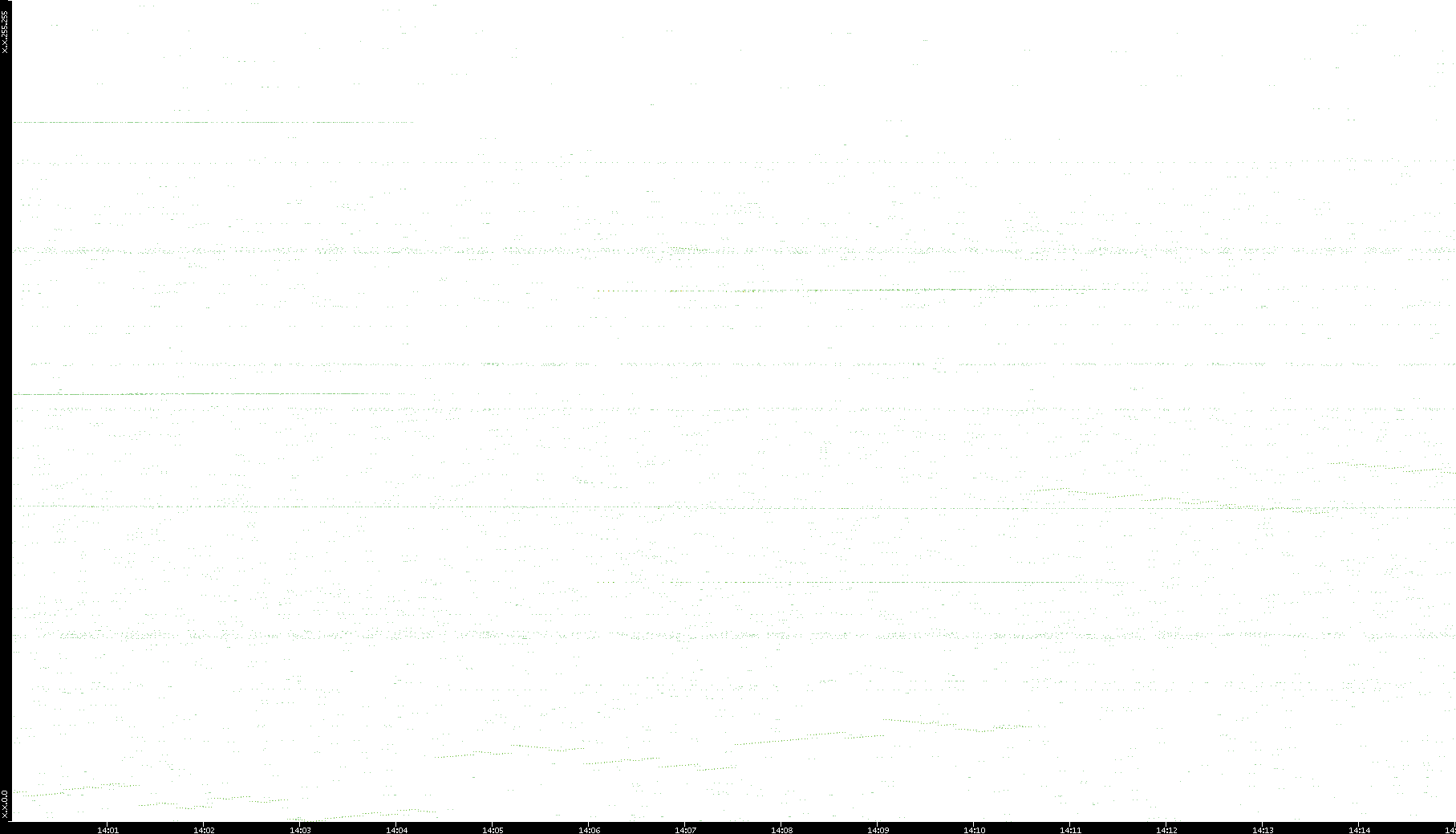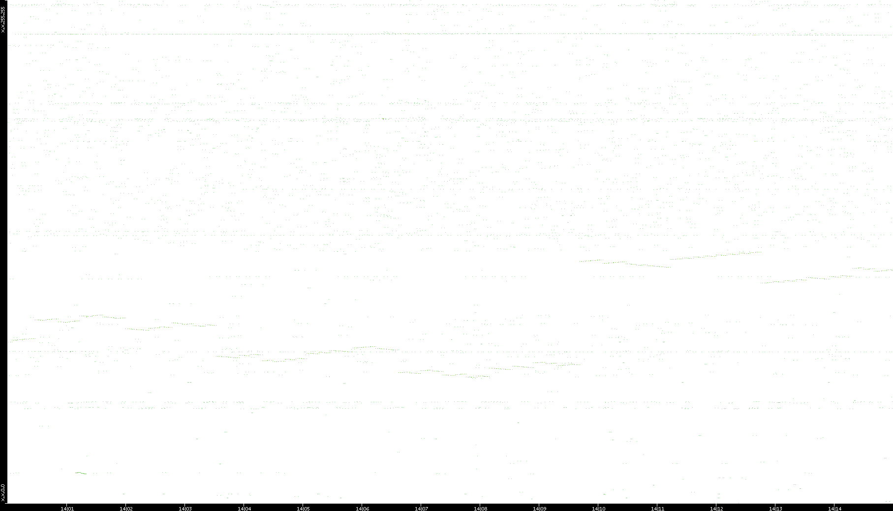2006/02/13 Dest. IP vs. Time Dest. Port vs. Time Src. IP vs. Time Src. Port vs. Time Nb. of Packets vs. Time Throughput vs. Time Average Packet Size vs. Time Entropy of Port vs. Time