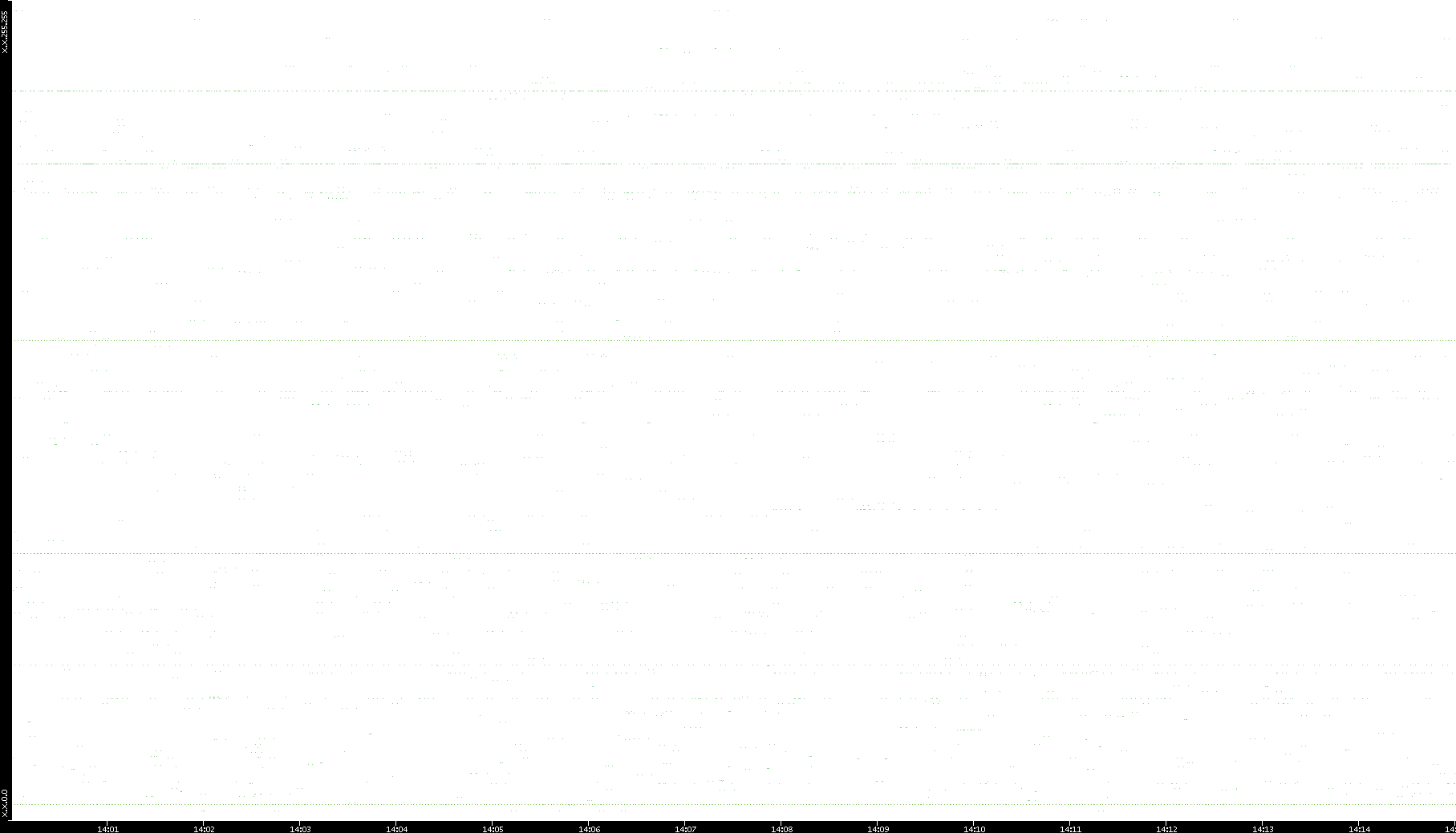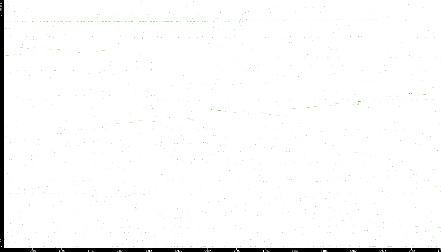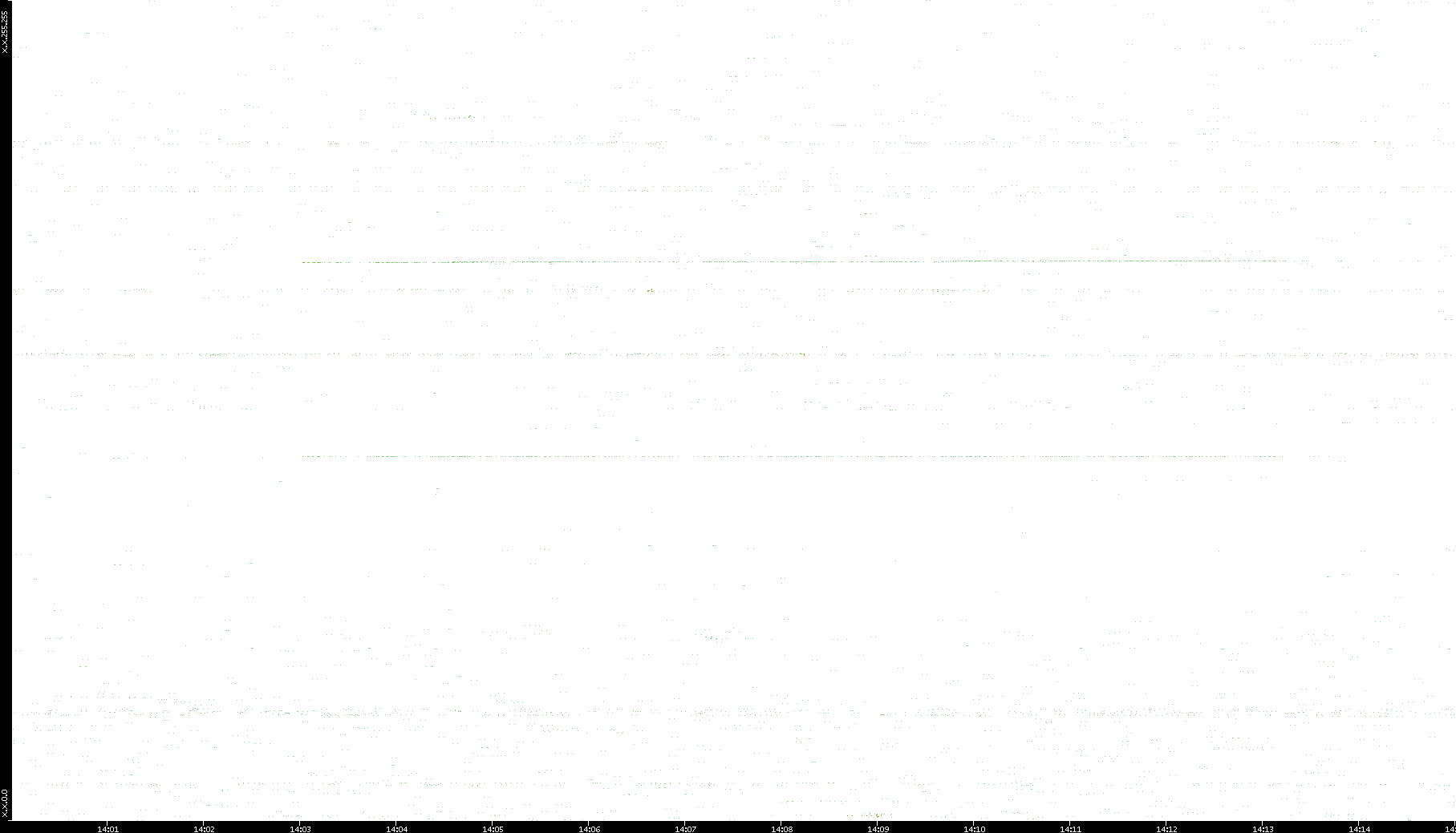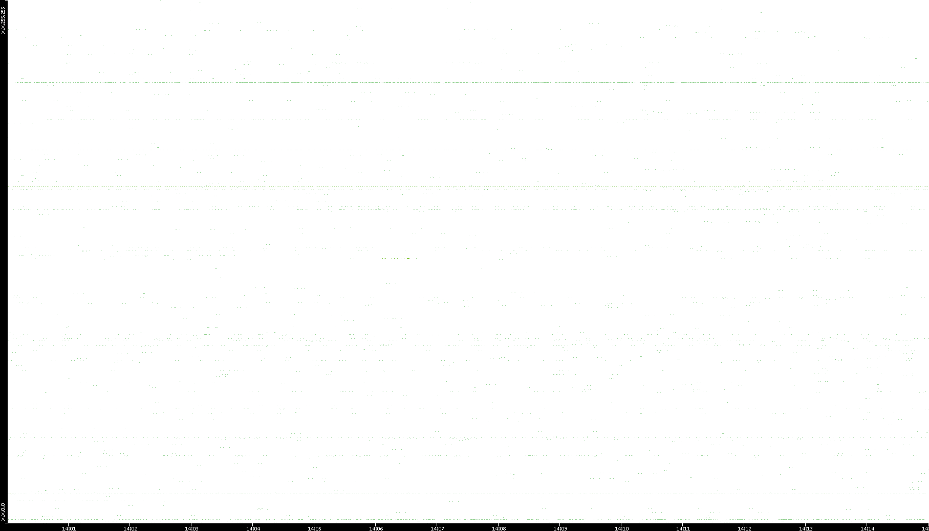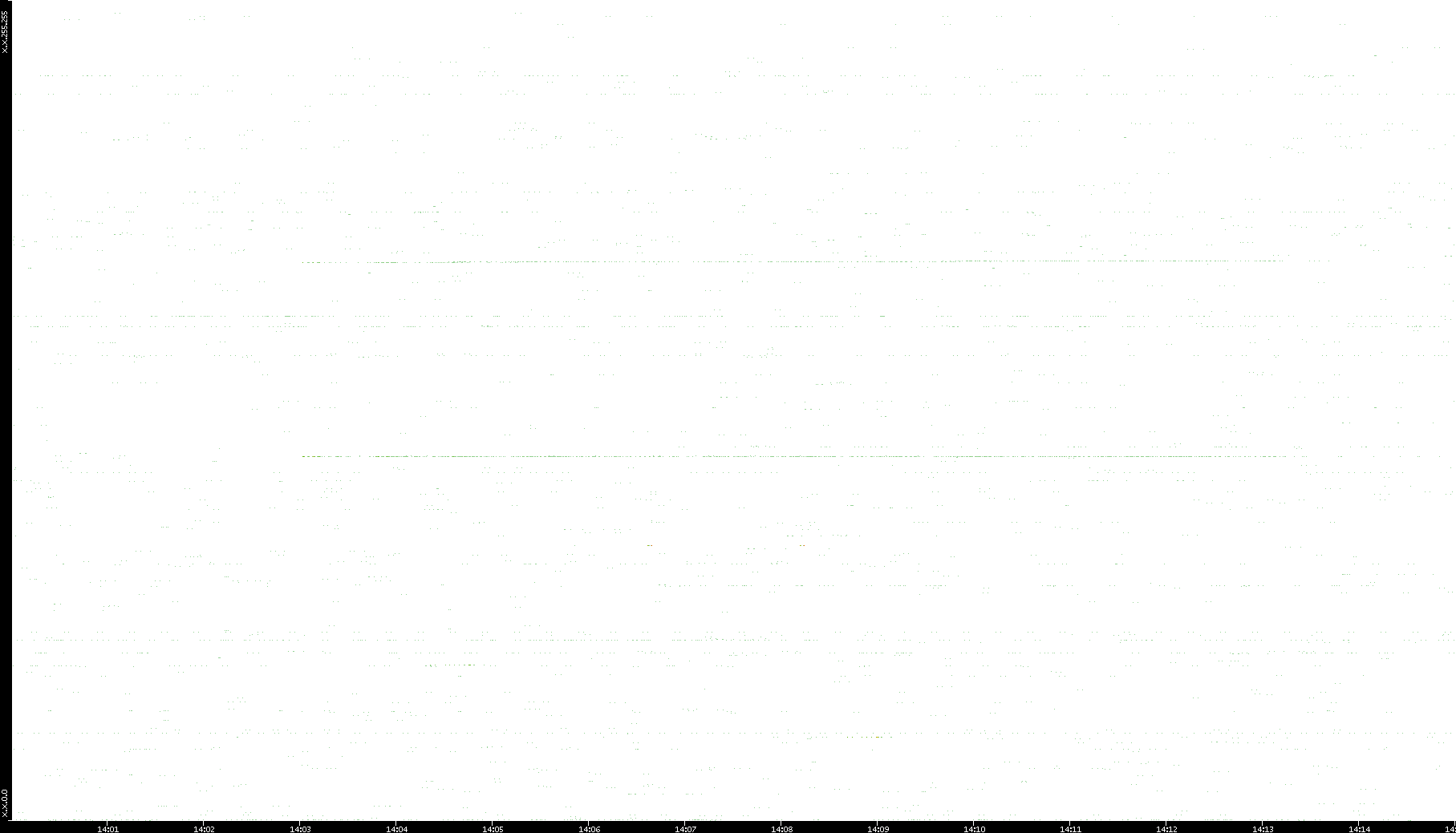 2006/02/13 Dest. IP vs. Time Dest. Port vs. Time Src. IP vs. Time Src. Port vs. Time Nb. of Packets vs. Time Throughput vs. Time Average Packet Size vs. Time Entropy of Port vs. Time