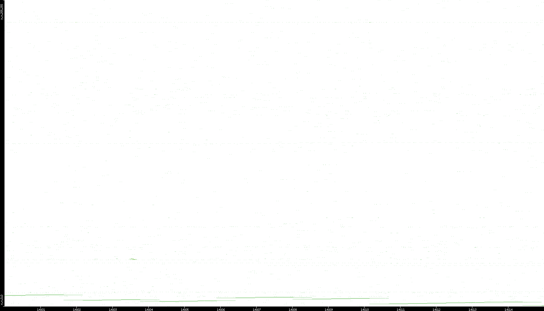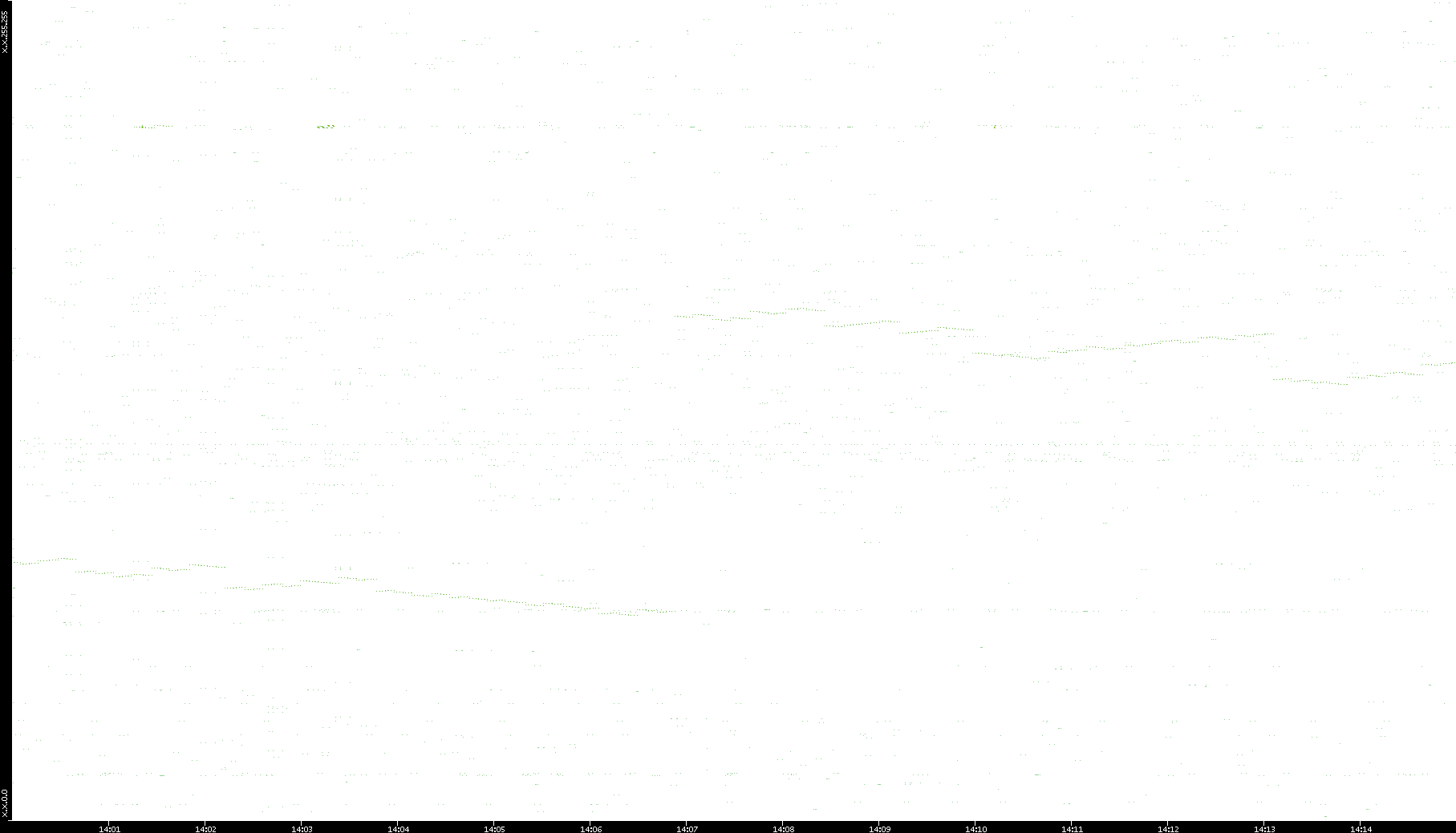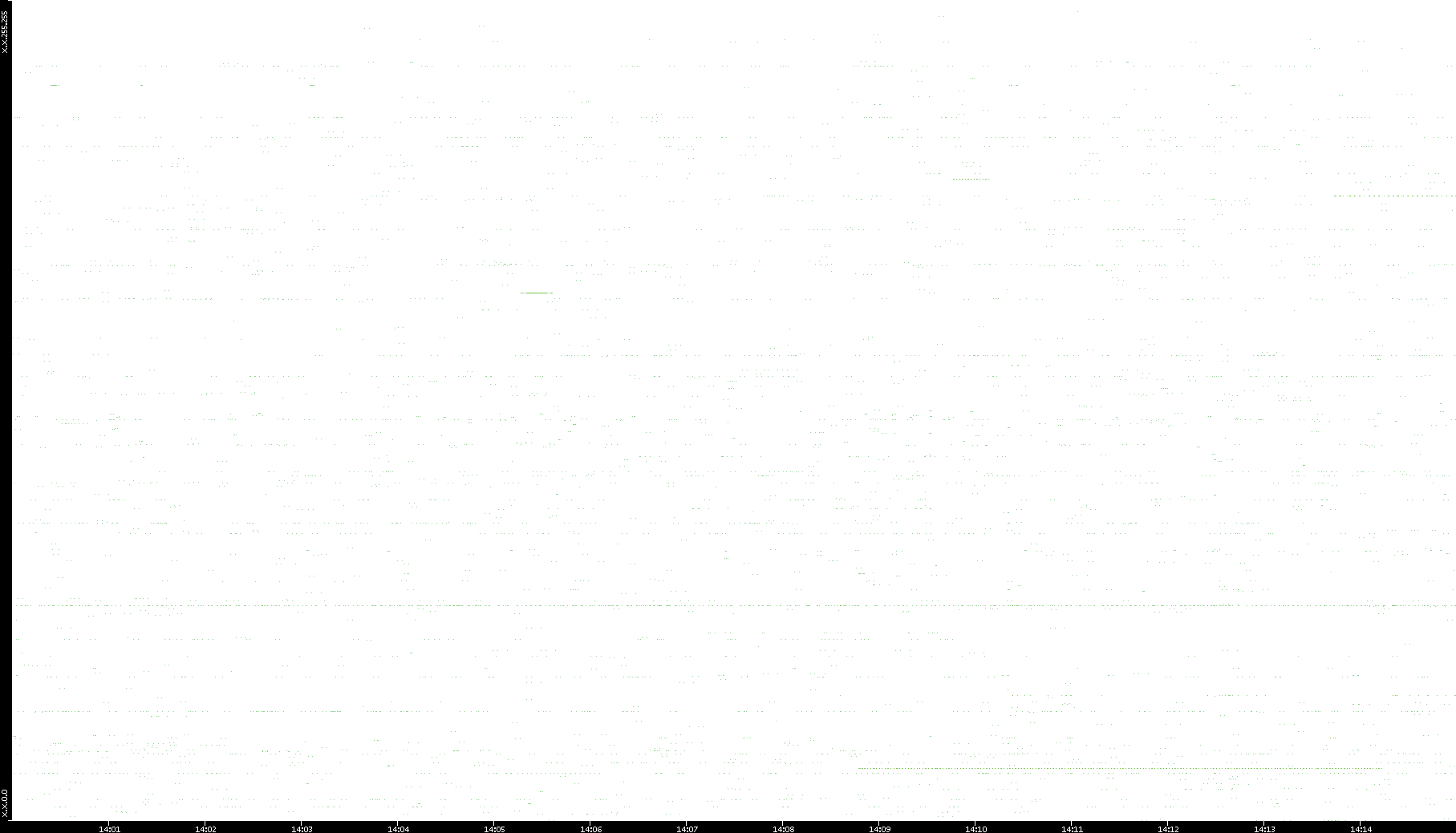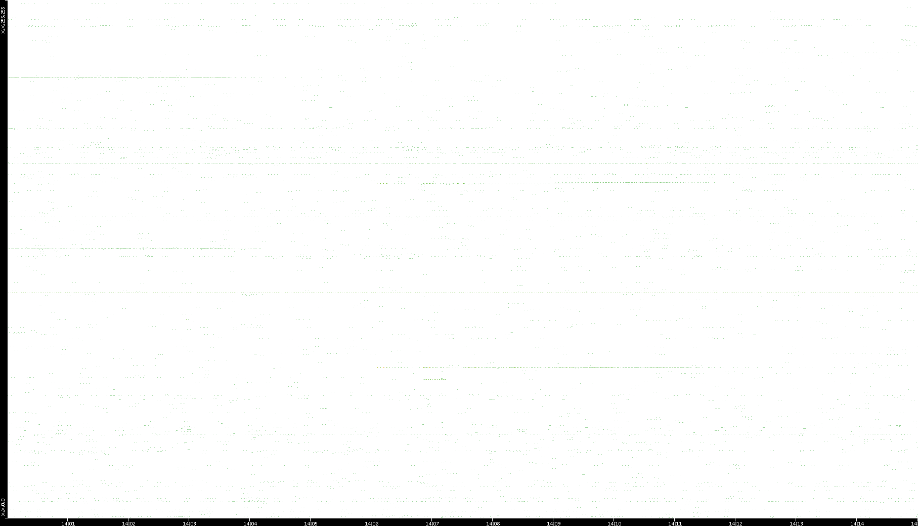 2006/02/13 Dest. IP vs. Time Dest. Port vs. Time Src. IP vs. Time Src. Port vs. Time Nb. of Packets vs. Time Throughput vs. Time Average Packet Size vs. Time Entropy of Port vs. Time