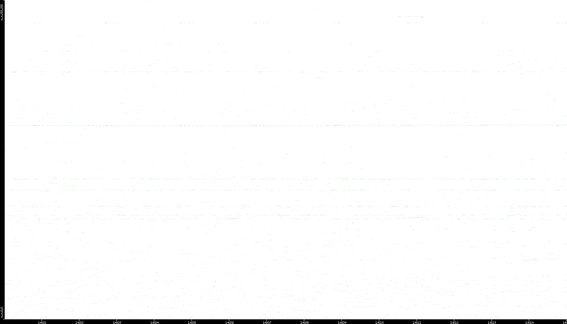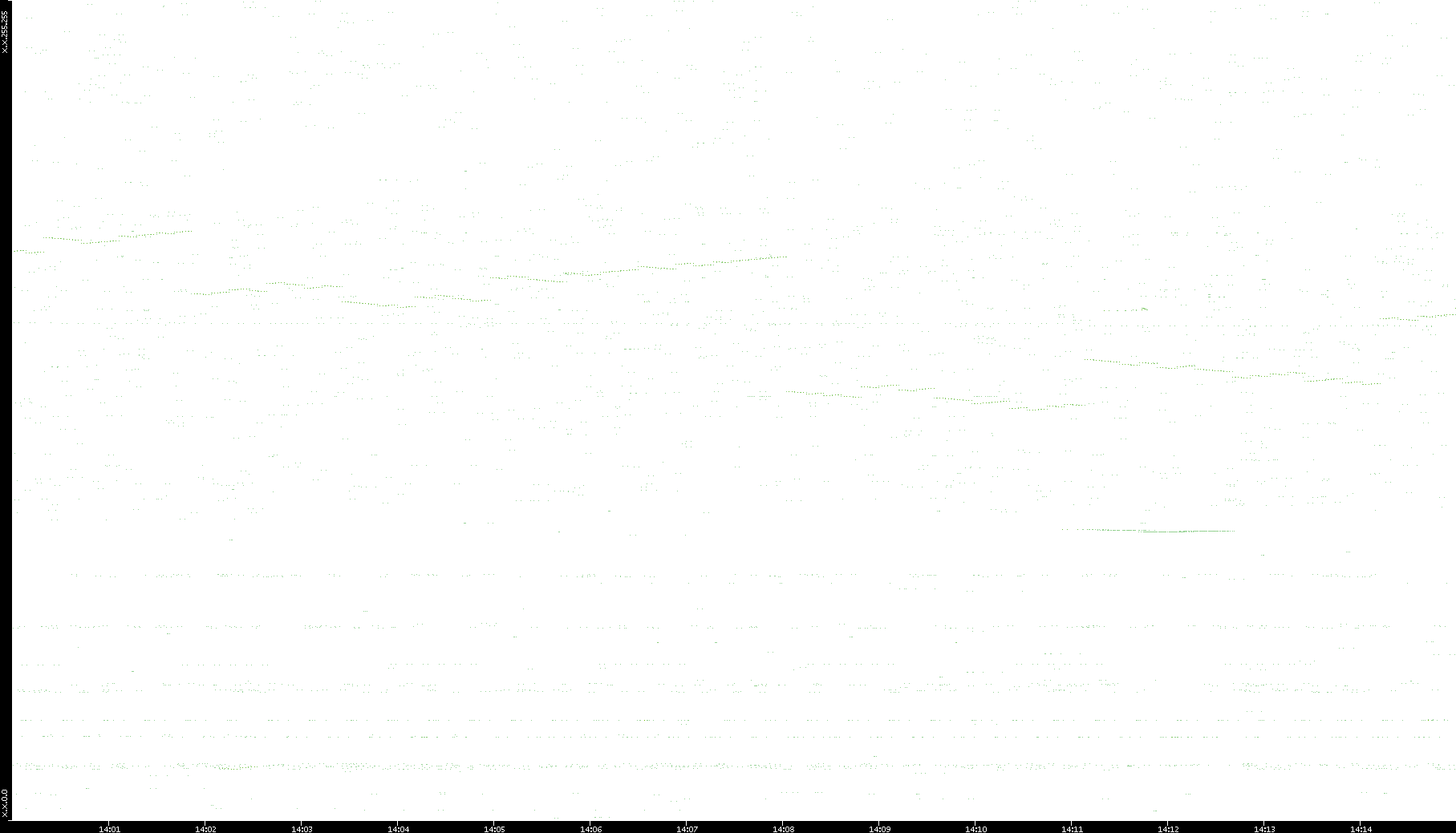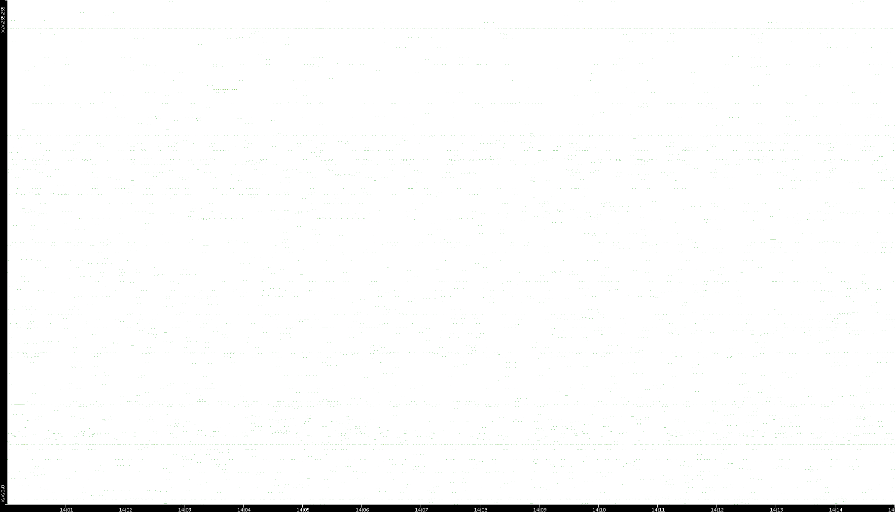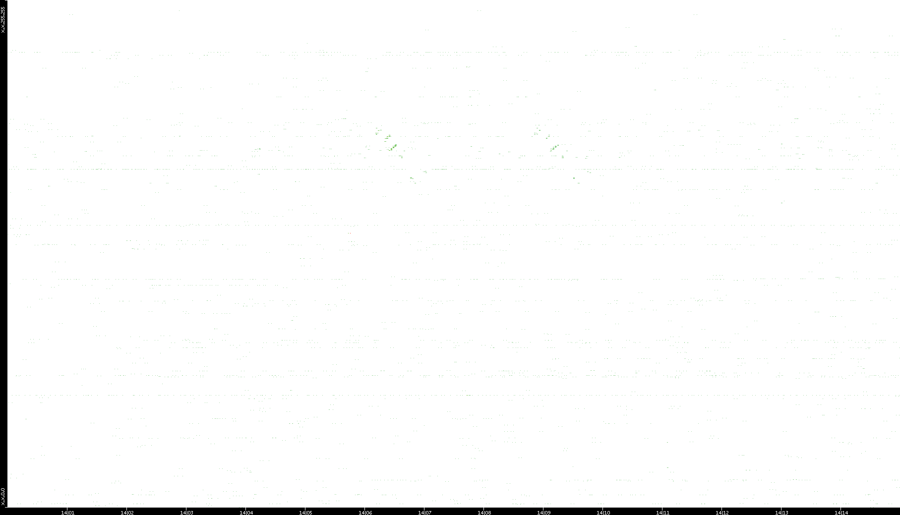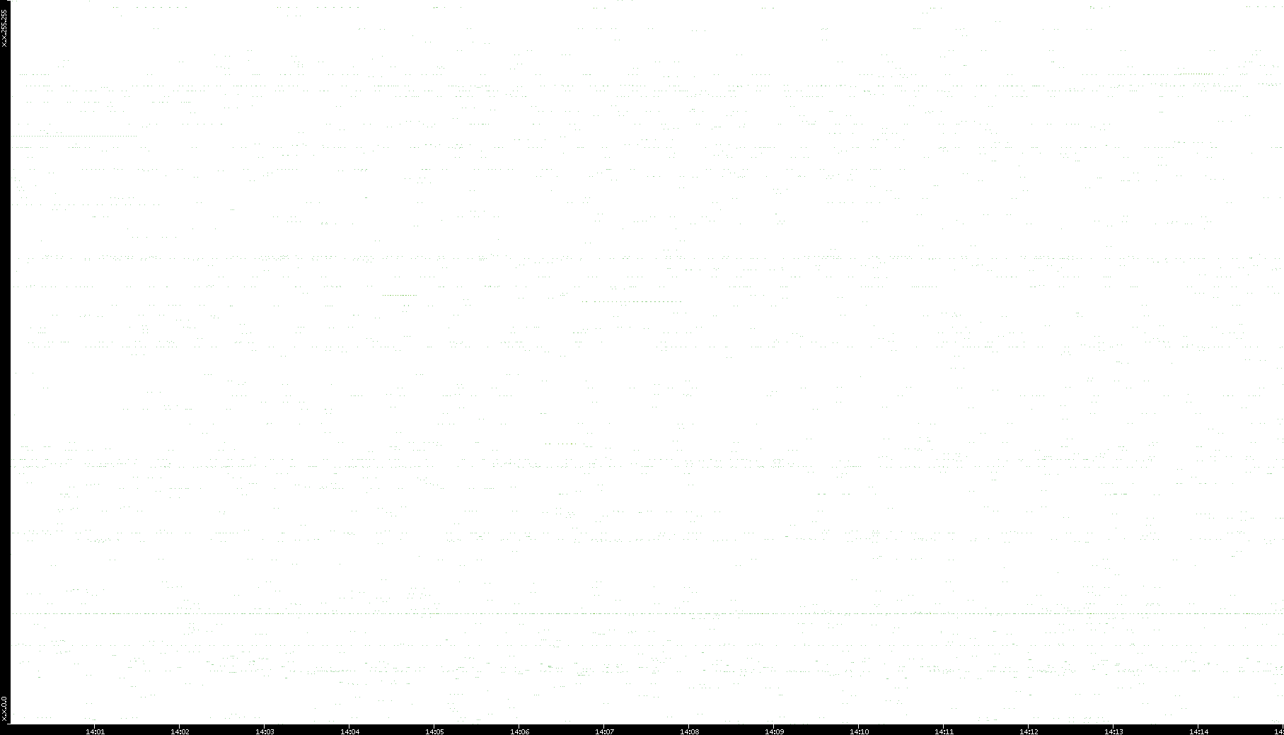 2006/02/13 Dest. IP vs. Time Dest. Port vs. Time Src. IP vs. Time Src. Port vs. Time Nb. of Packets vs. Time Throughput vs. Time Average Packet Size vs. Time Entropy of Port vs. Time