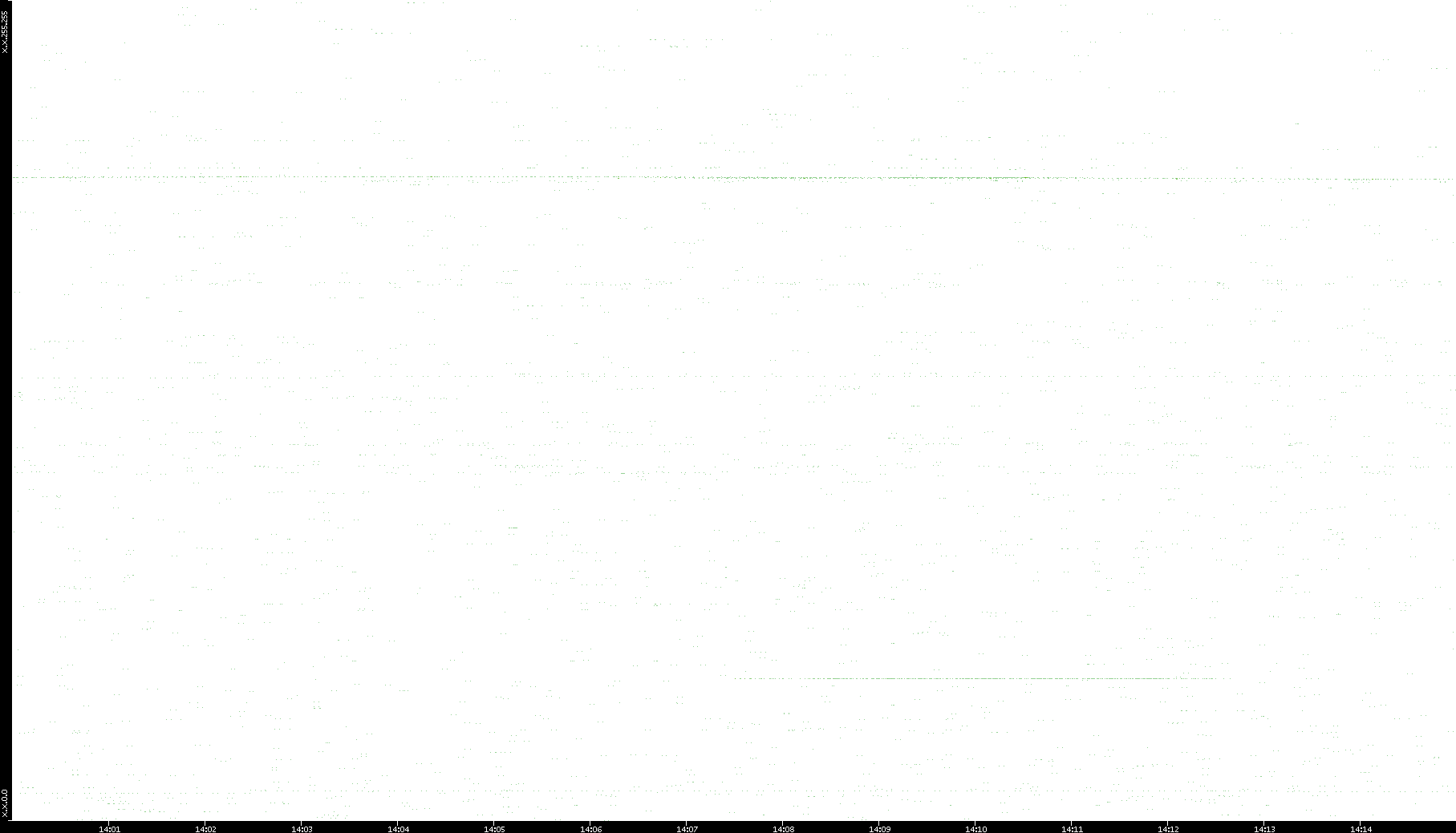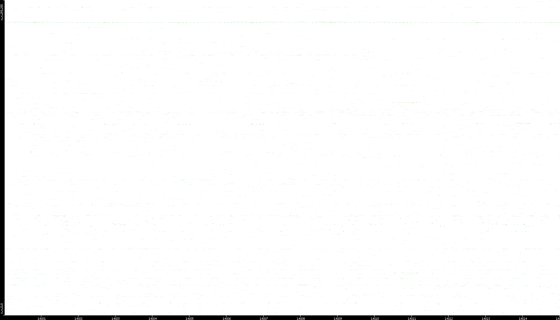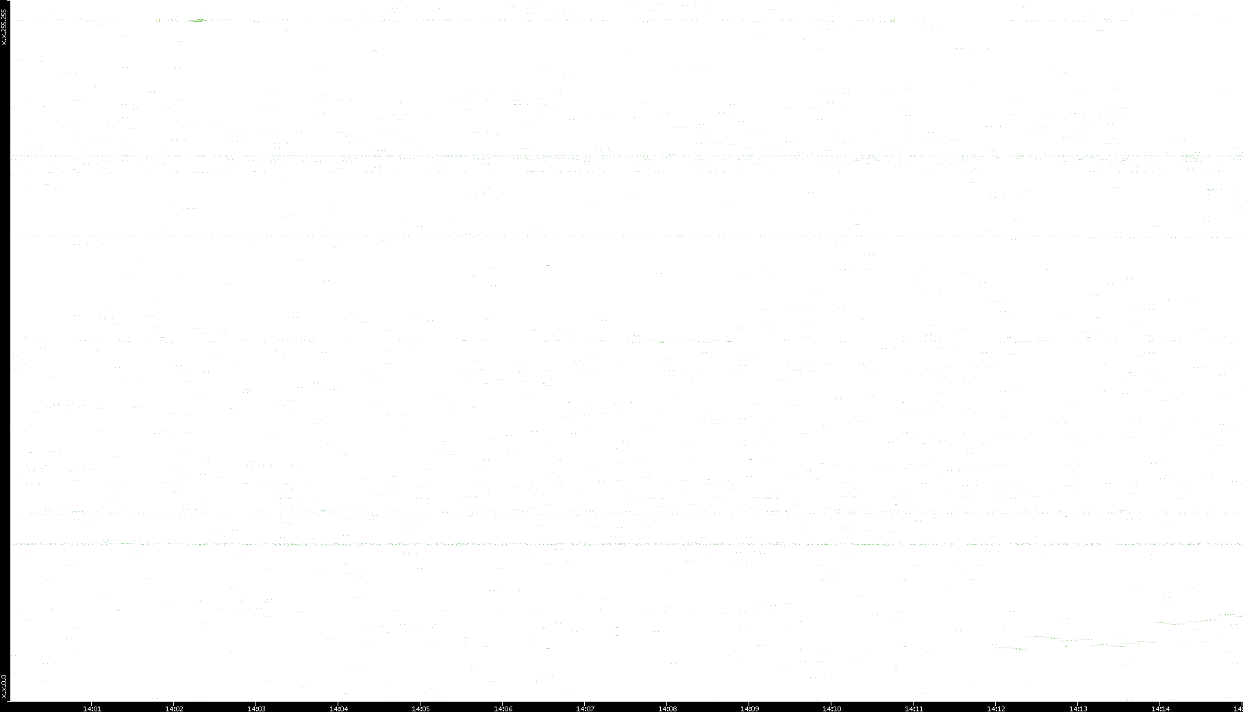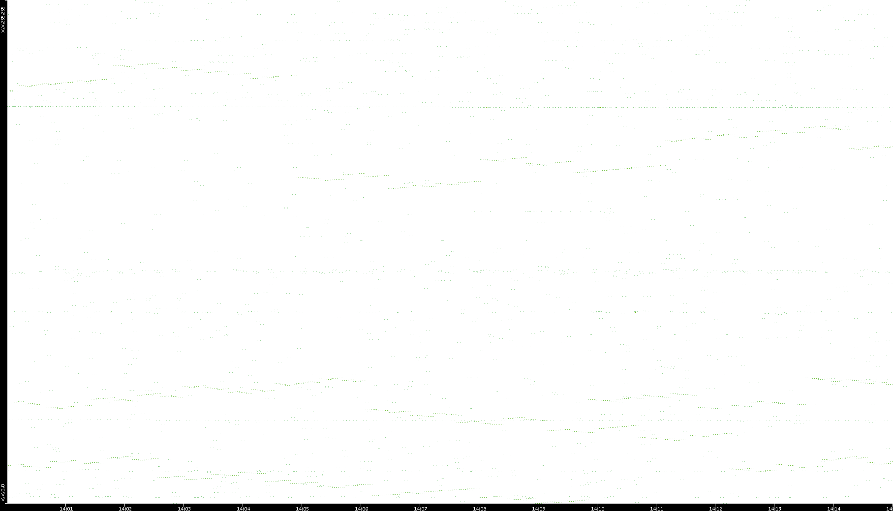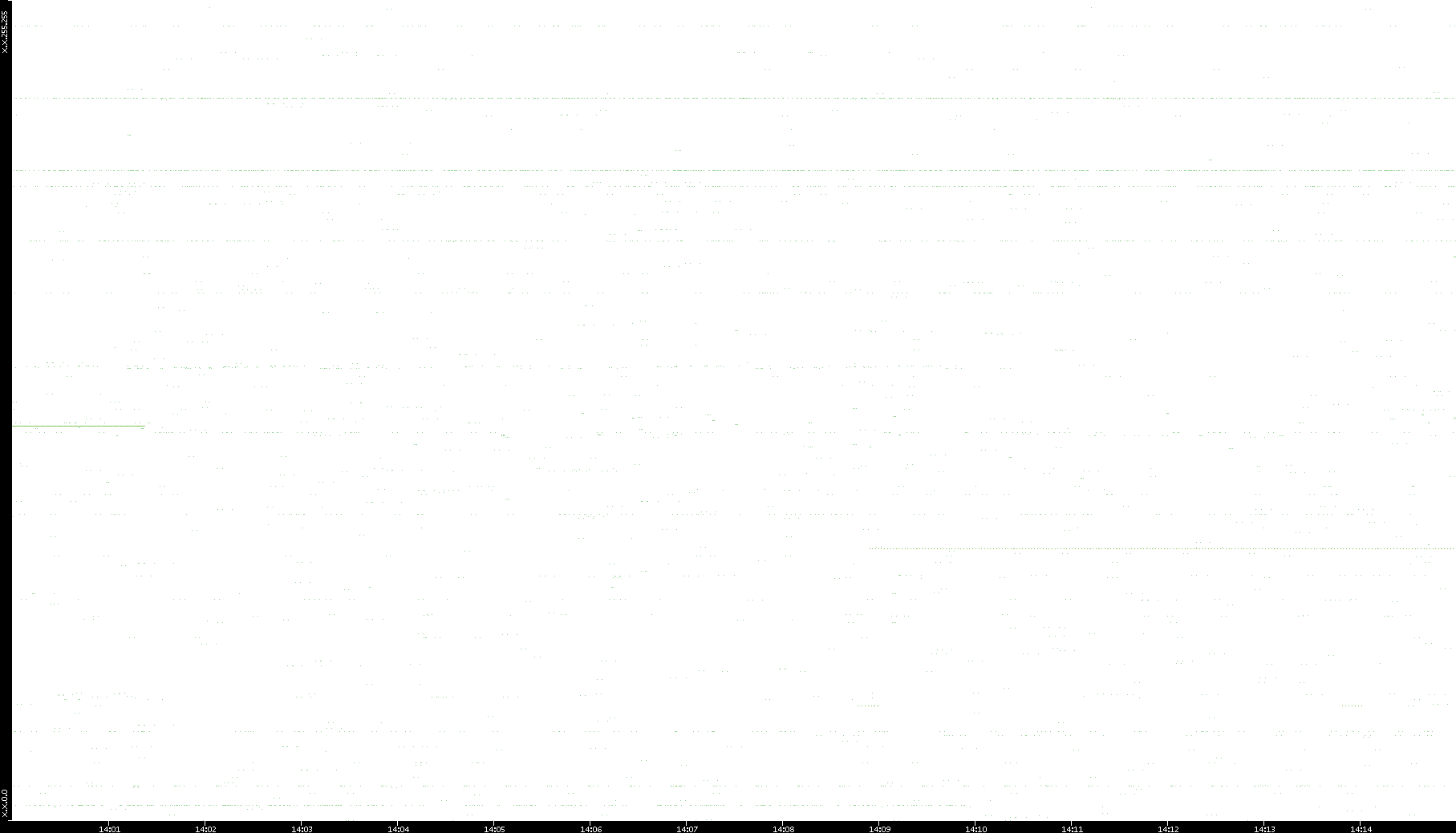 2006/02/13 Dest. IP vs. Time Dest. Port vs. Time Src. IP vs. Time Src. Port vs. Time Nb. of Packets vs. Time Throughput vs. Time Average Packet Size vs. Time Entropy of Port vs. Time