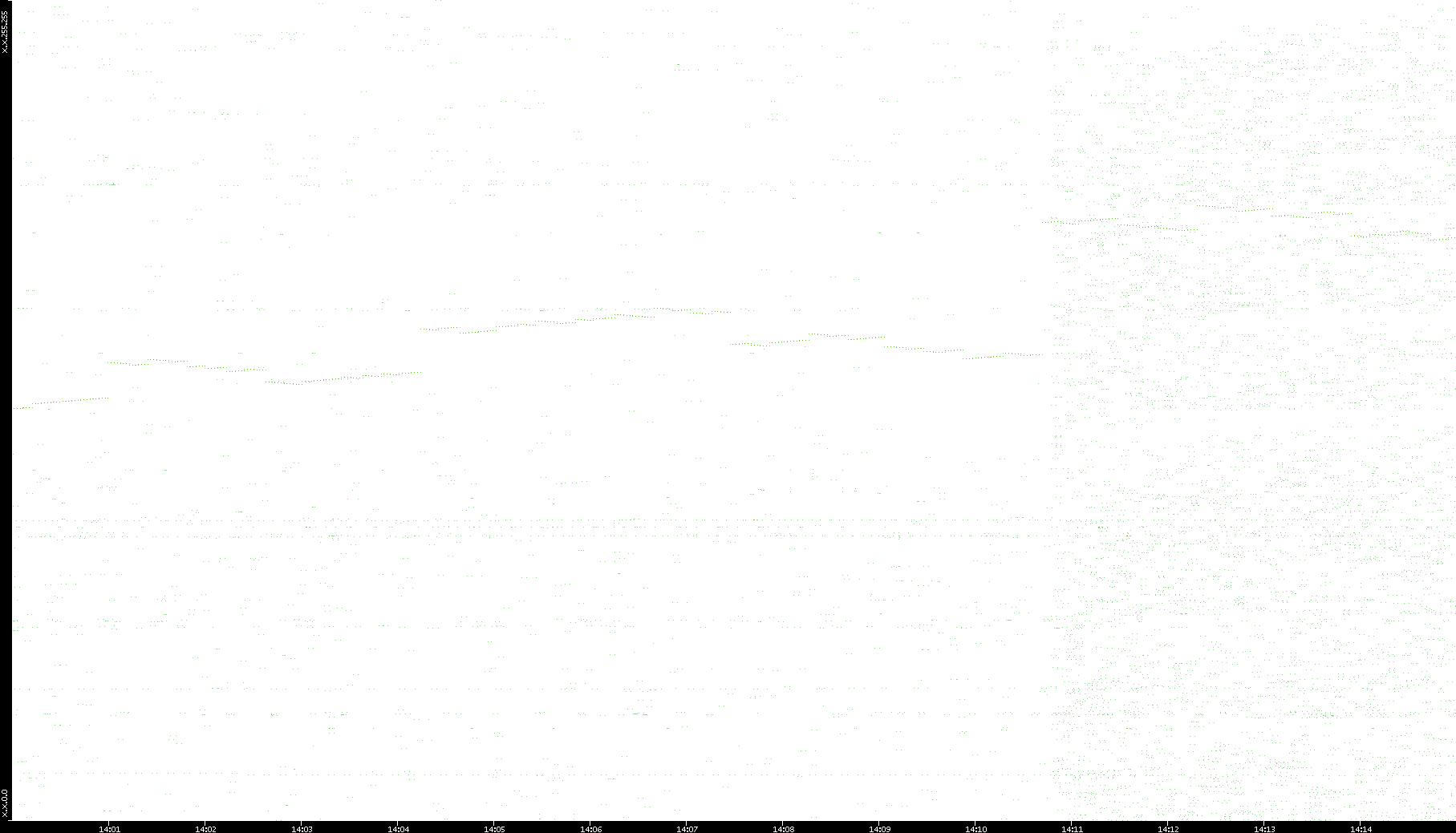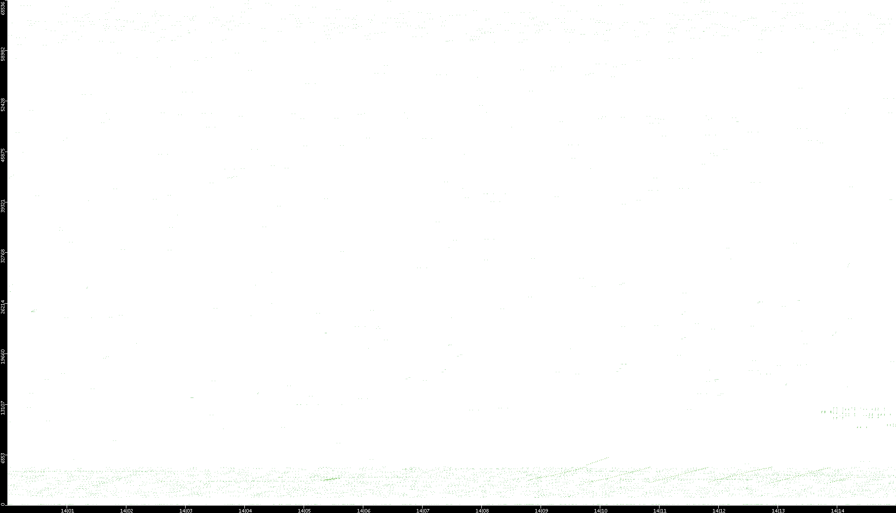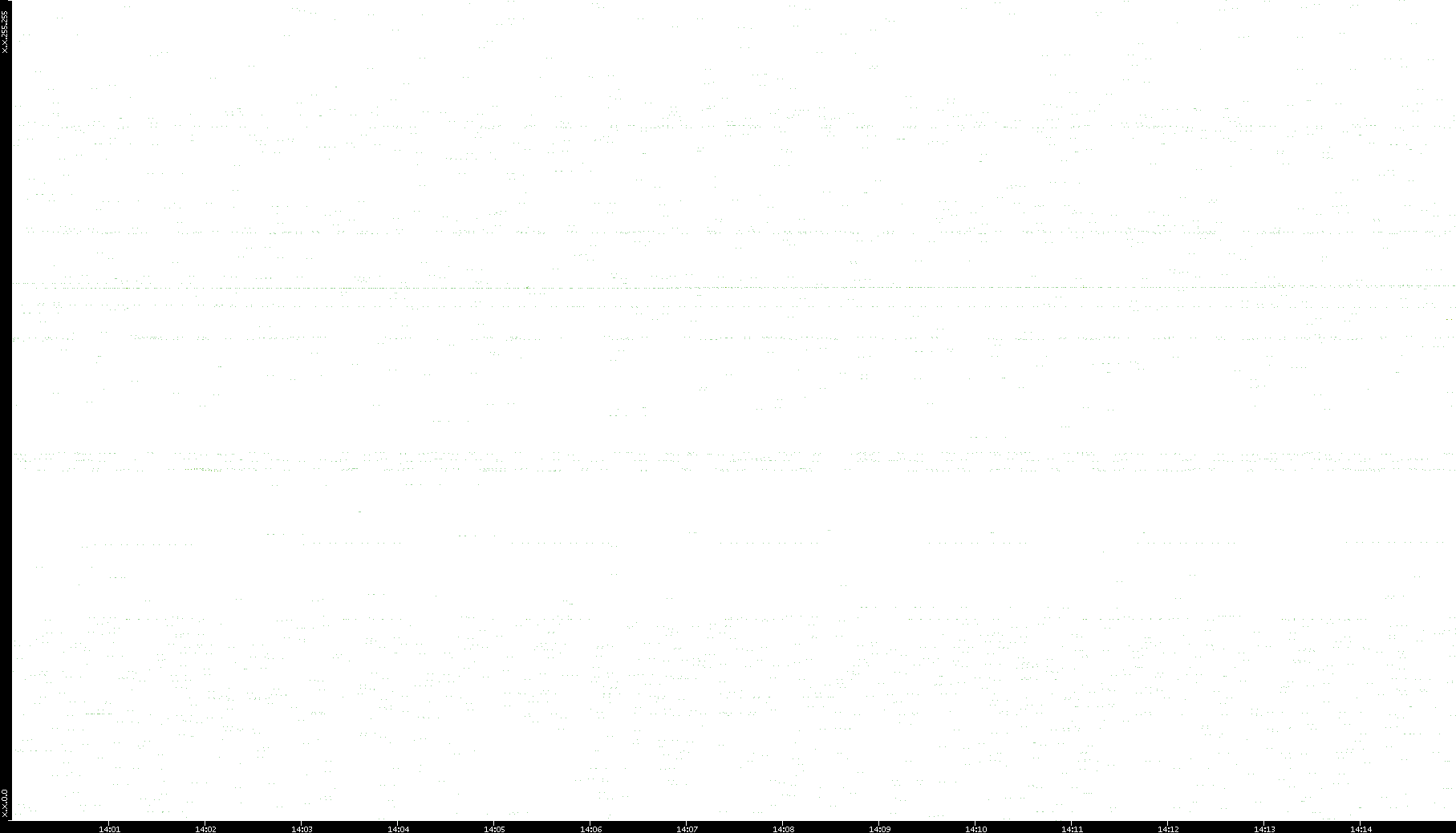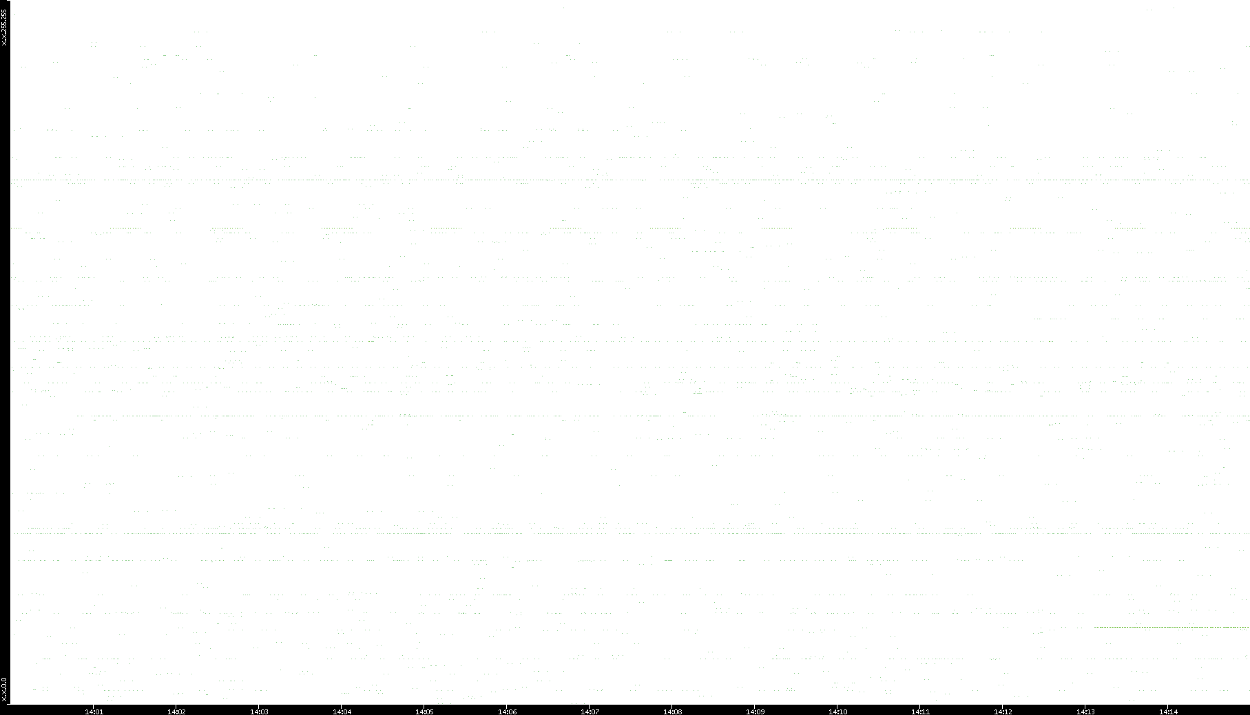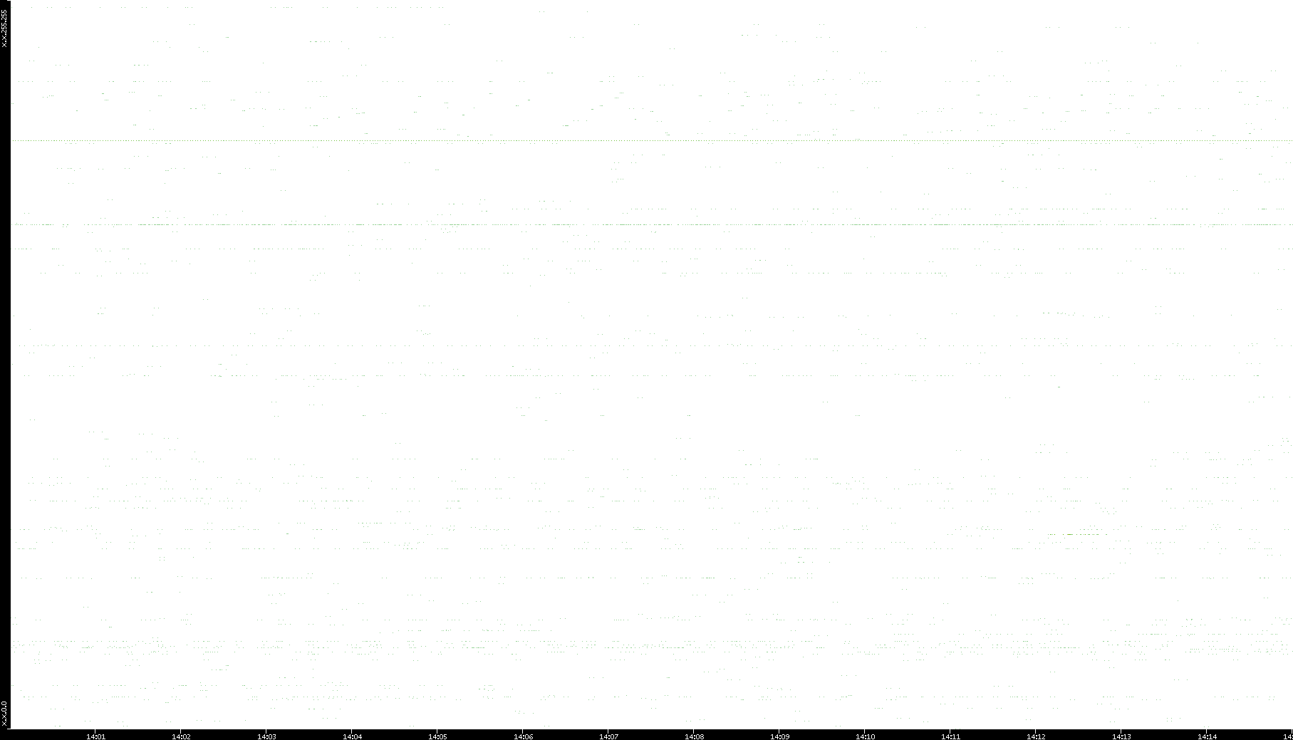 2006/02/13 Dest. IP vs. Time Dest. Port vs. Time Src. IP vs. Time Src. Port vs. Time Nb. of Packets vs. Time Throughput vs. Time Average Packet Size vs. Time Entropy of Port vs. Time